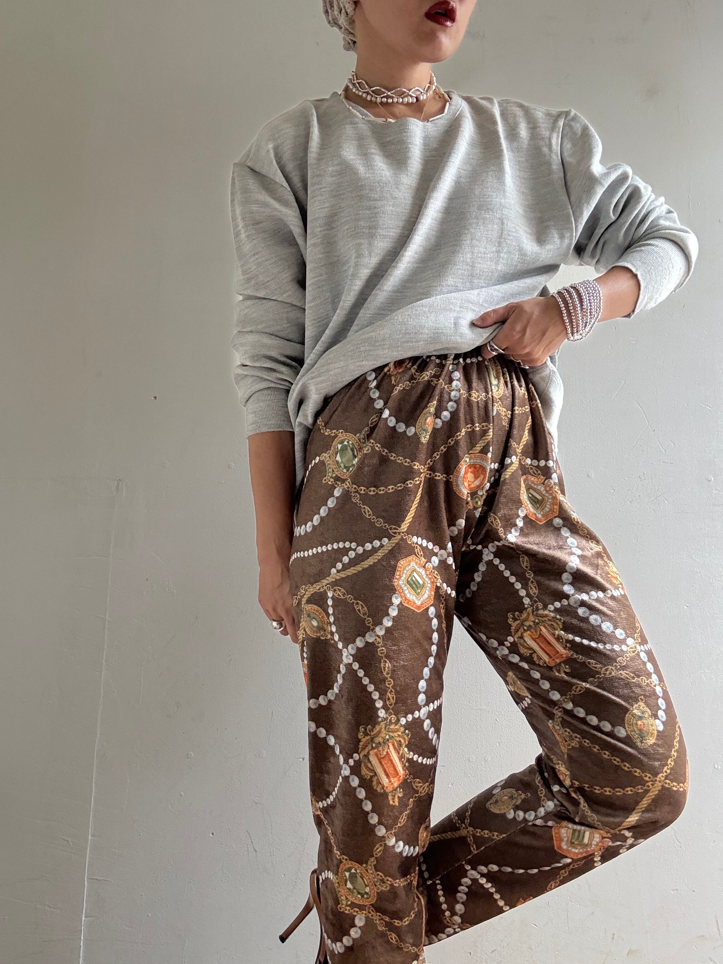 Vintage Jewelry Pattern Velour Leggings Pants