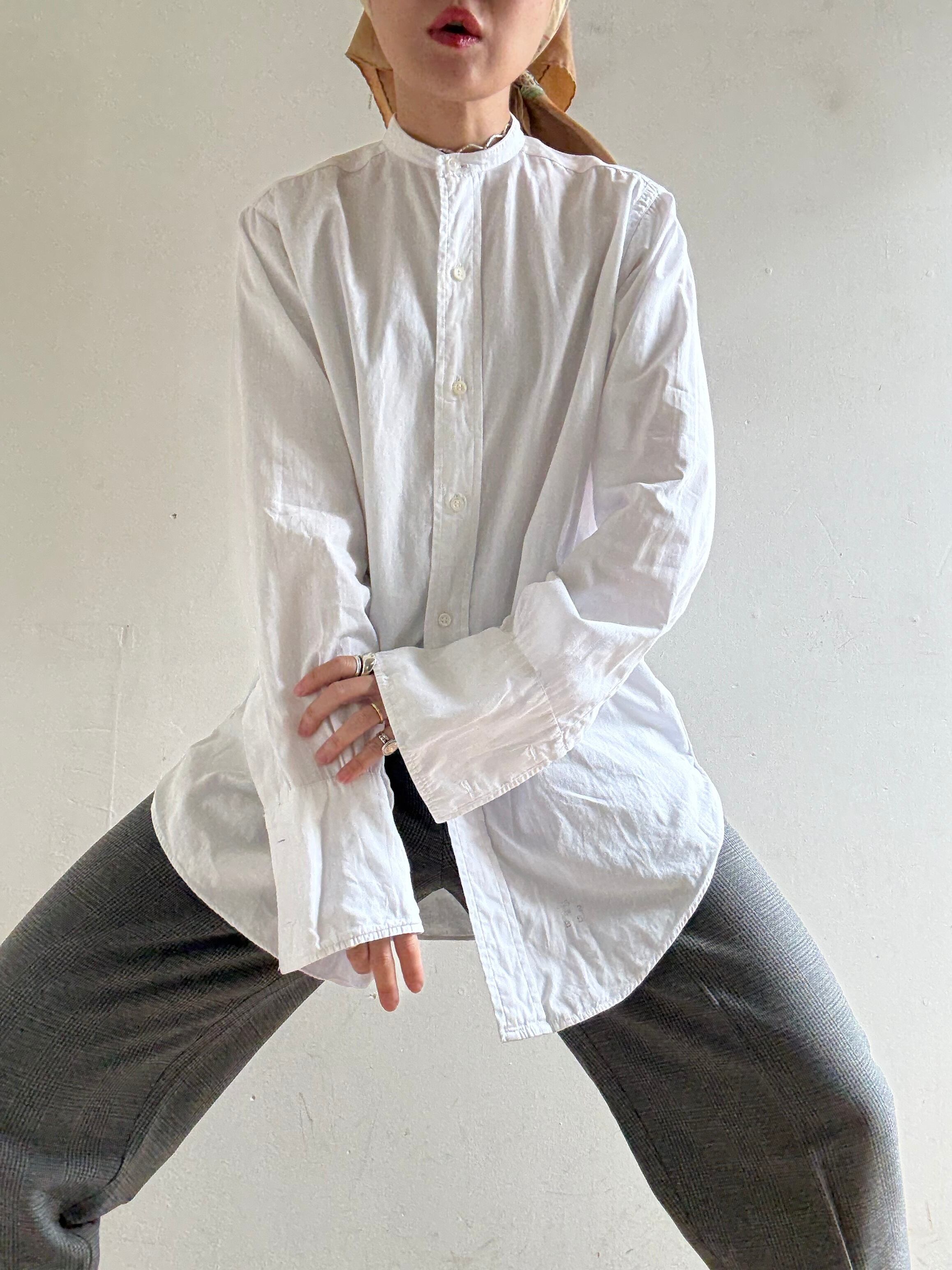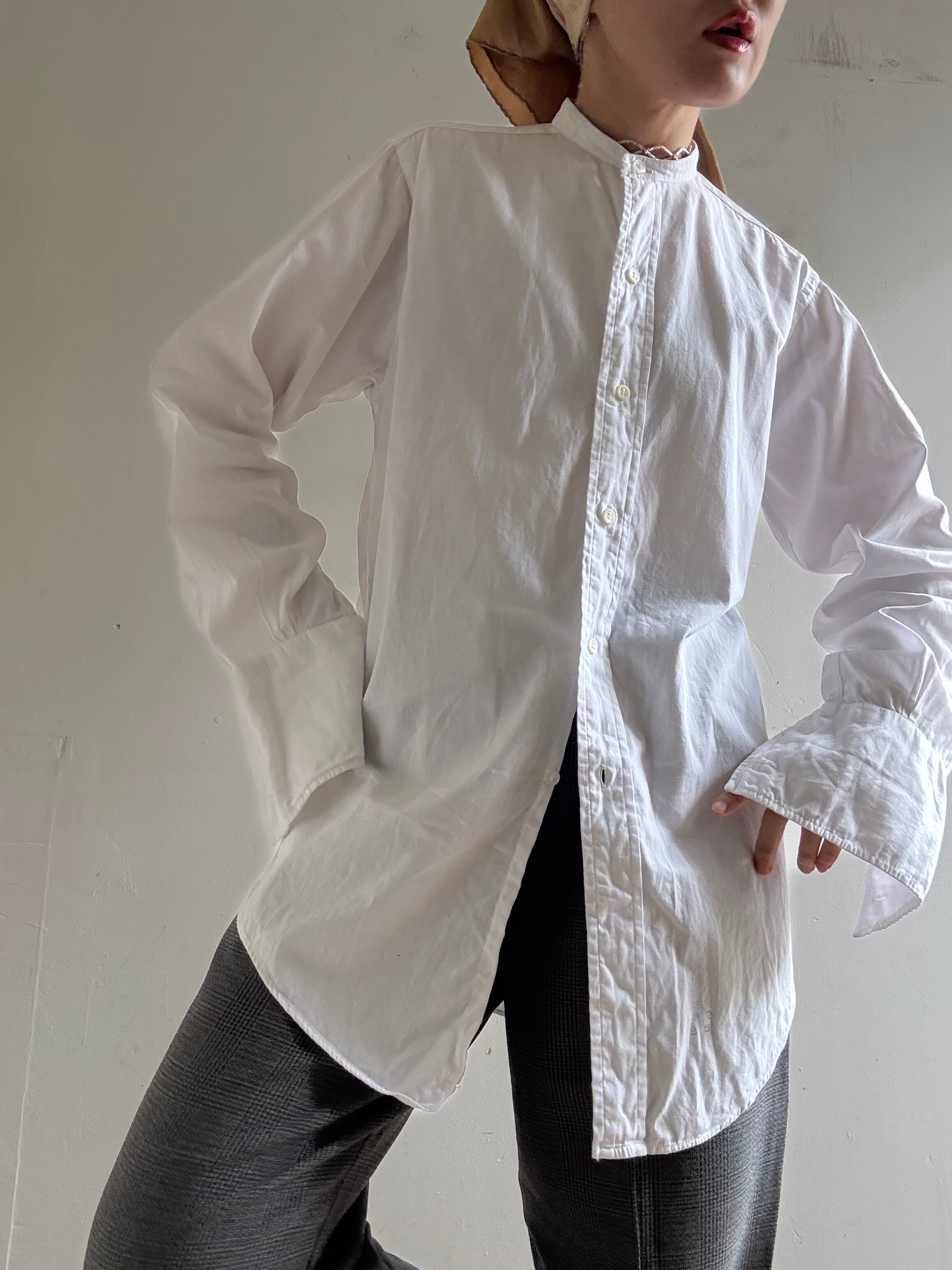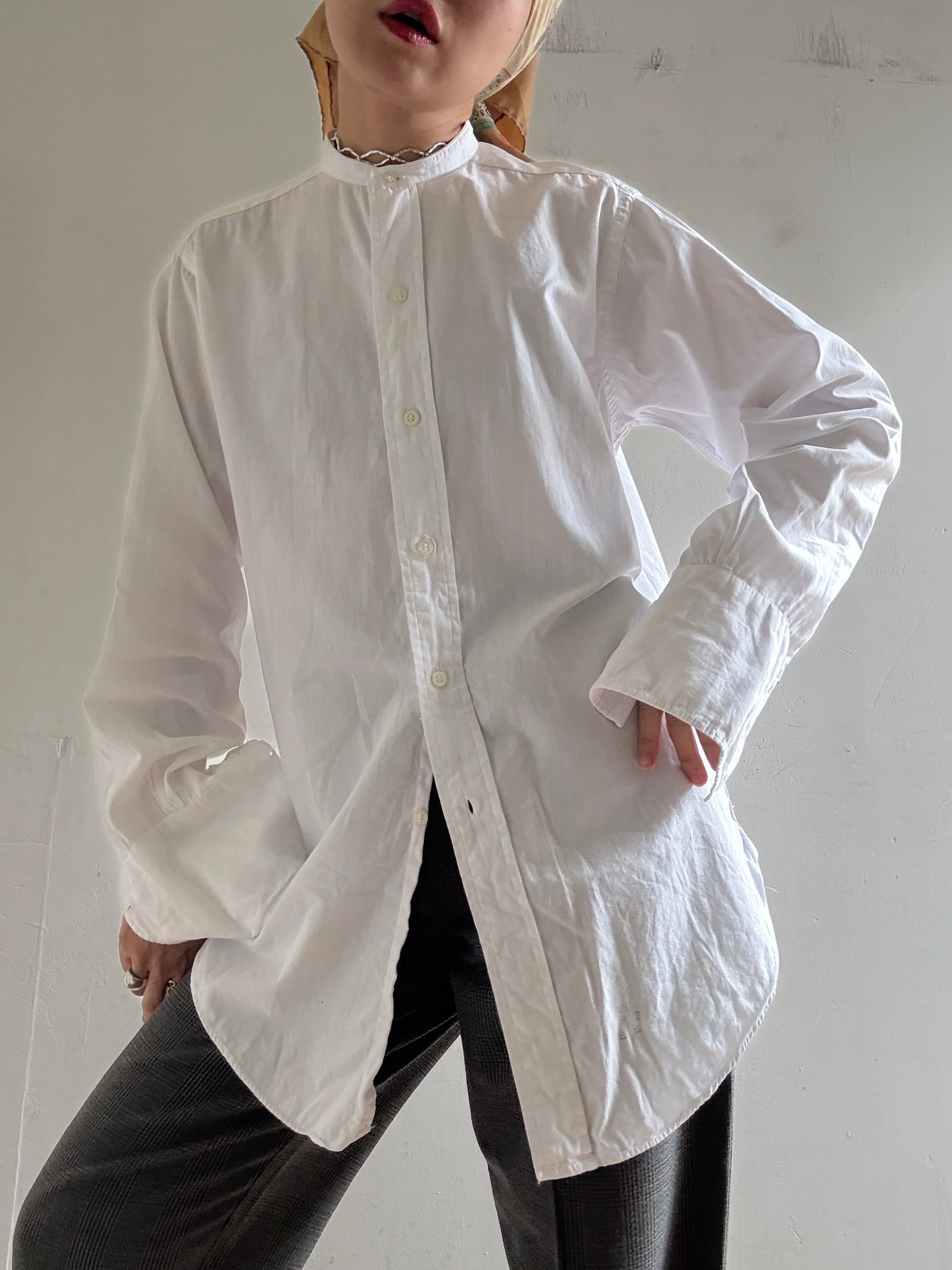 50-60s Collarless Cotton Dress Shirt