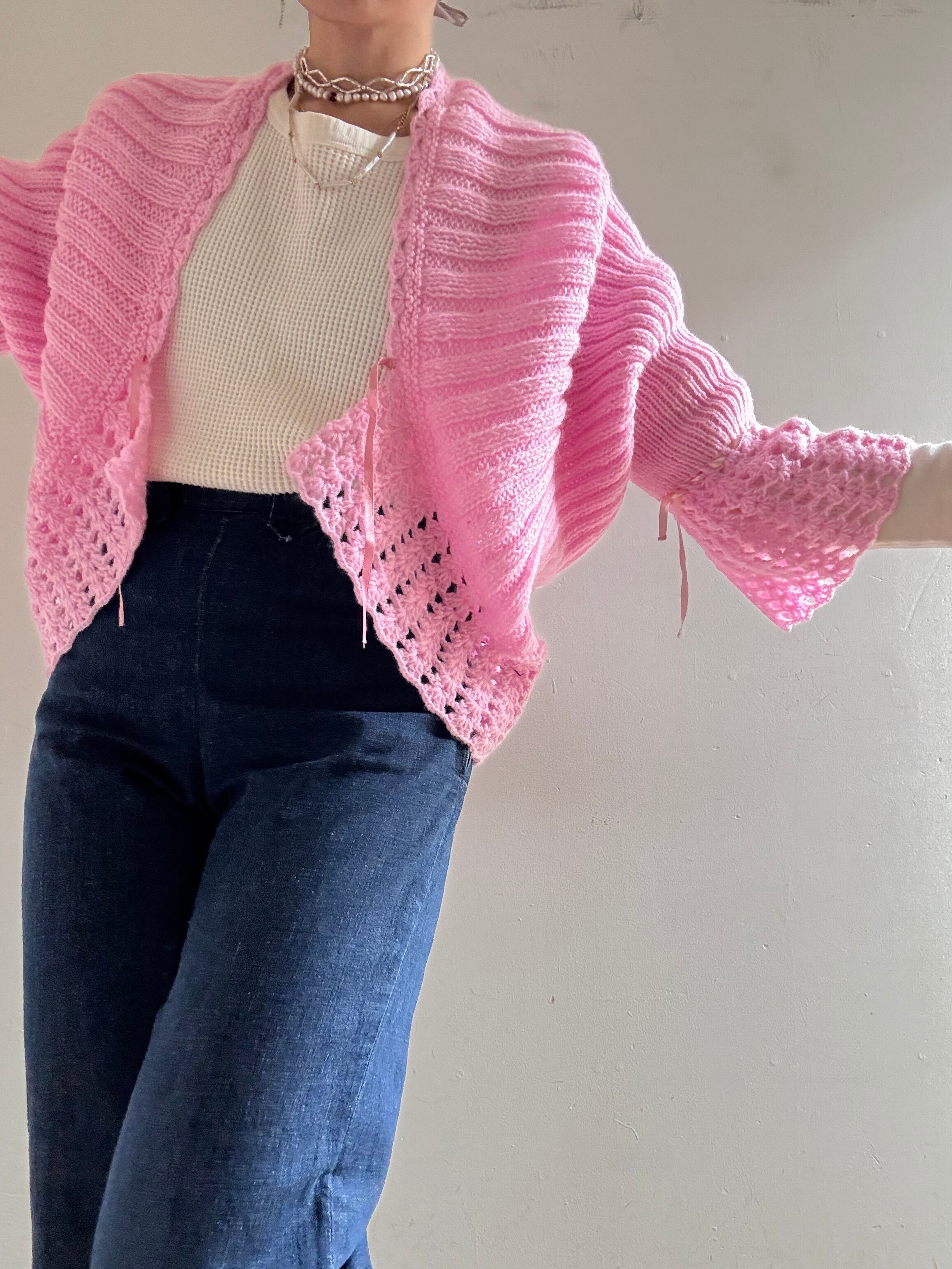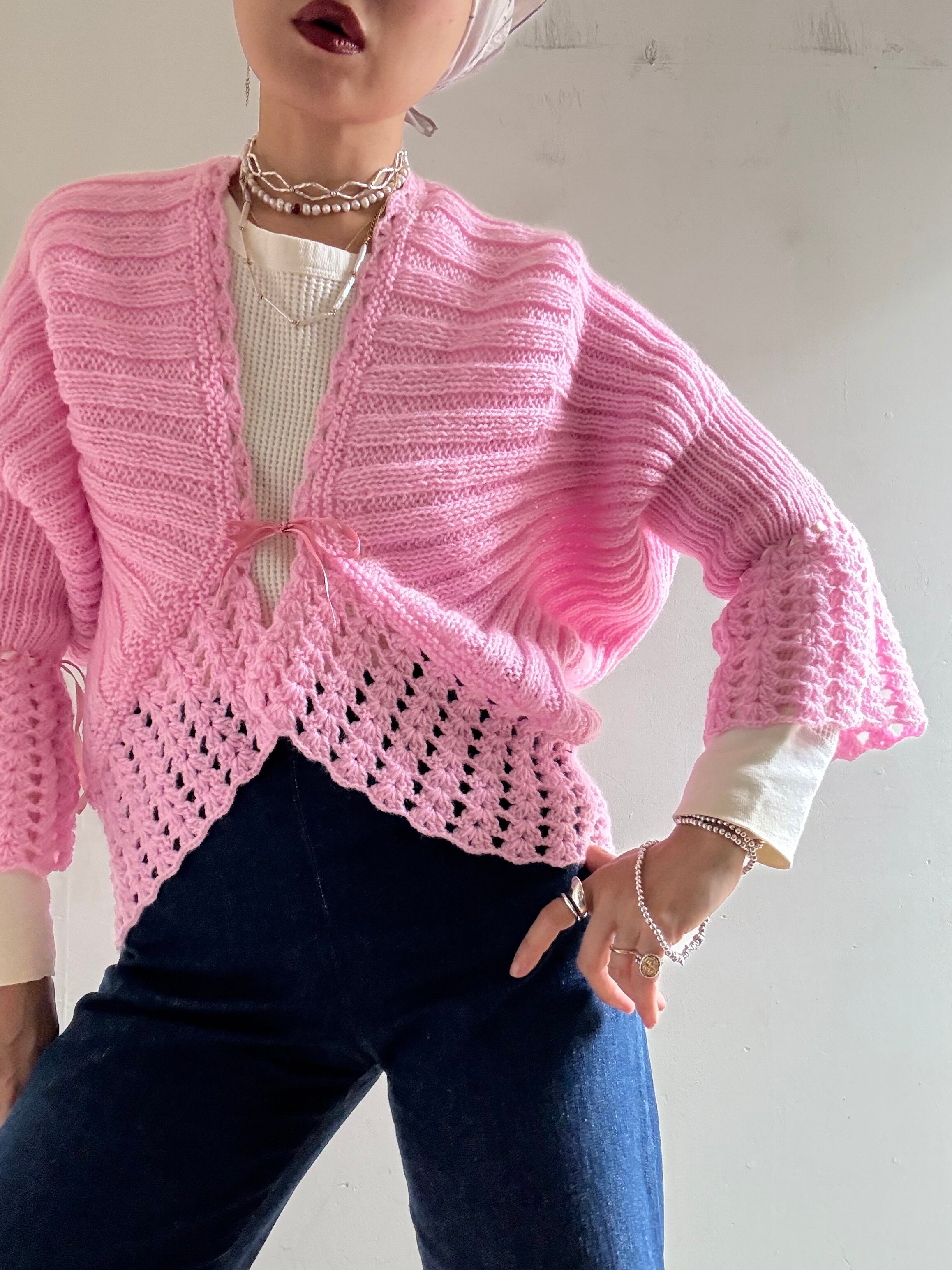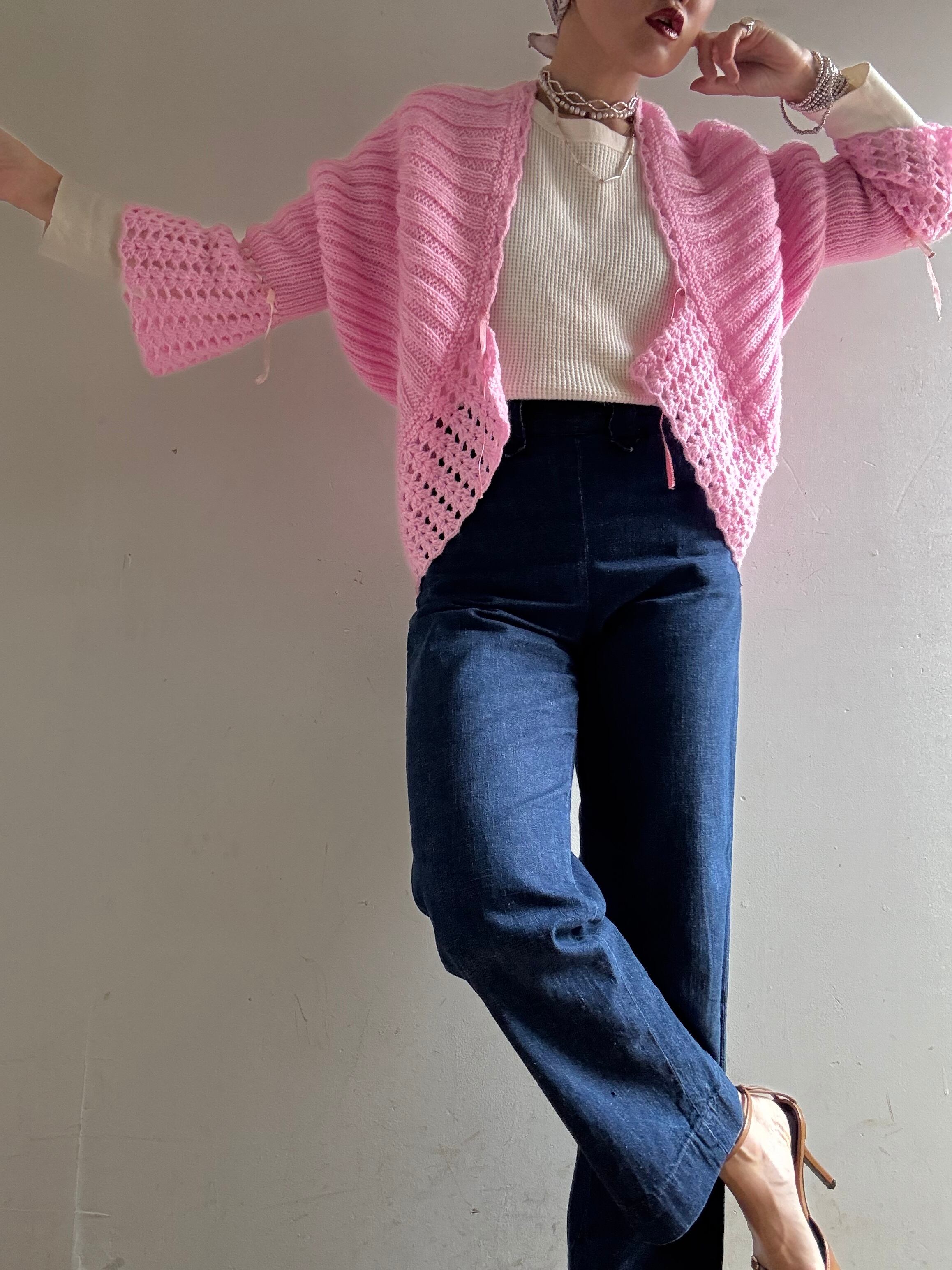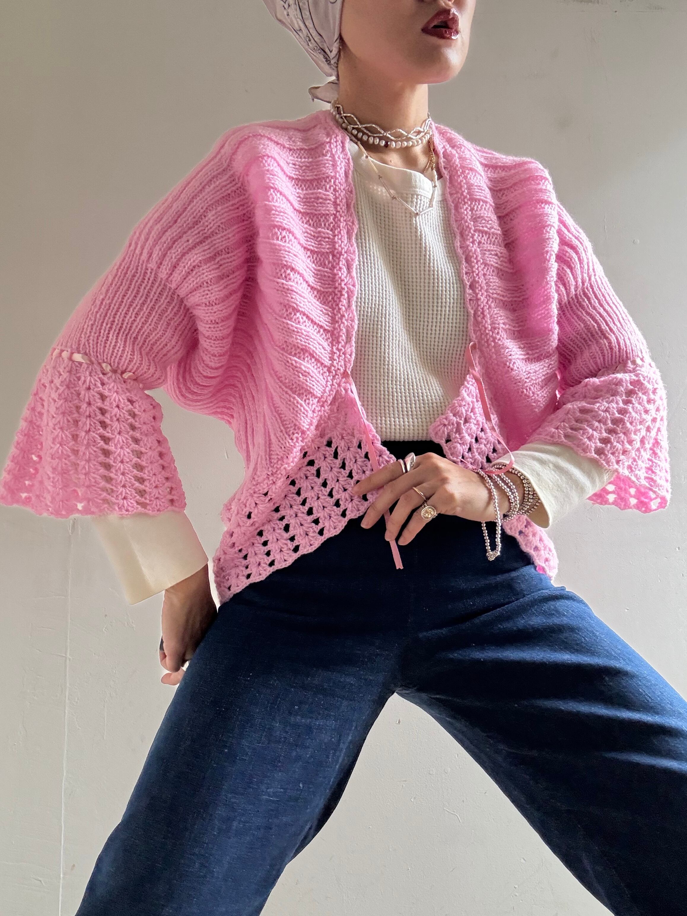 70s Vintage Flare Sleeves Knit Cardigan