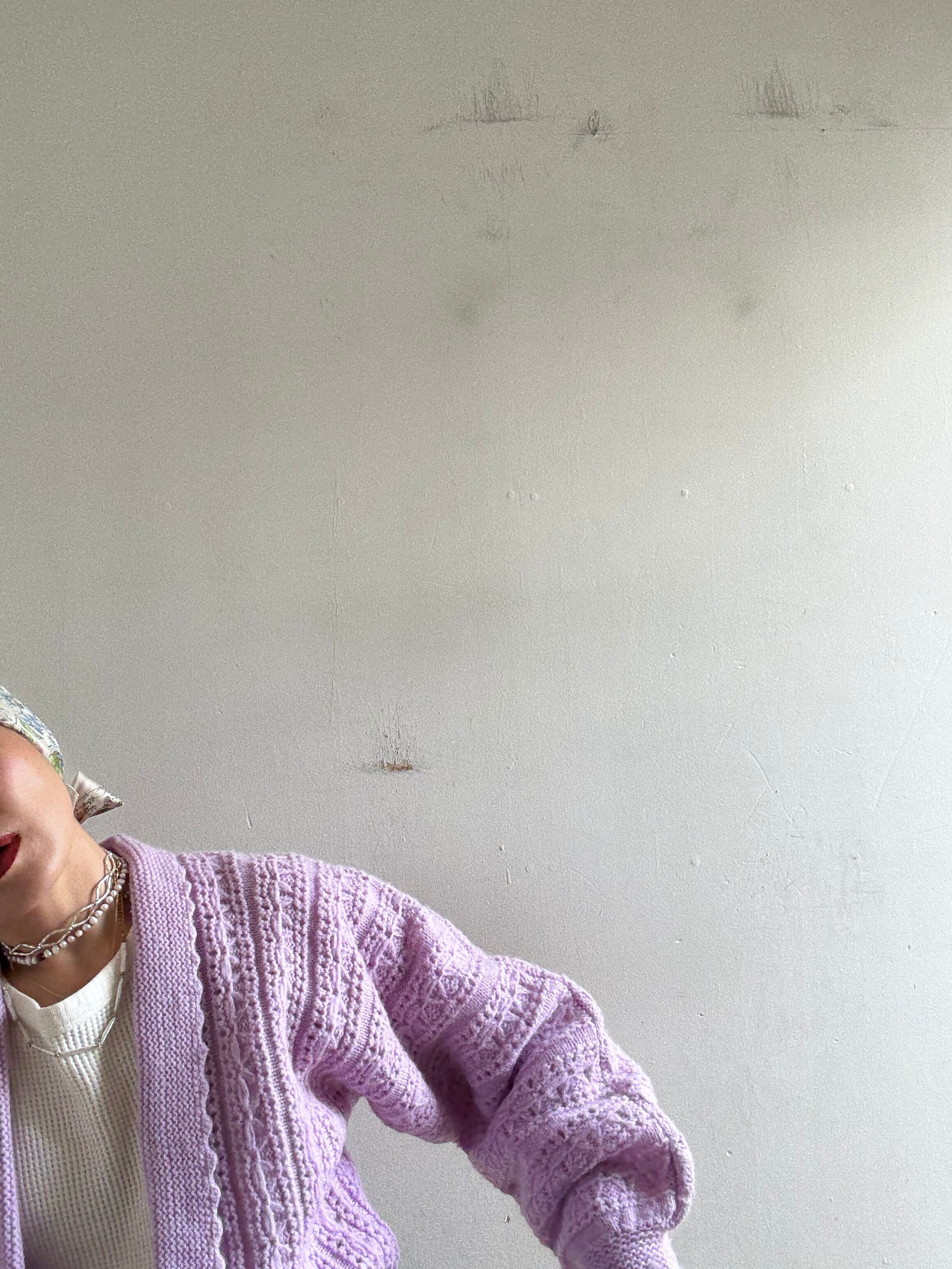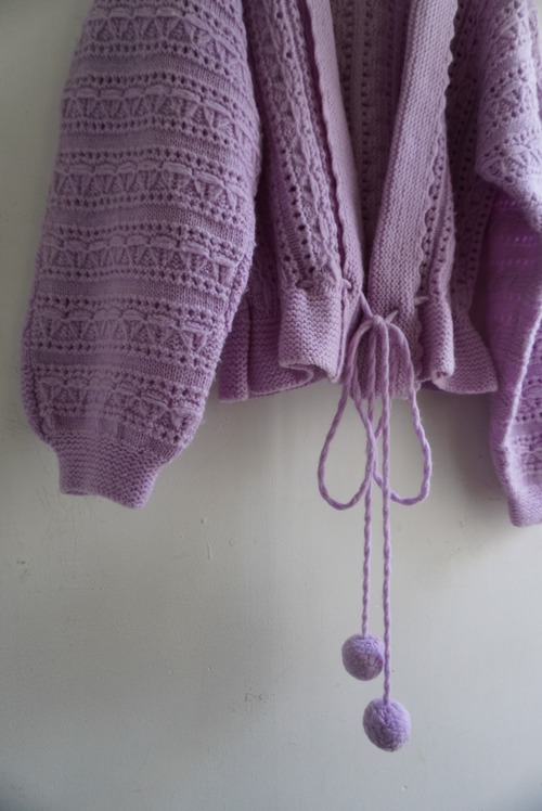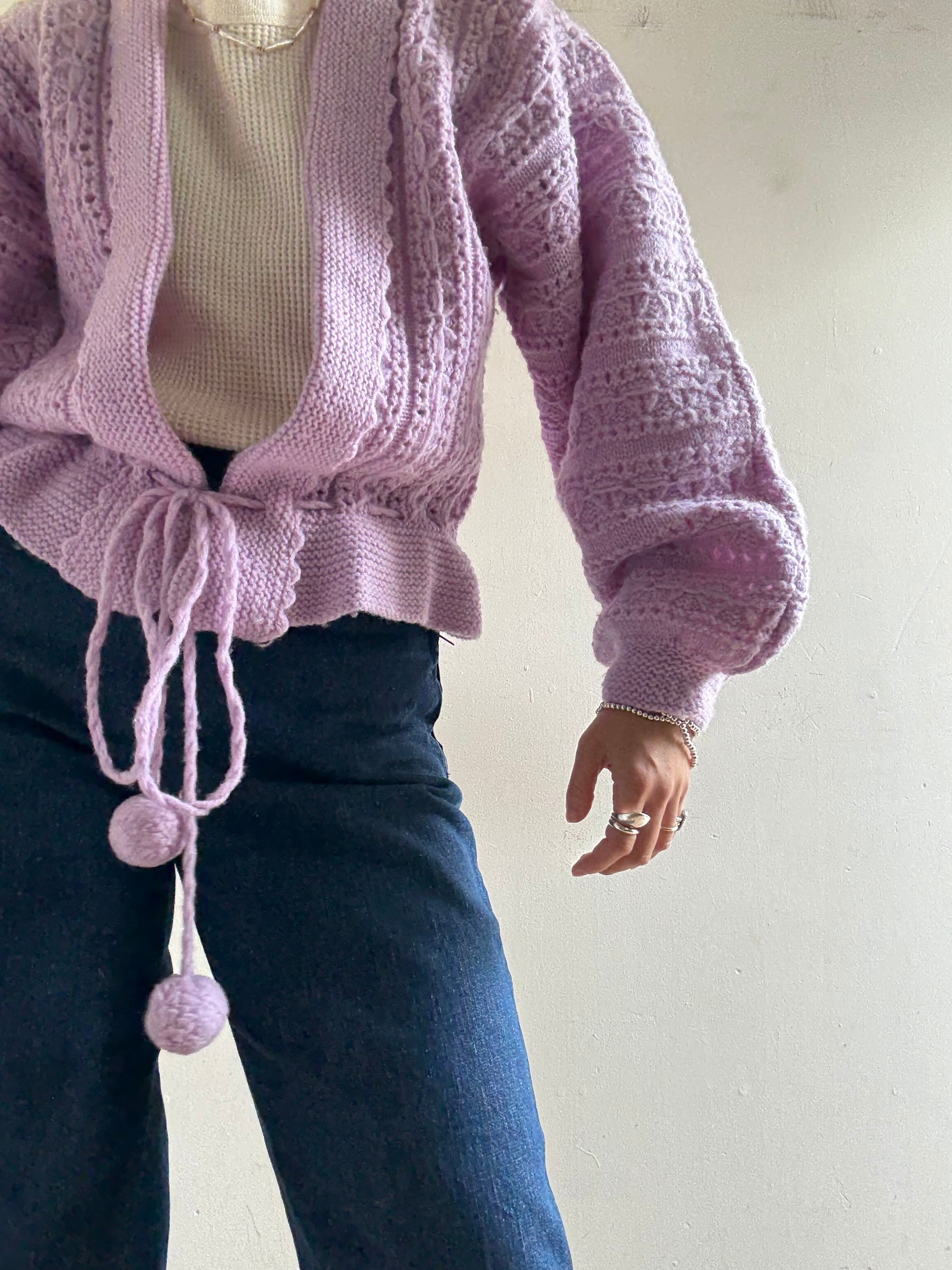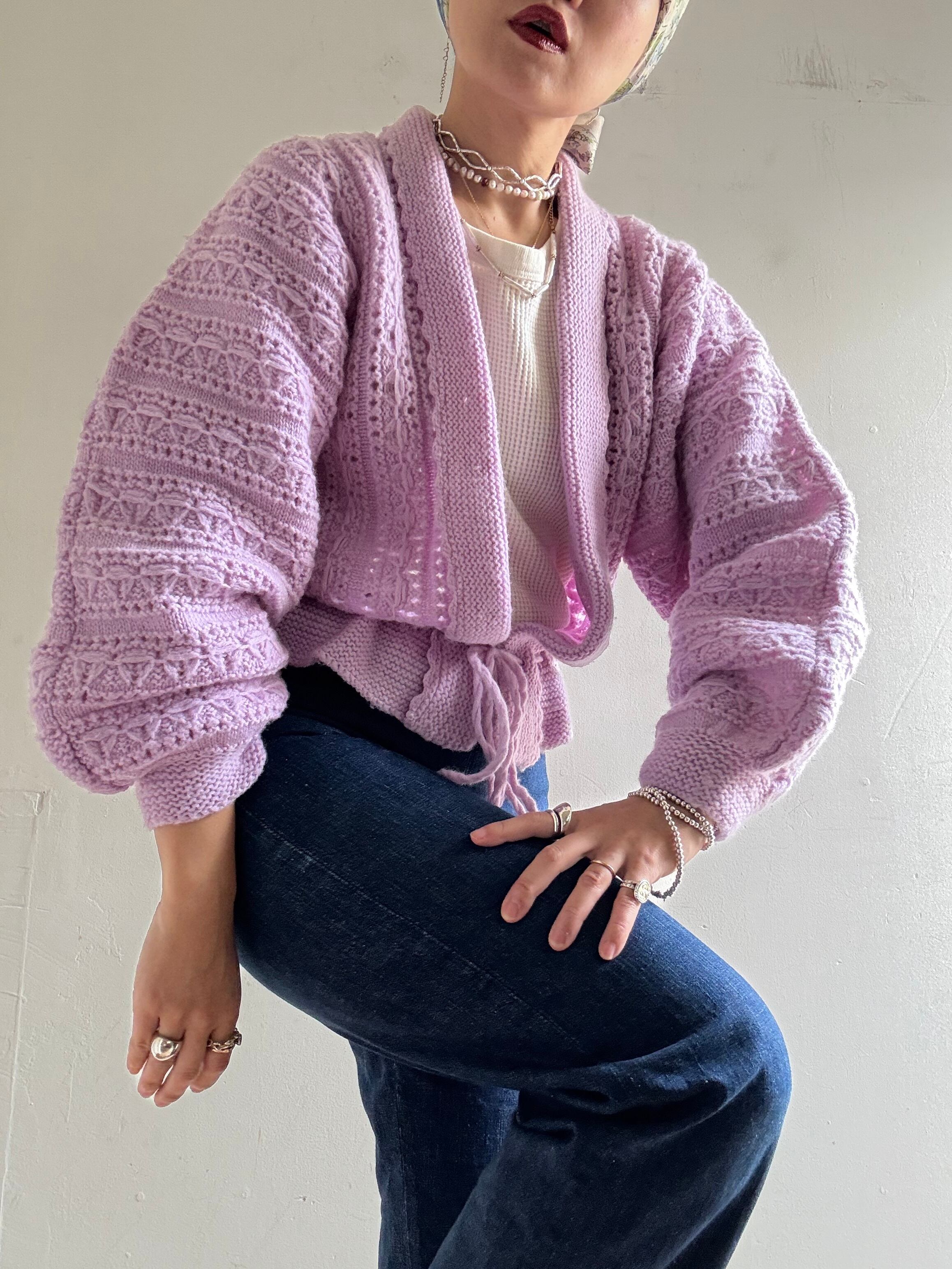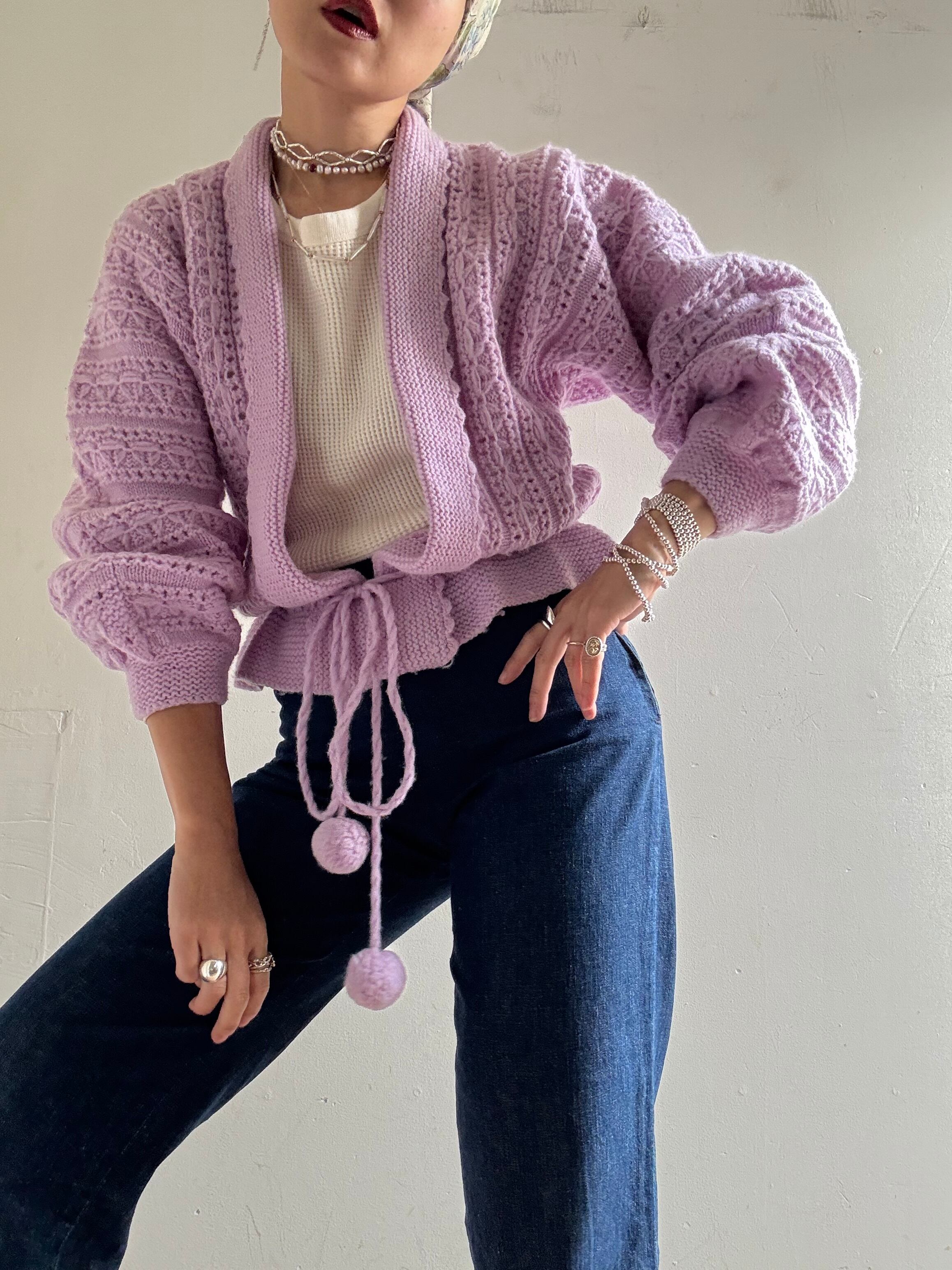 70s Vintage Volume Sleeves Ponpon Knit Cardigan