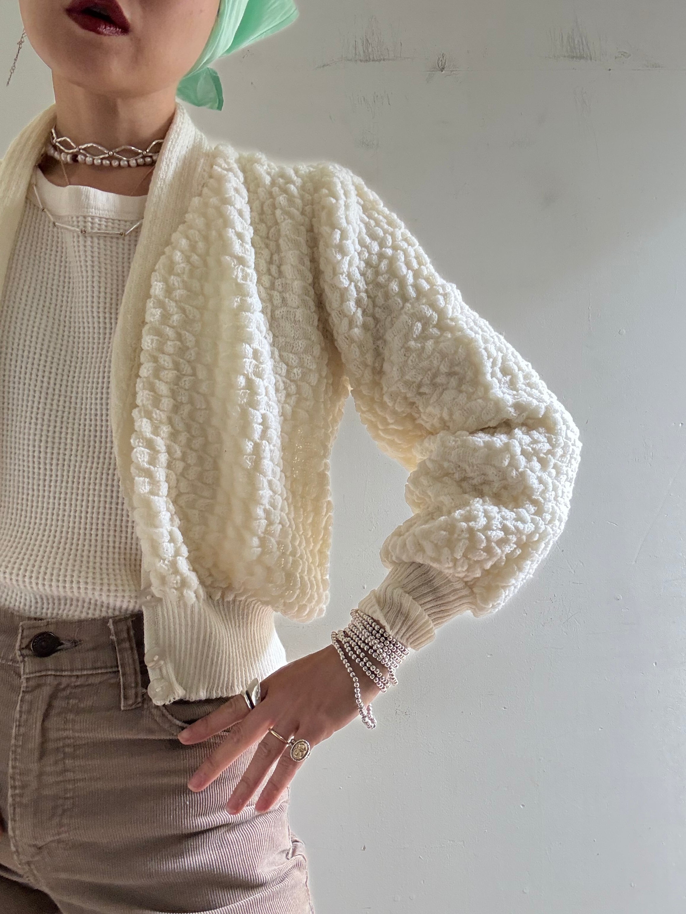 70s Vintage Volume Sleeves Knit Cardigan