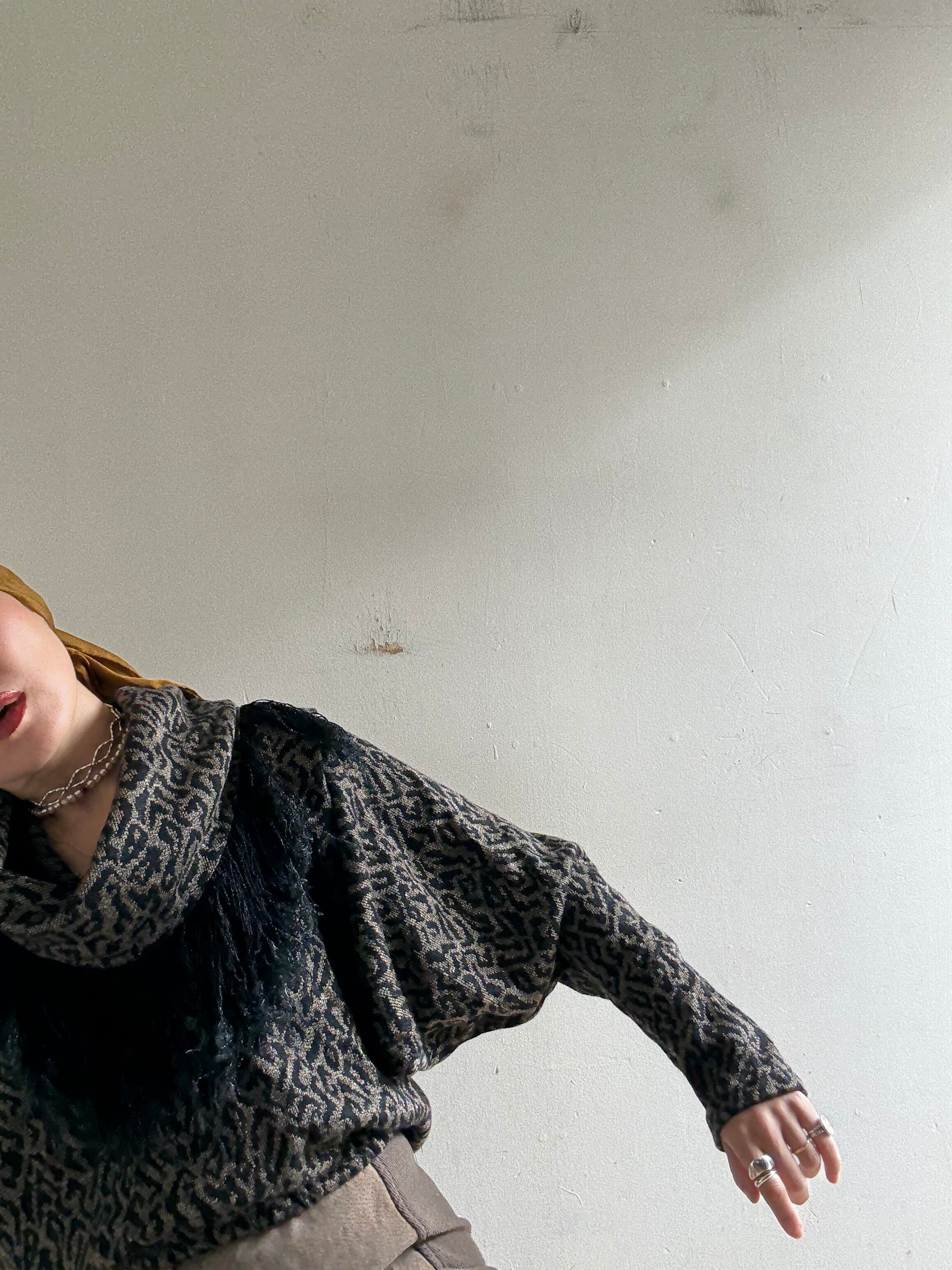 1980s Vintage Looseneck Animal Pattern Design Knit Top