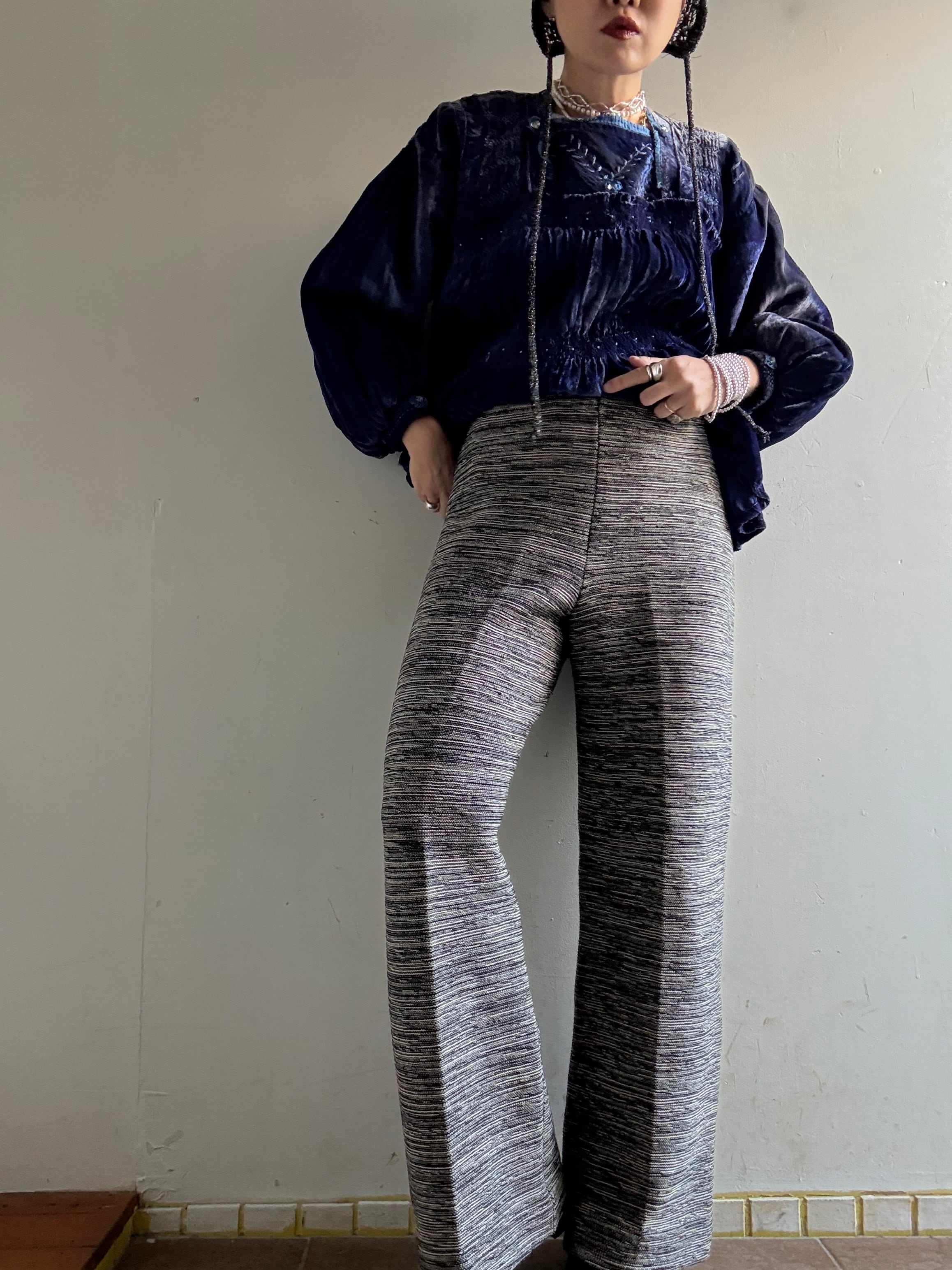 1970s Vintage Elastic Knit Flared Pants