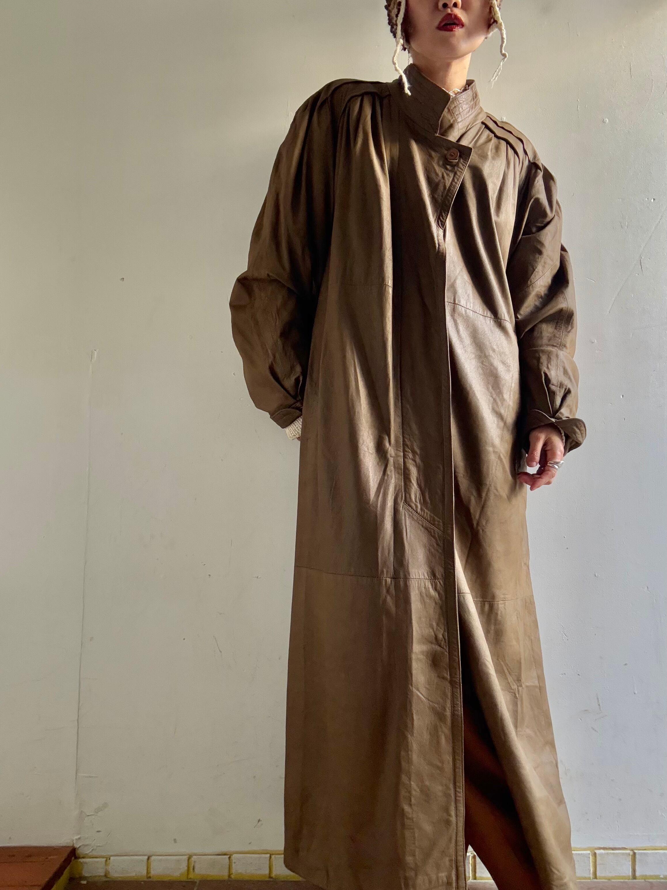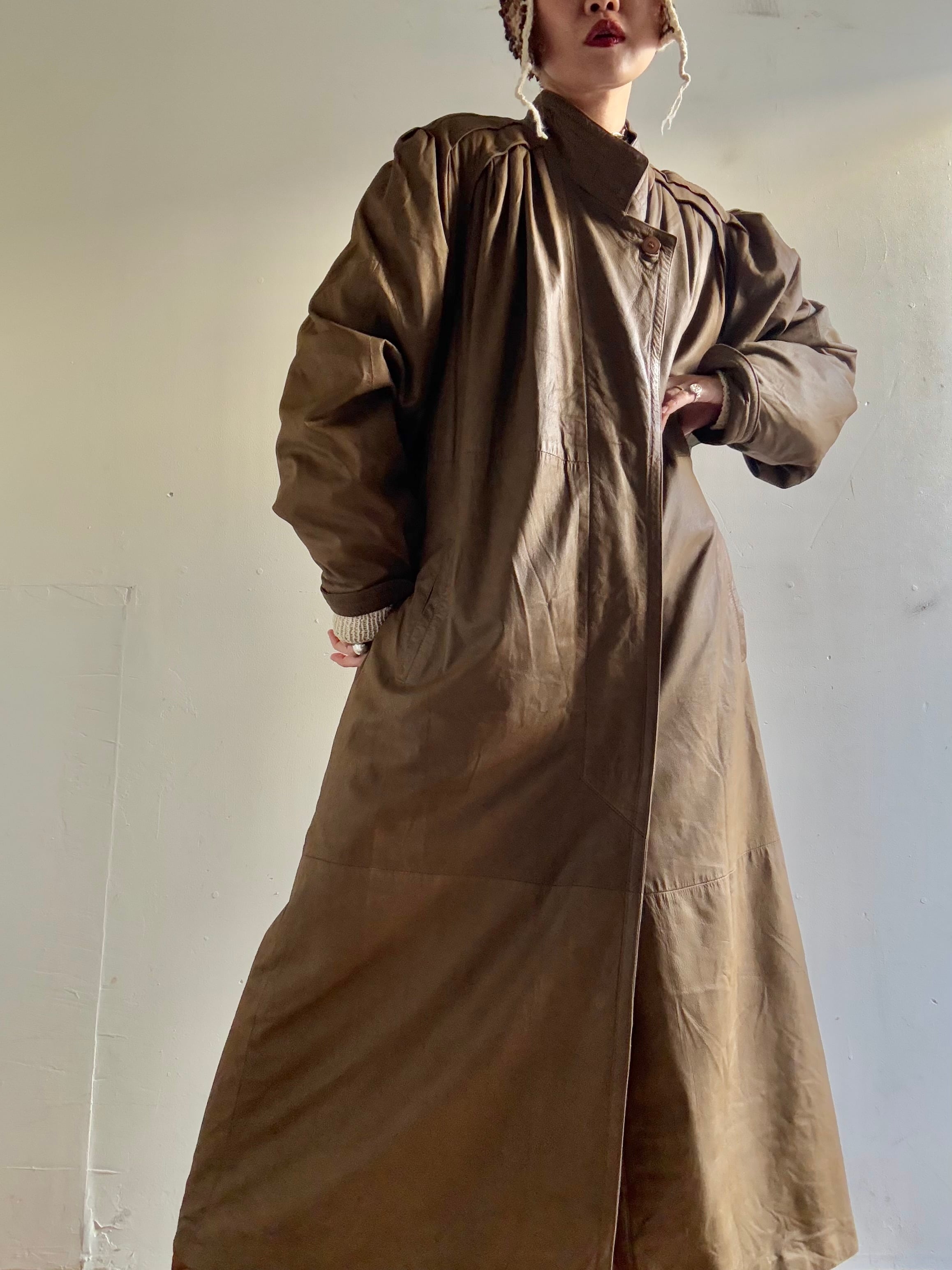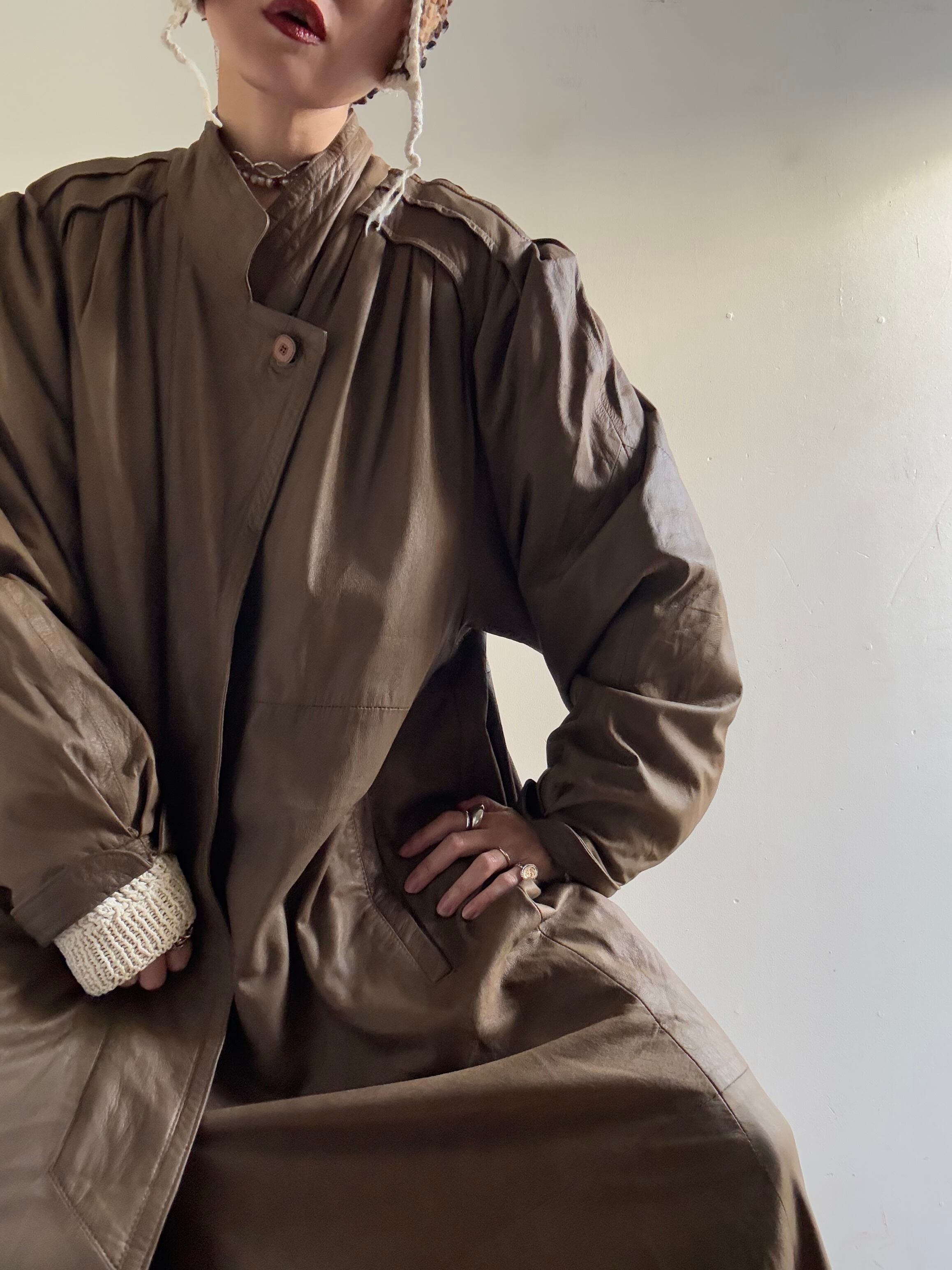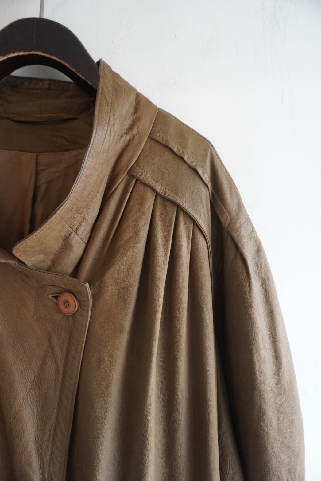 1980s Vintage Highneck Leather Puff Sleeves Coat