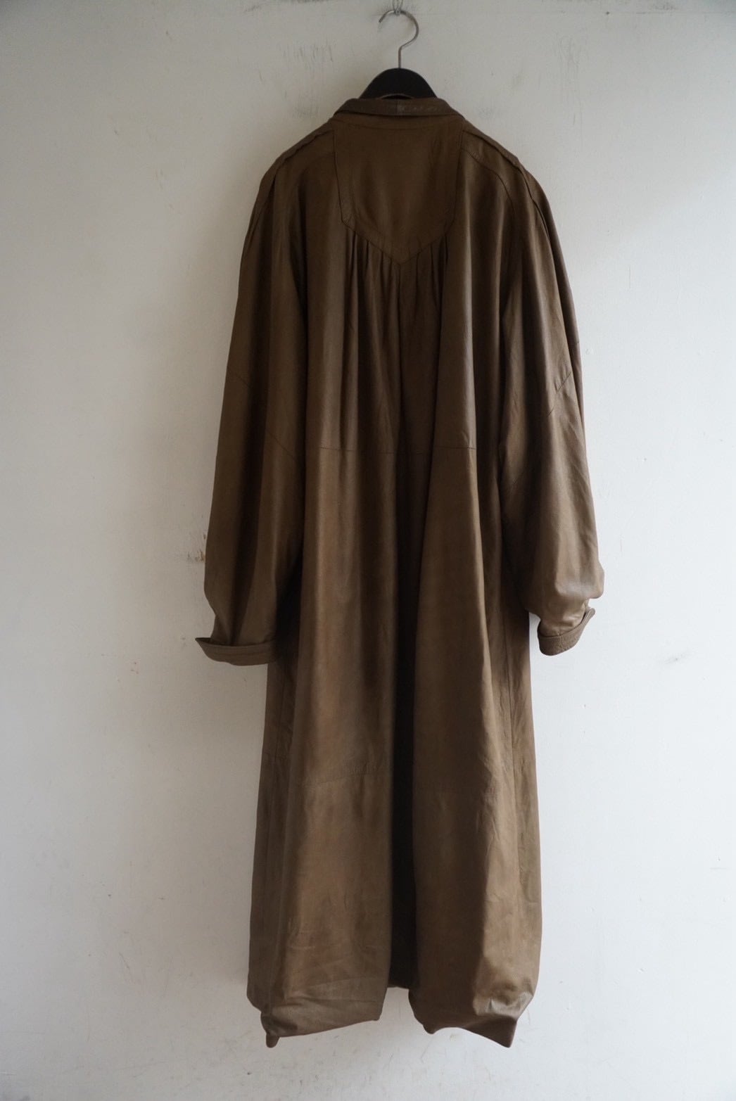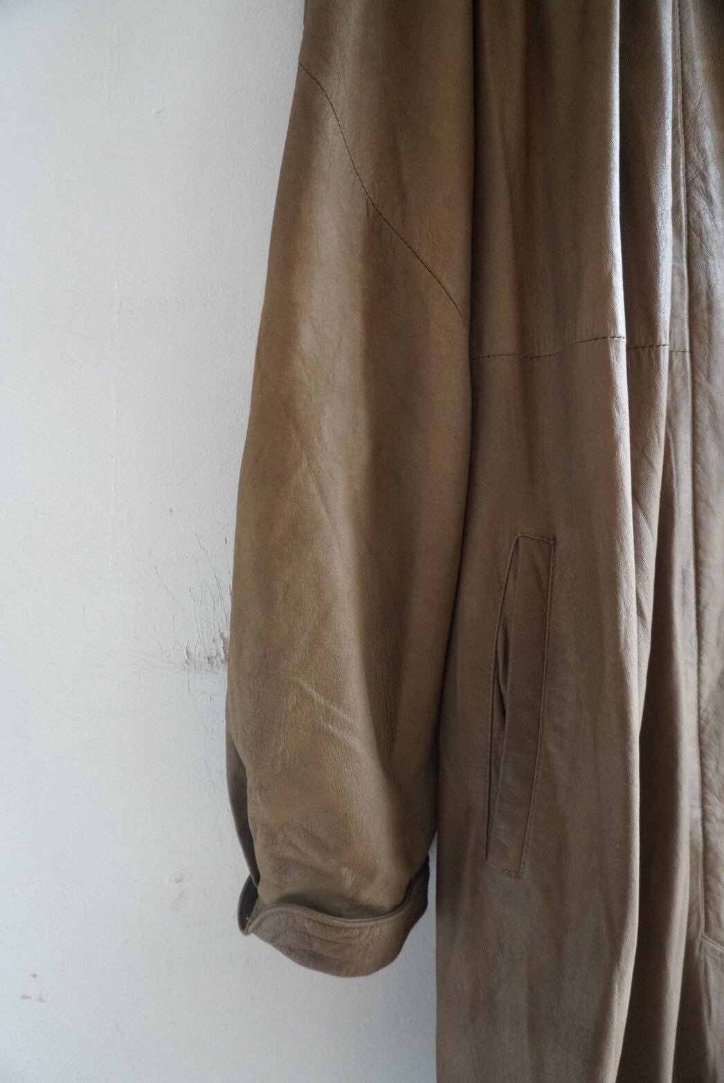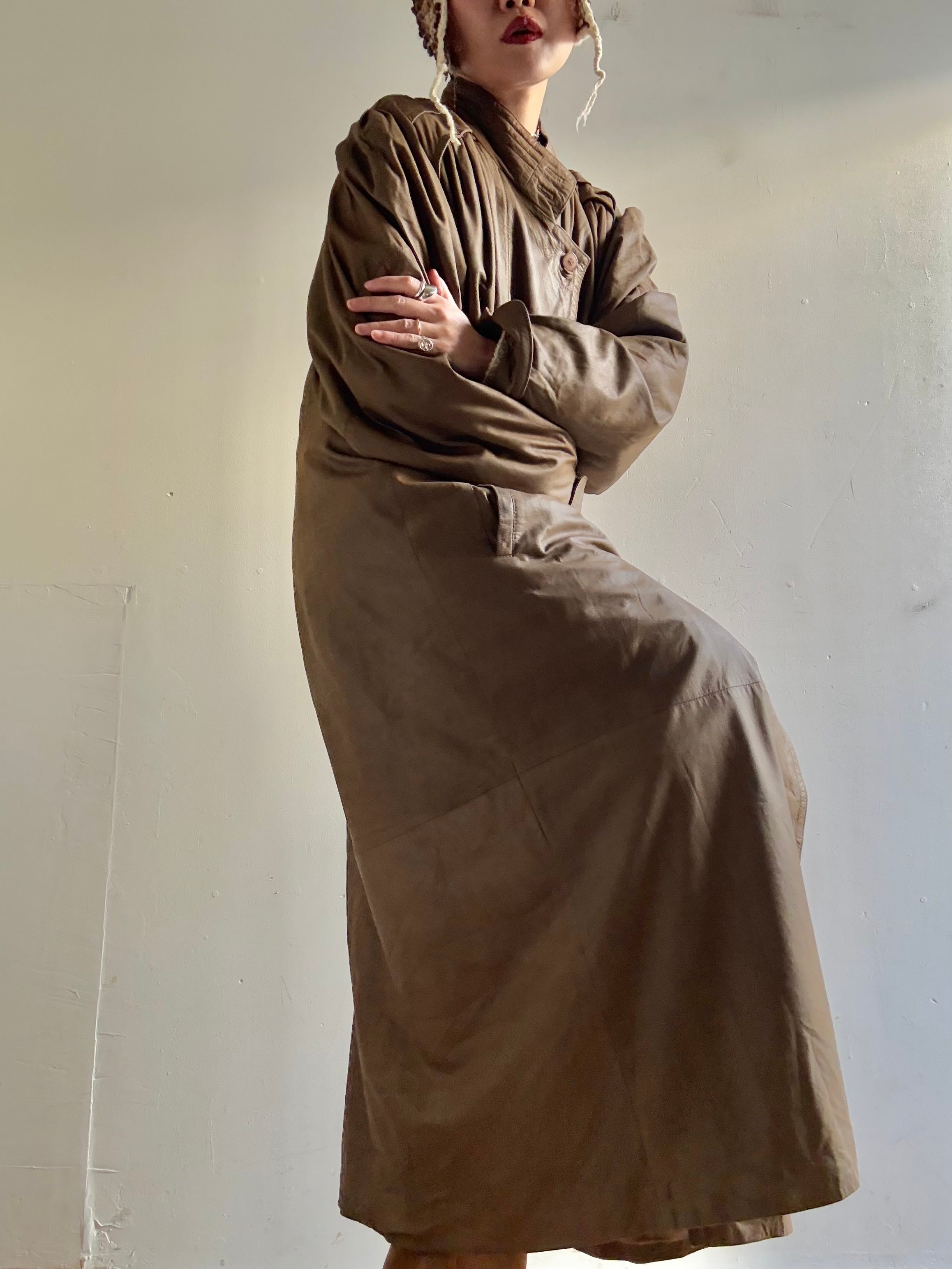 1980s Vintage Highneck Leather Puff Sleeves Coat