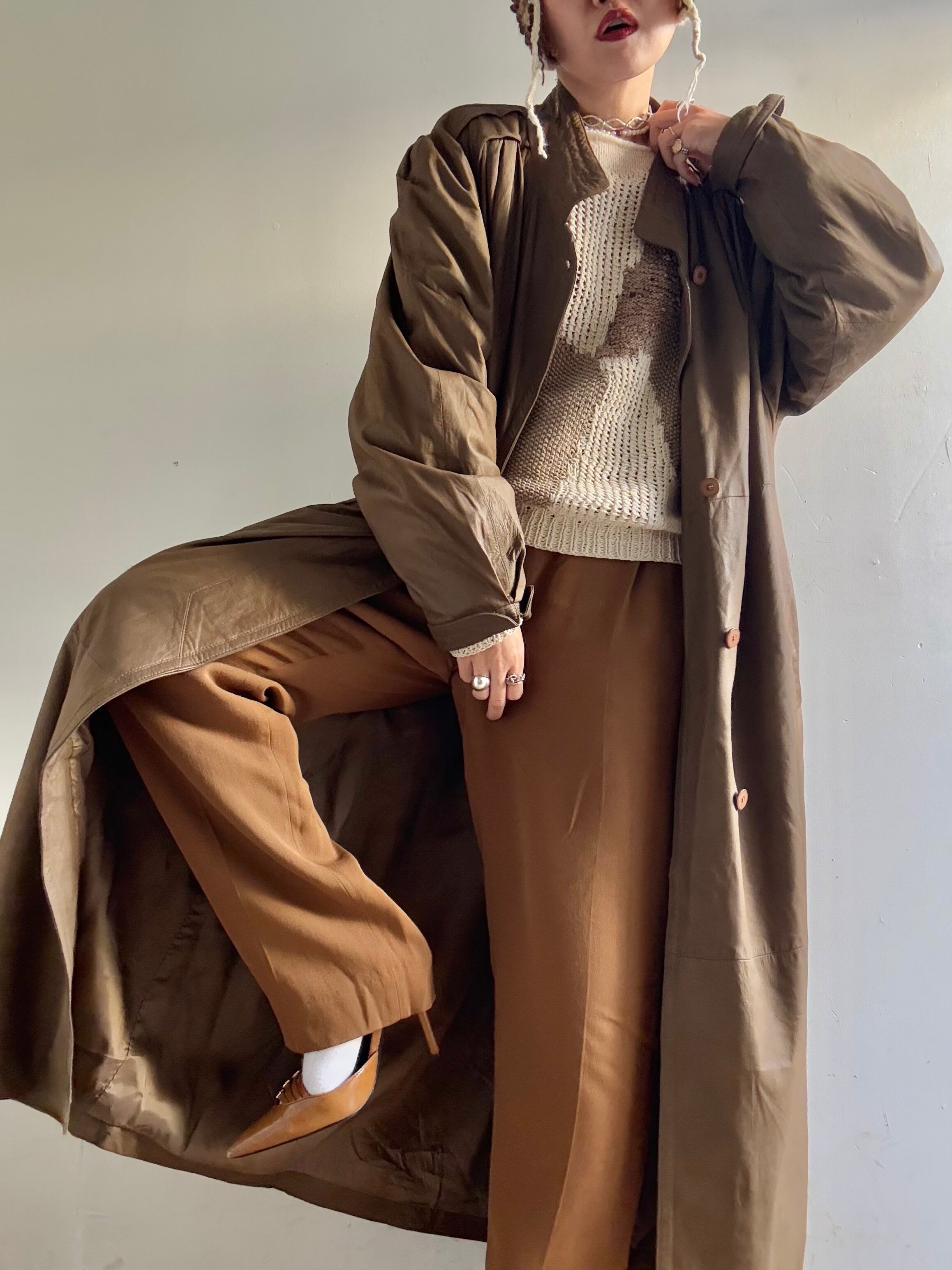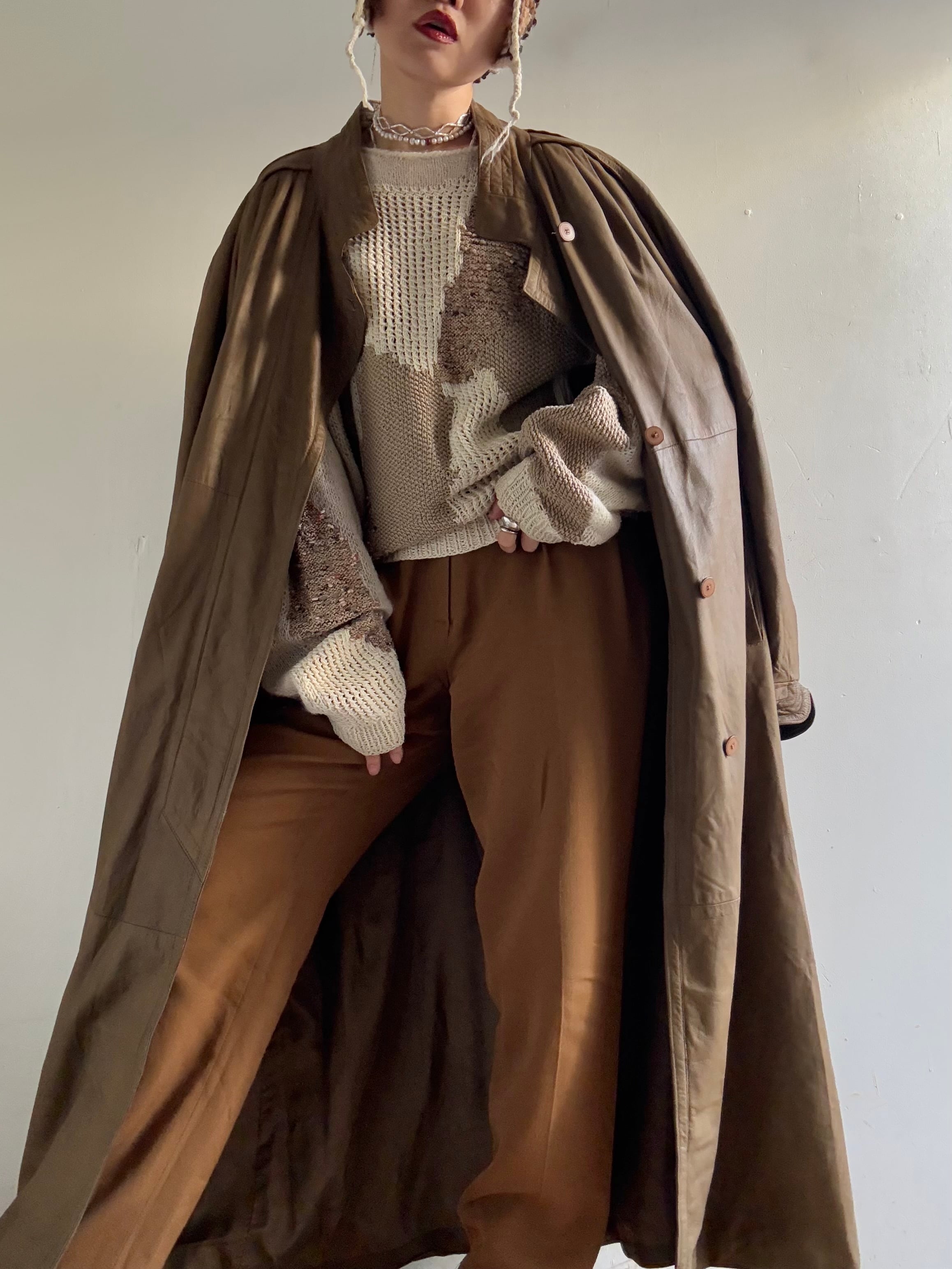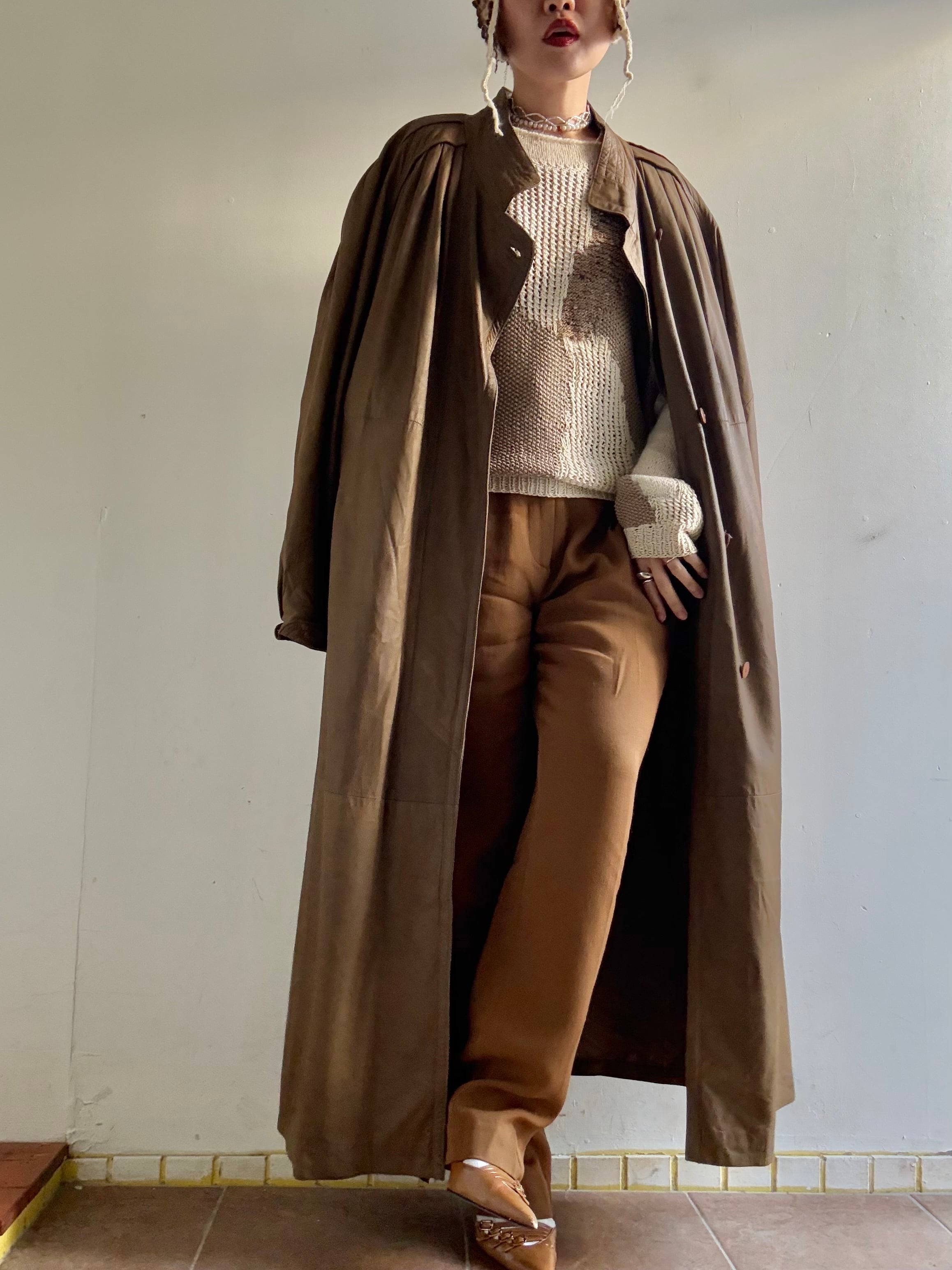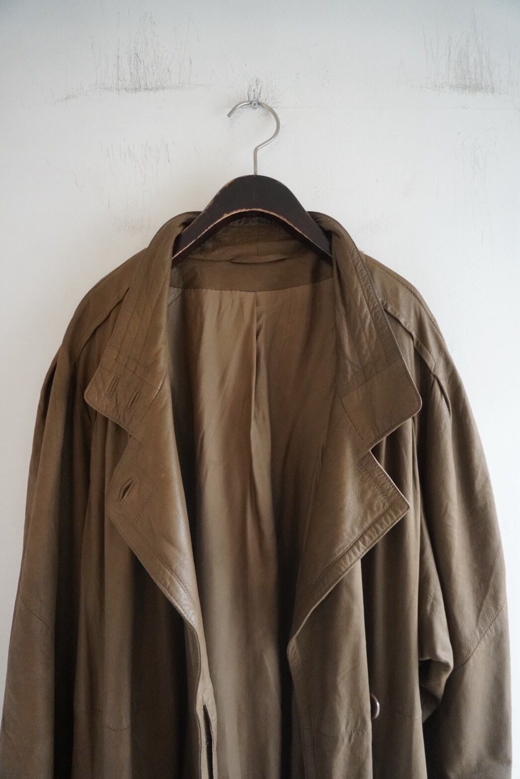 1980s Vintage Highneck Leather Puff Sleeves Coat