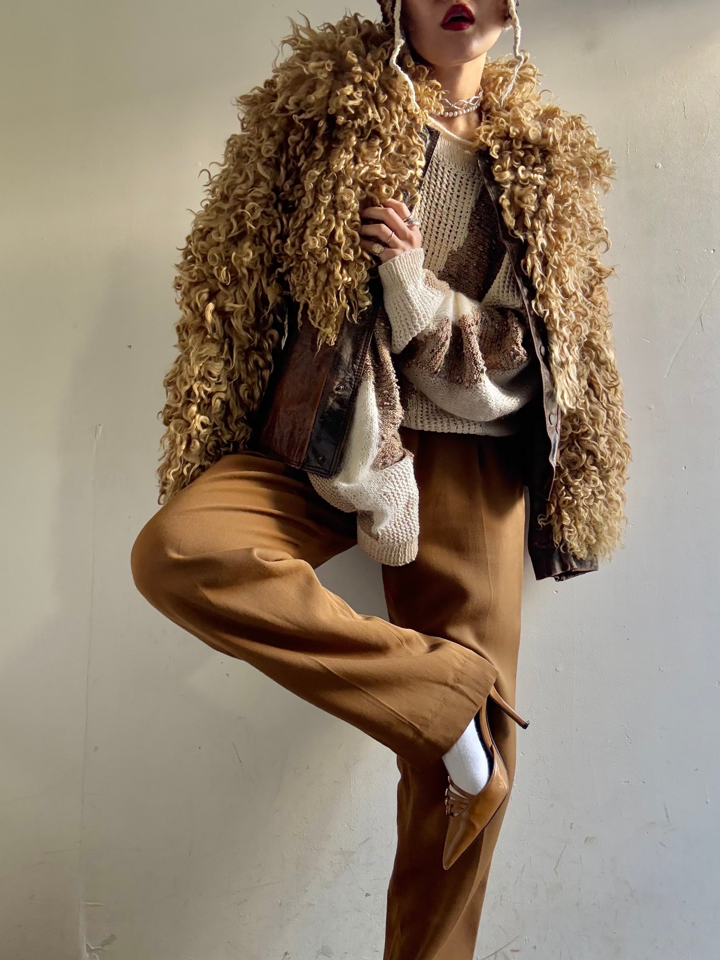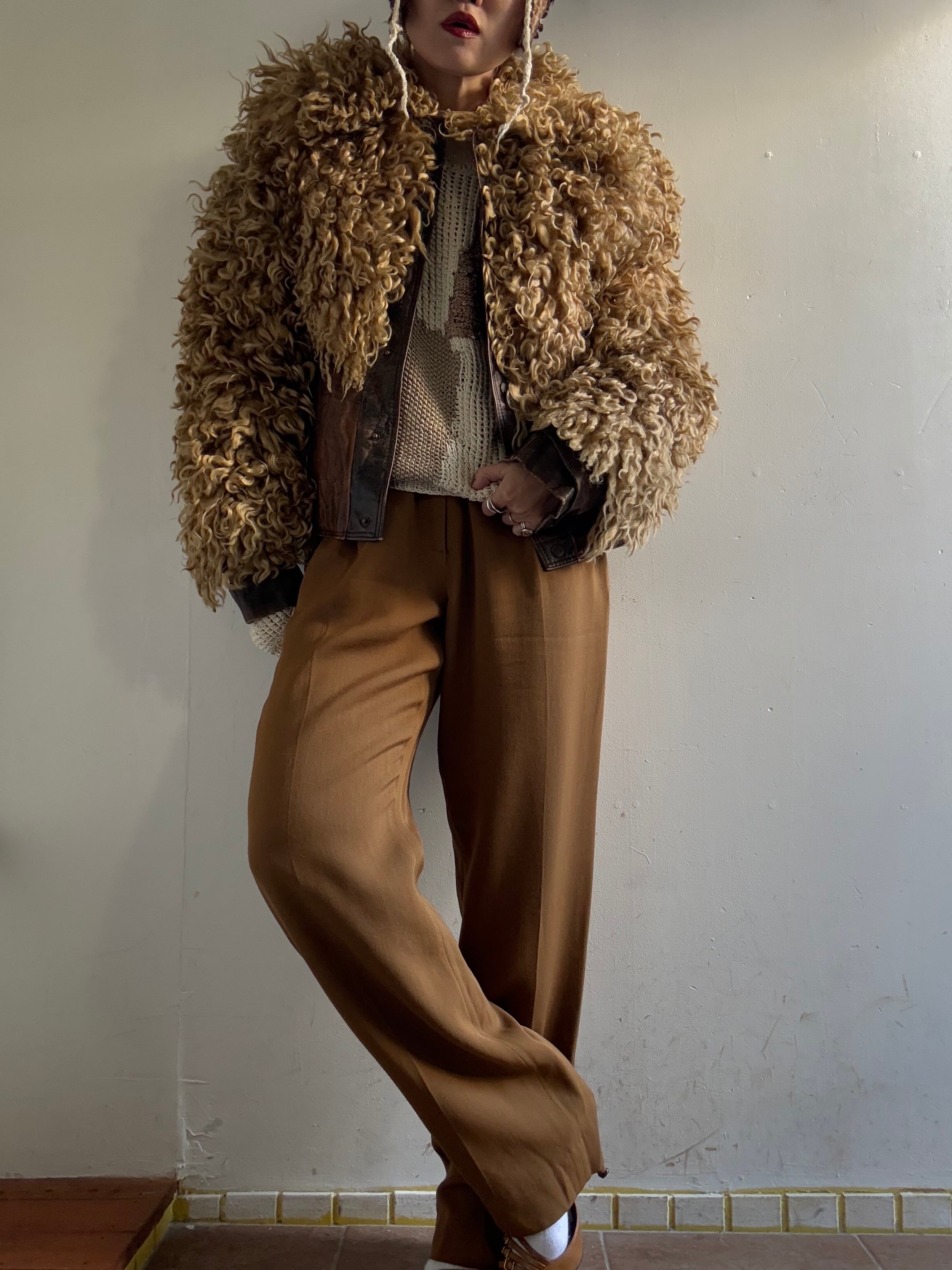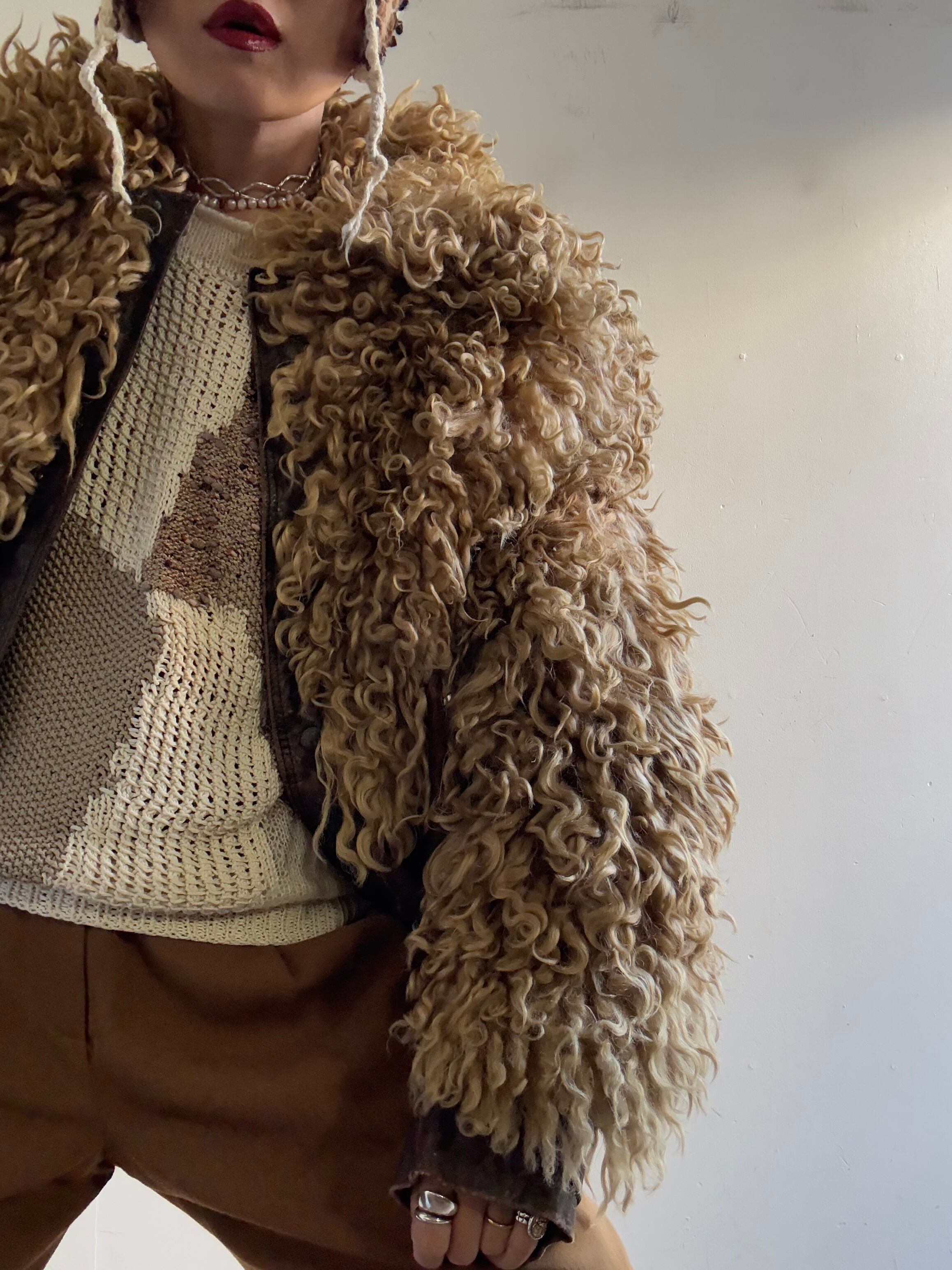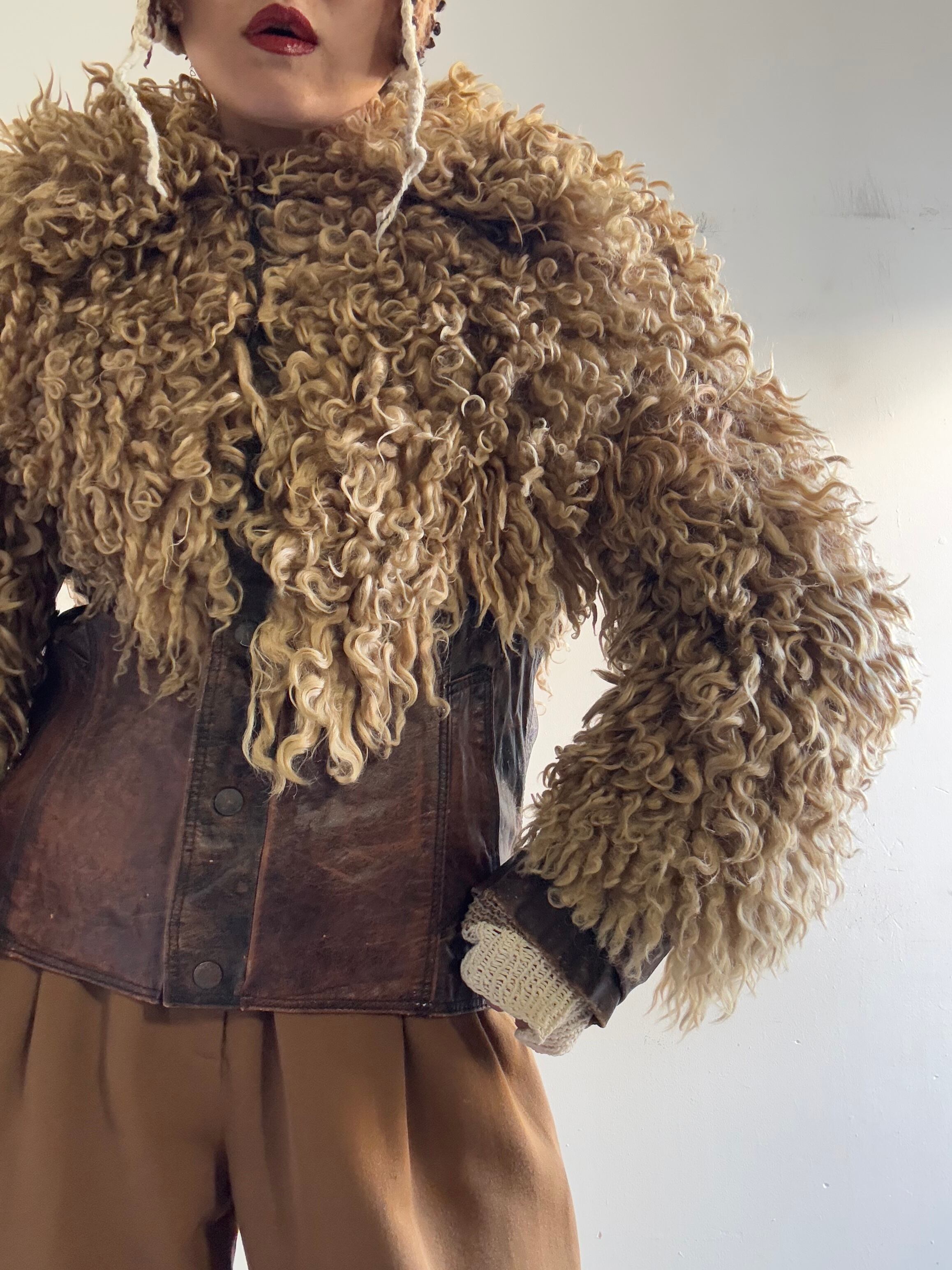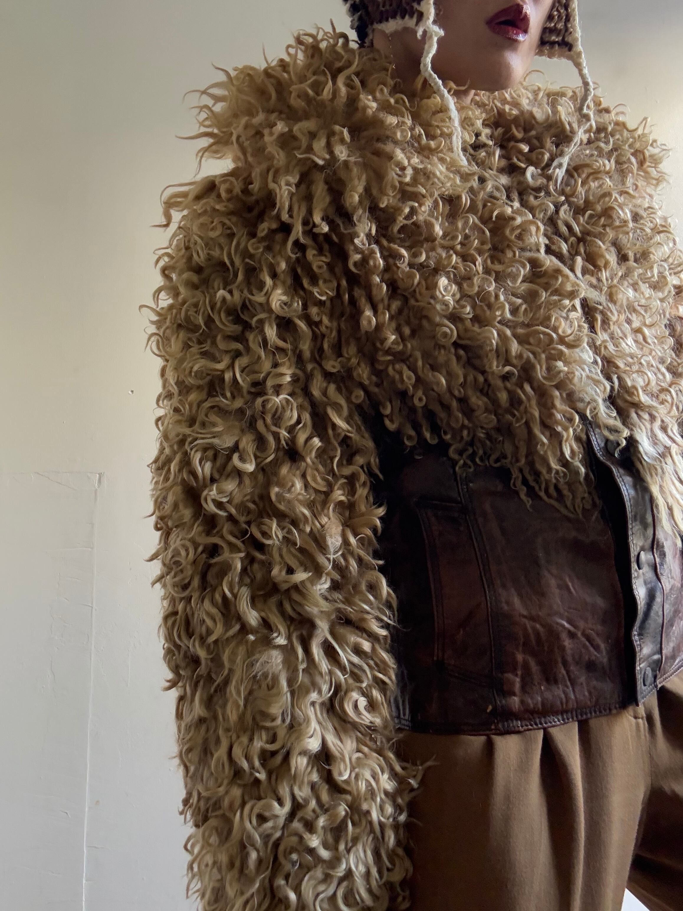 1970s Vintage Poodle Fur/Leather Blouson