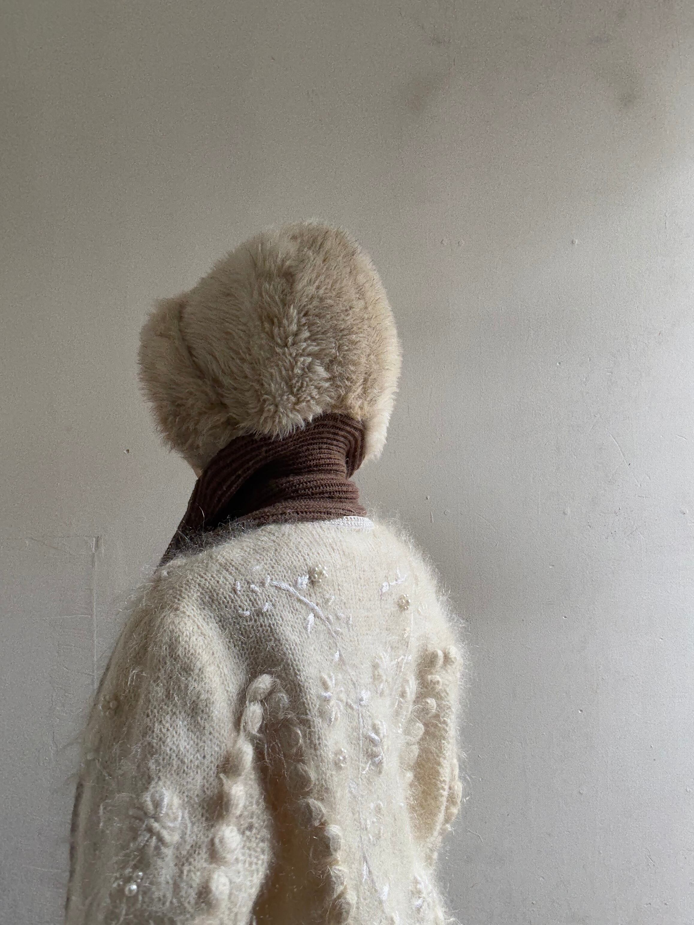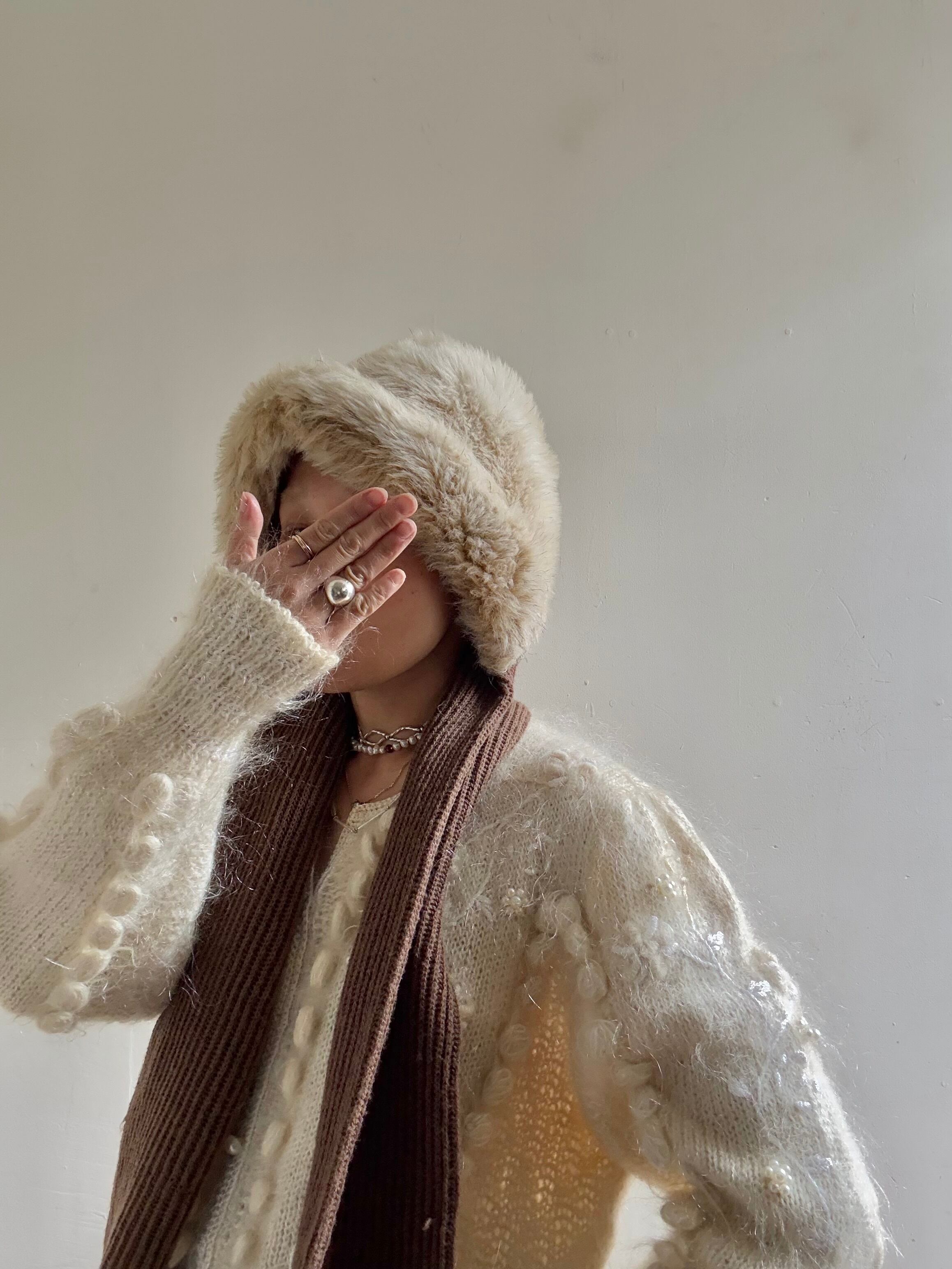 Vintage Eco Fur/ Knit Hoodie Muffler