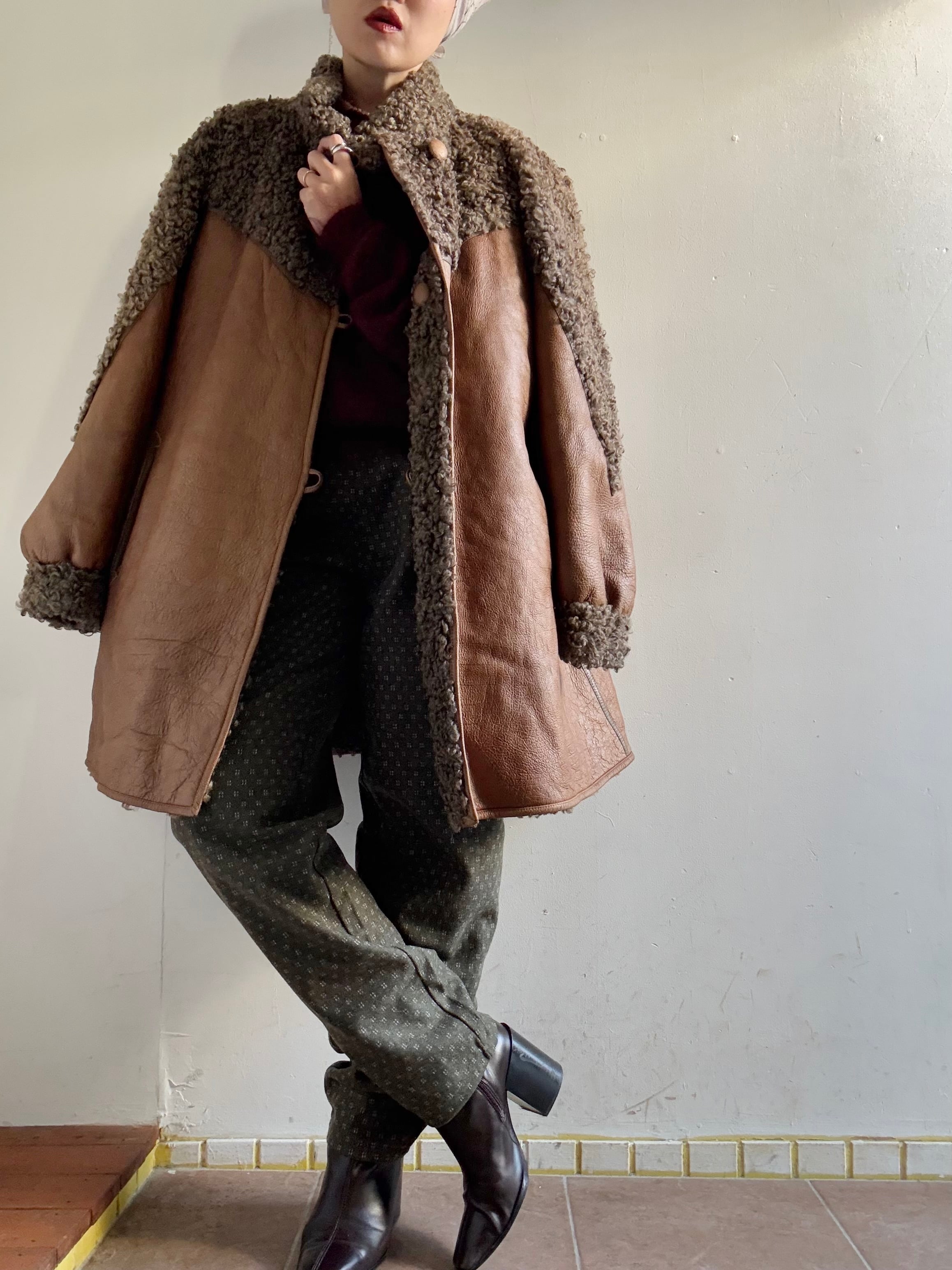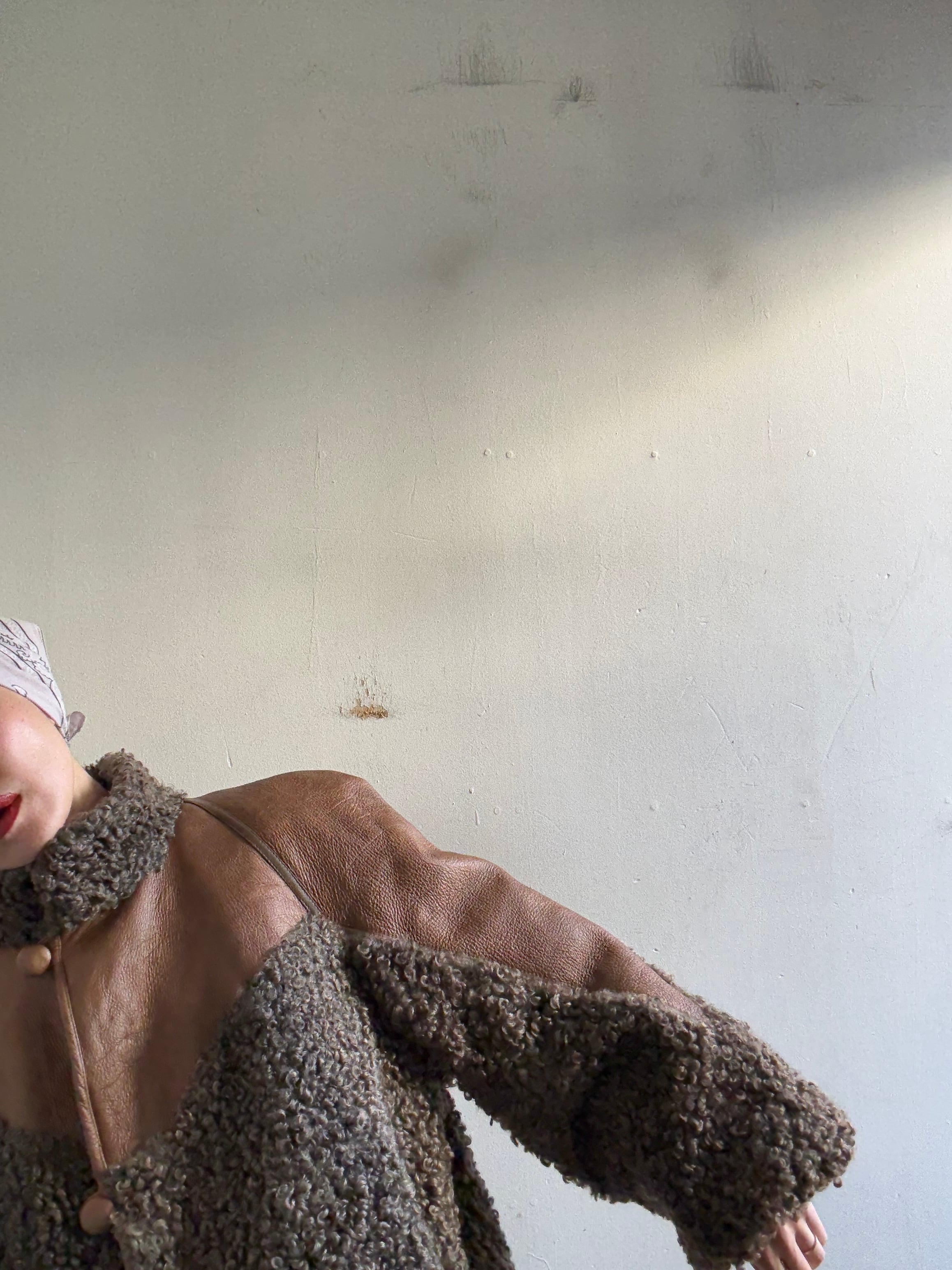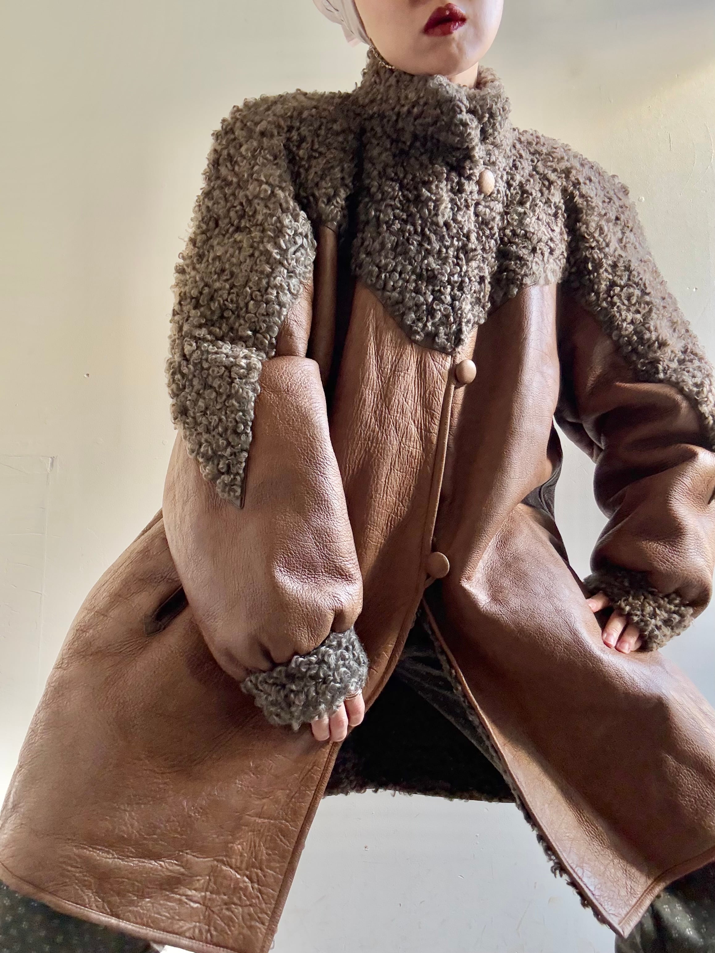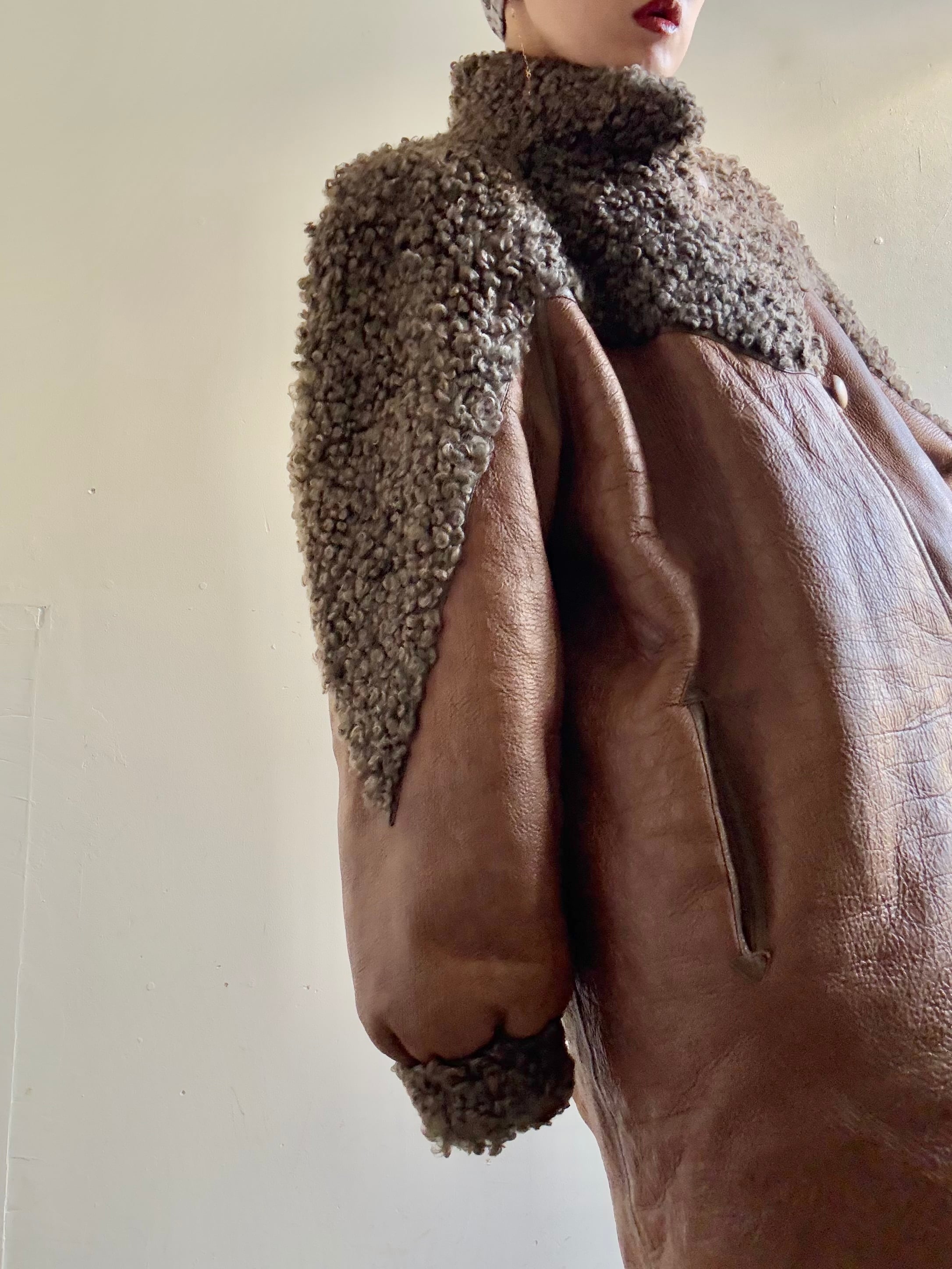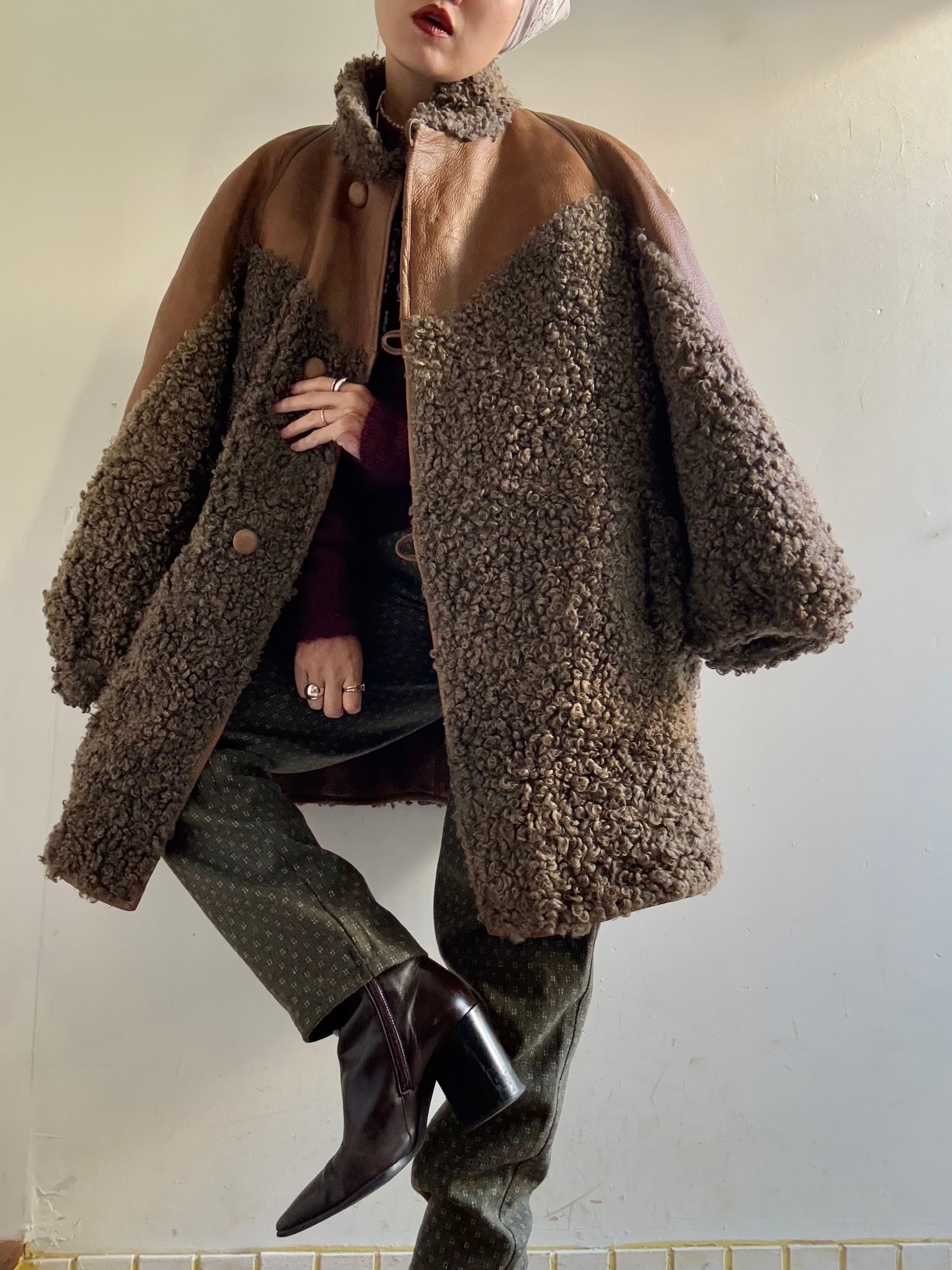 70-80s Vintage Reversible Poodle Fur Mouton Coat
