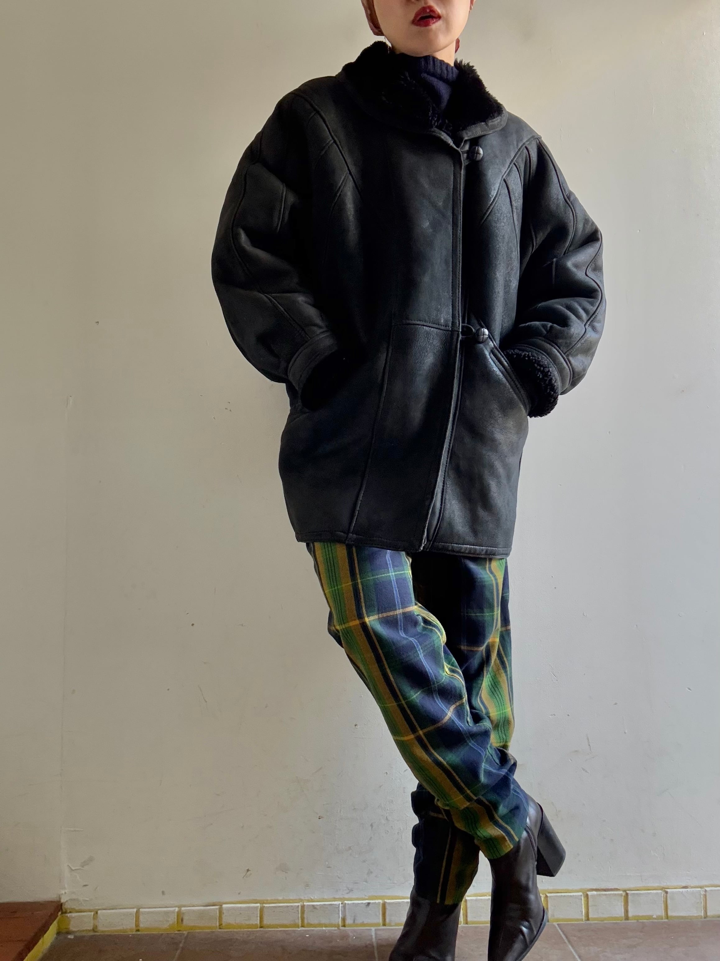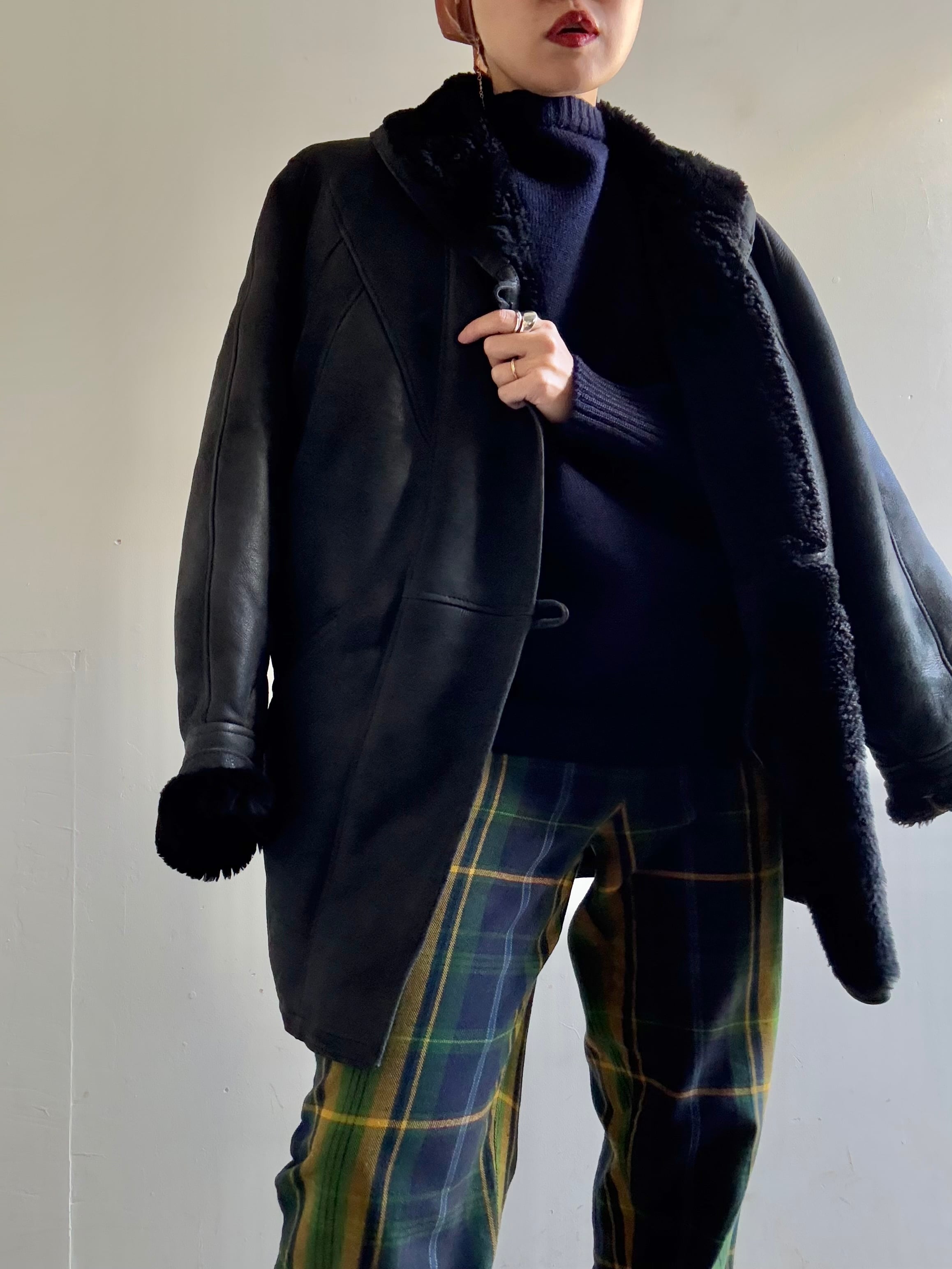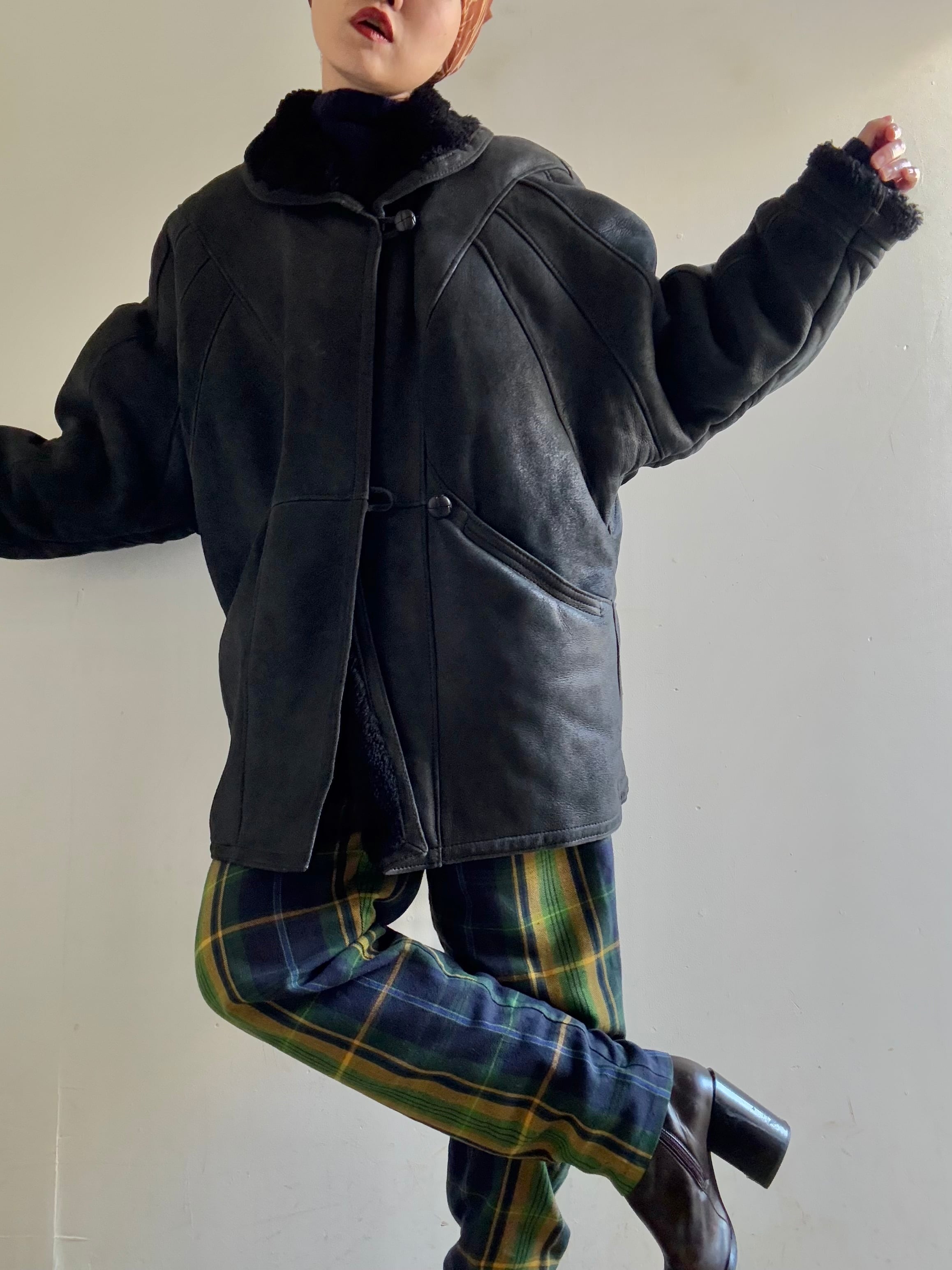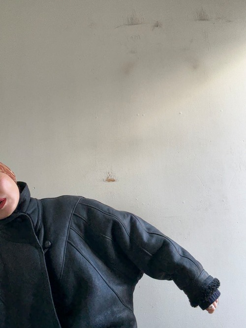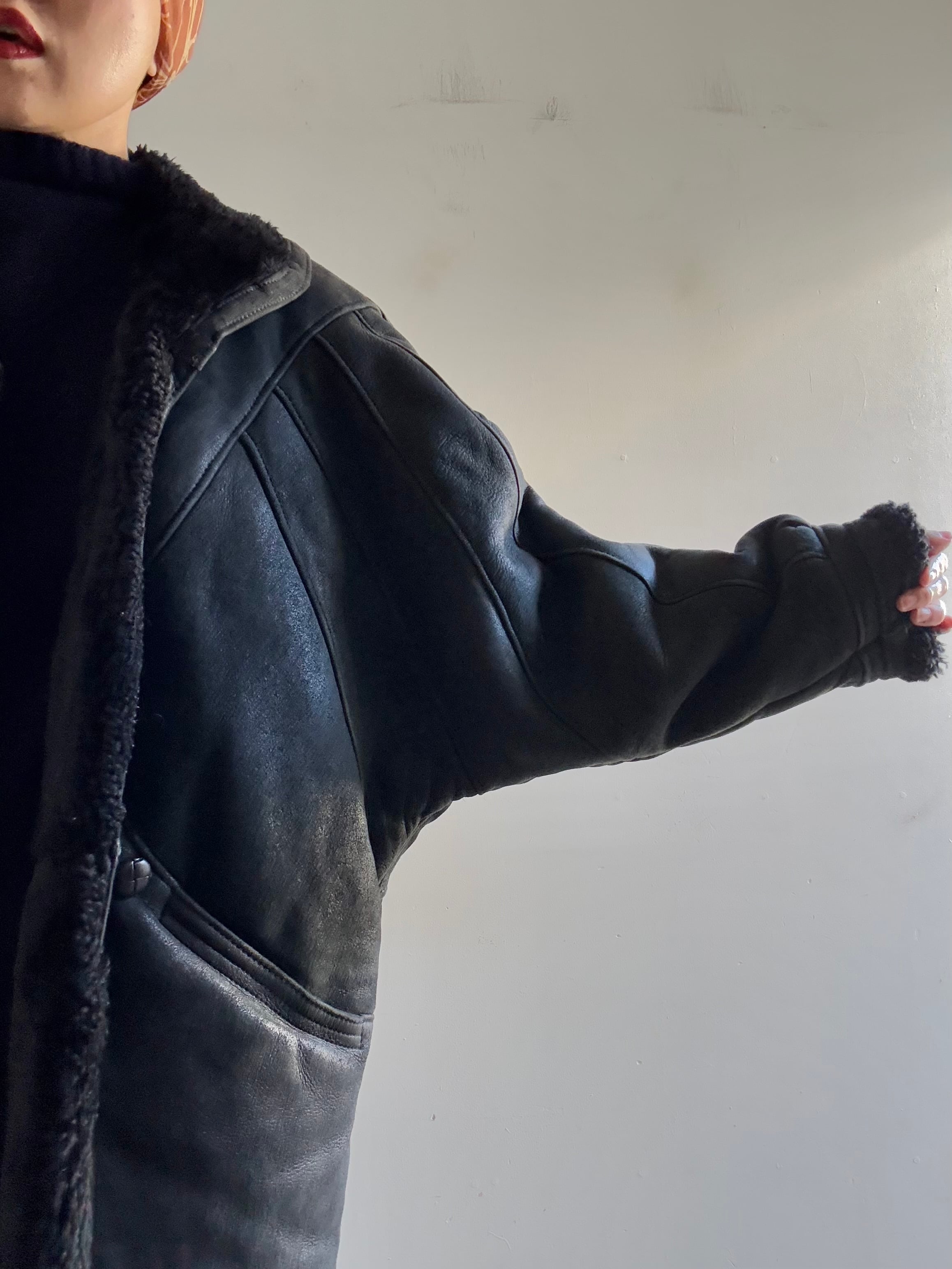 70-80s Vintage Black Mouton Blouson Coat