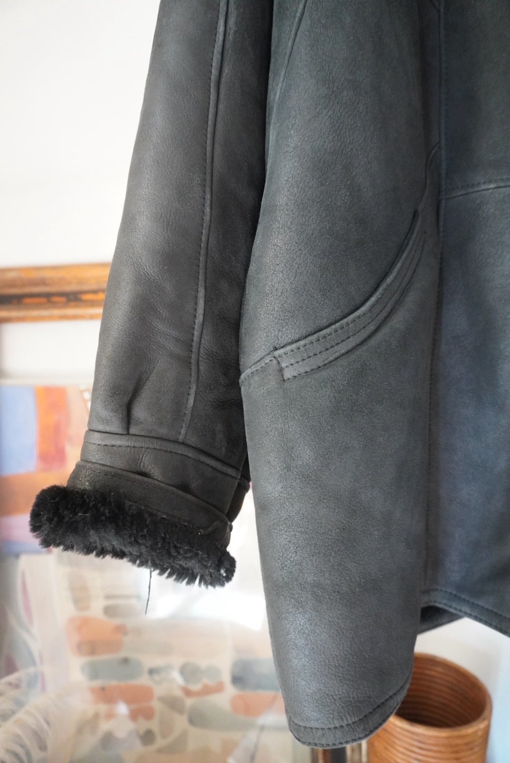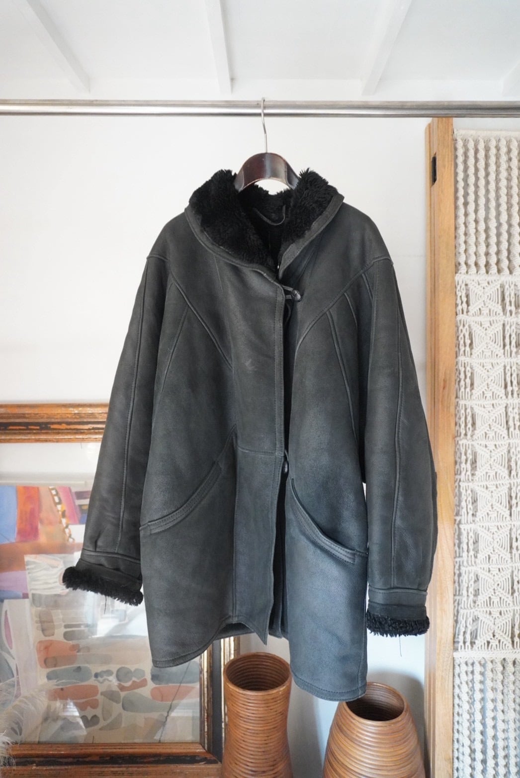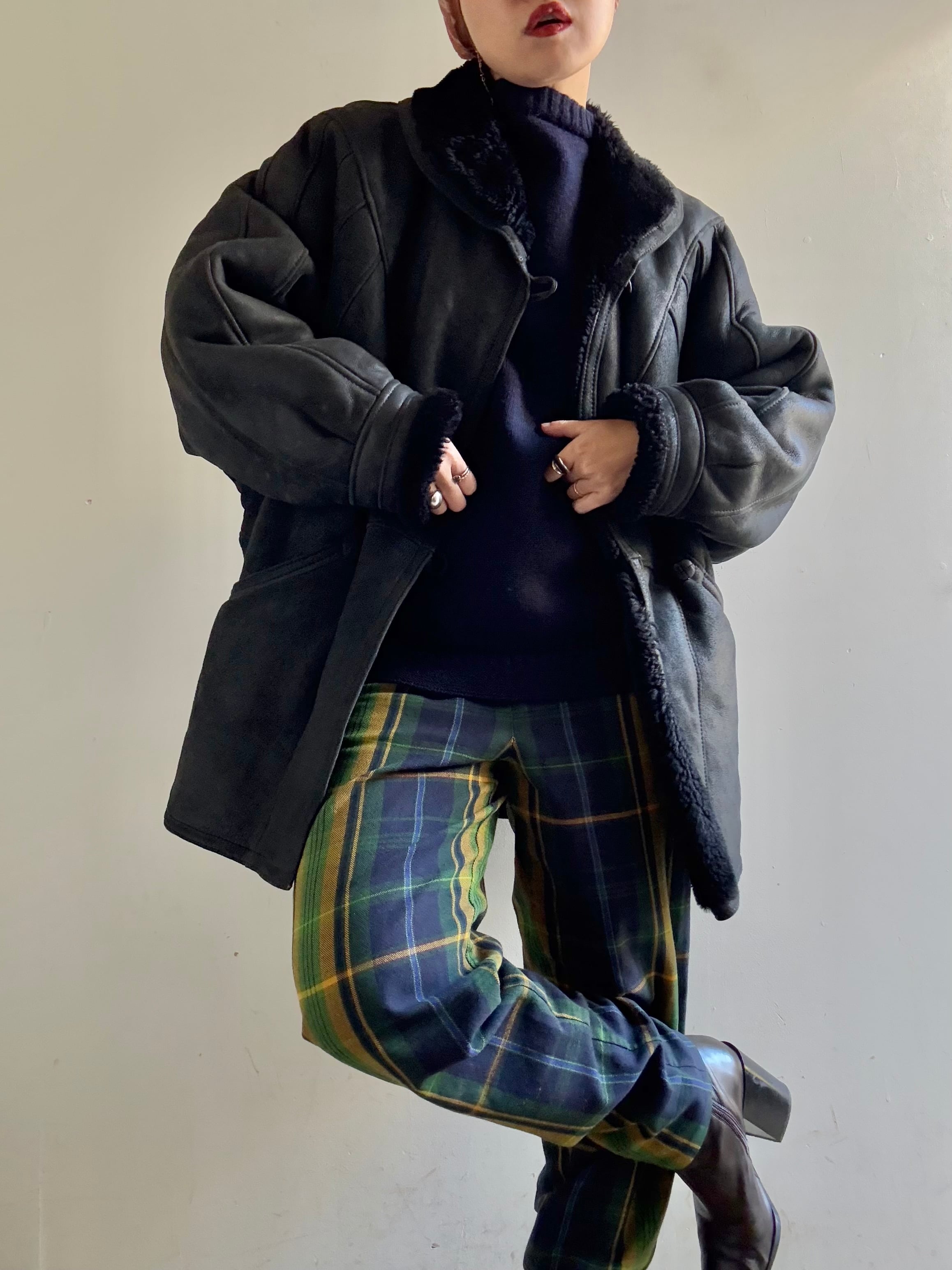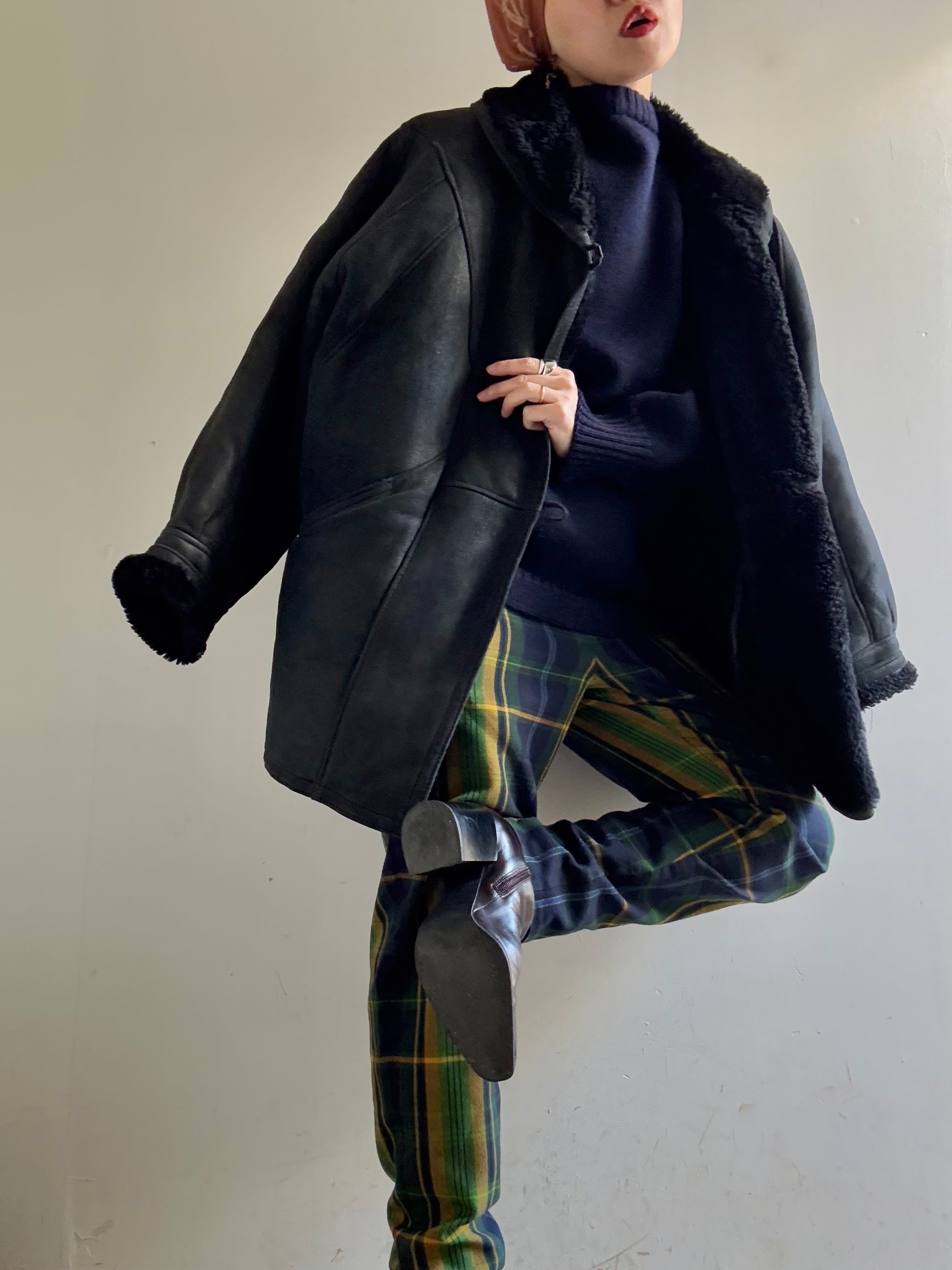 70-80s Vintage Black Mouton Blouson Coat