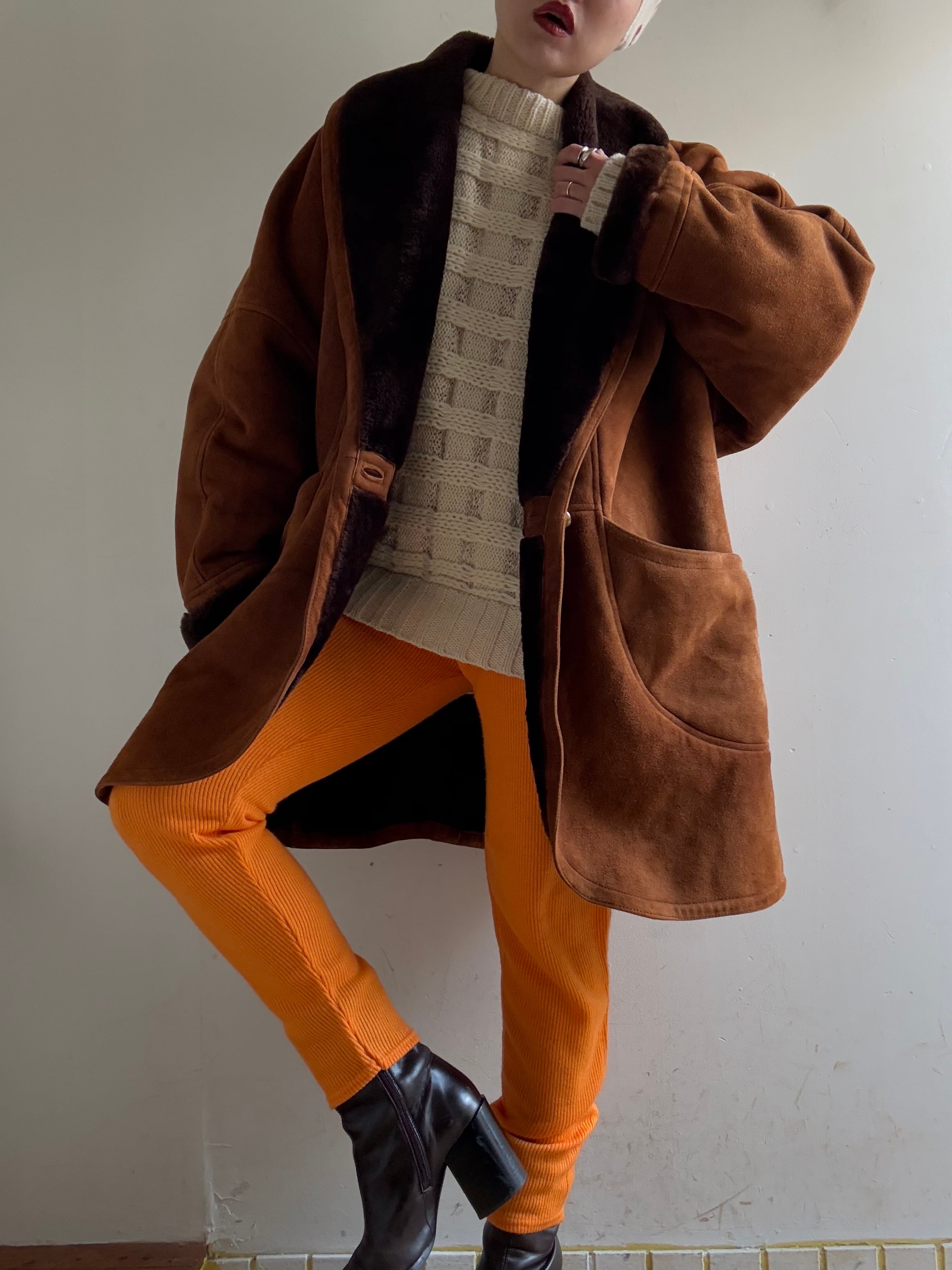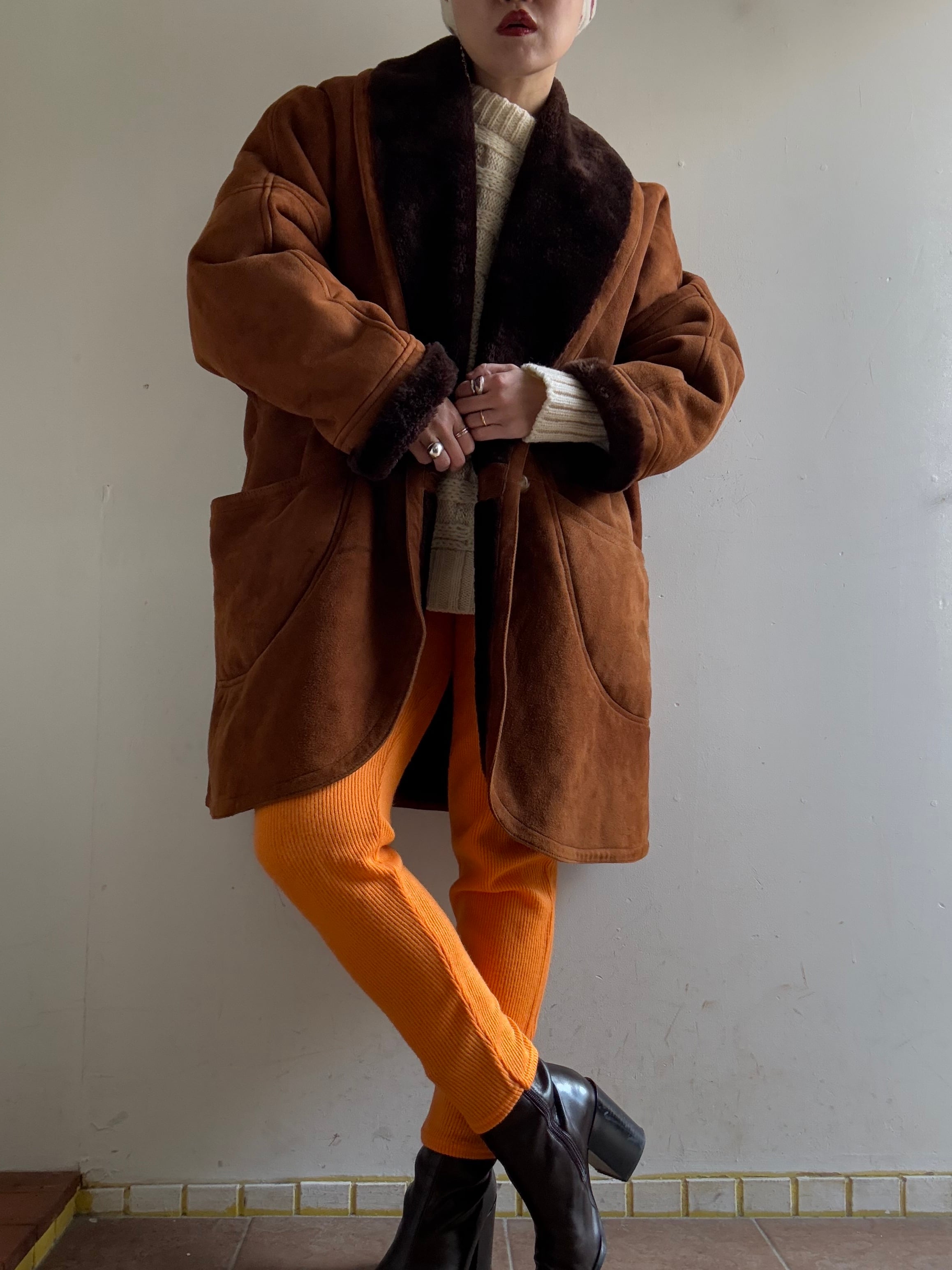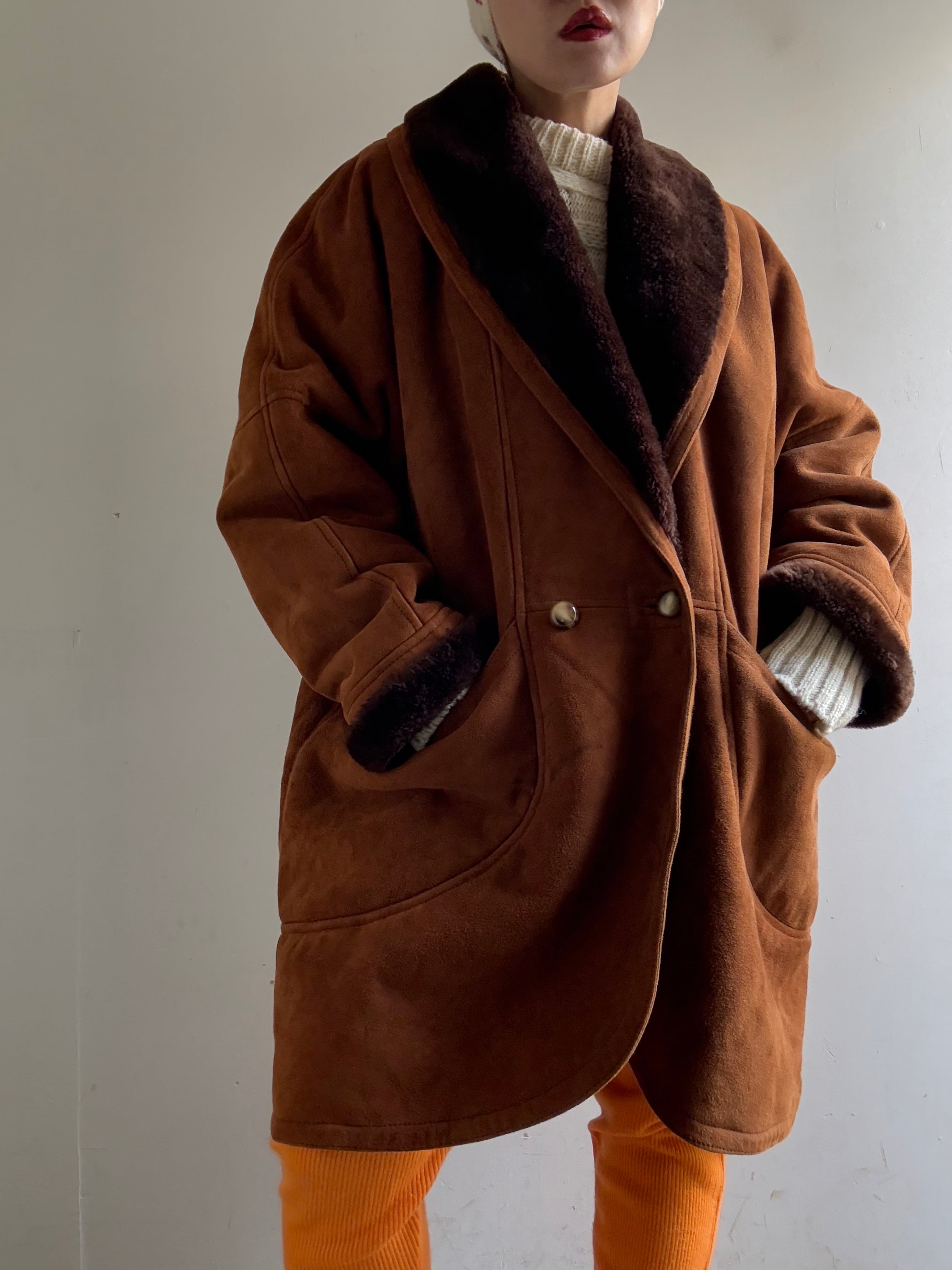 70-80s Vintage Faded Camel Mouton Blouson Coat
