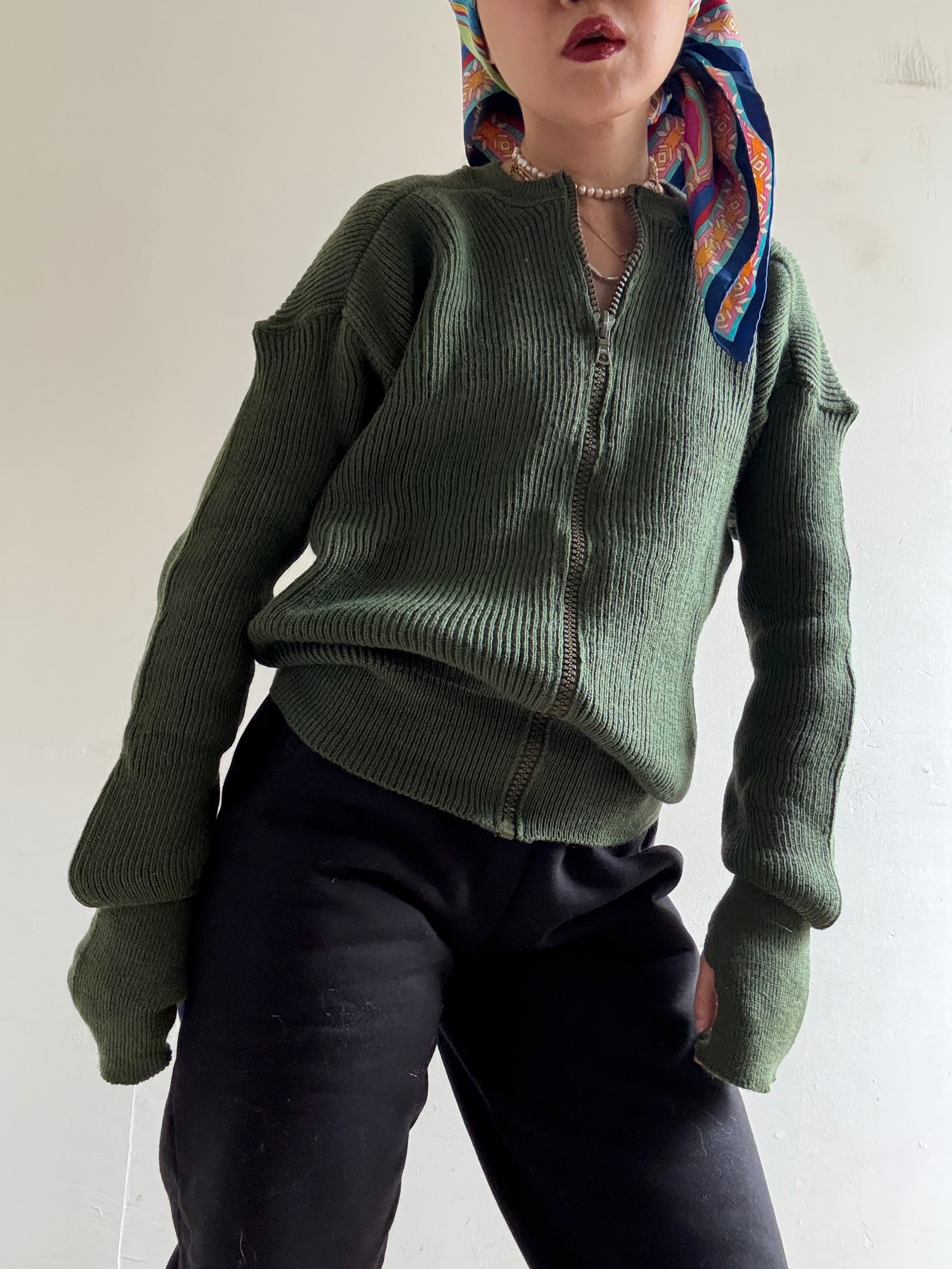 Deadstock Military Thumb Hole Zip Up Knit Top