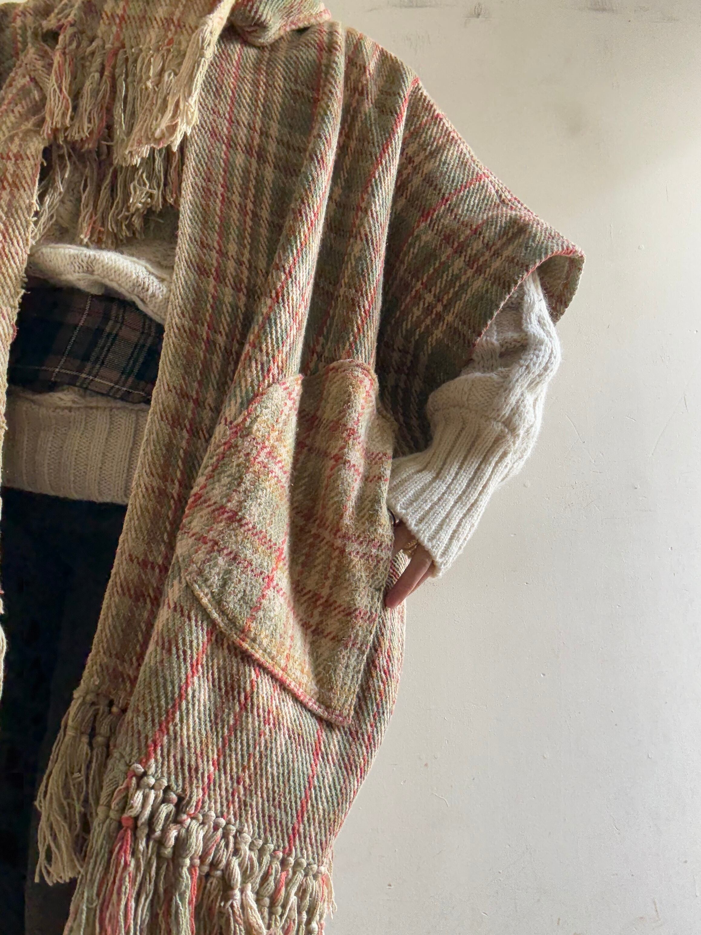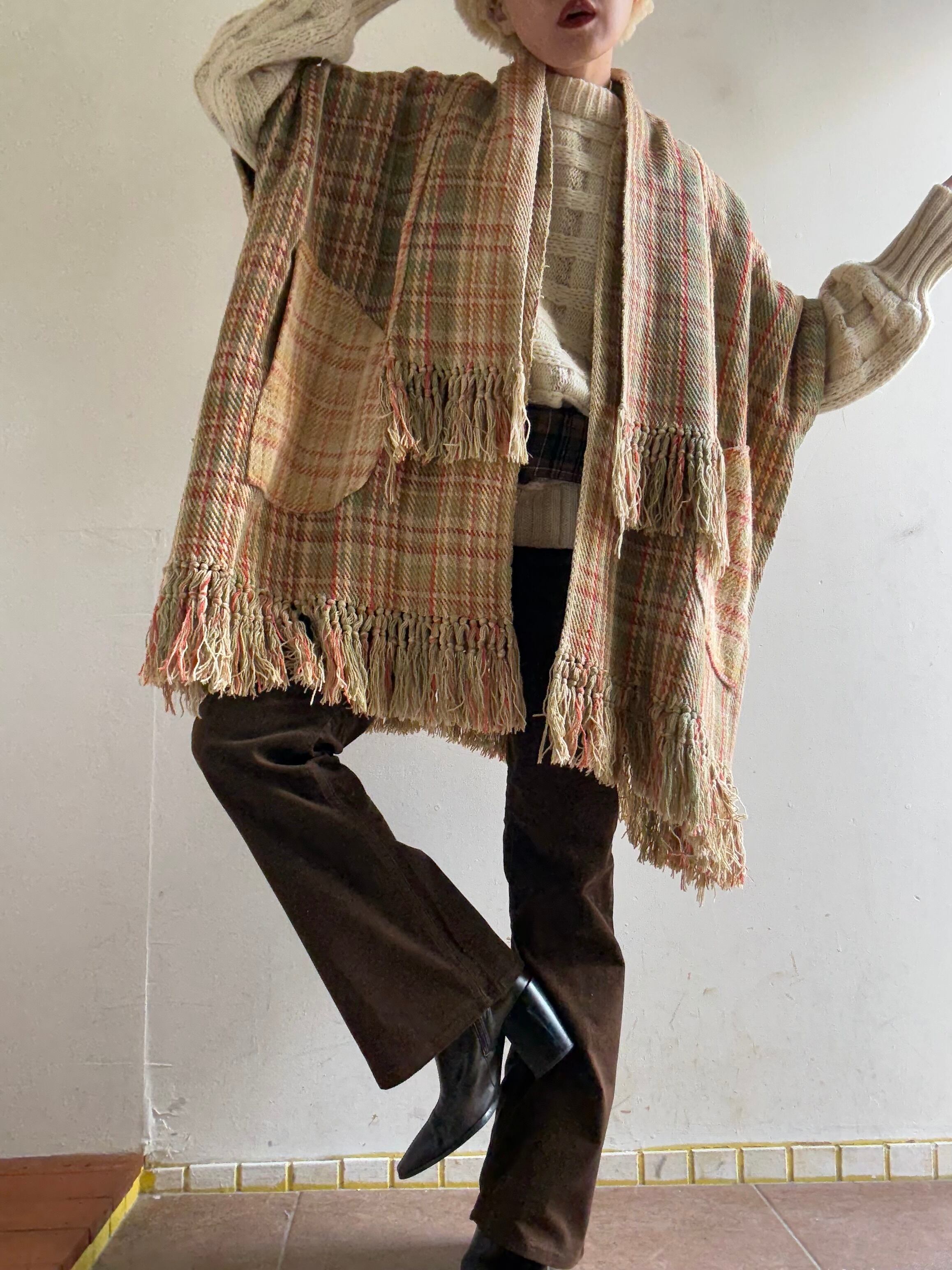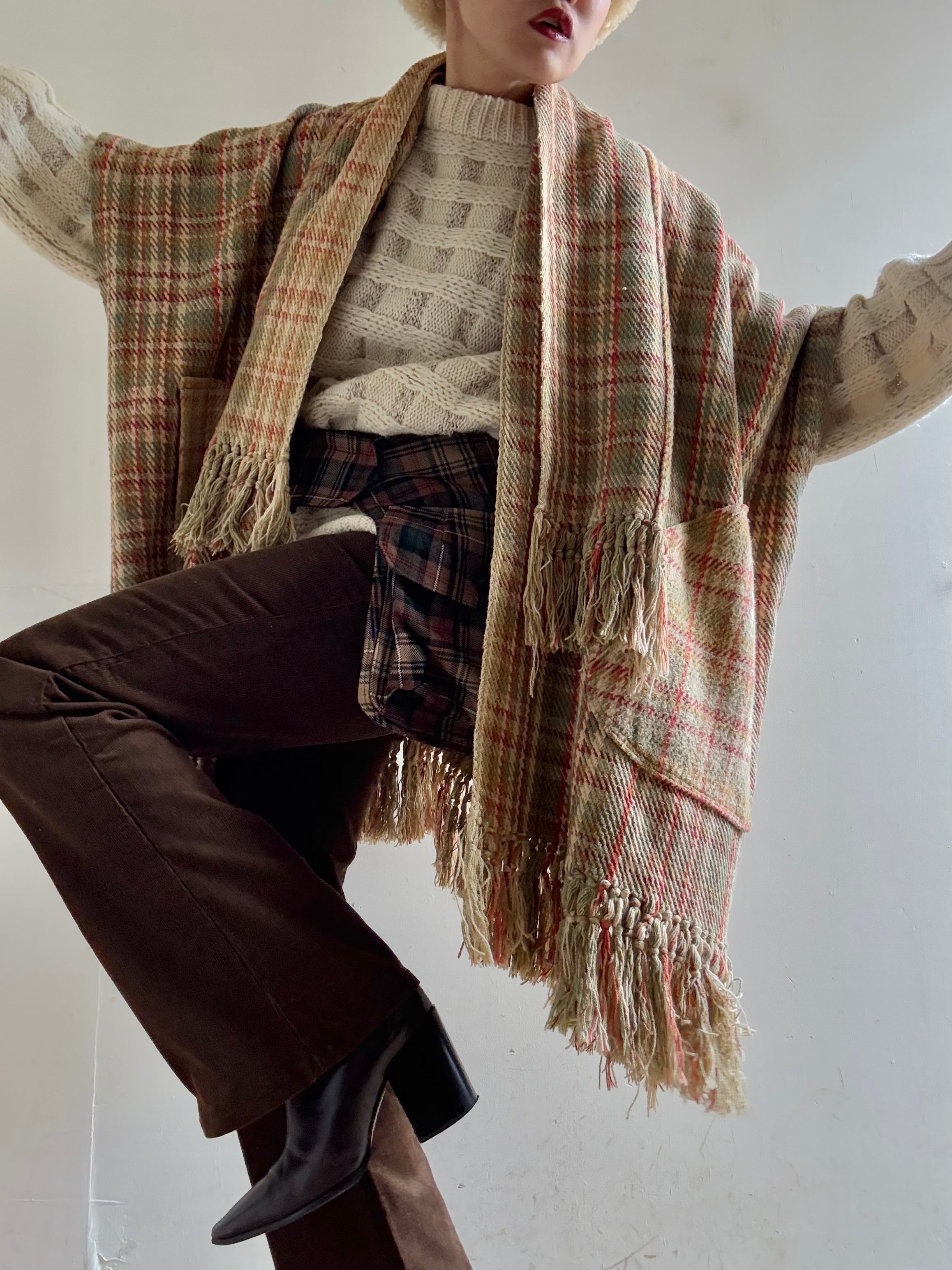 Monohunter Plaid Fringe Robe Coat