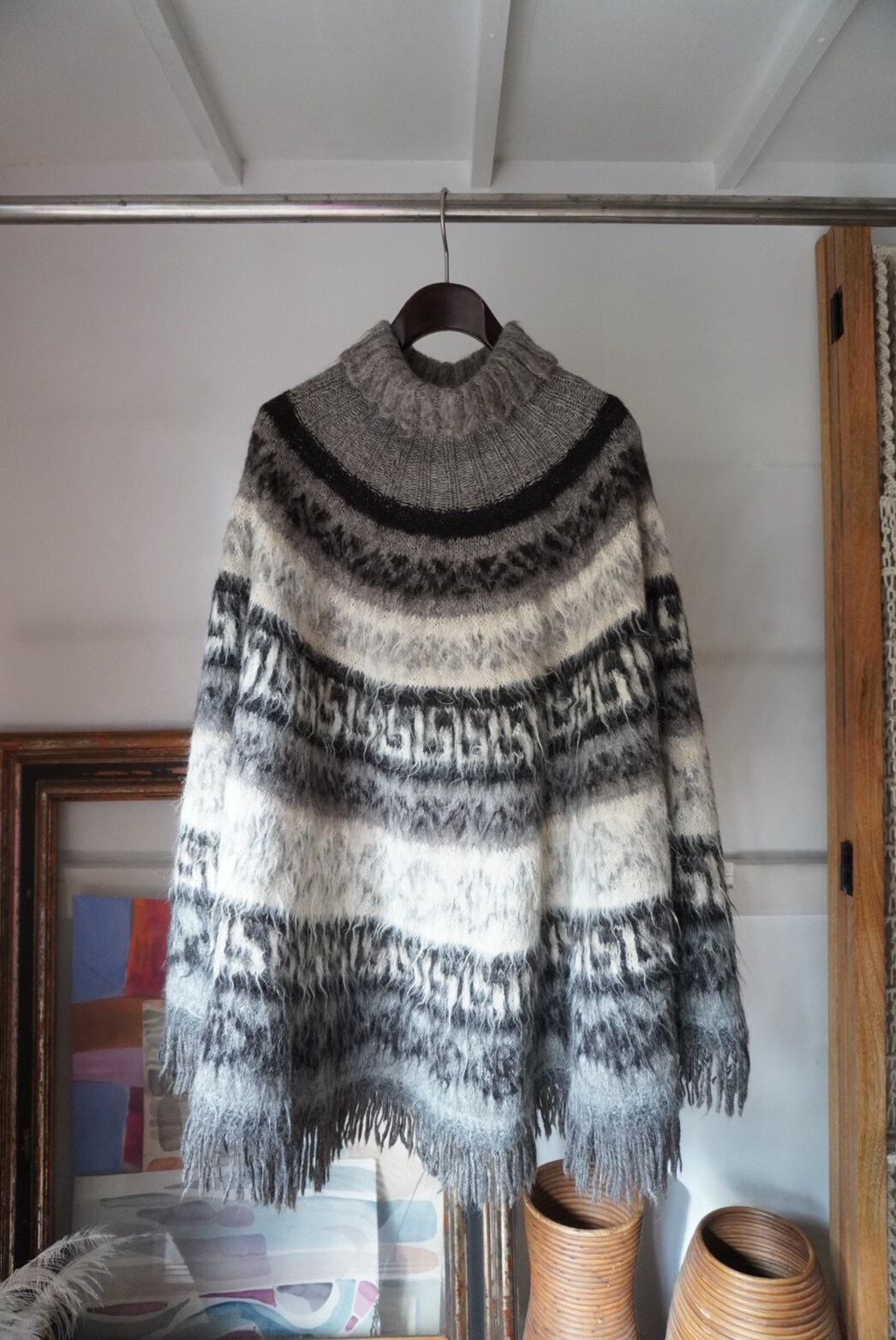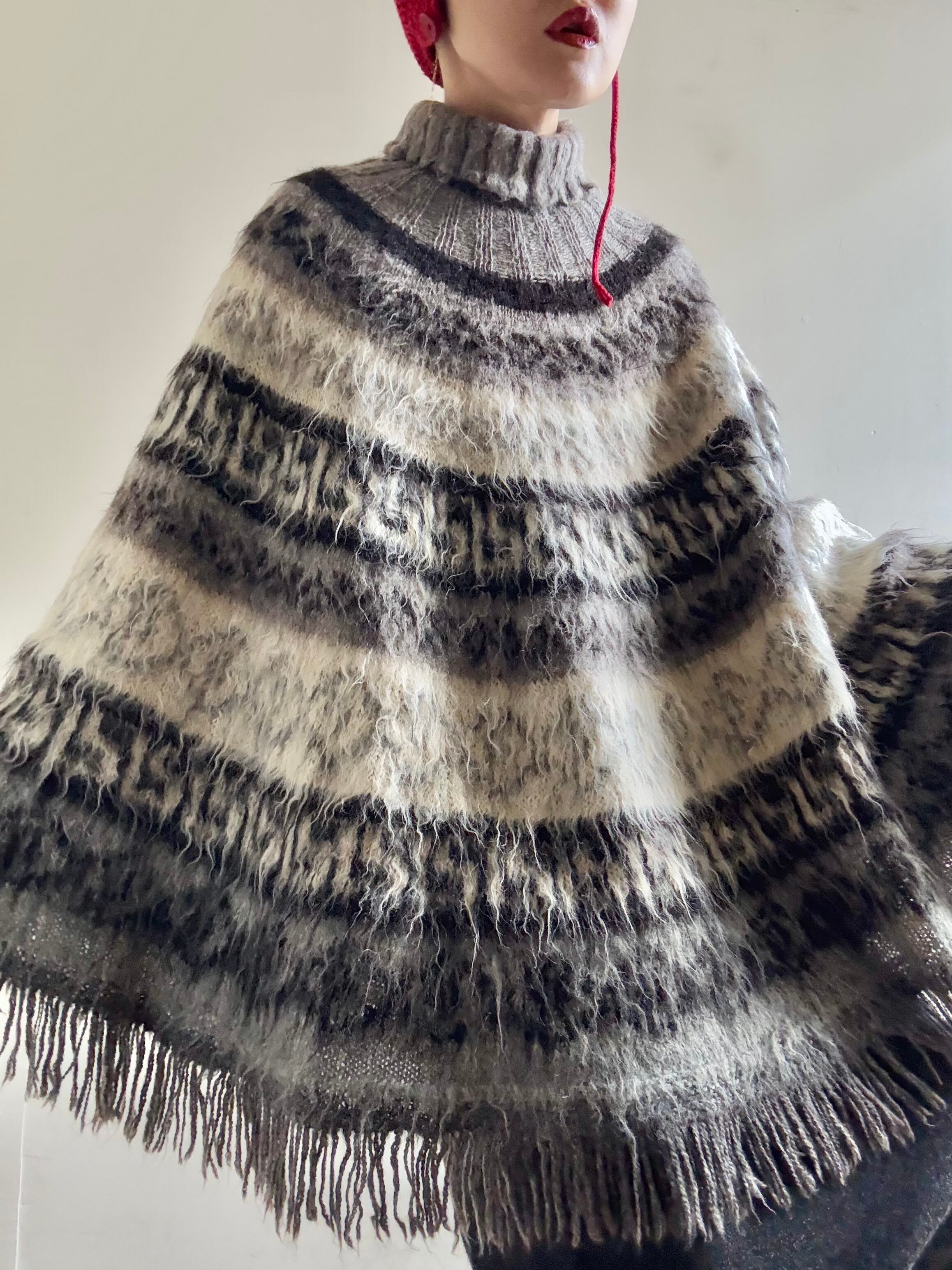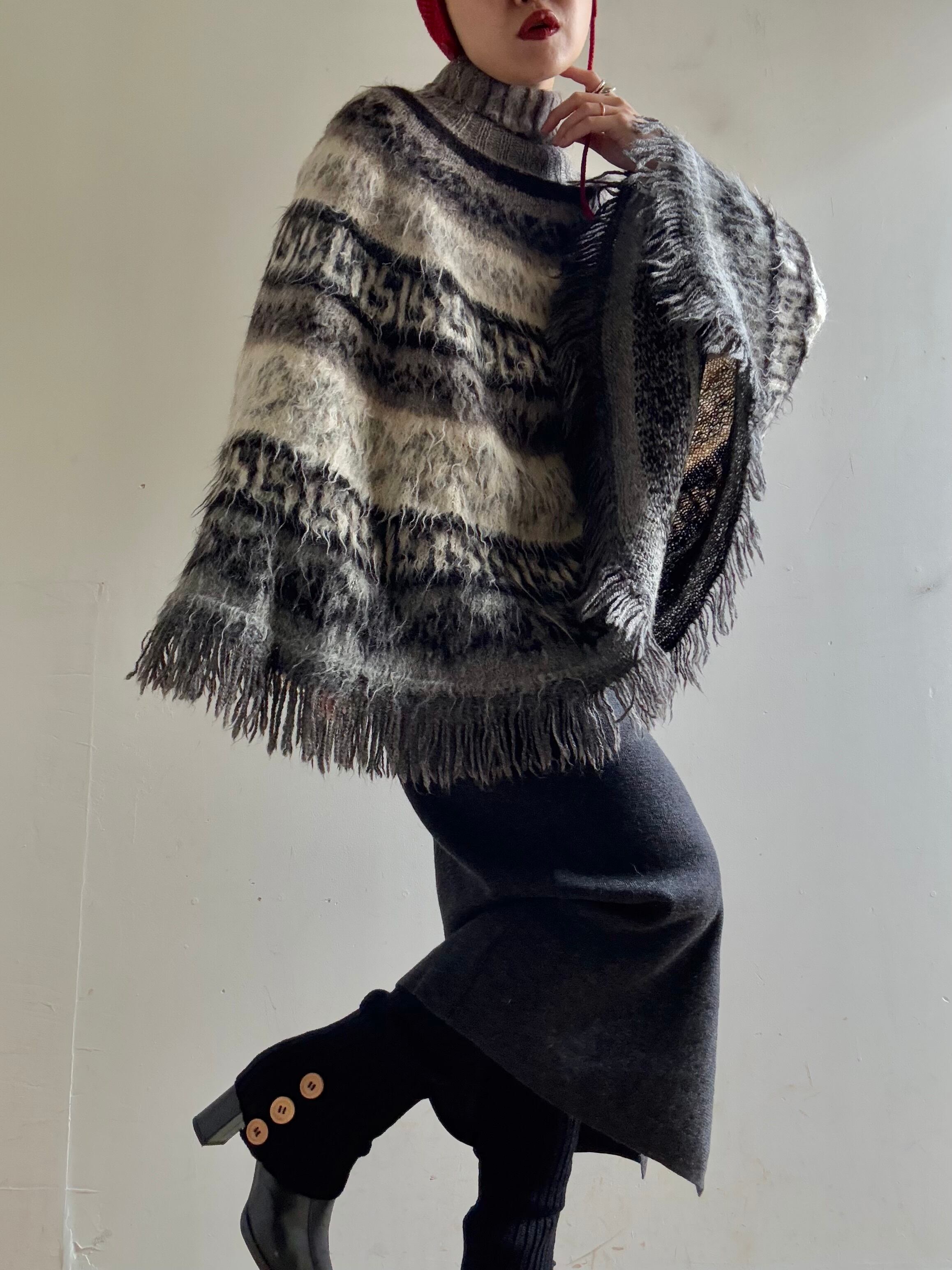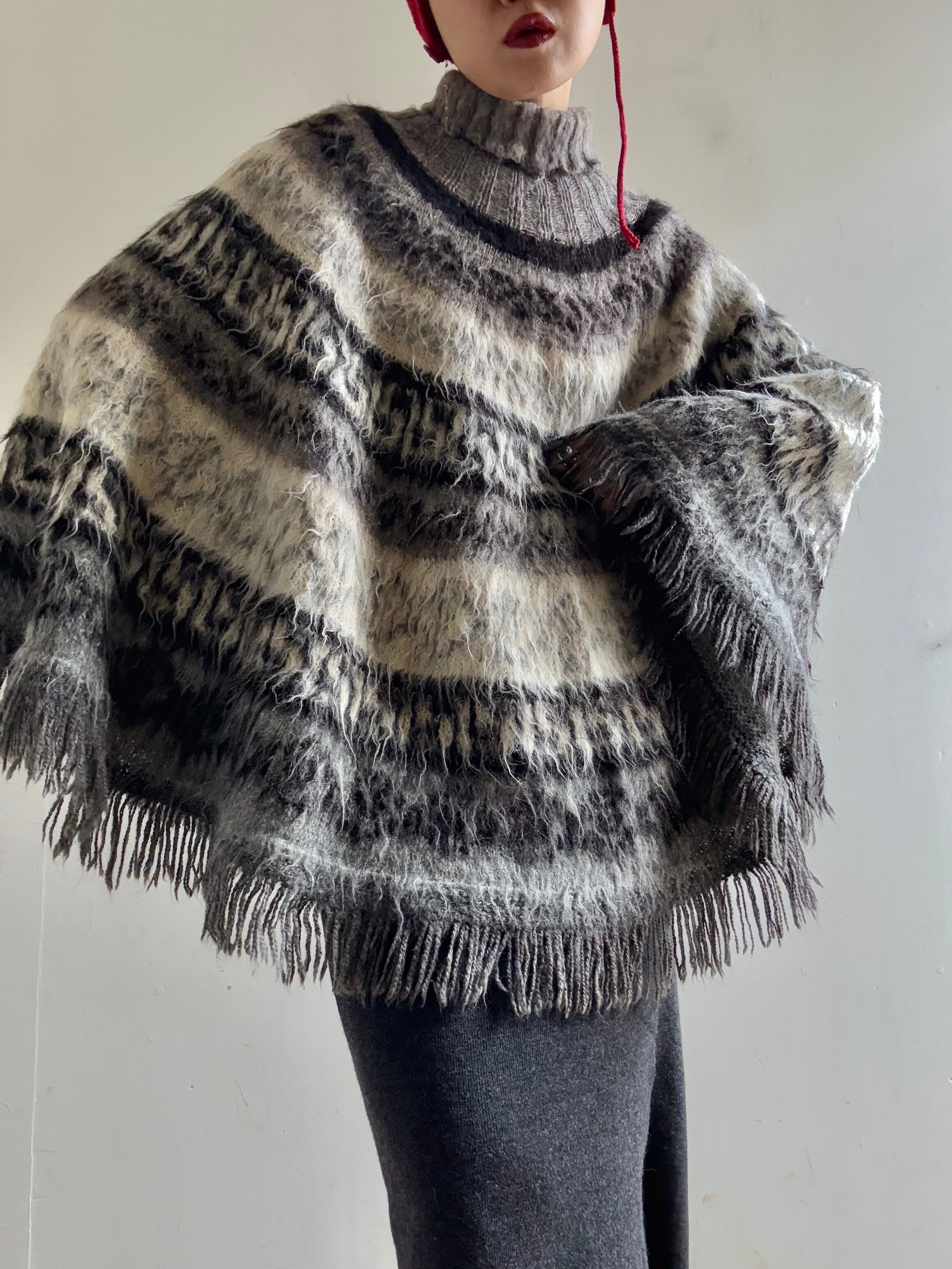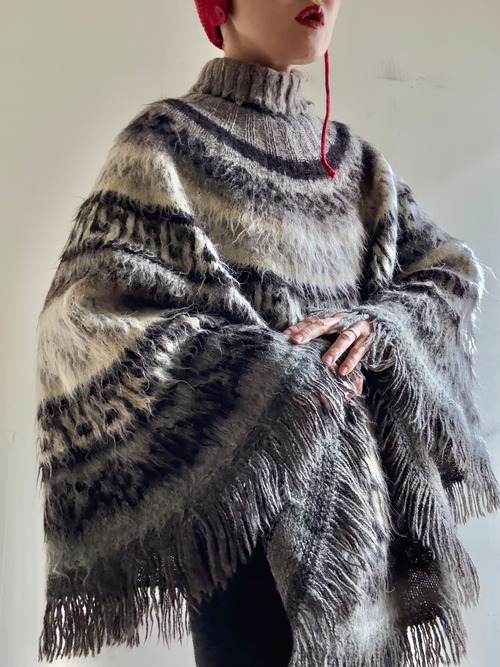 70-80s Vintage Nordic Fringe Knit Poncho
