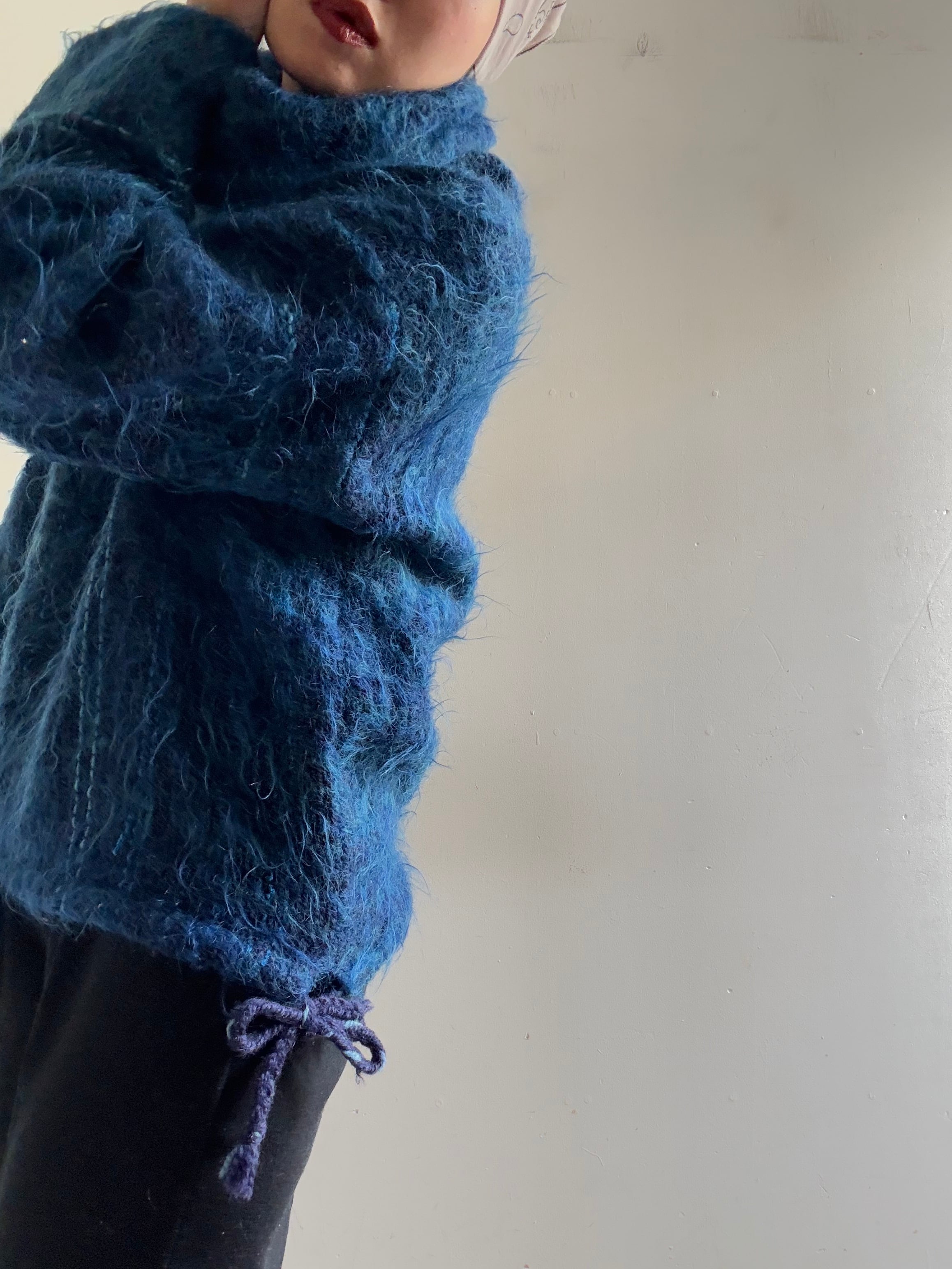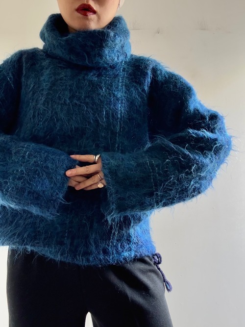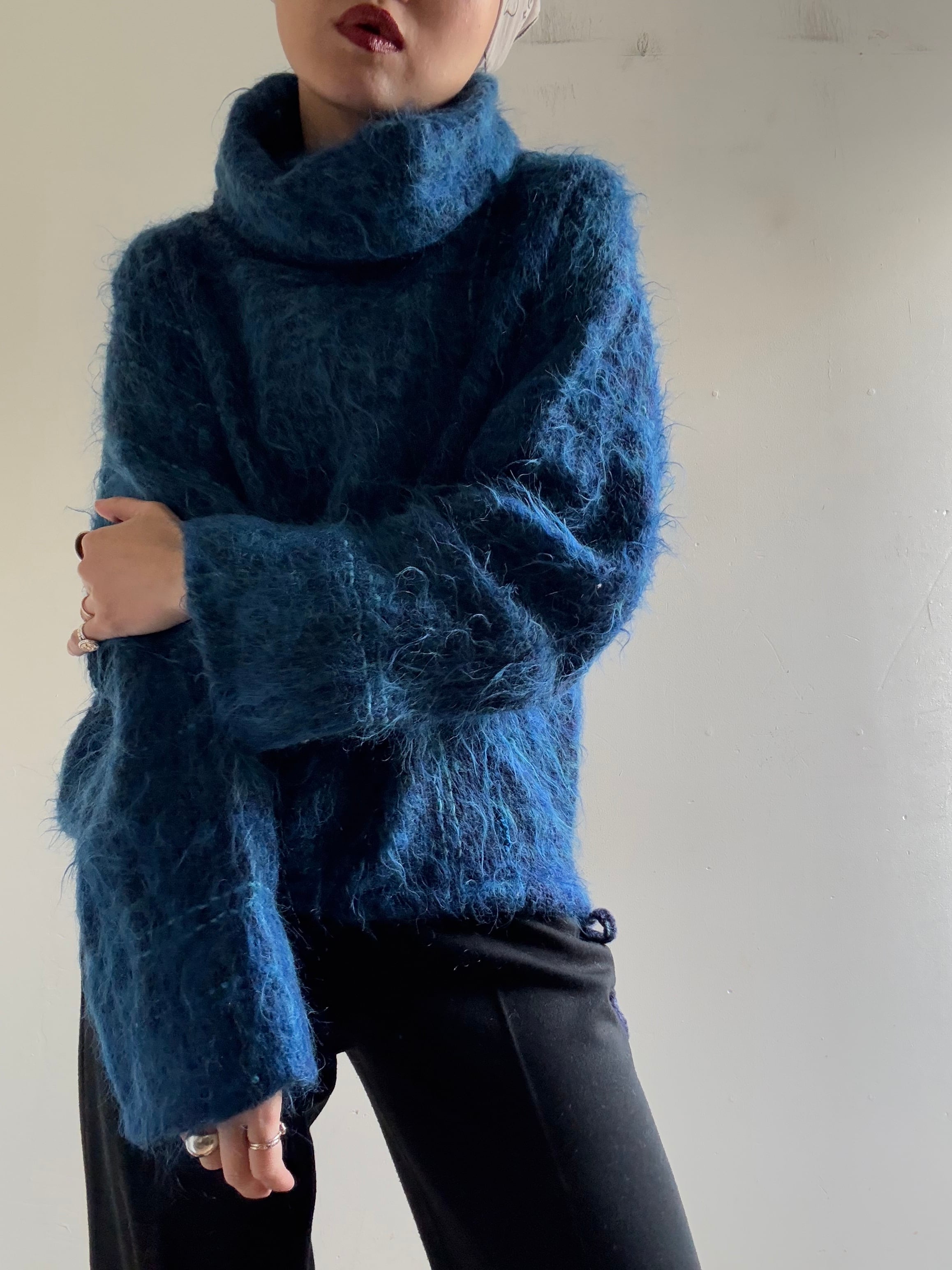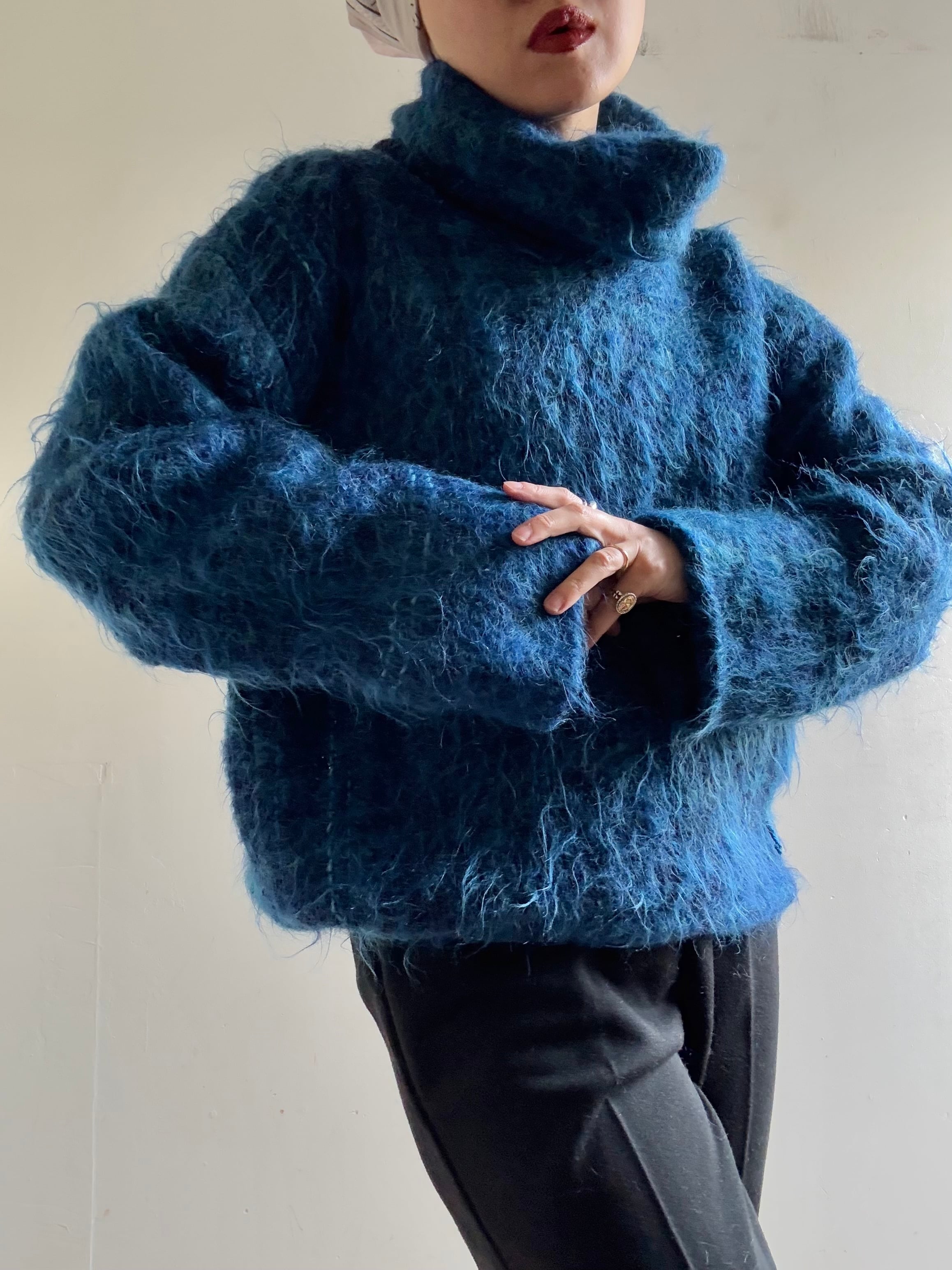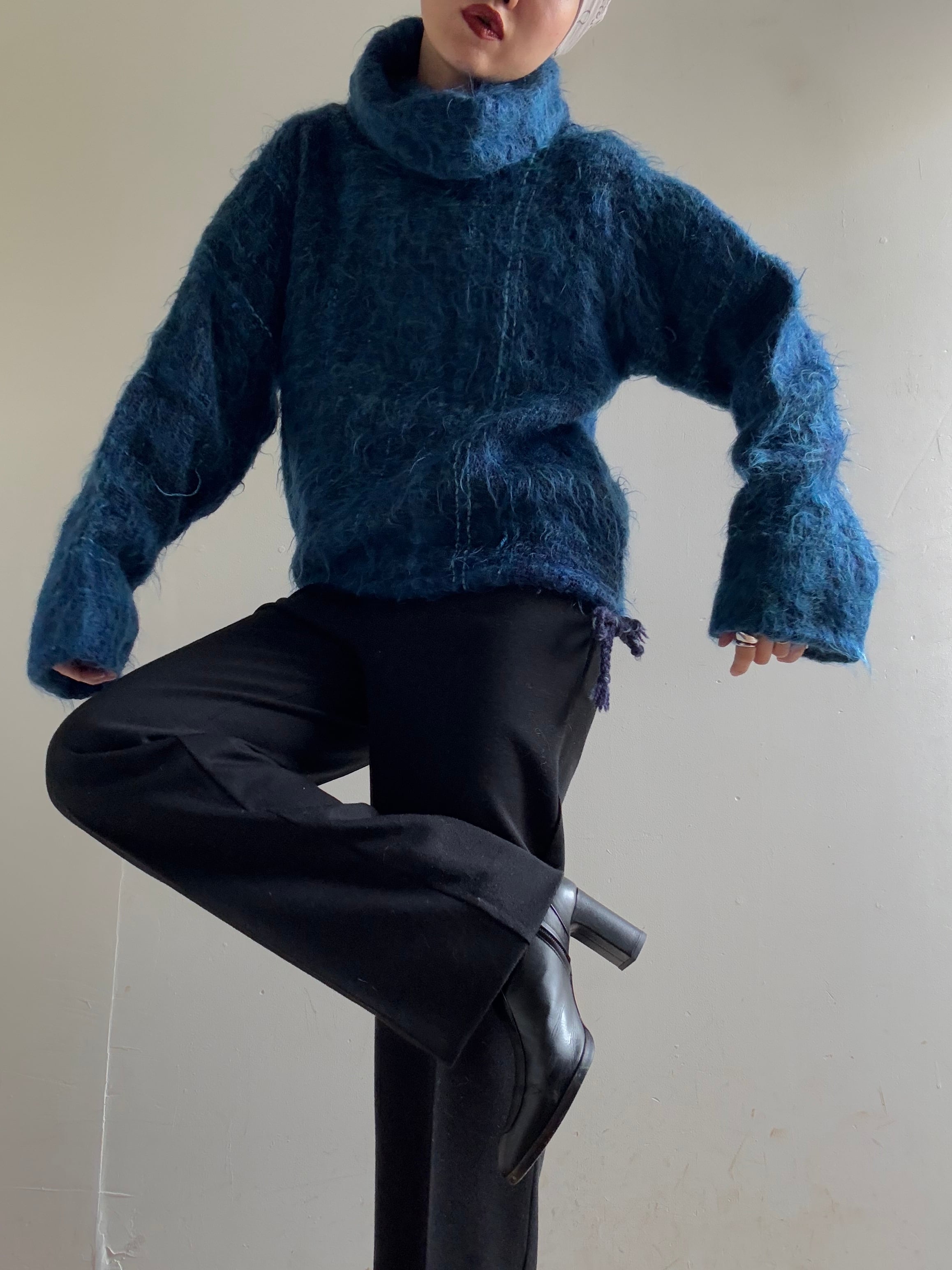 1970s Vintage Handwoven Loose Neck Mohair Knit Top