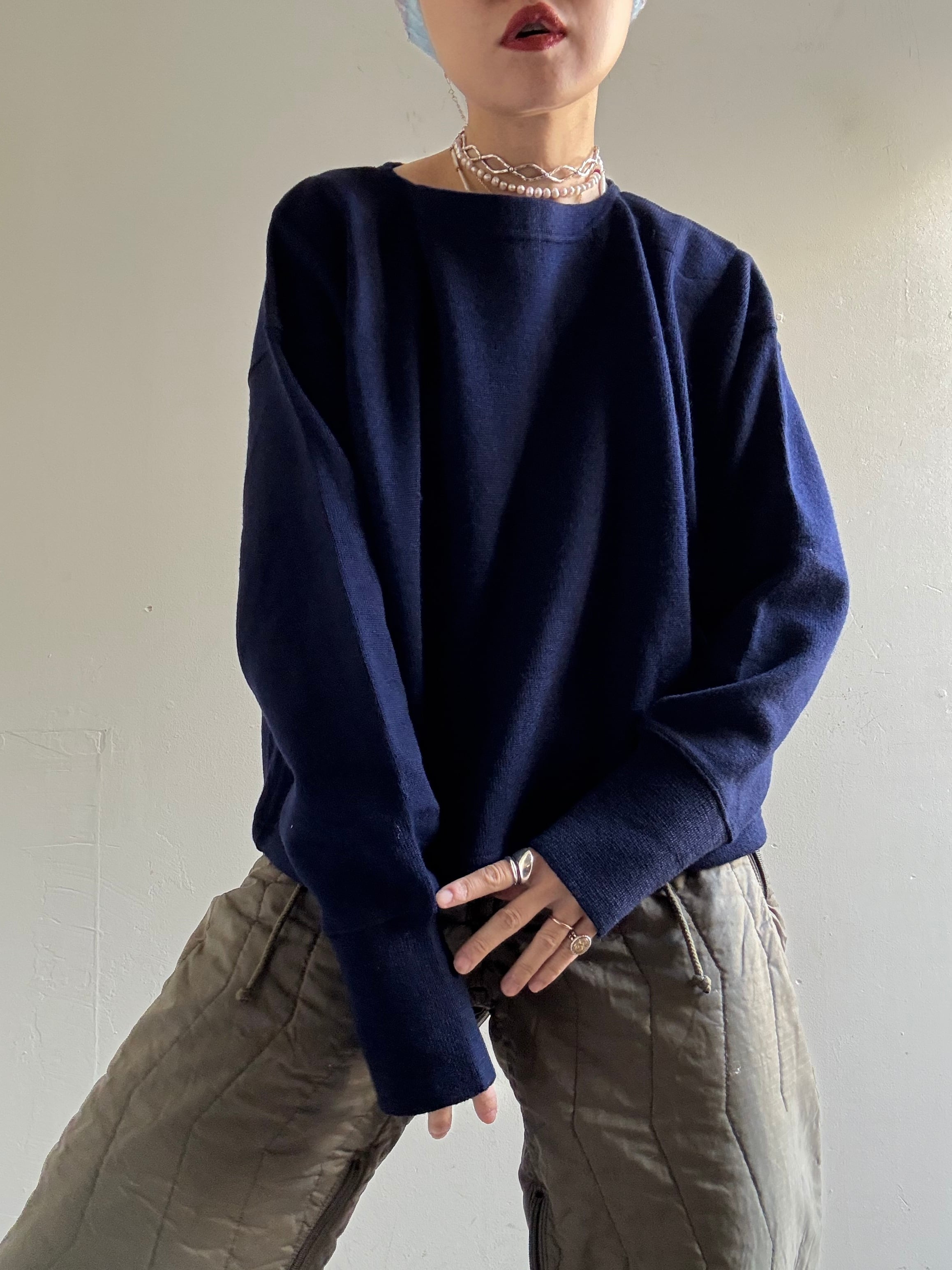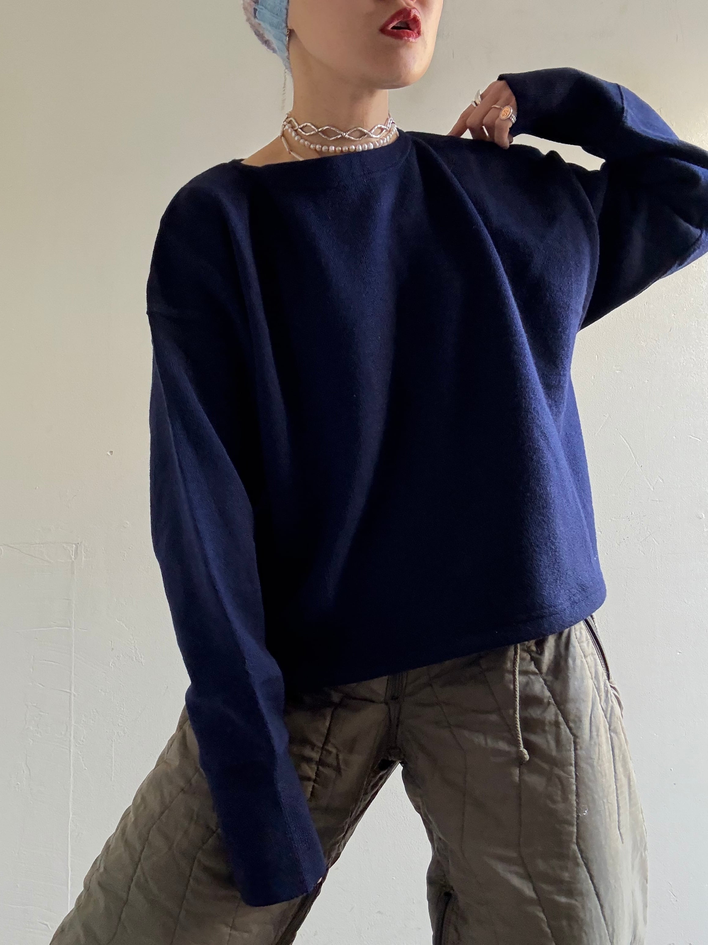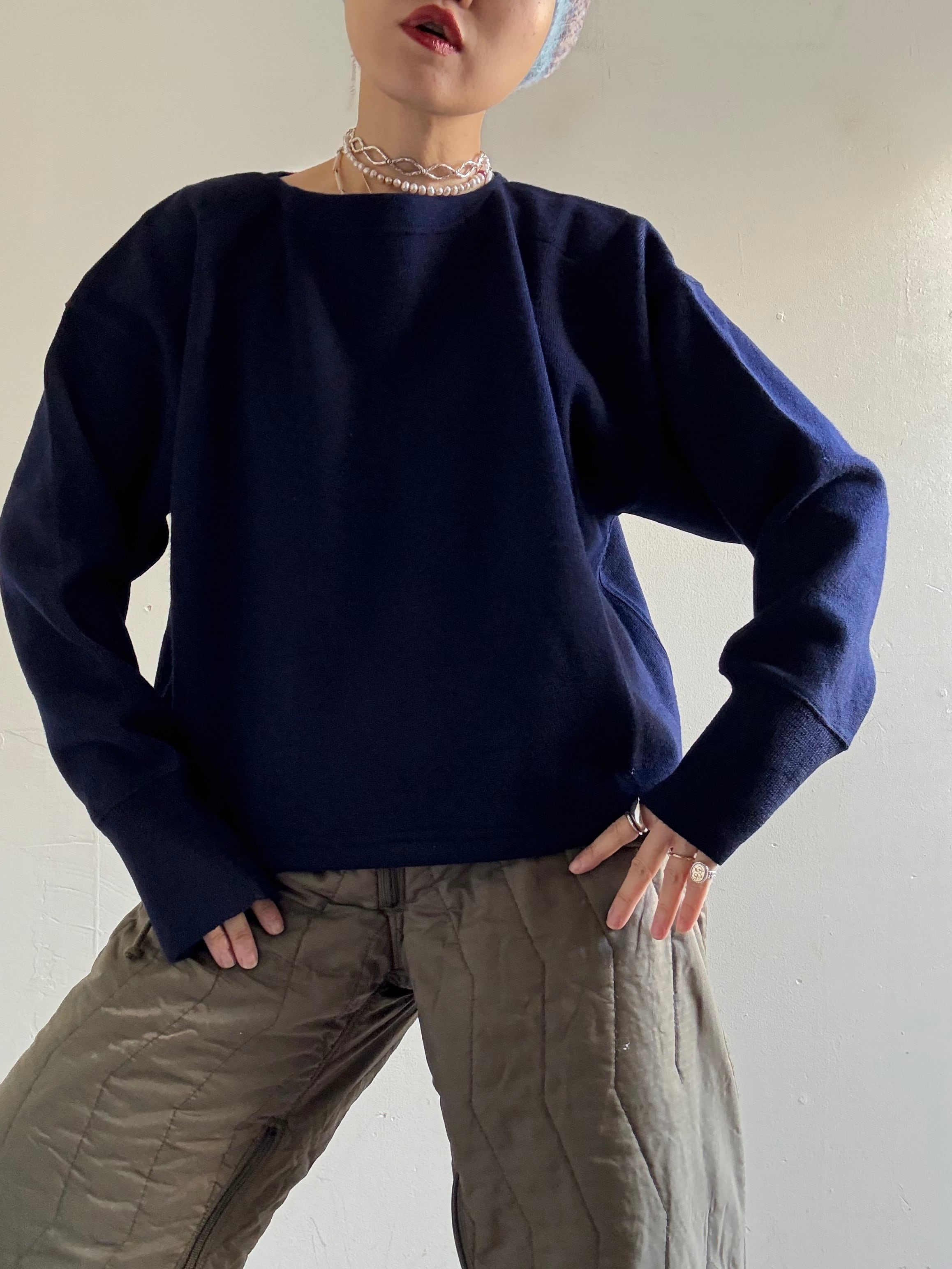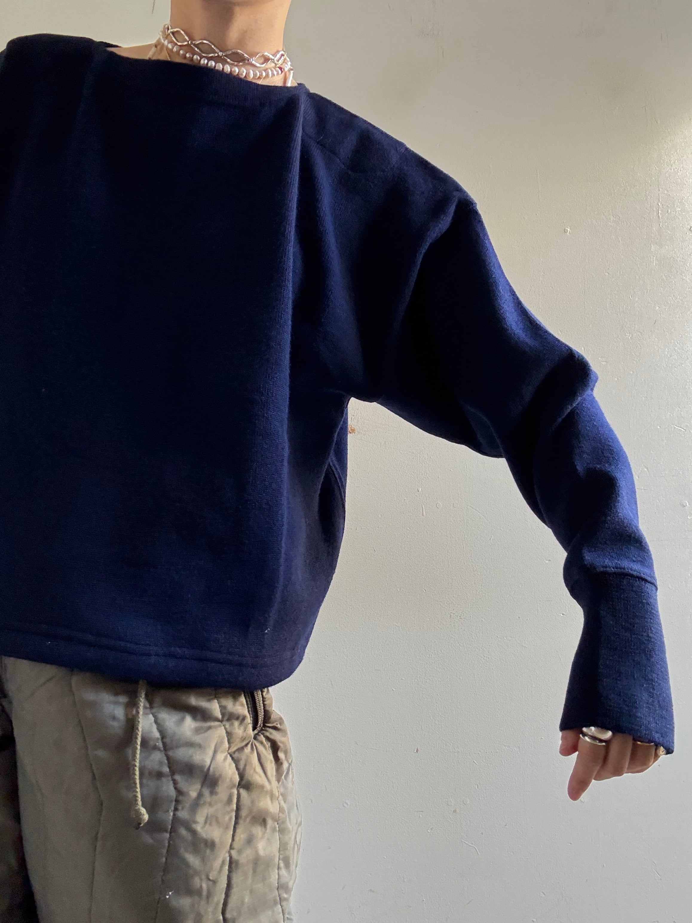 Deadstock Italian Navy Boatneck Knit Top "Rework"