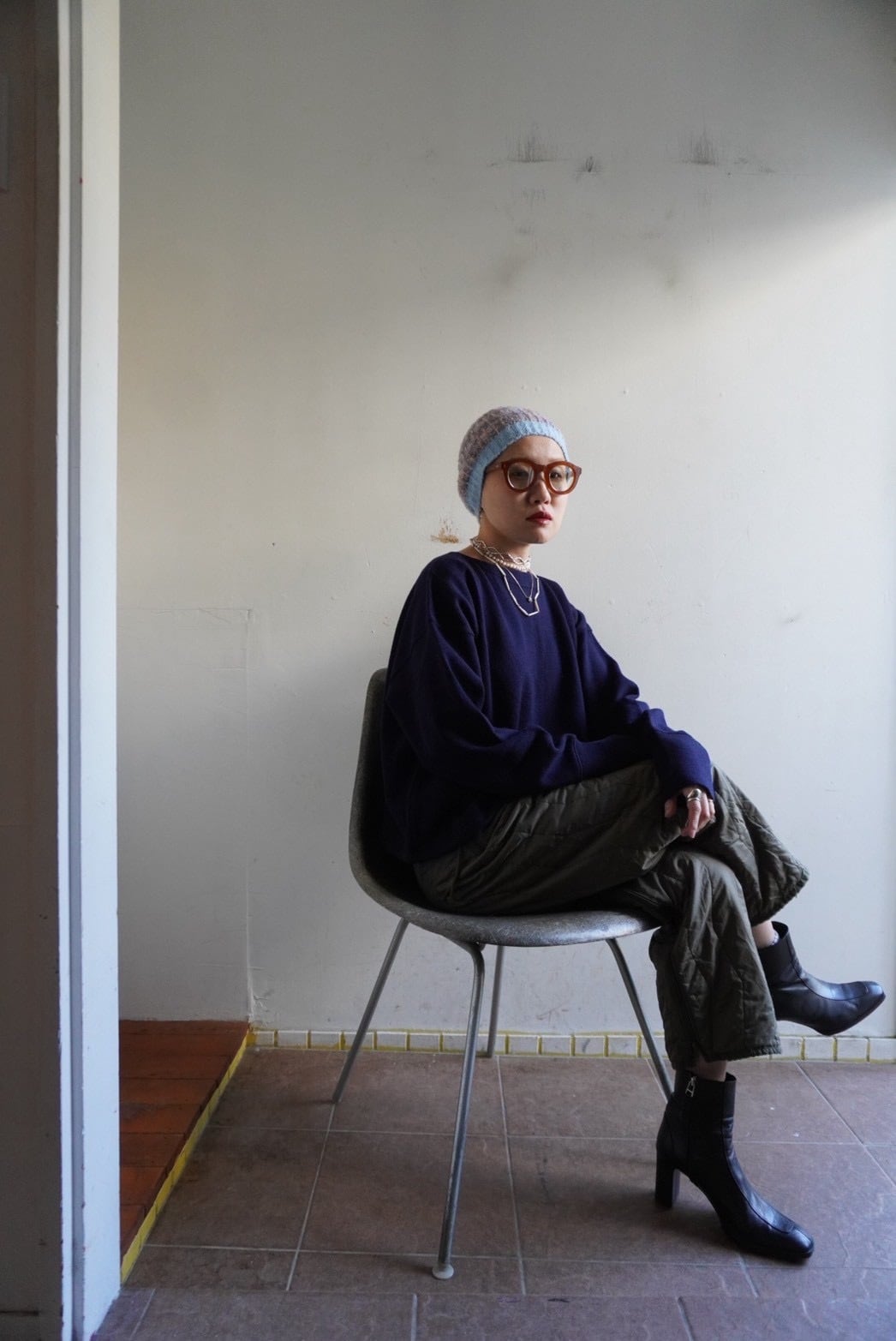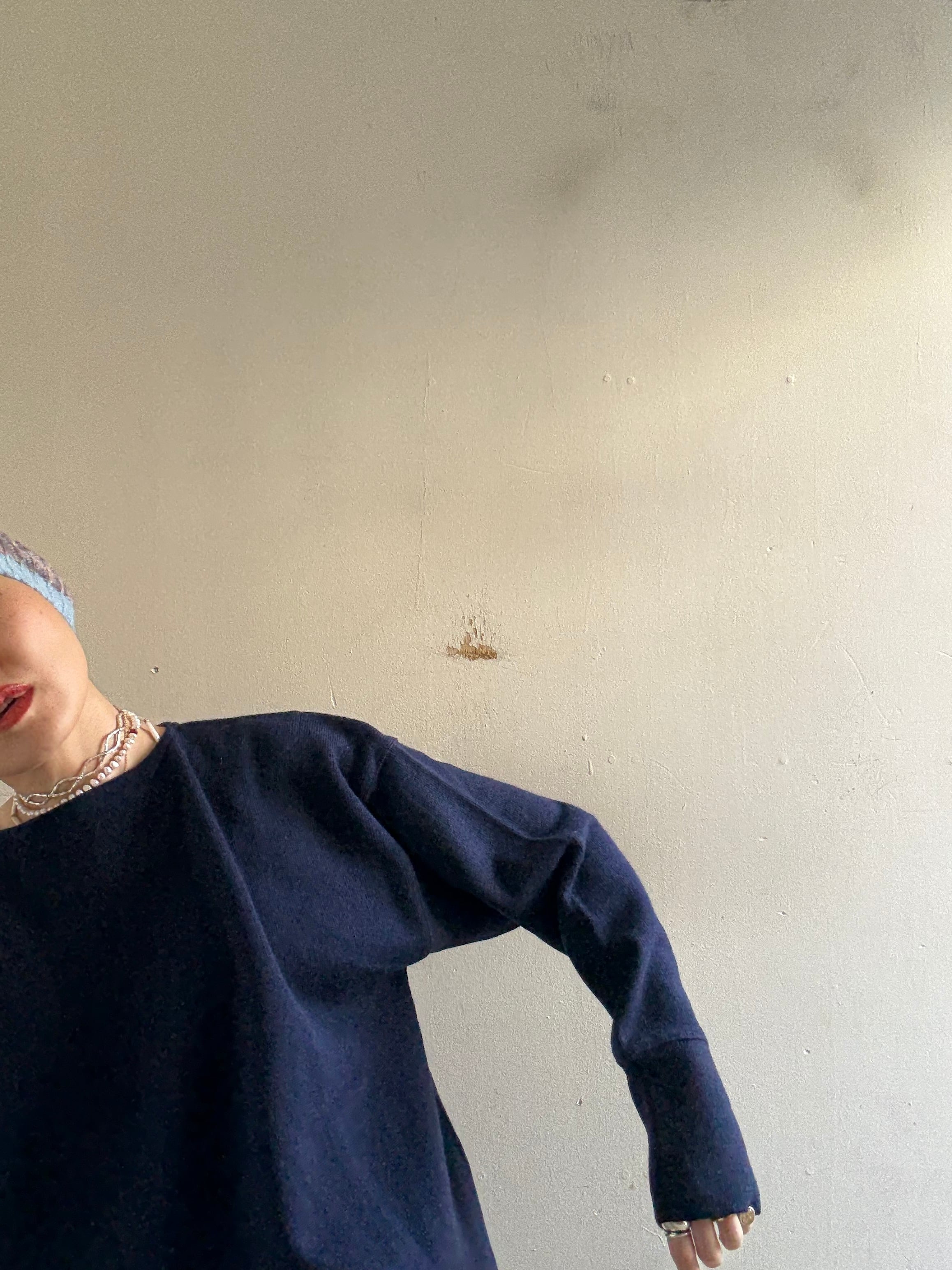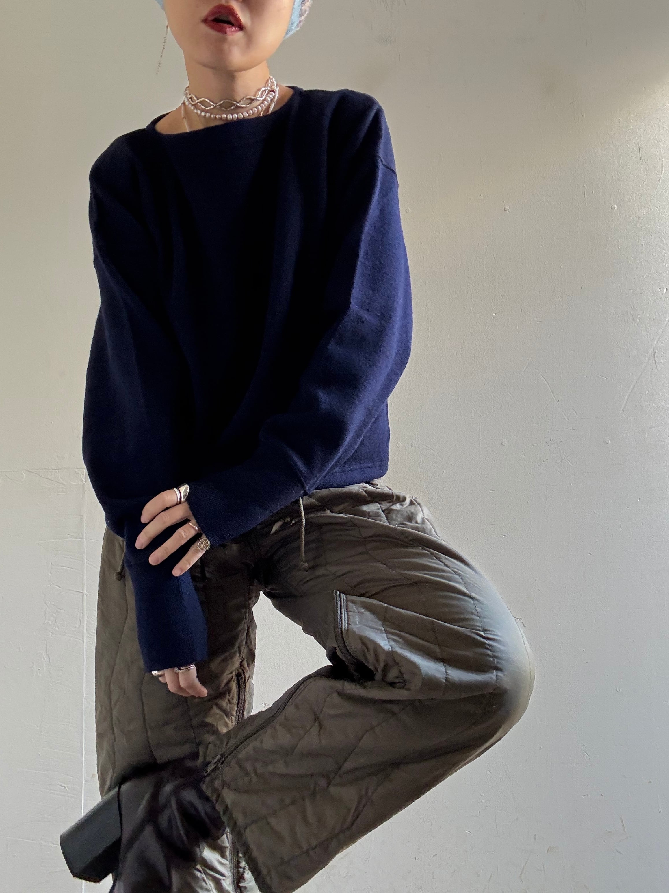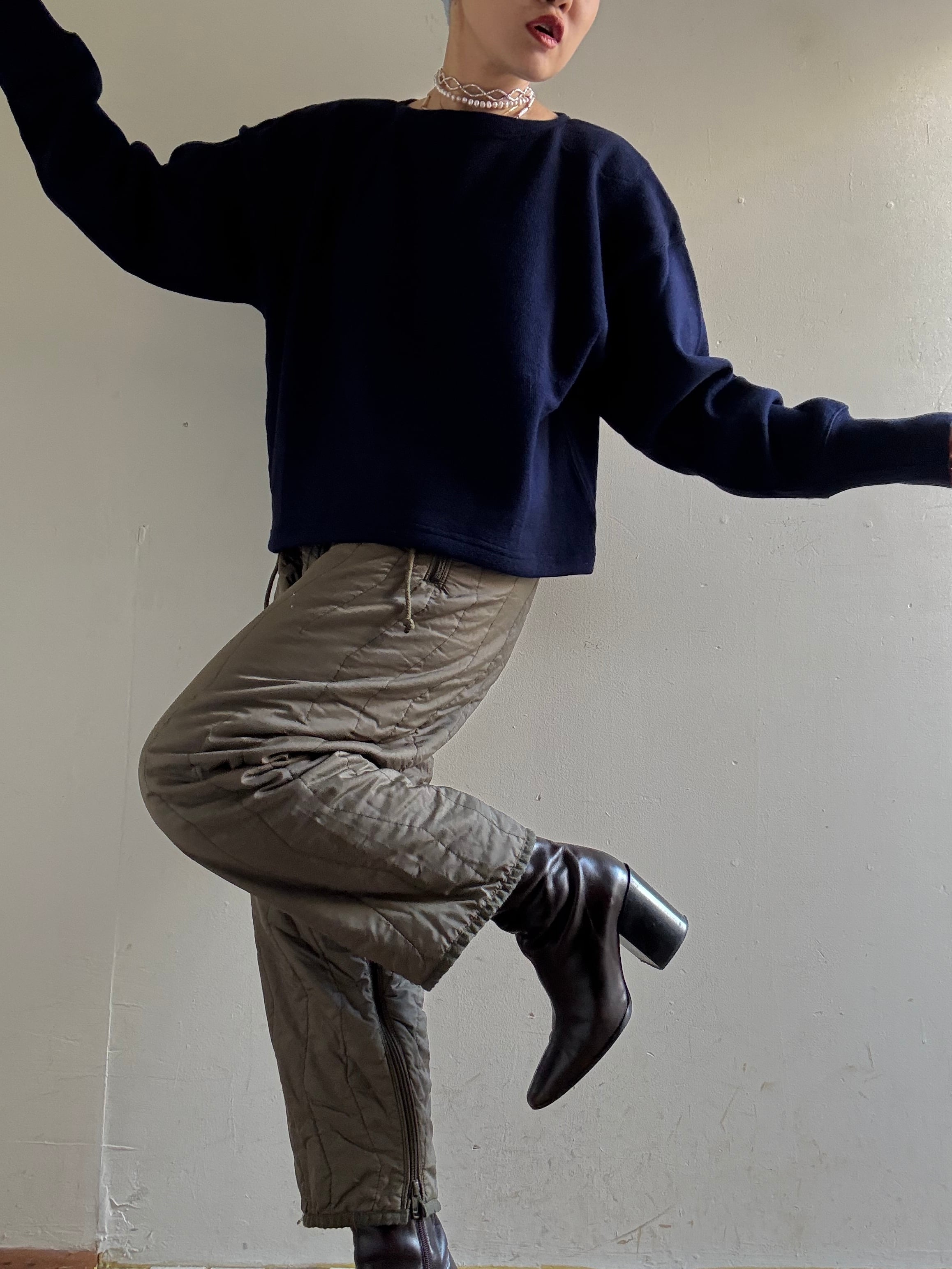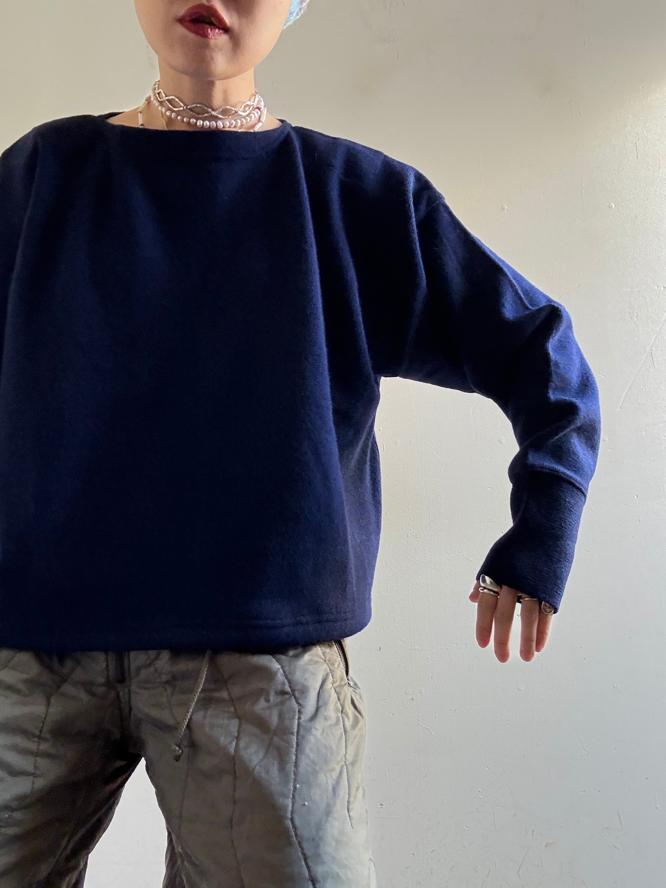 Deadstock Italian Navy Boatneck Knit Top "Rework"