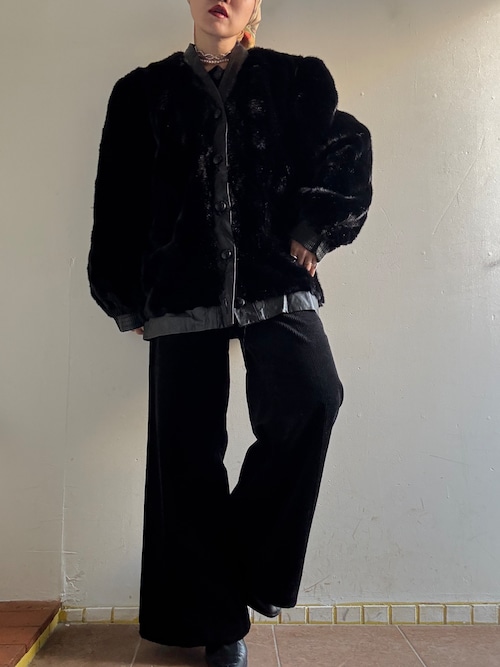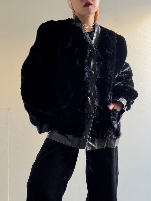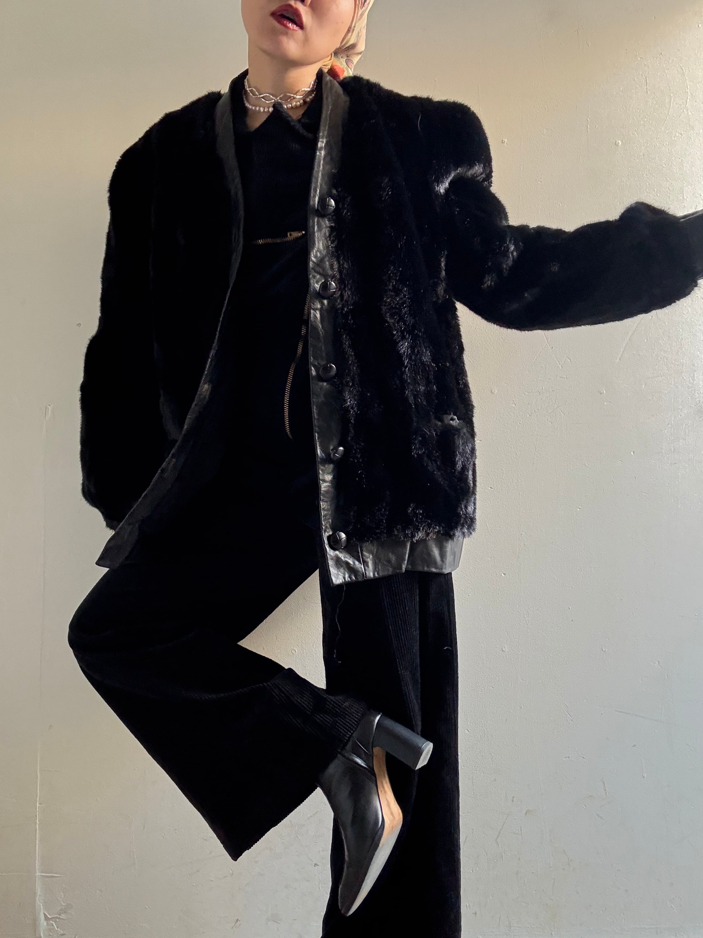 1980s Vintage "Lilli Ann" Eco Fur/Leather Collarless Blouson