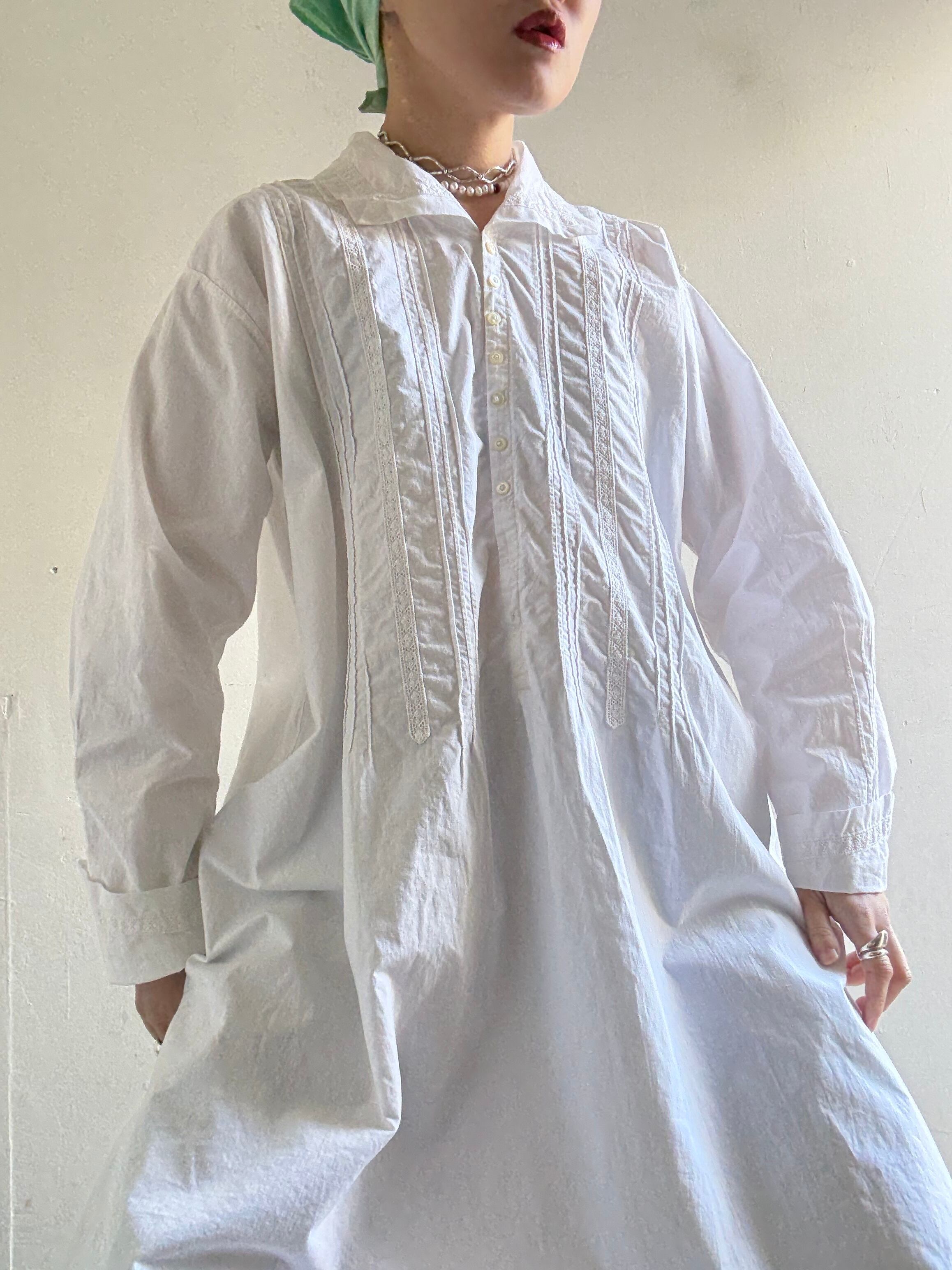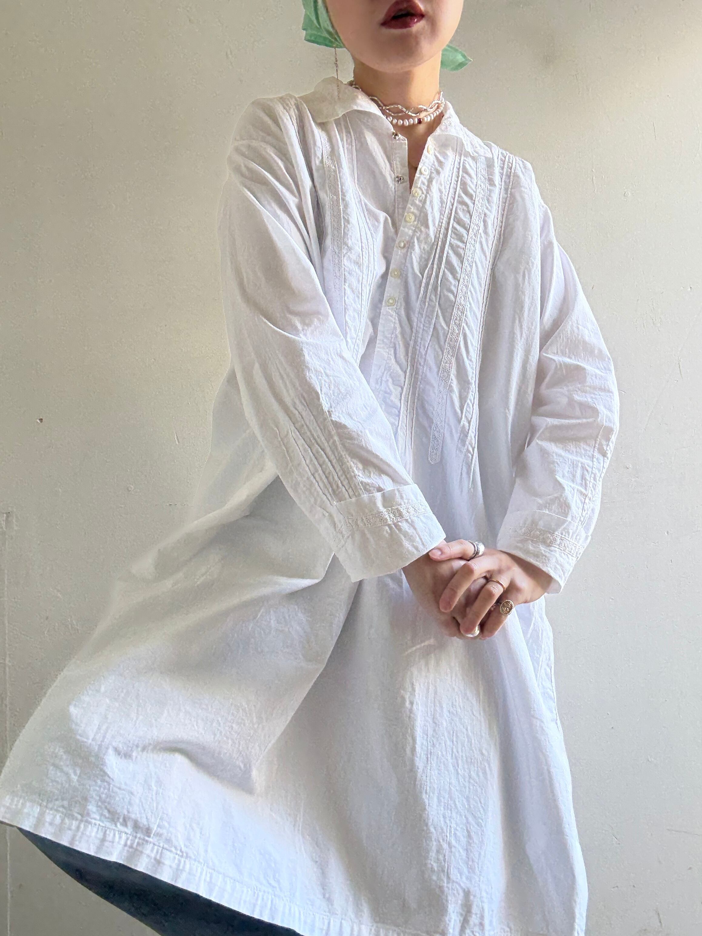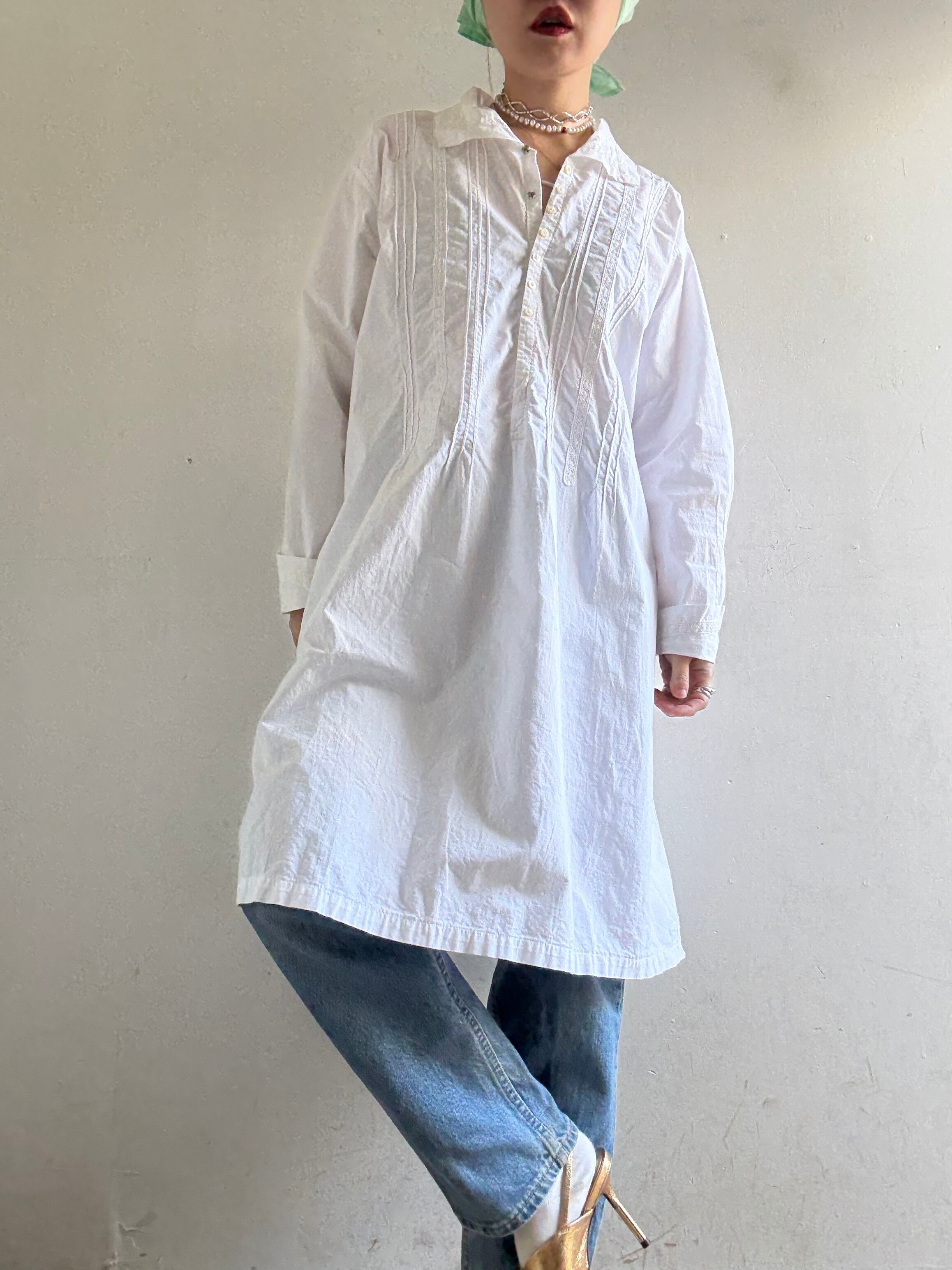 40-50s Vintage White Cotton Dress