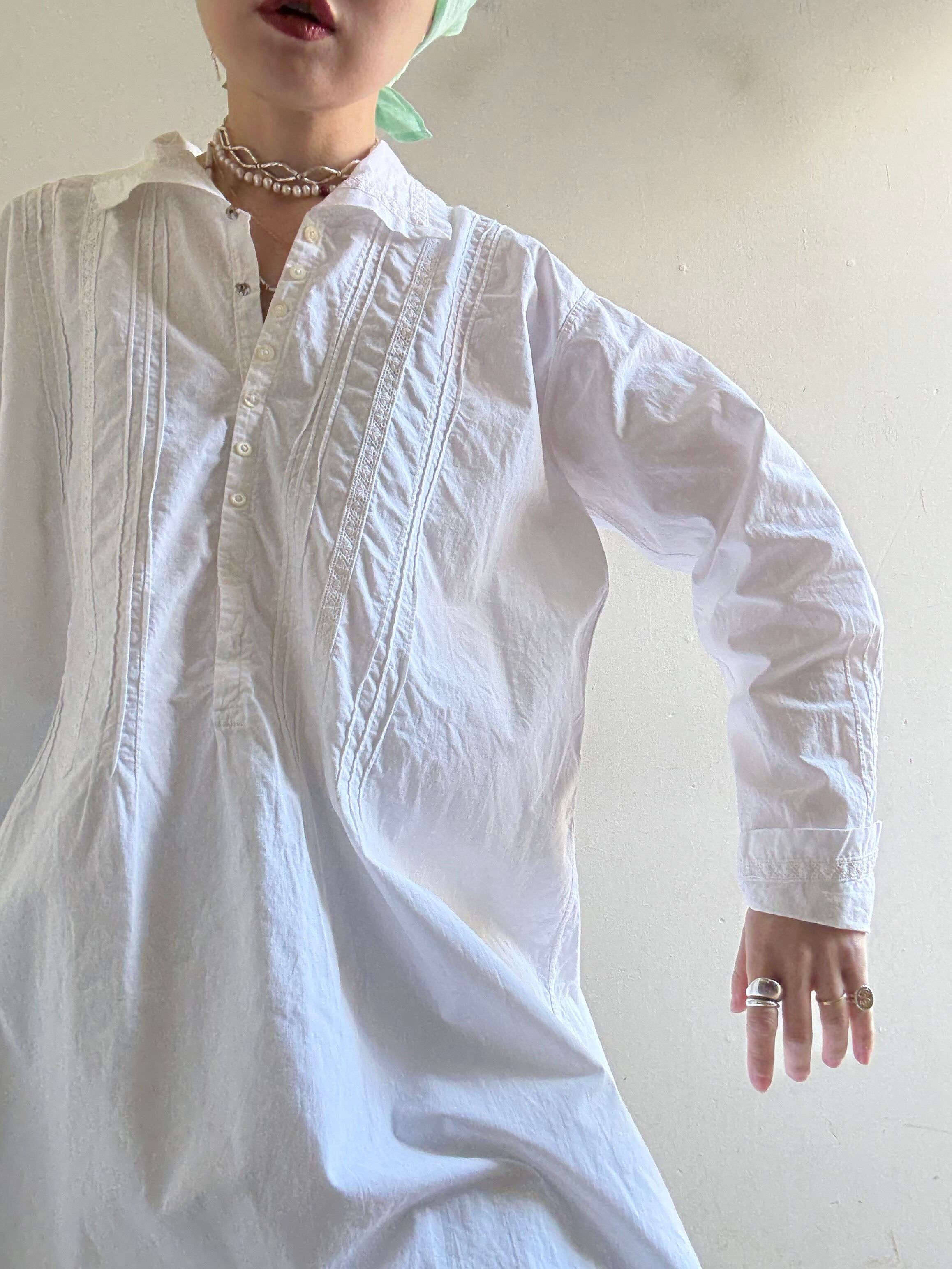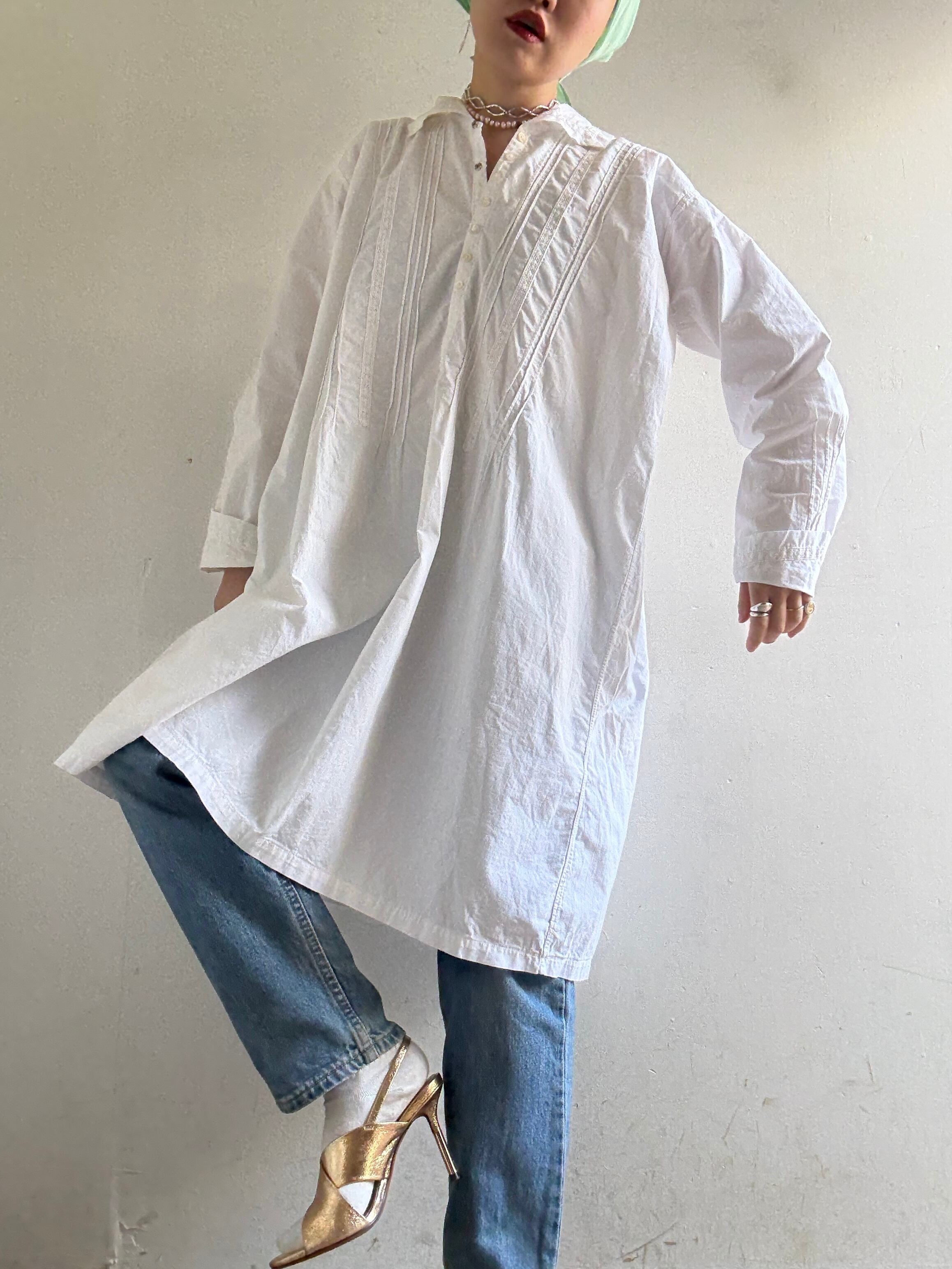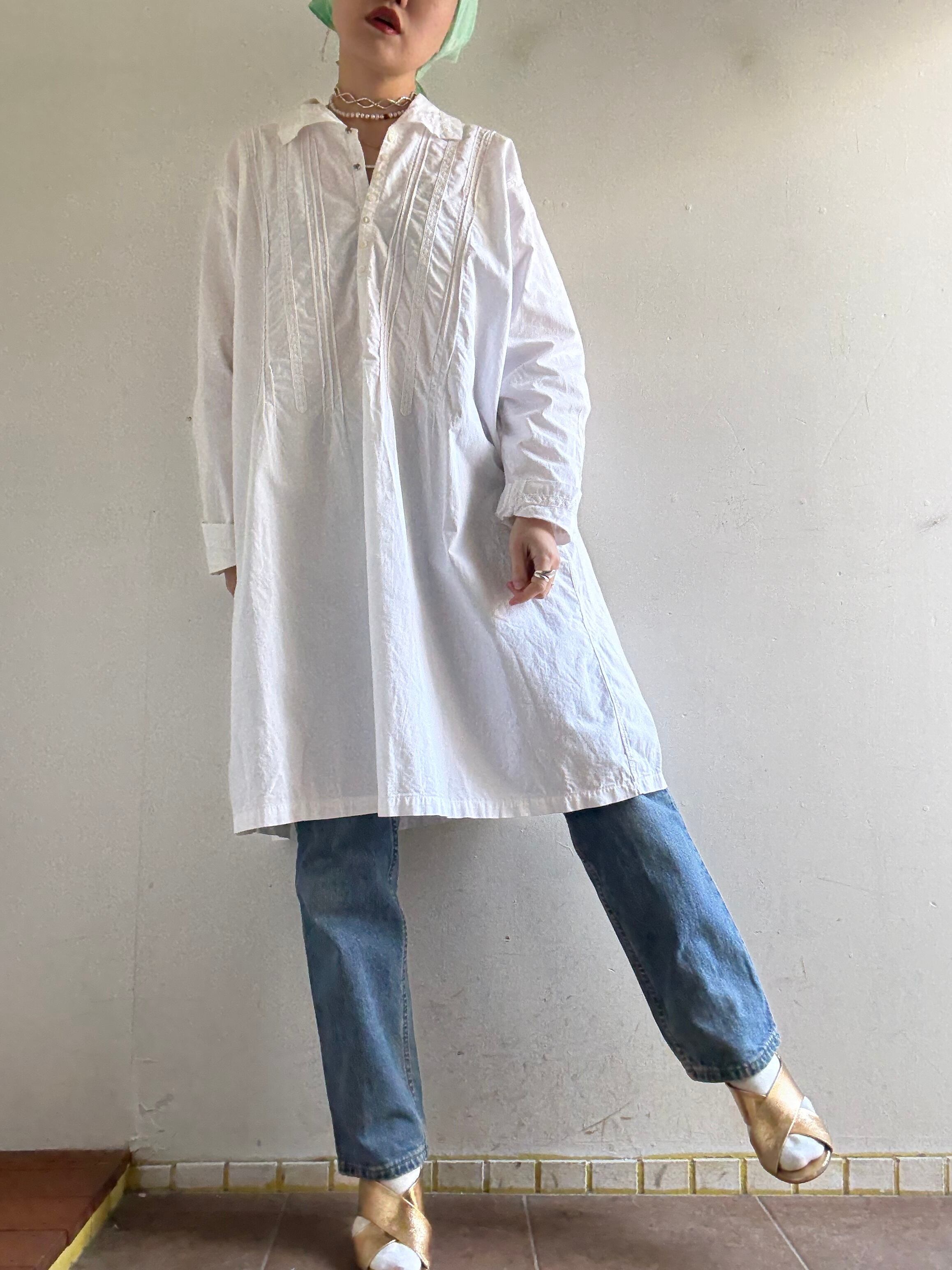 40-50s Vintage White Cotton Dress