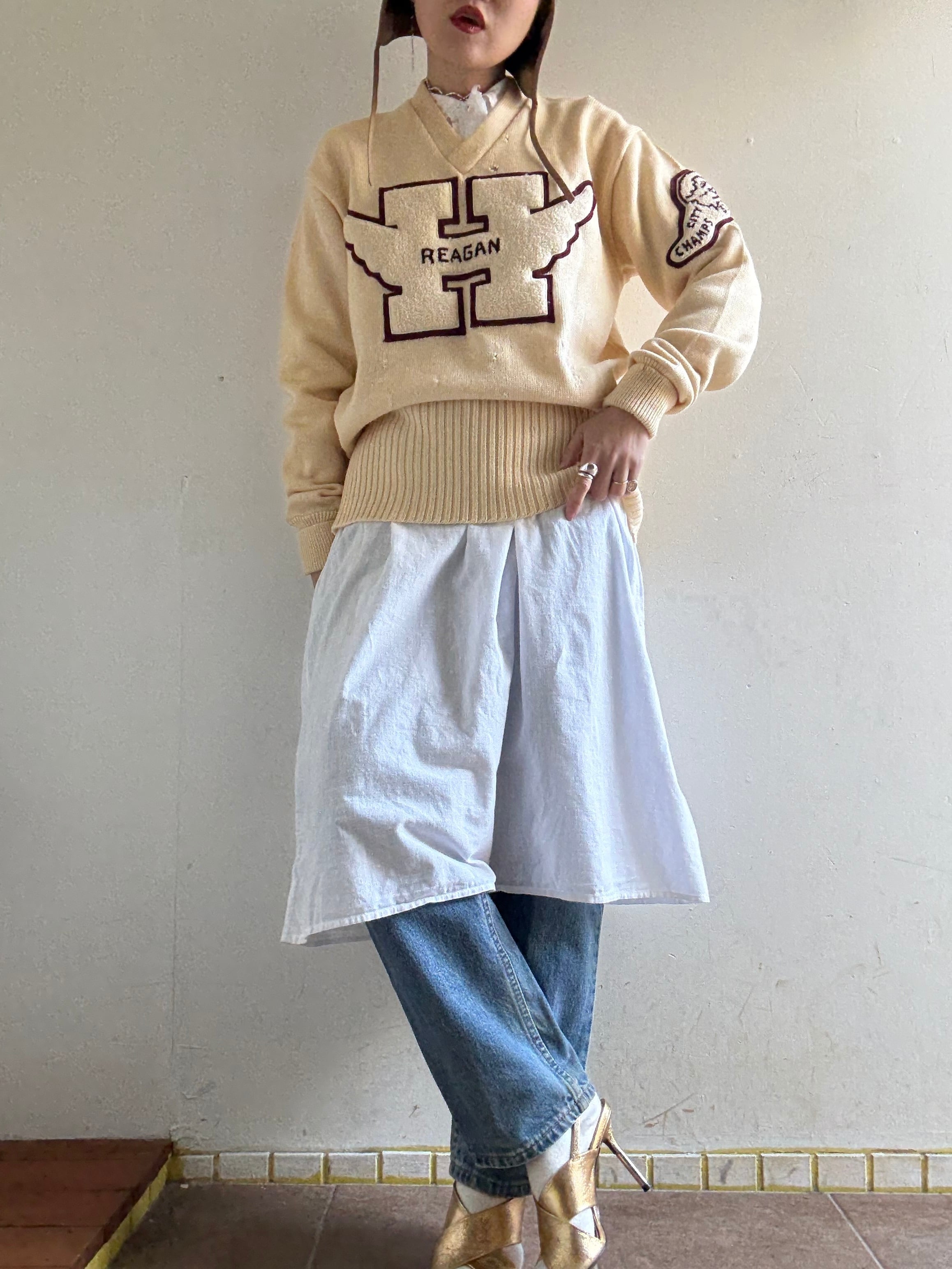 50-60s Vintage Lettered Knit Top