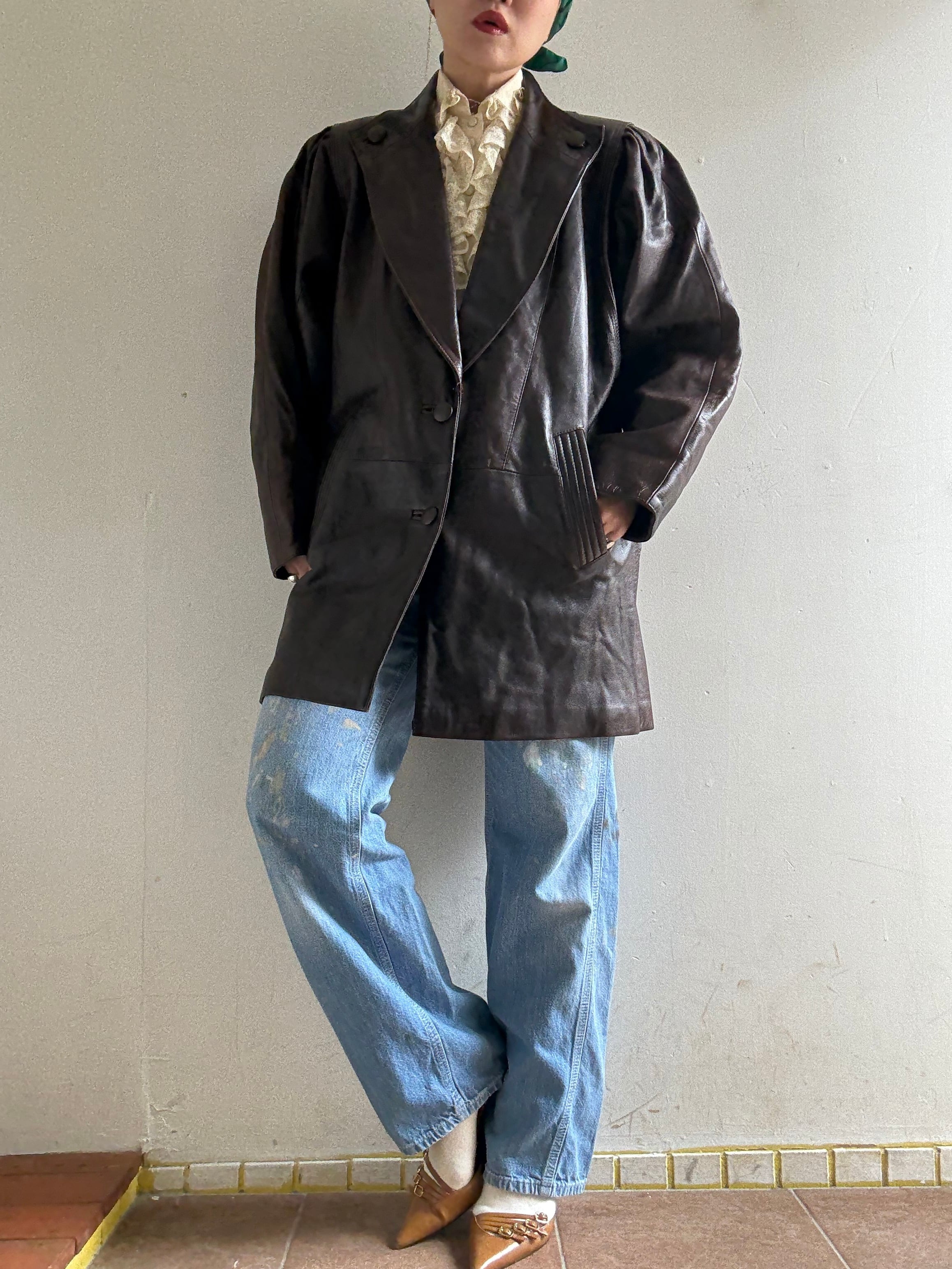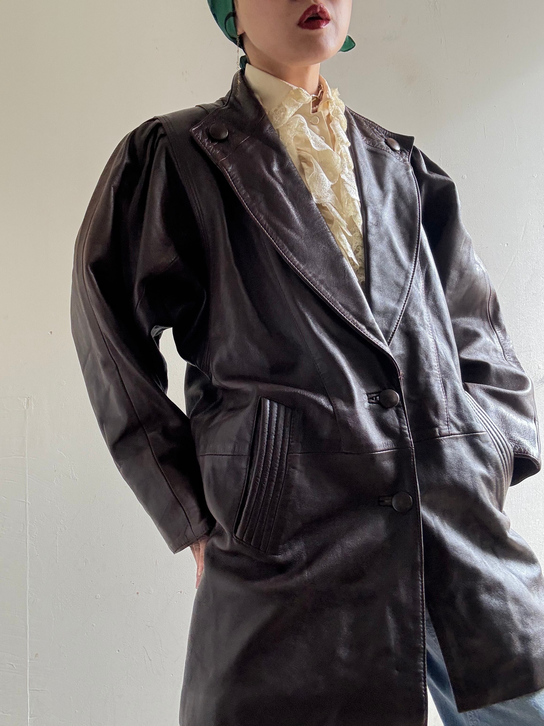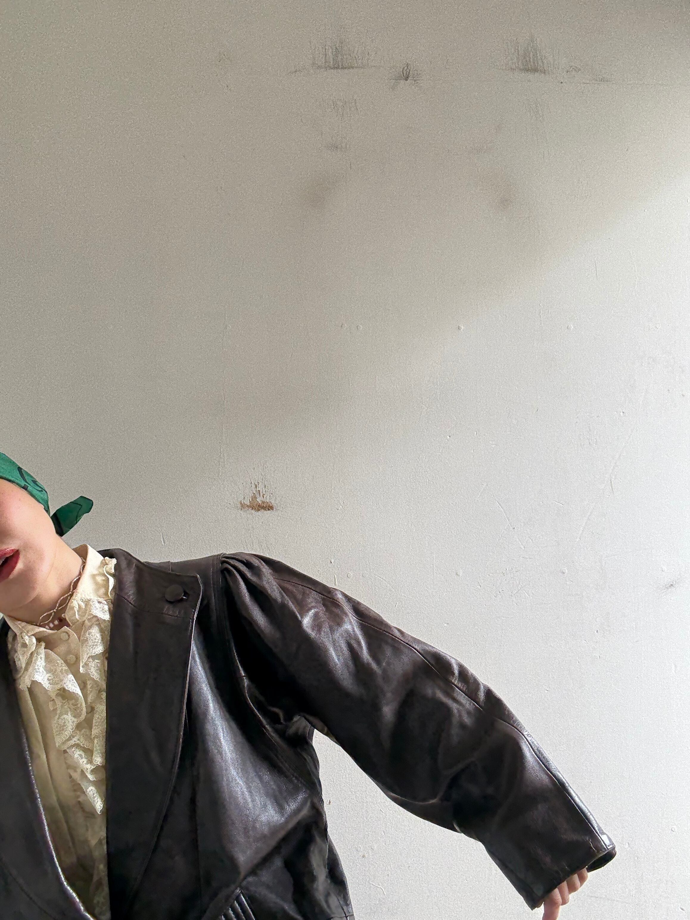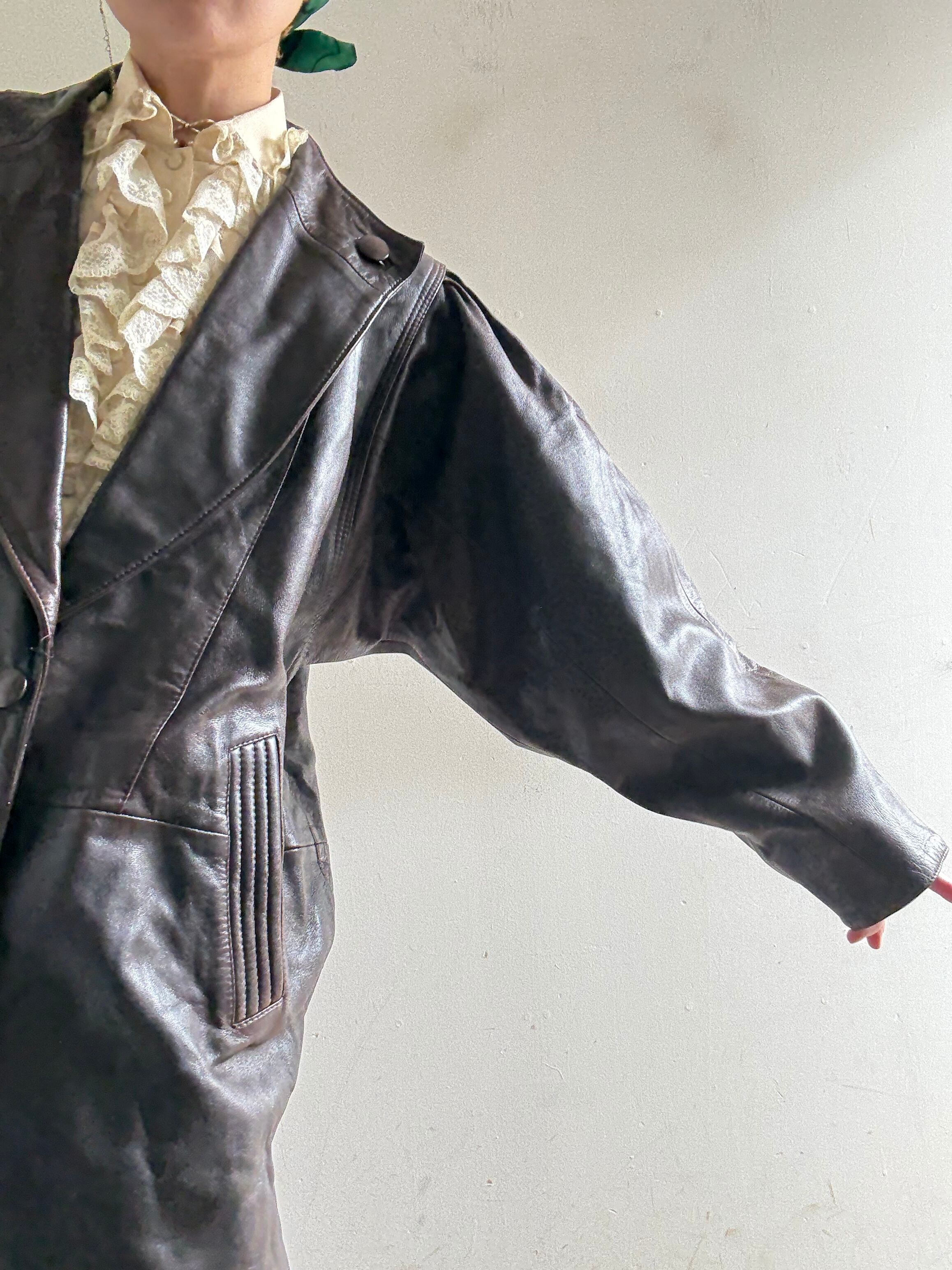 70-80s Vintage Puff Sleeves Design Leather Jacket