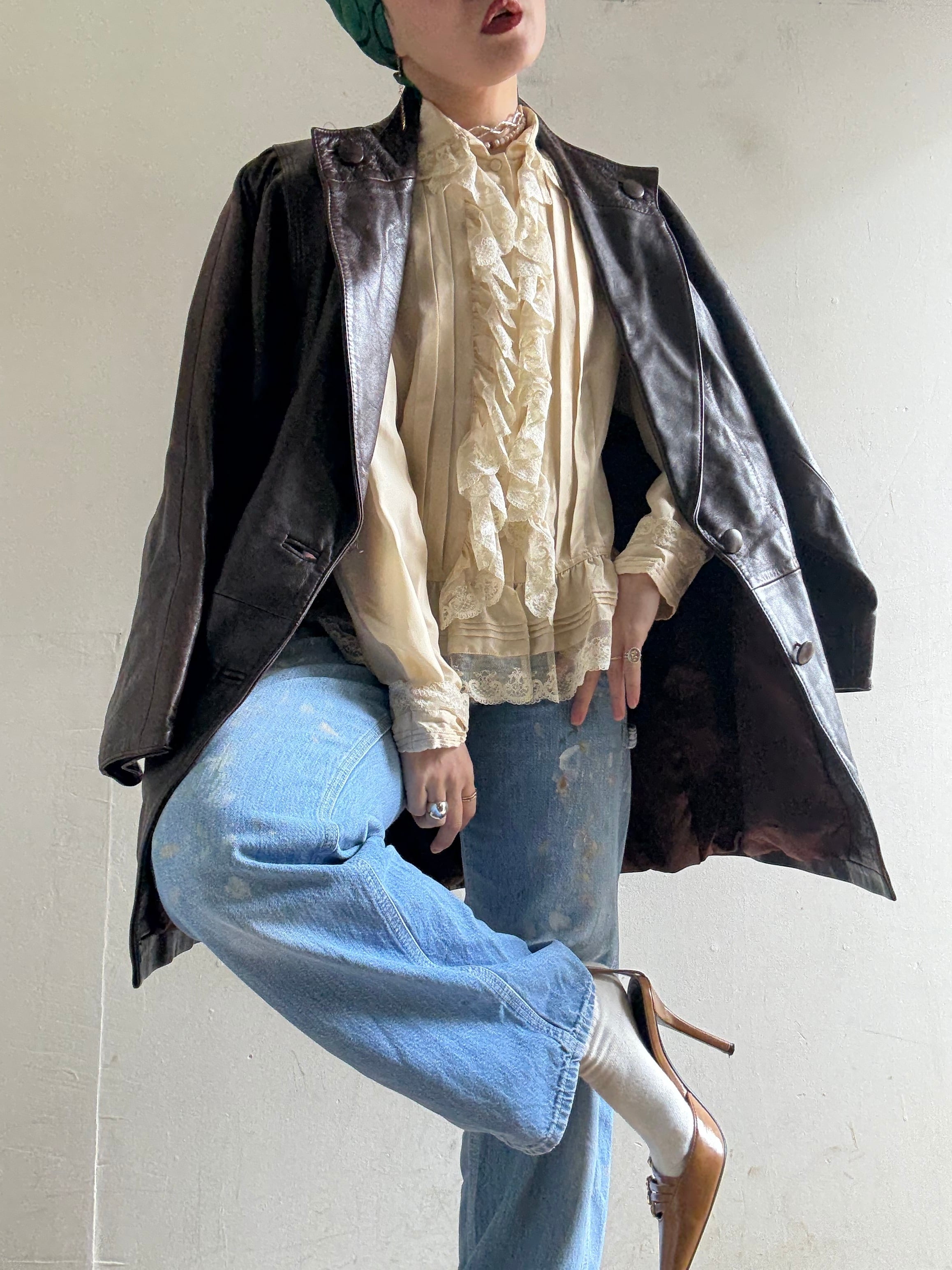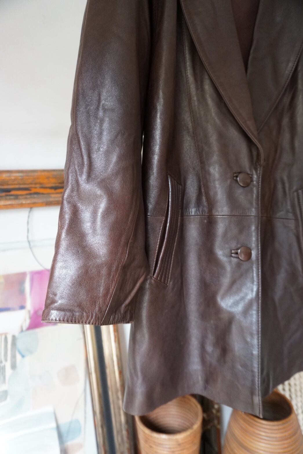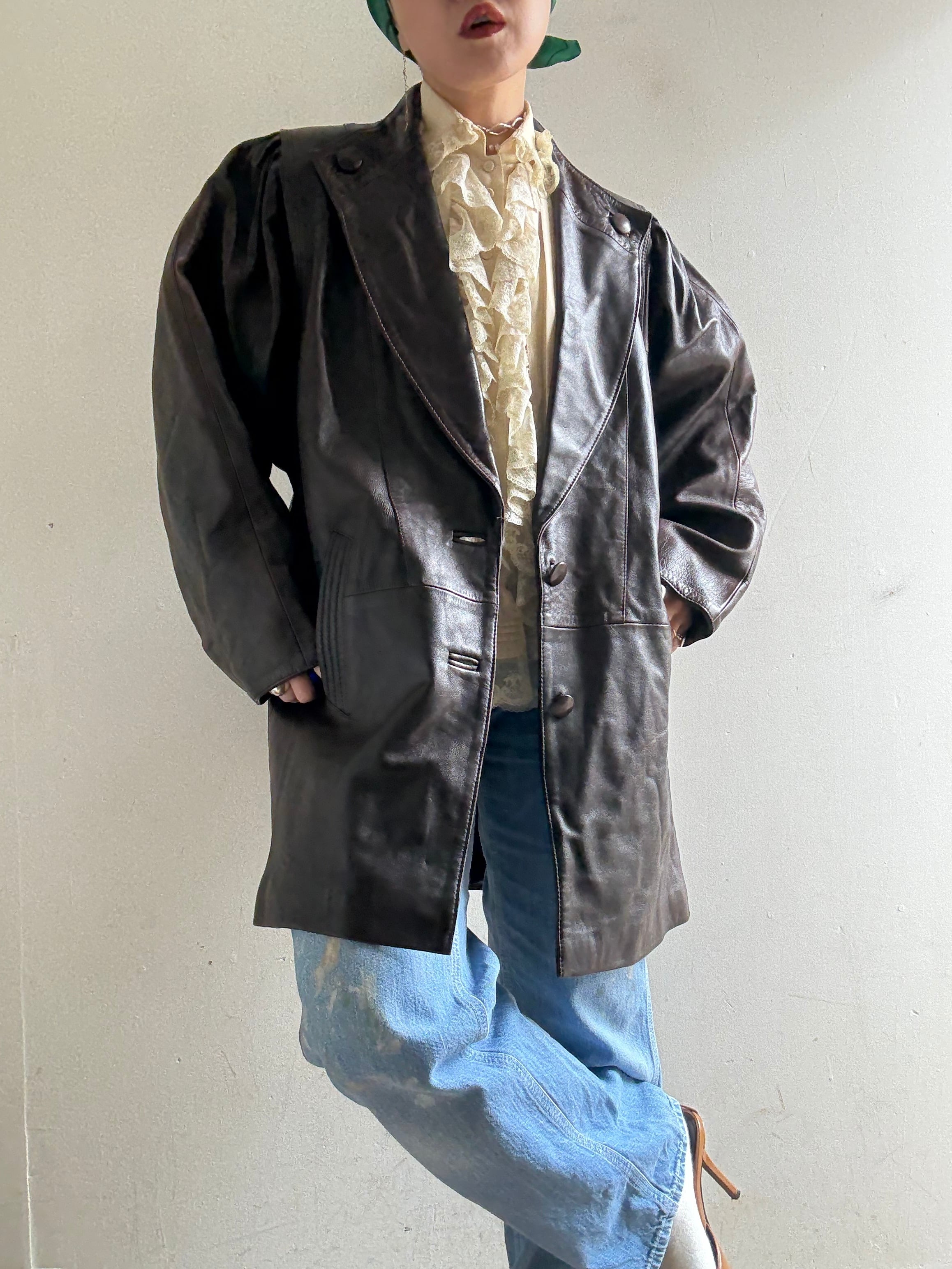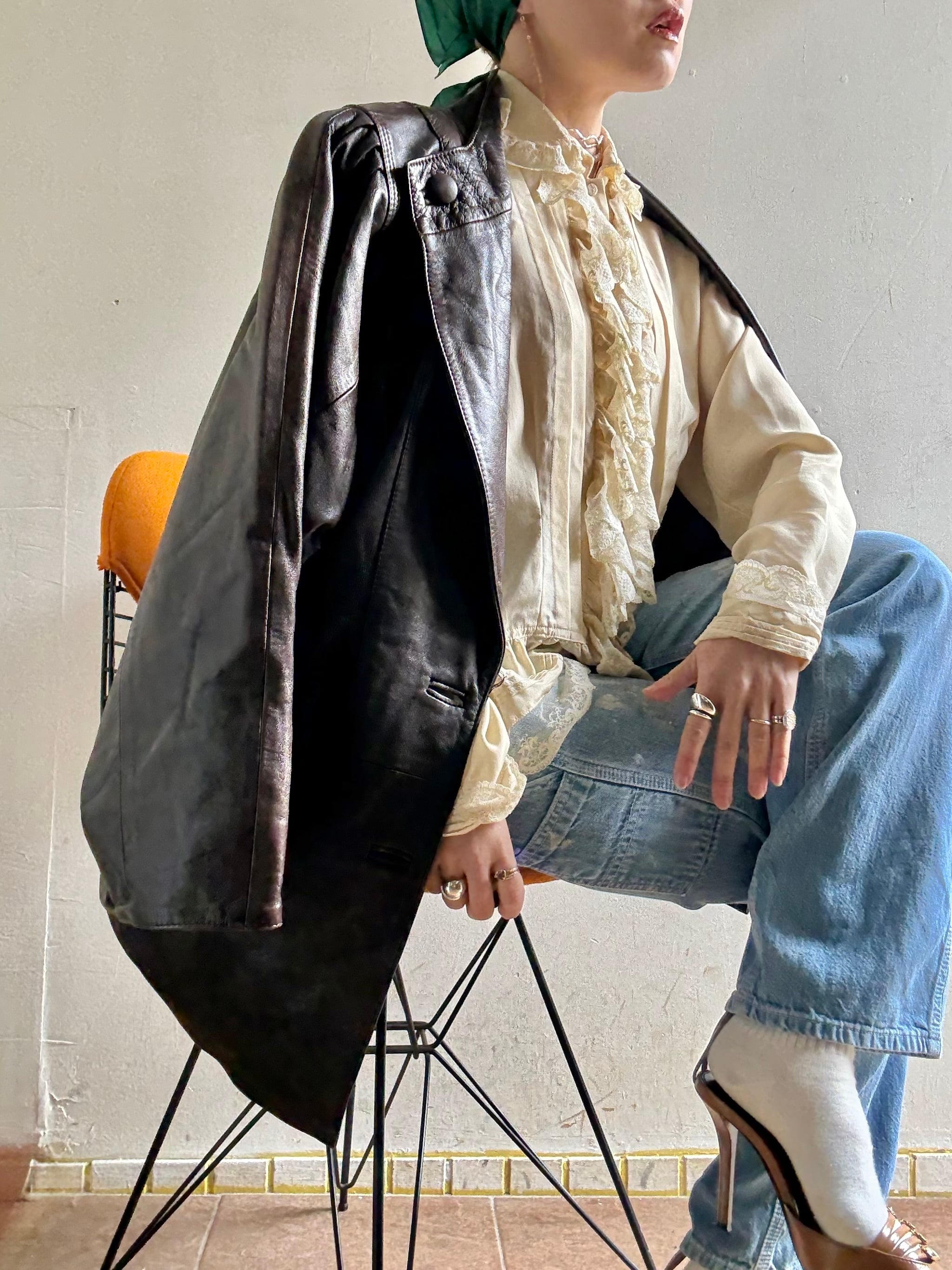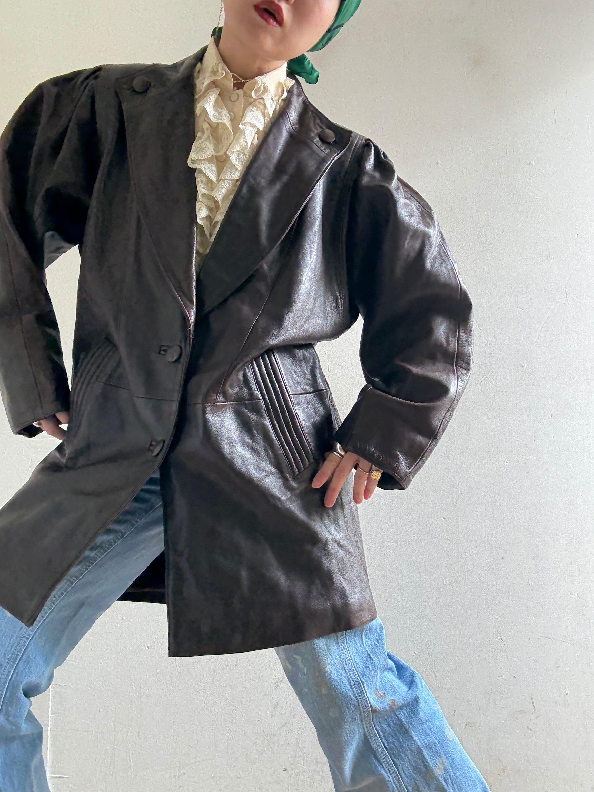 70-80s Vintage Puff Sleeves Design Leather Jacket