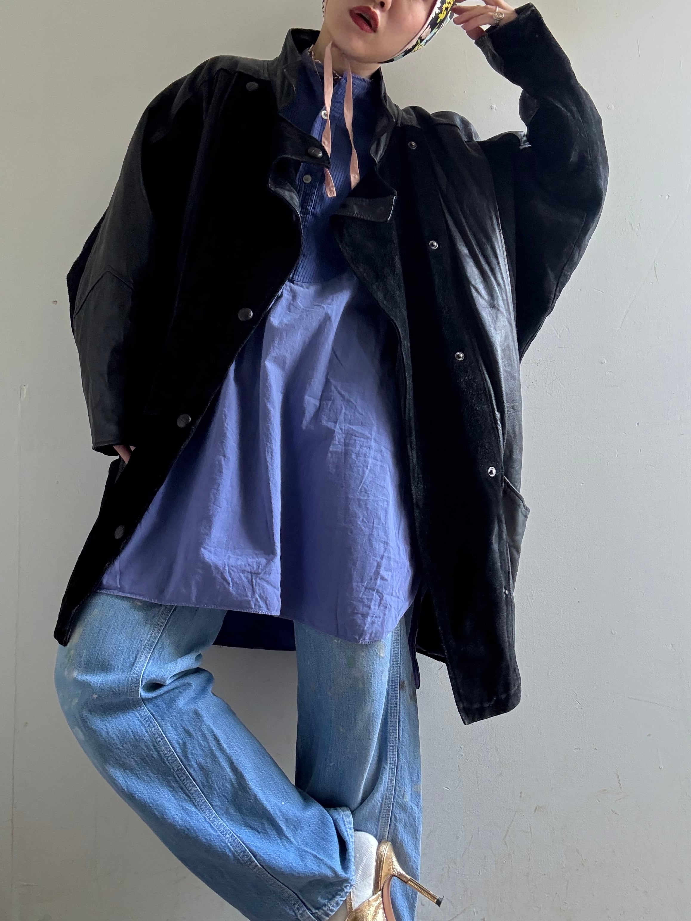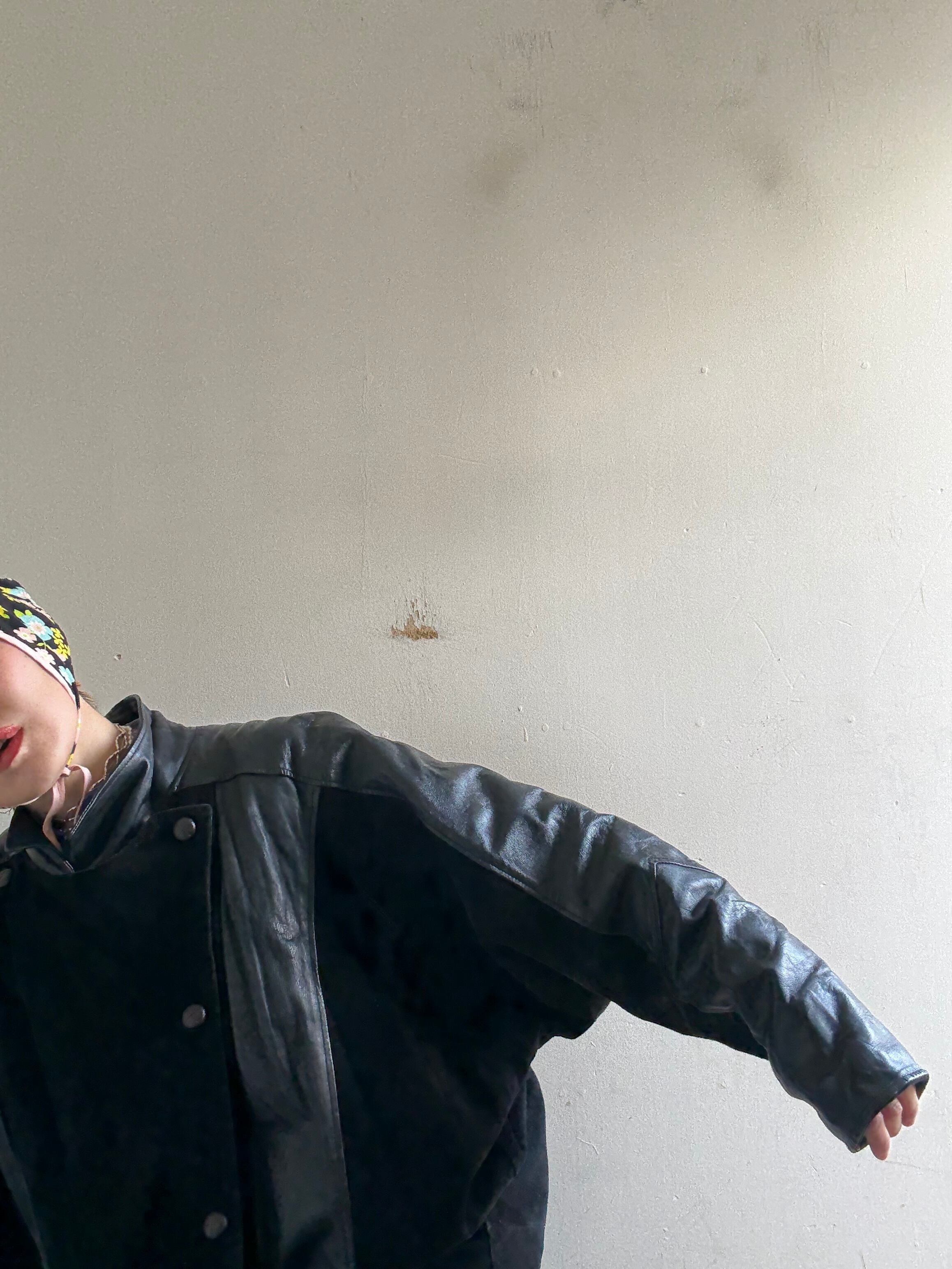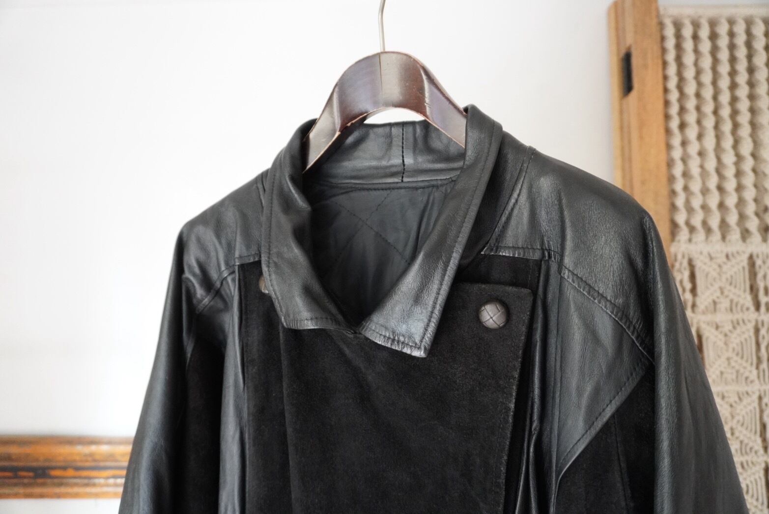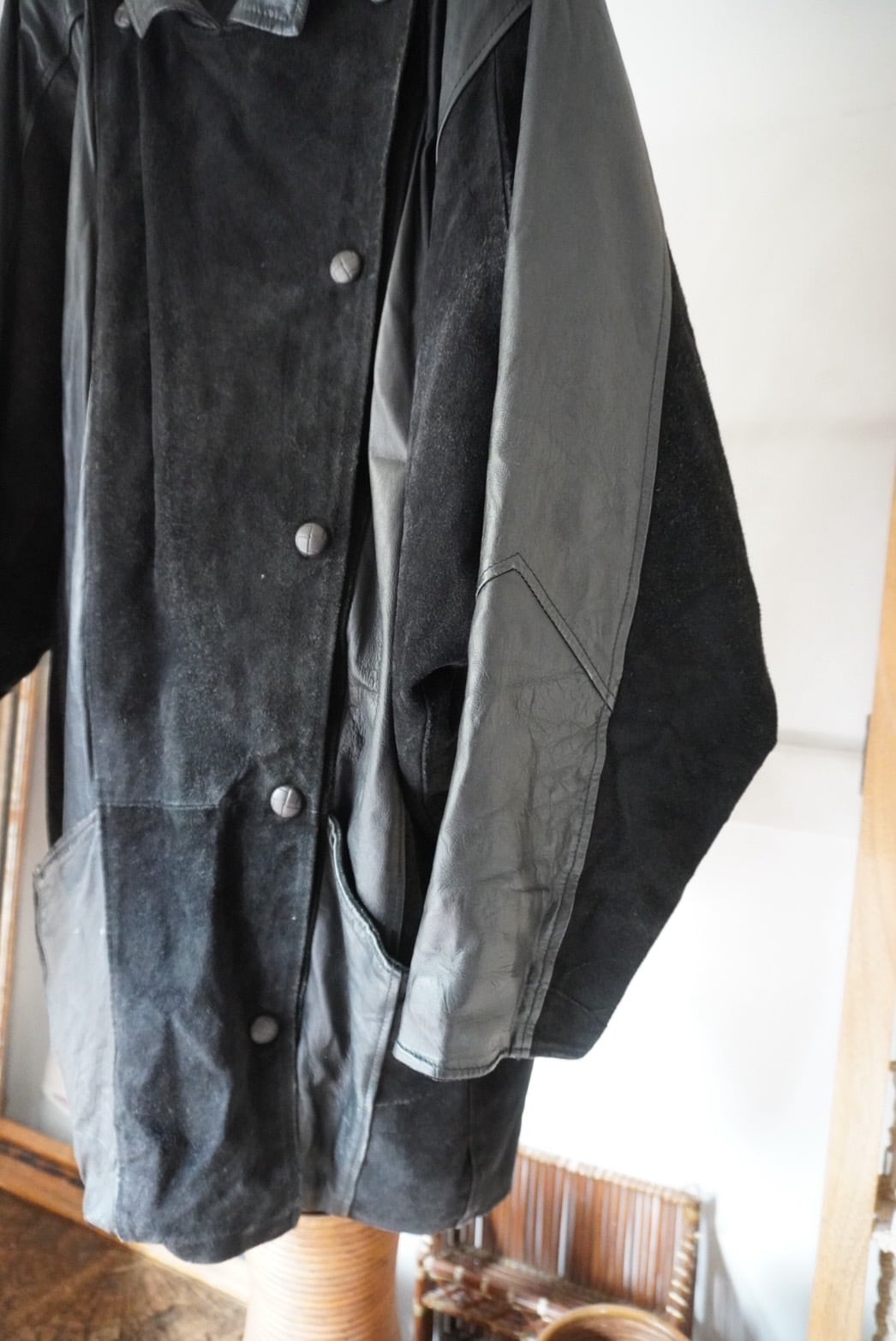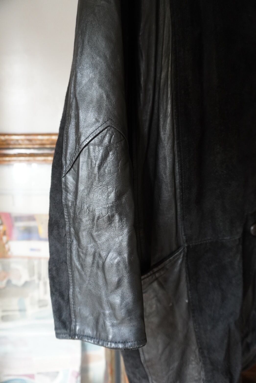 1980s Vintage Double Buttons Leather/Nubuck Patchwork Coat