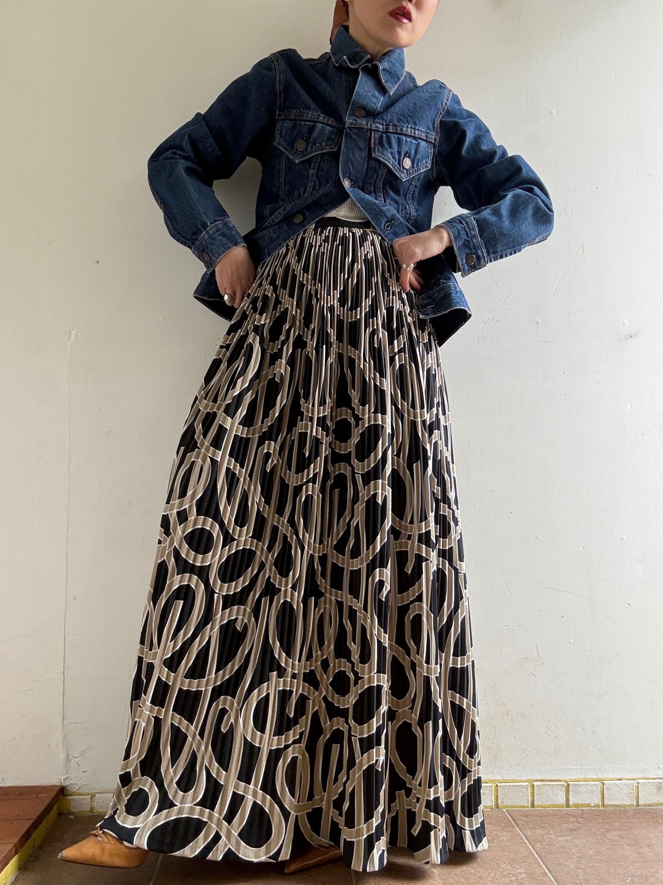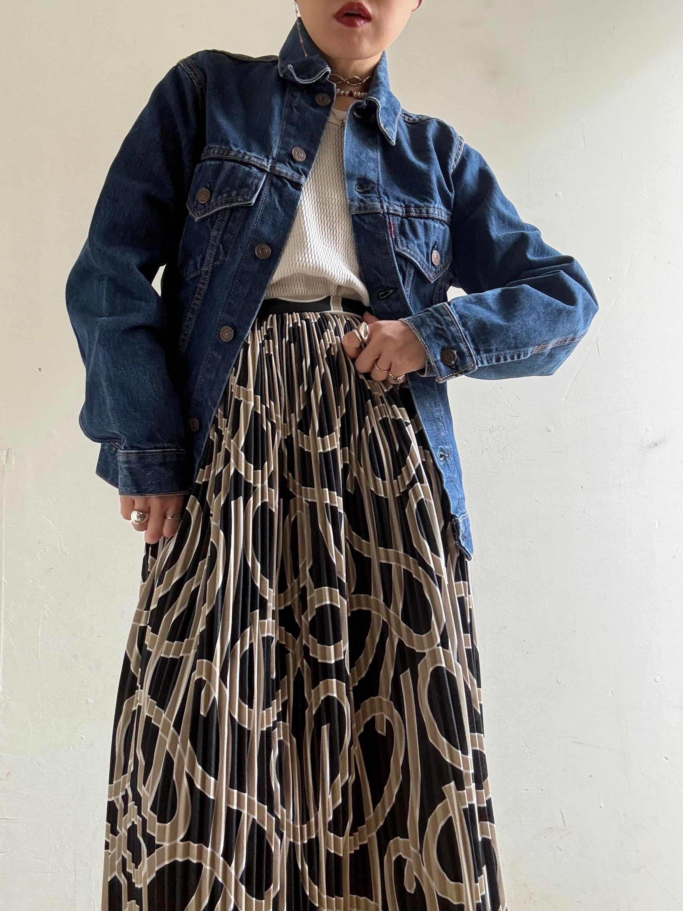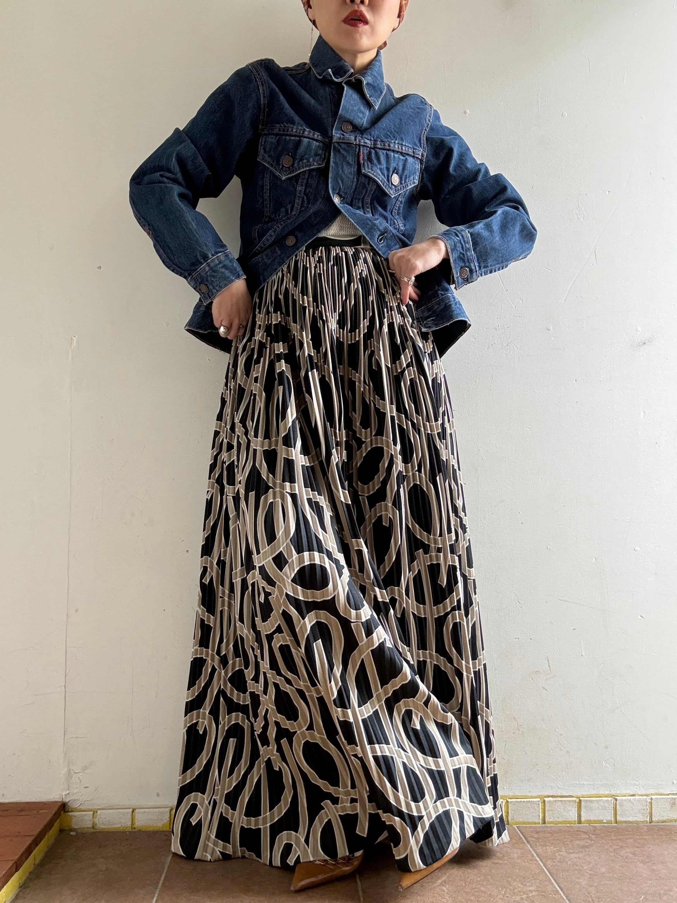 着丈:101cm ウエスト:34cm ヒップ:90cm material:unknown (model 身長154cm) 商品の詳細につきましては、2/10(Tue)のインスタグラムライブをご覧ください。 またこちらの商品はOnline Storeでは2/11(Wed)12時よりお買い求めいただけます。