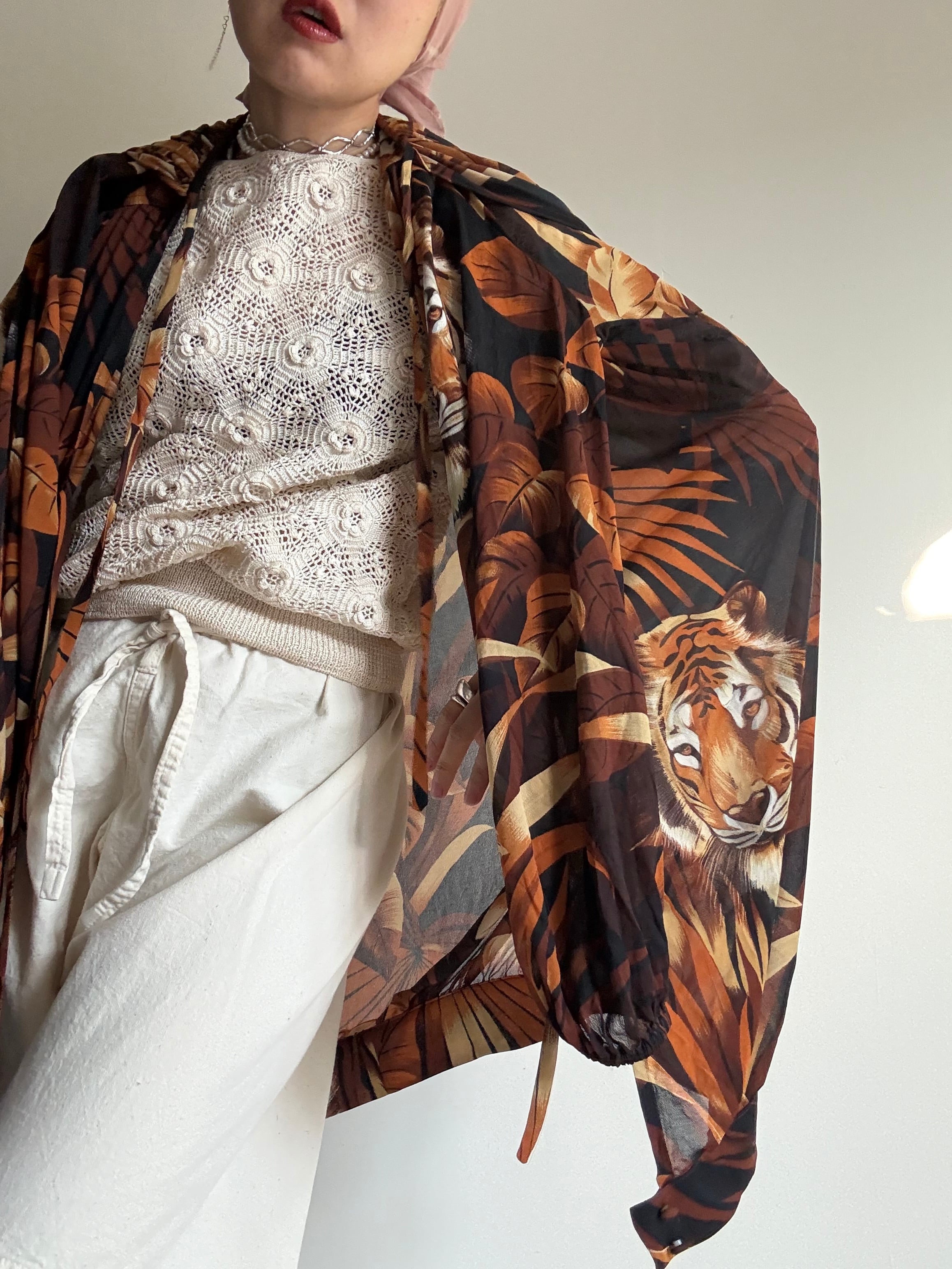 "Carny Couture" 80s Vintage Tiger Sheer Robe