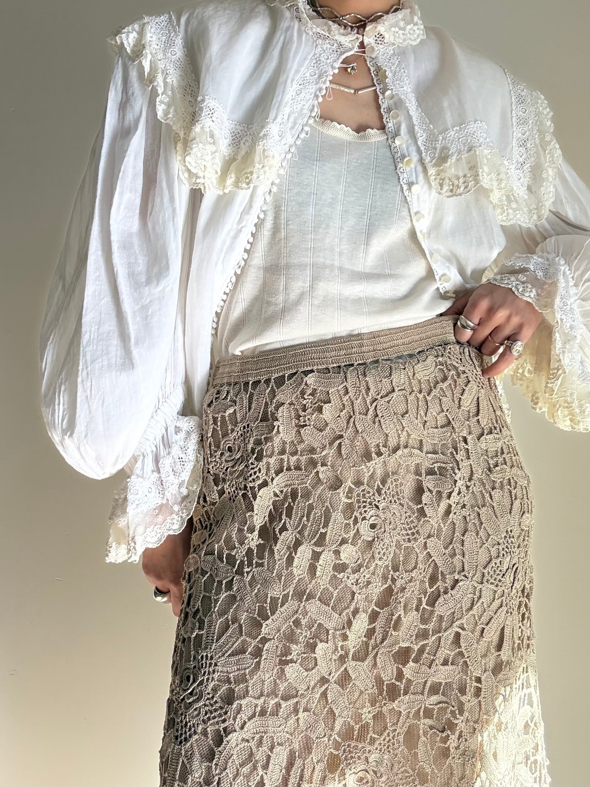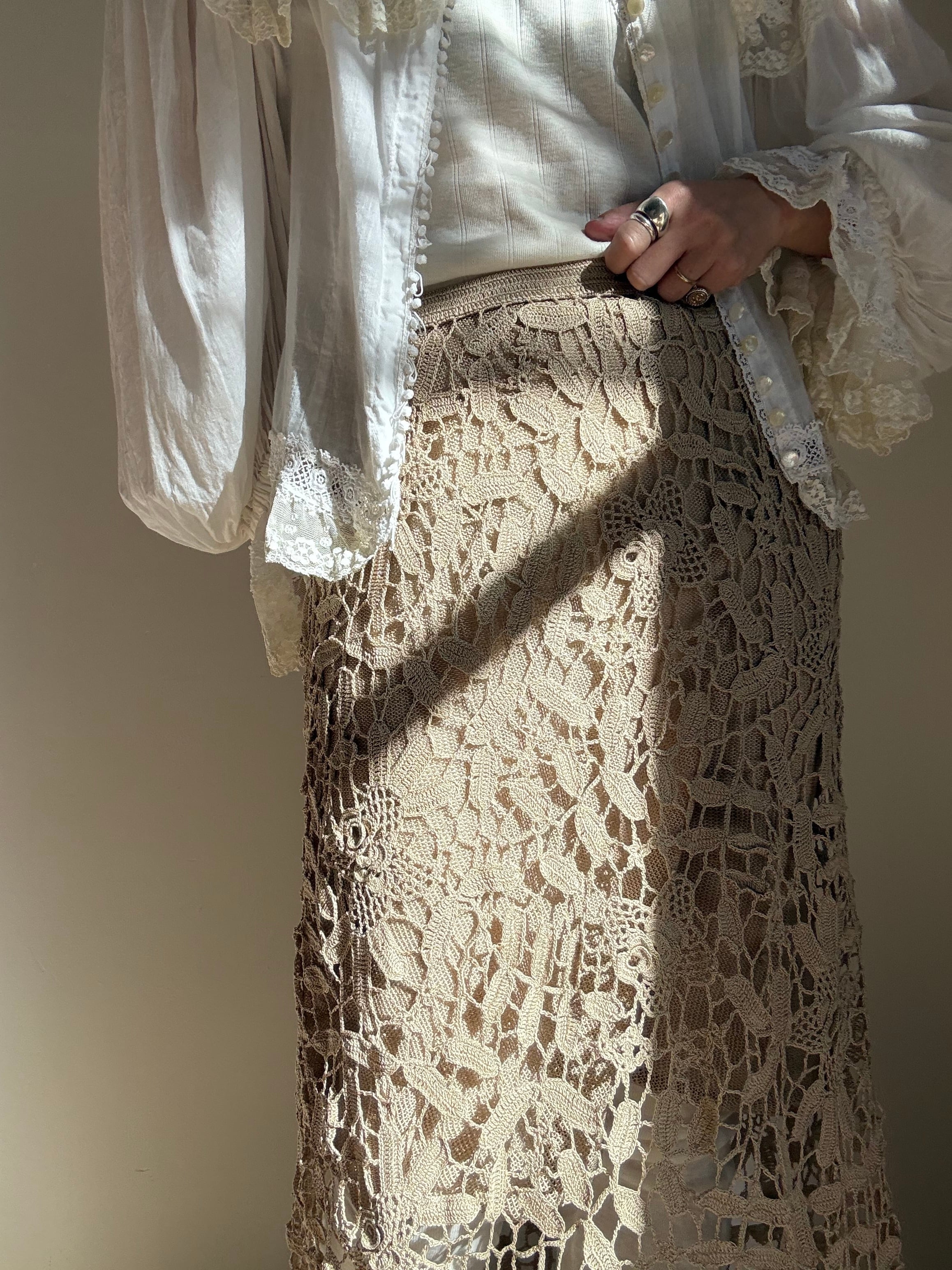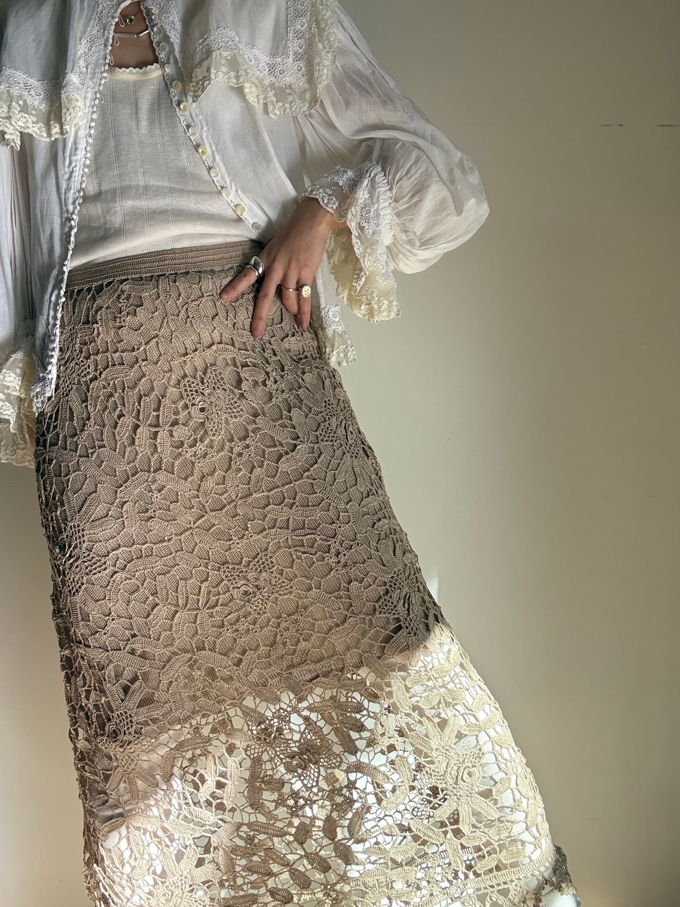 70s Deadstock "Lim's" Elastic Crochet Skirt