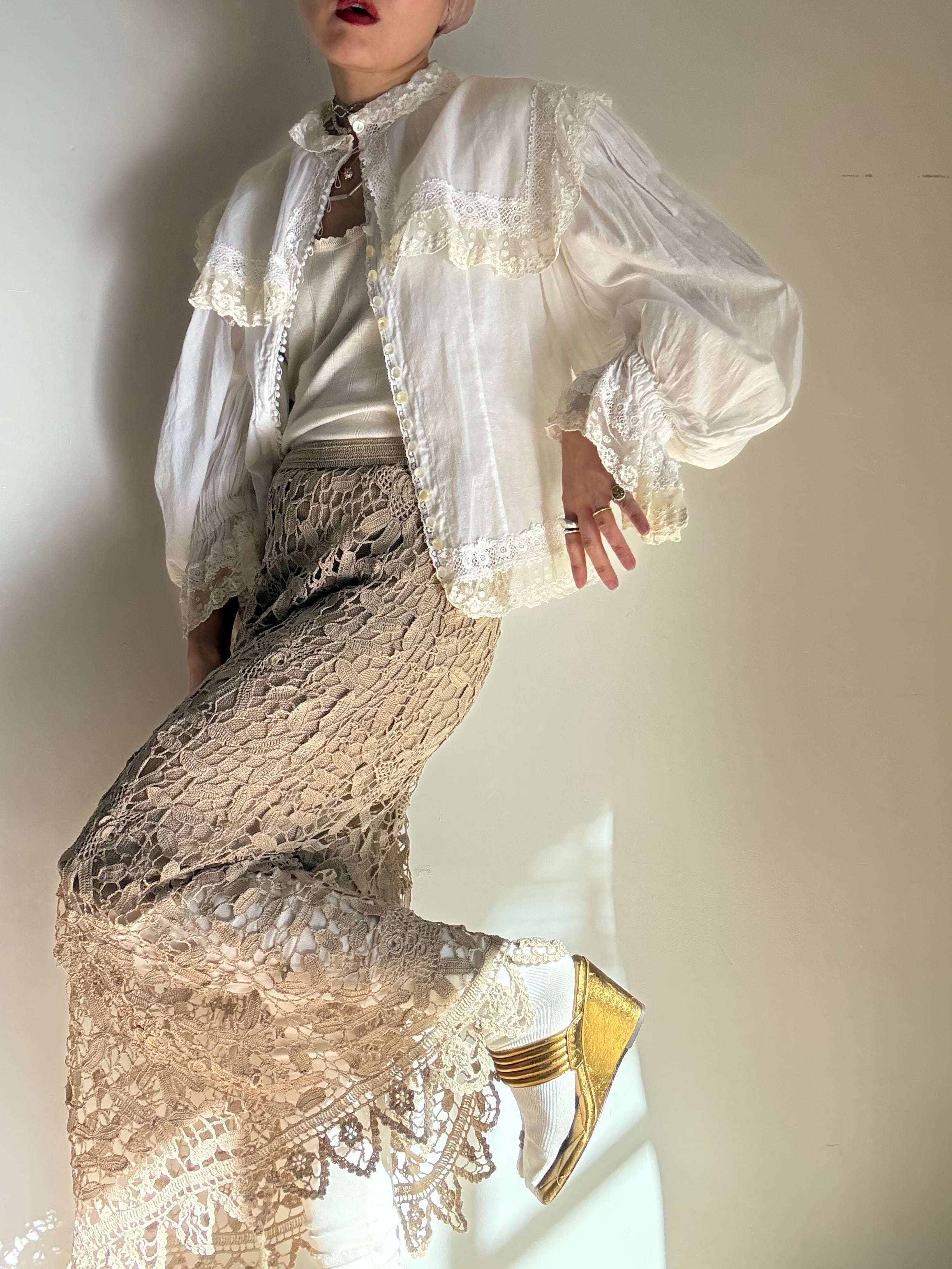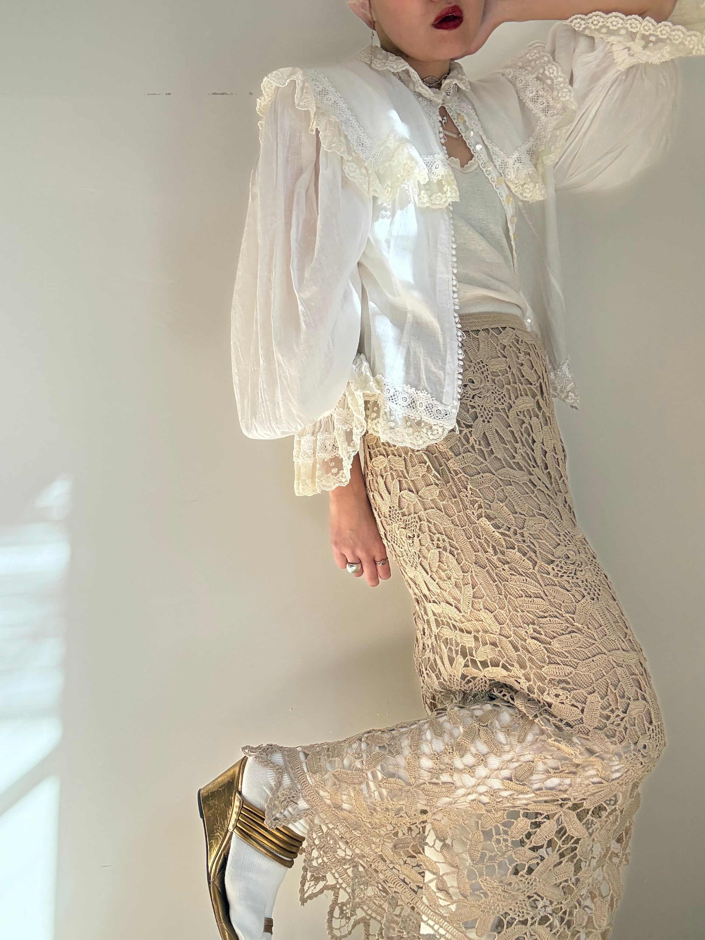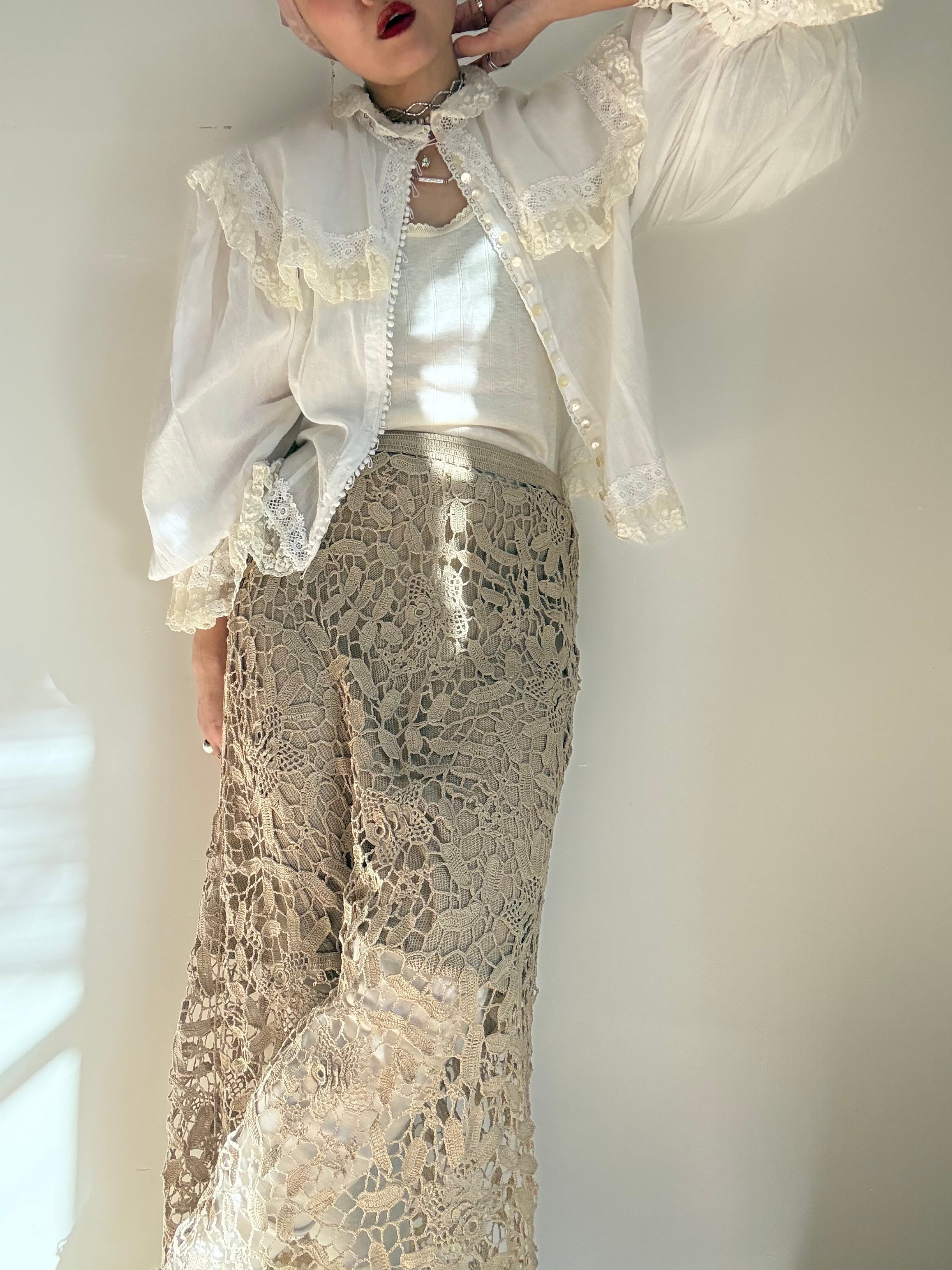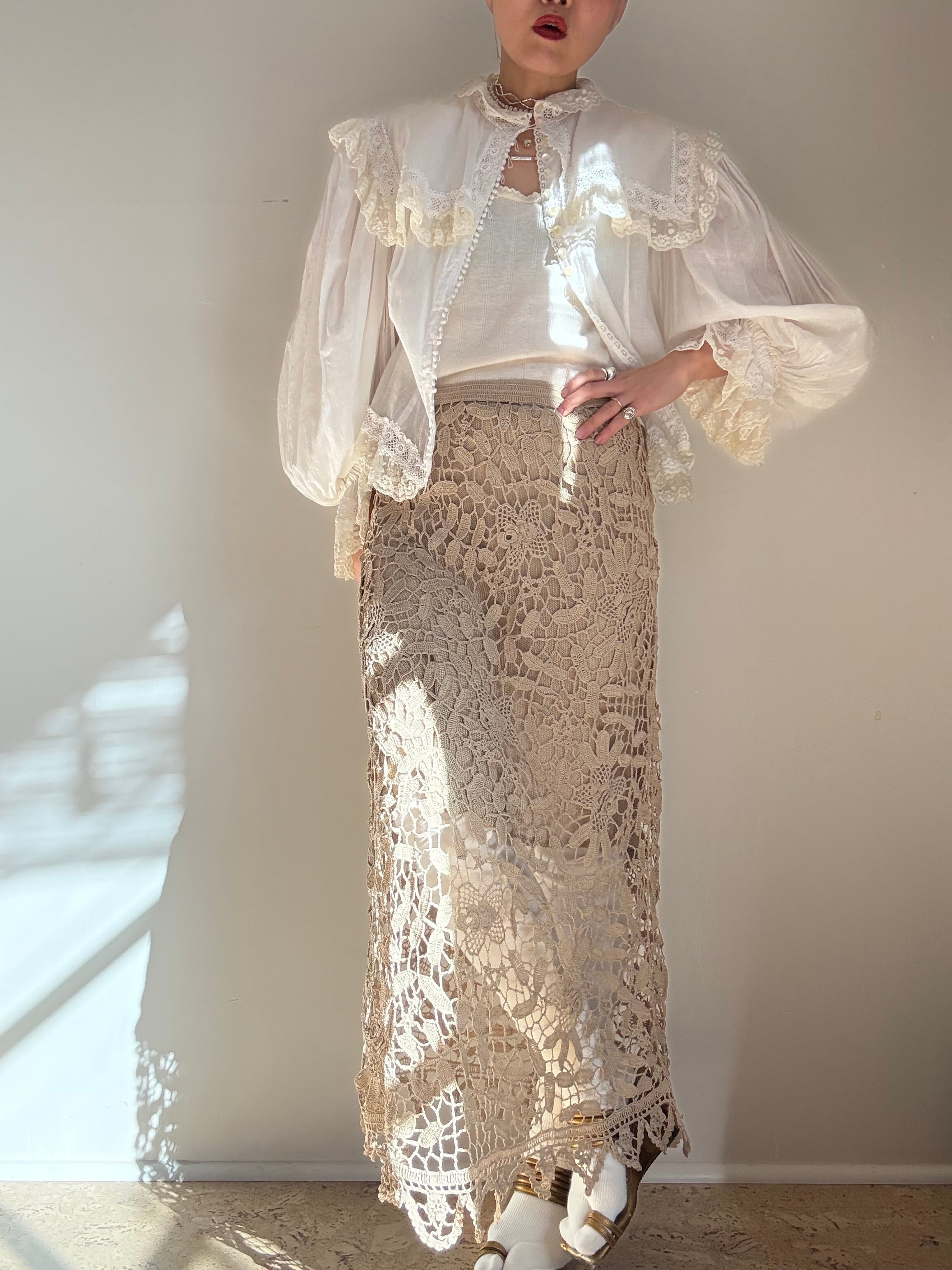 70s Deadstock "Lim's" Elastic Crochet Skirt