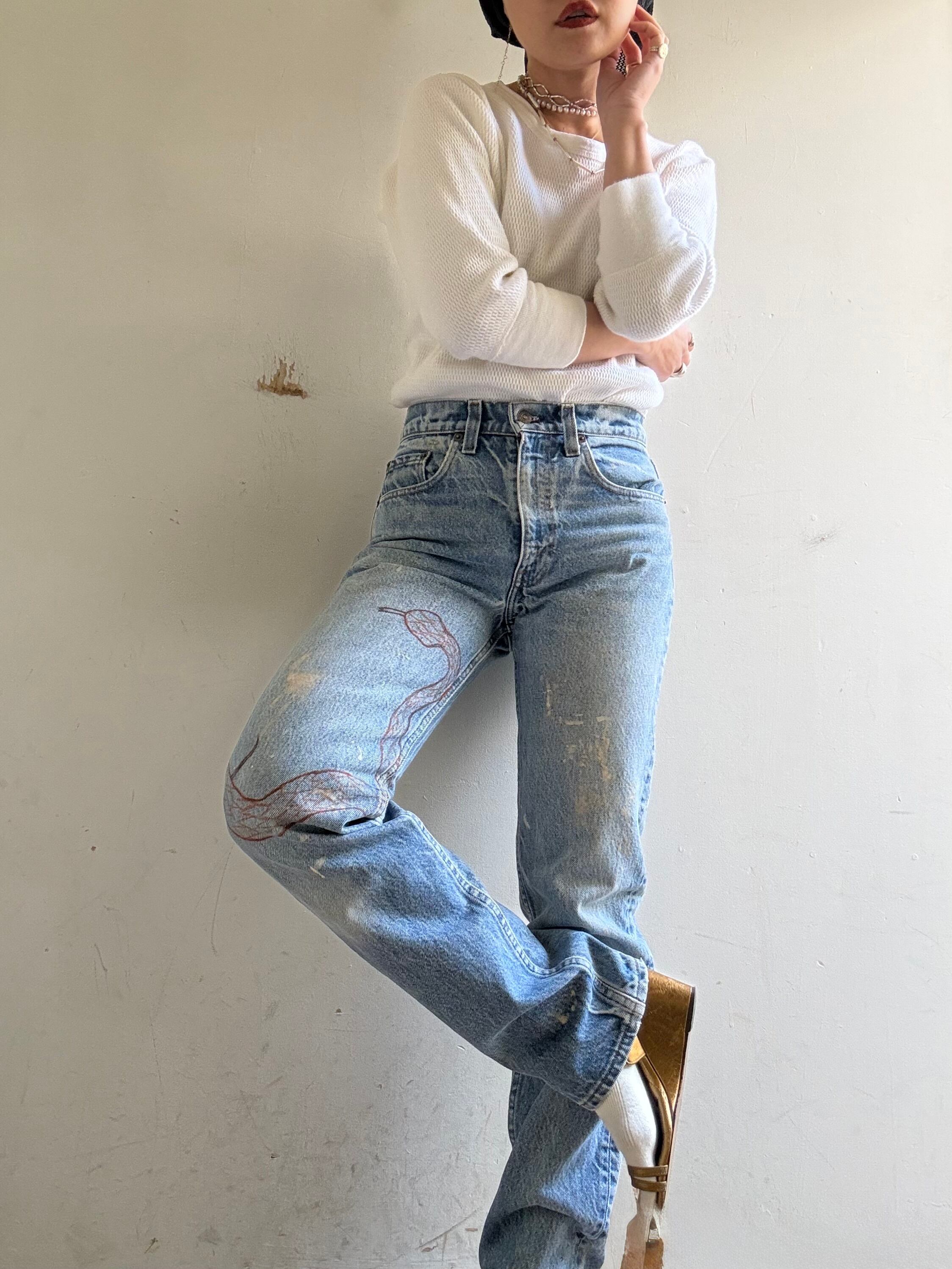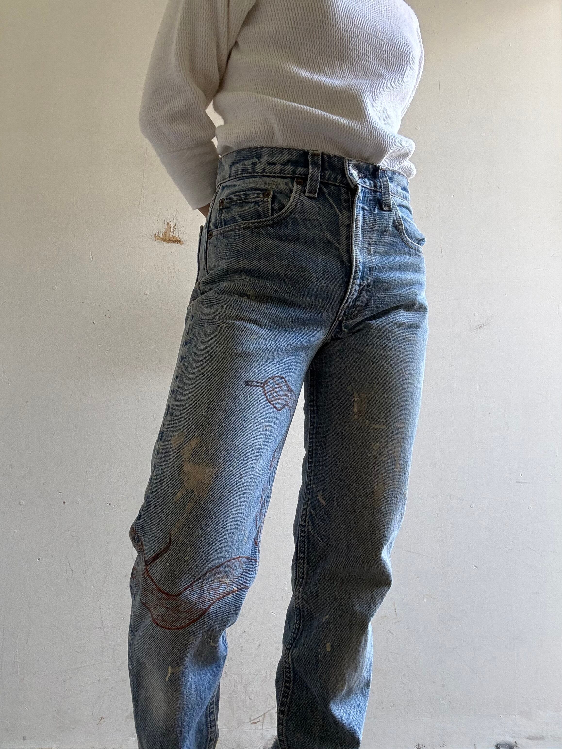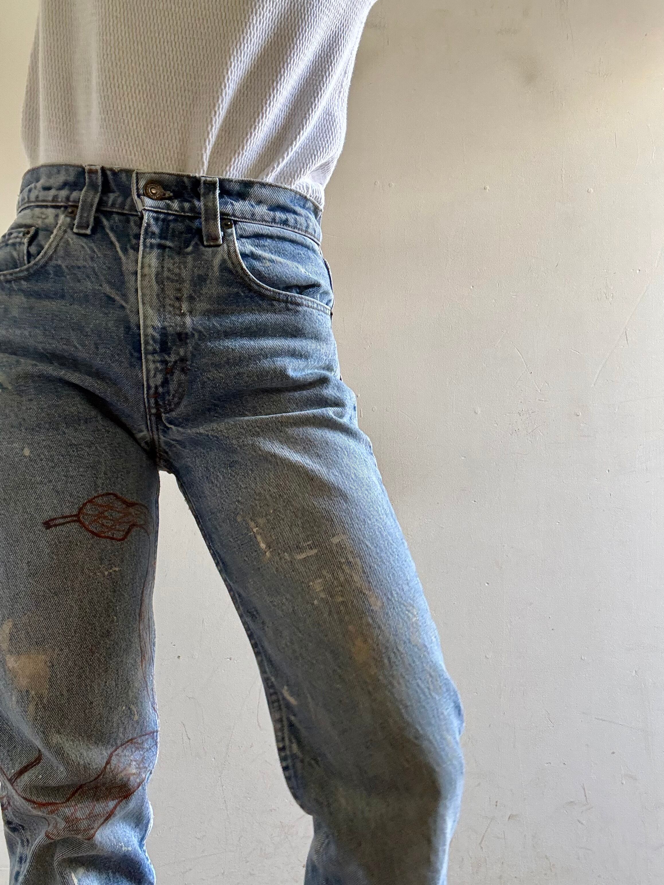 1990s Vintage Levi's 505 Art Painted Denim Pants