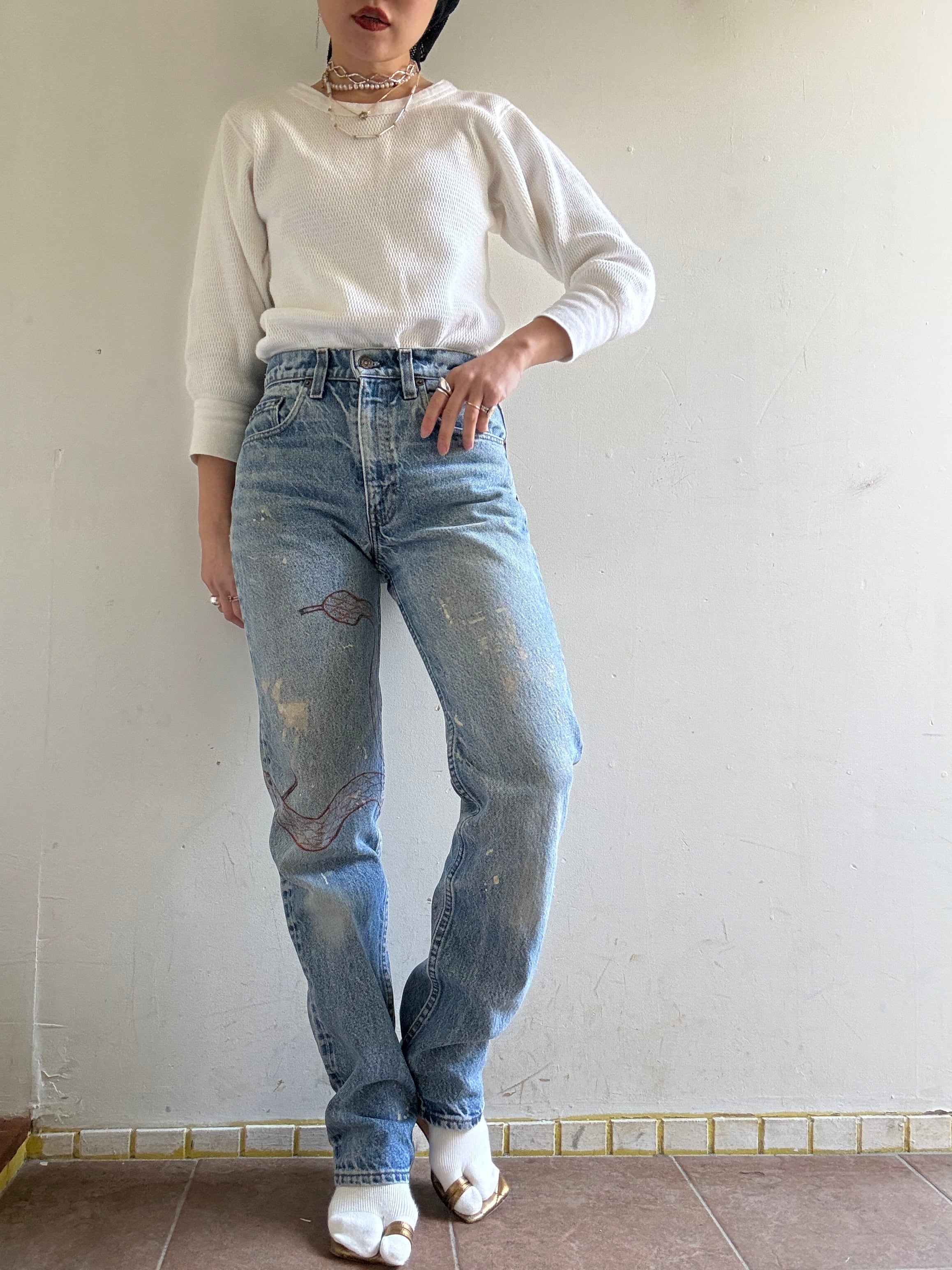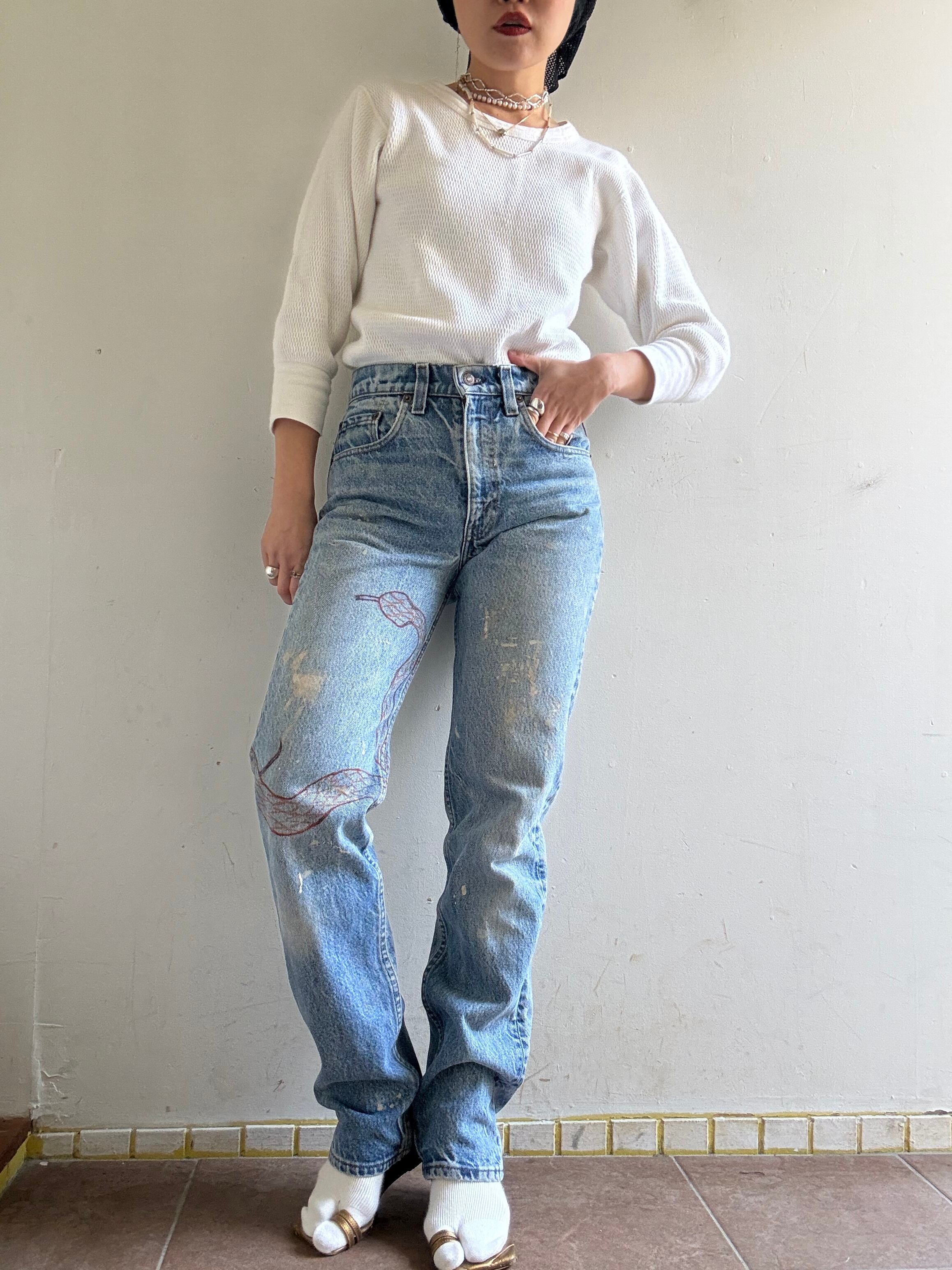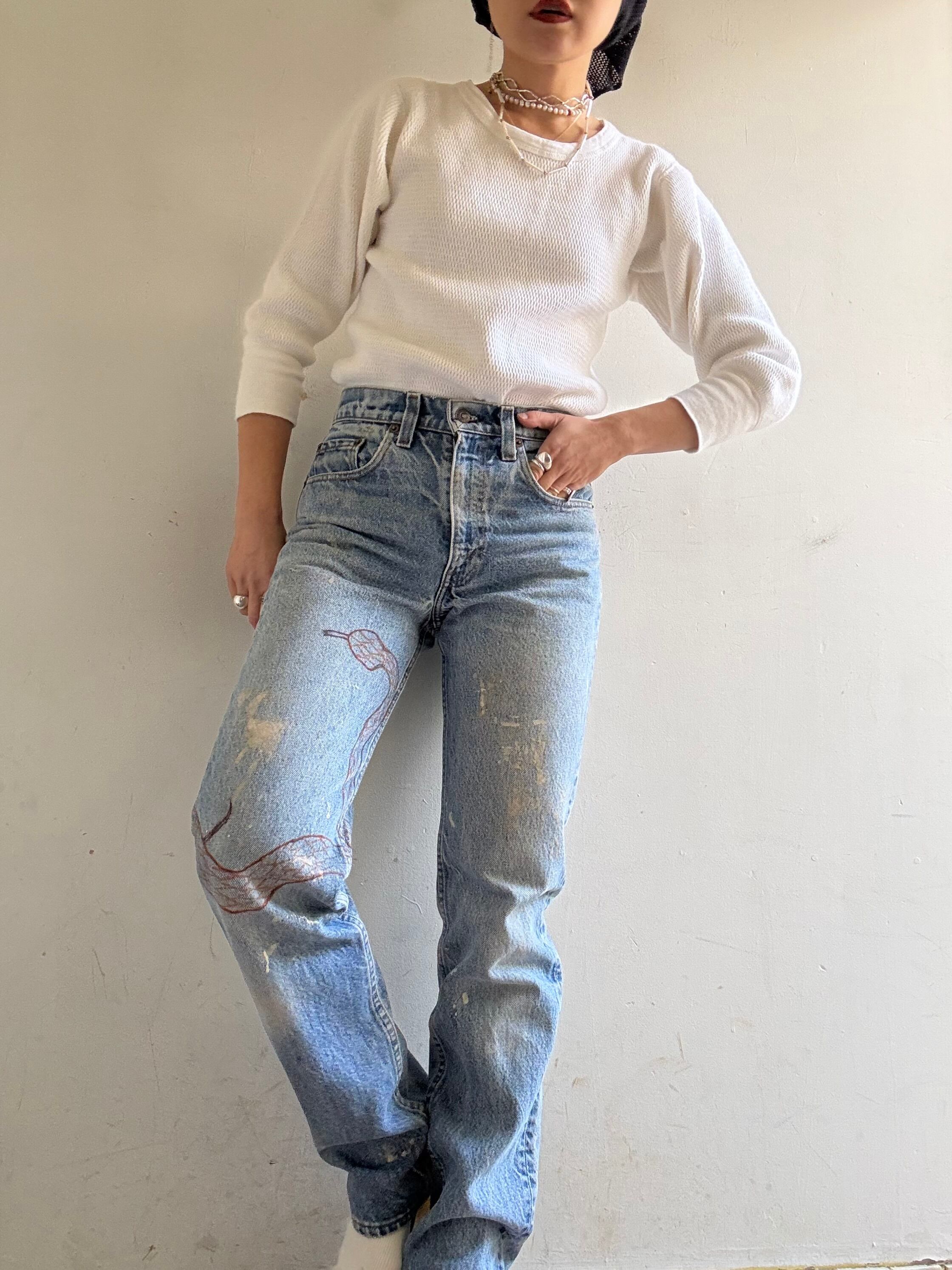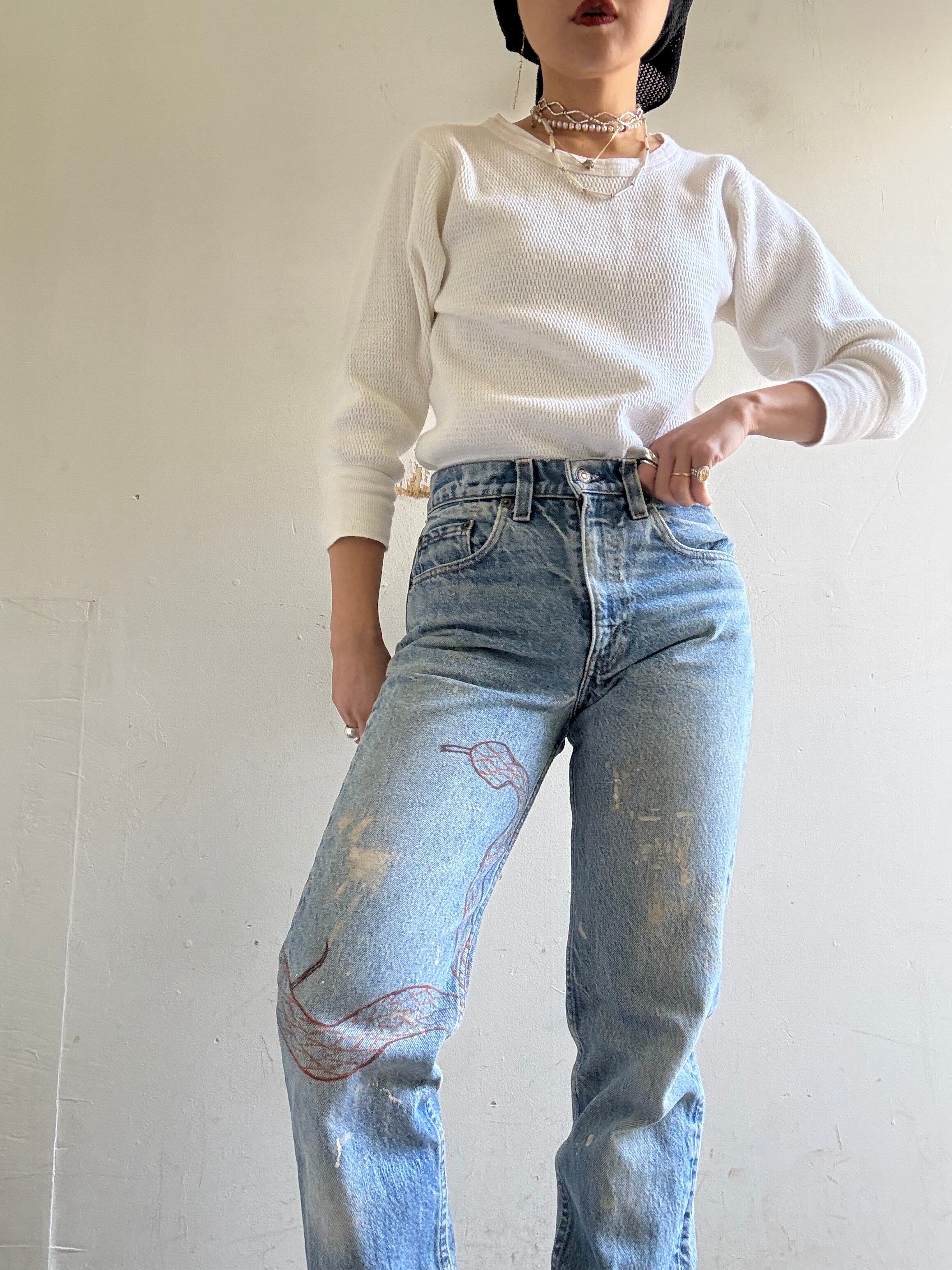 1990s Vintage Levi's 505 Art Painted Denim Pants