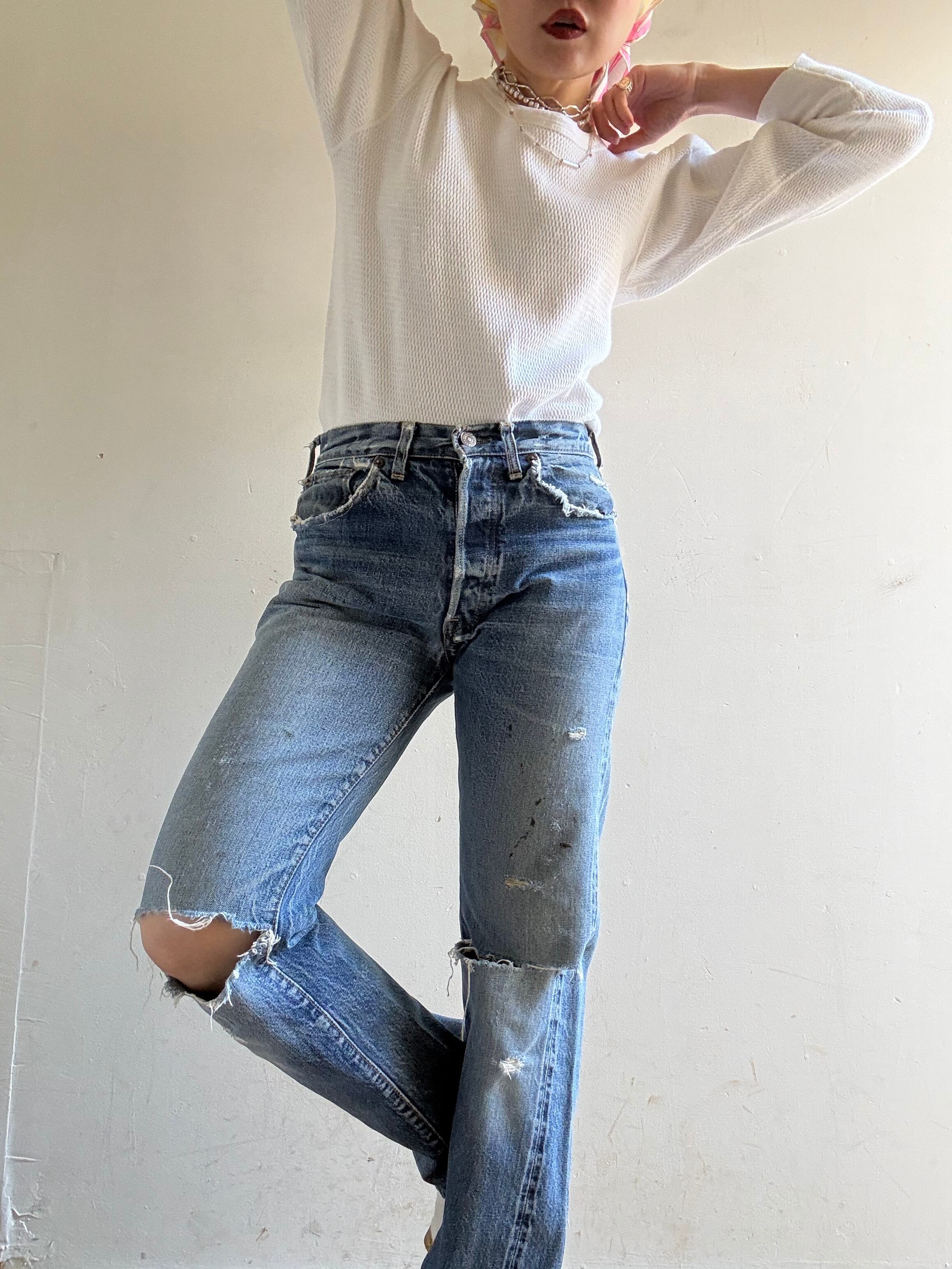60-70s Vintage Levi's 501 "E" Damaged Denim Pants