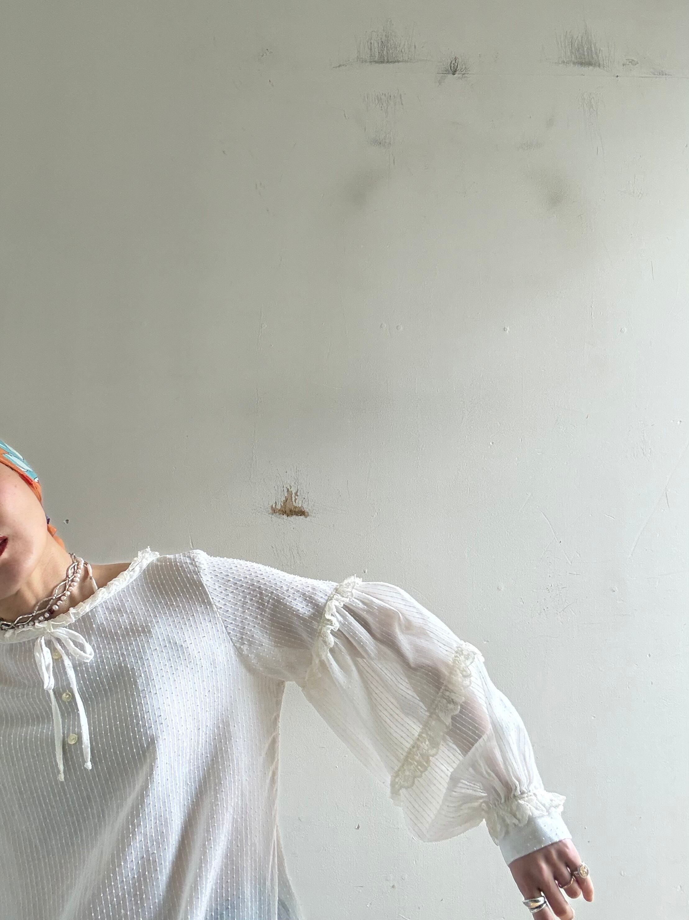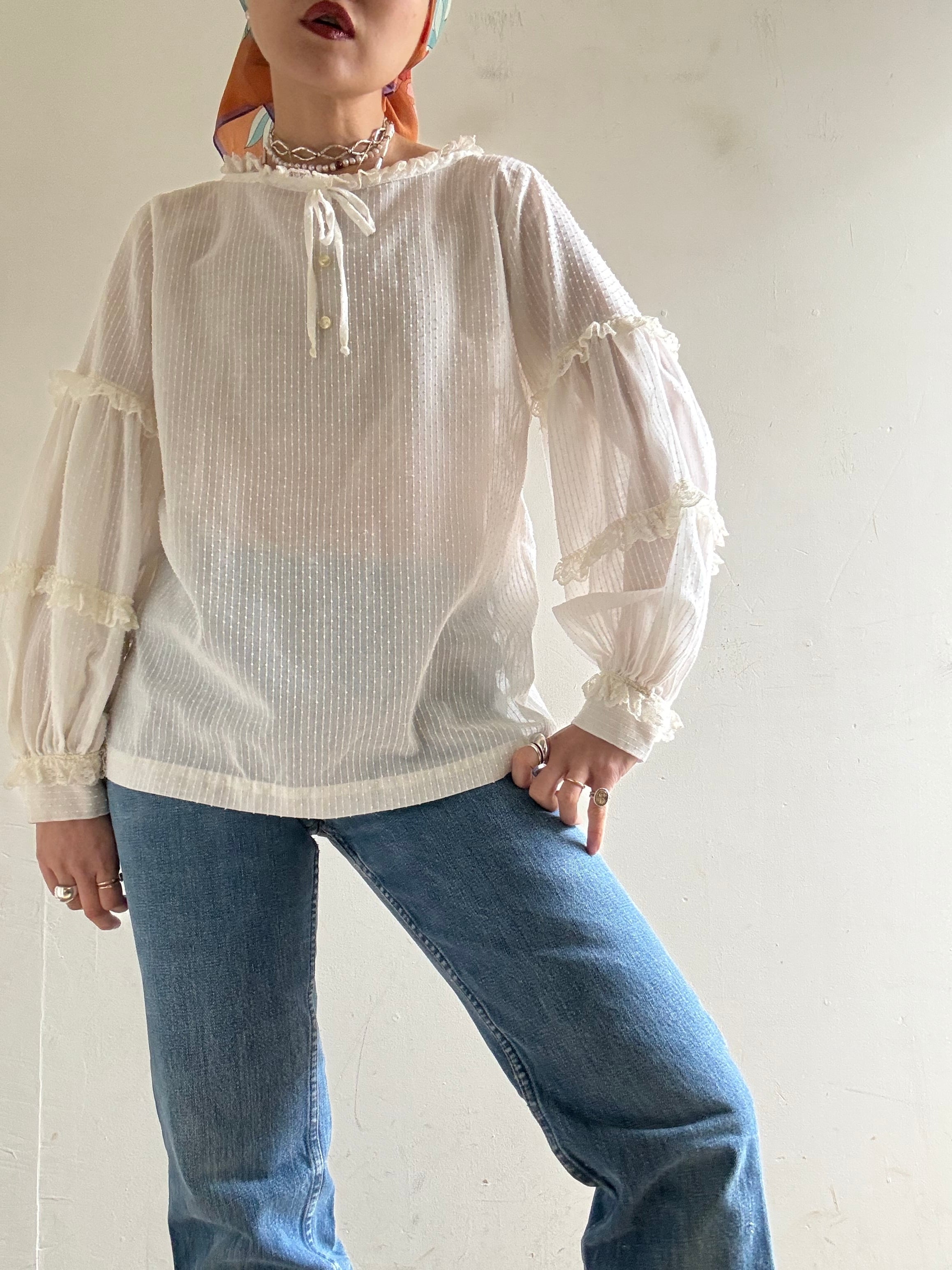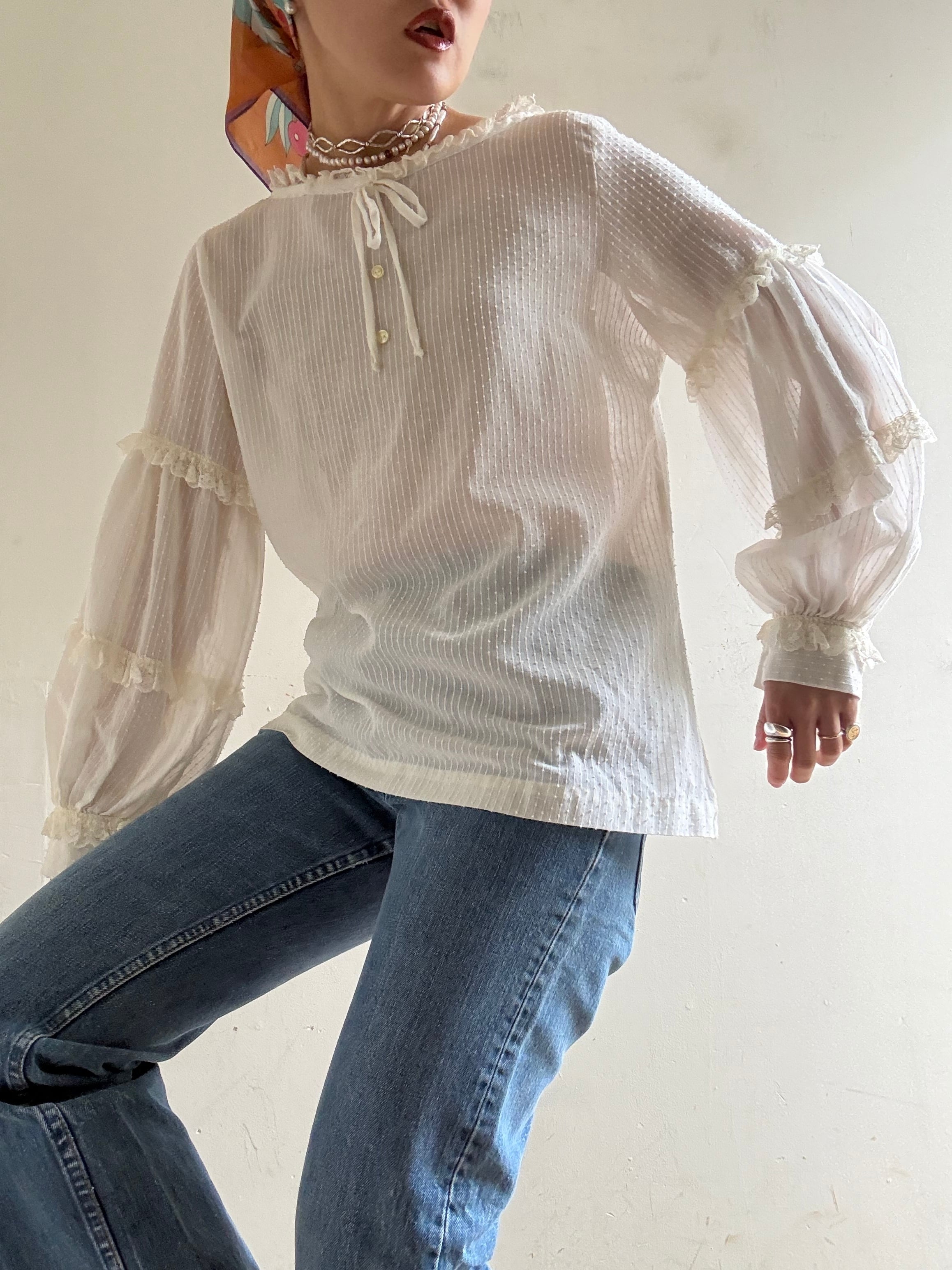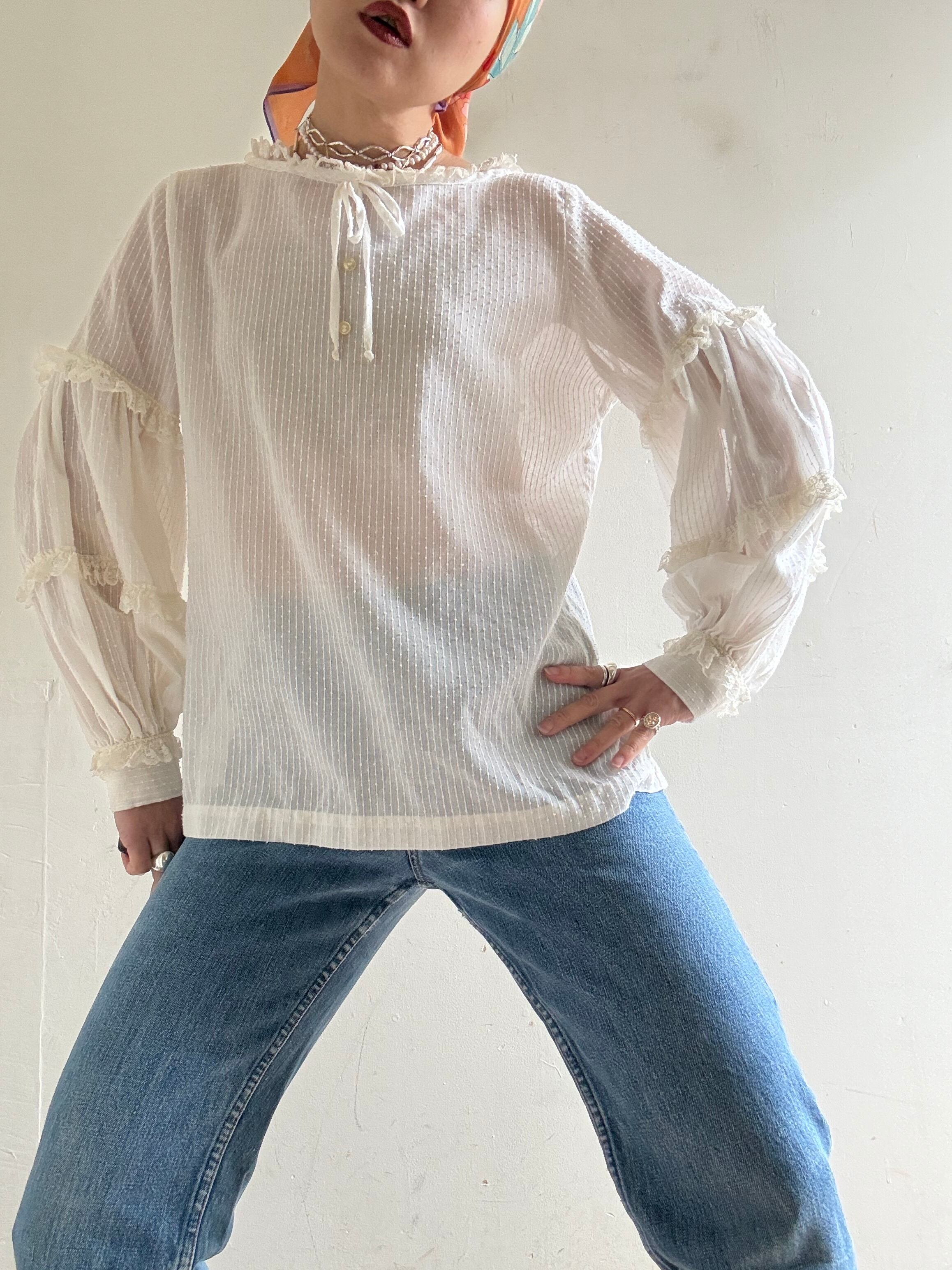 1970s Vintage Sheer Cotton Lace Blouse
