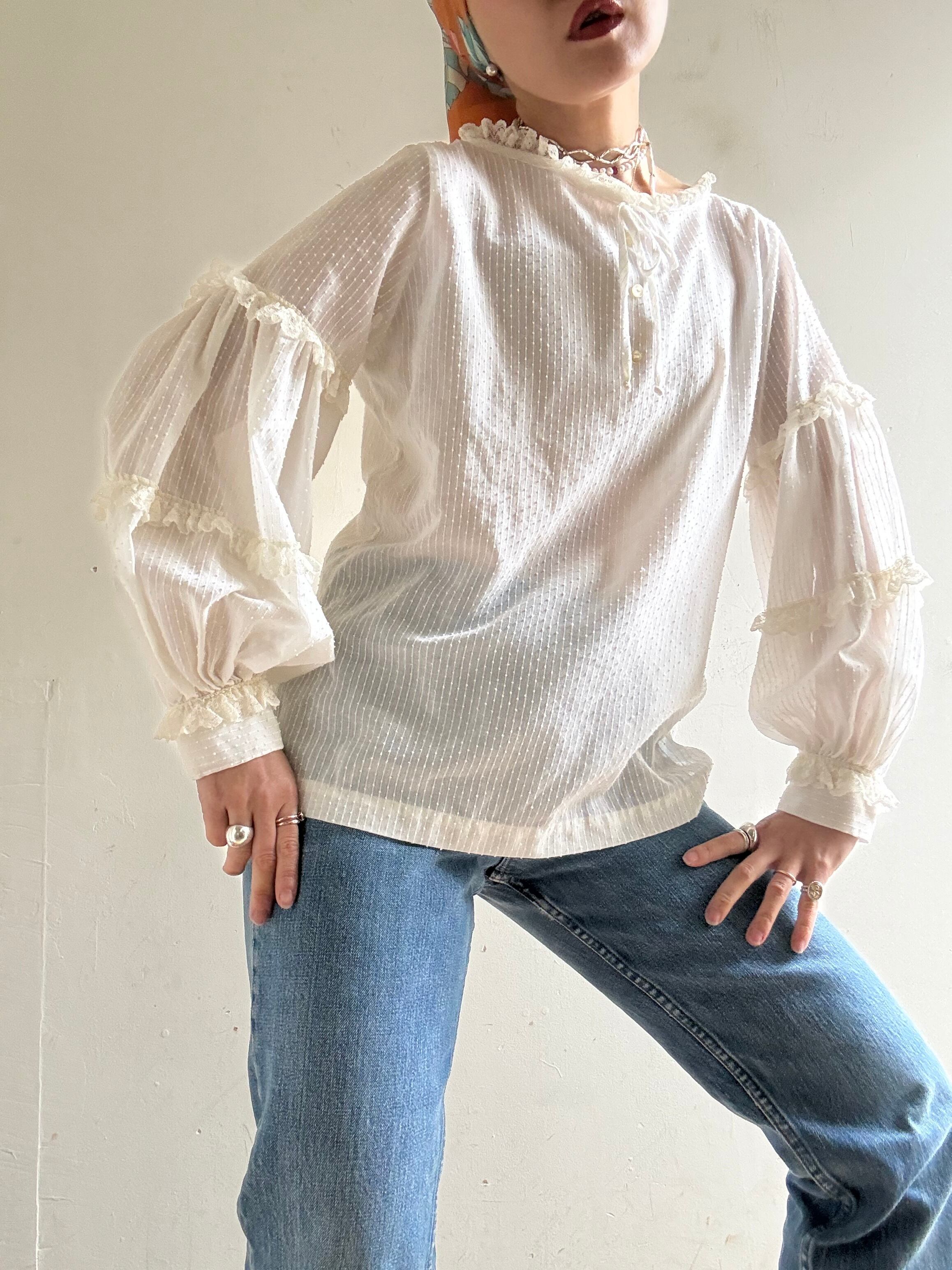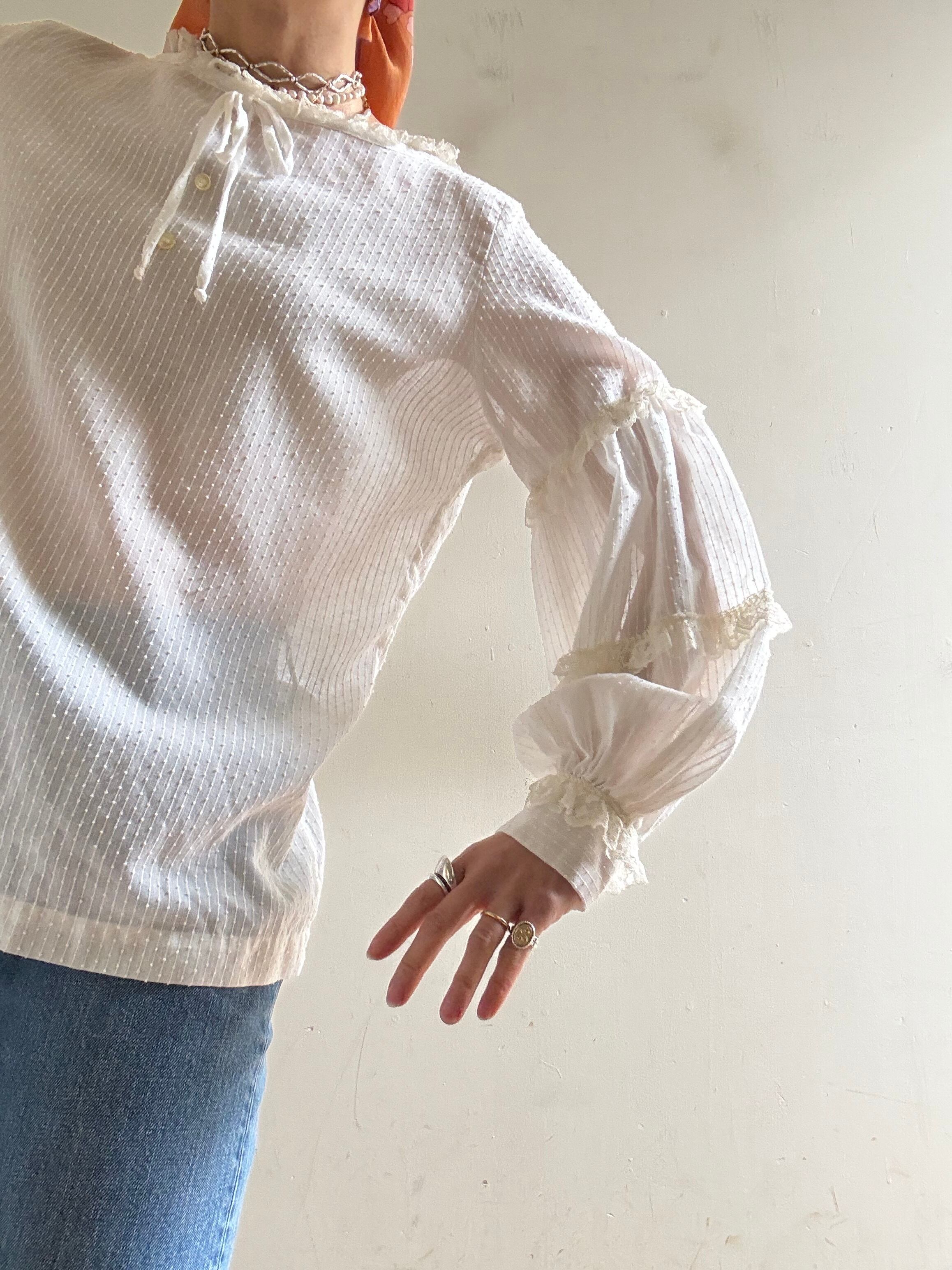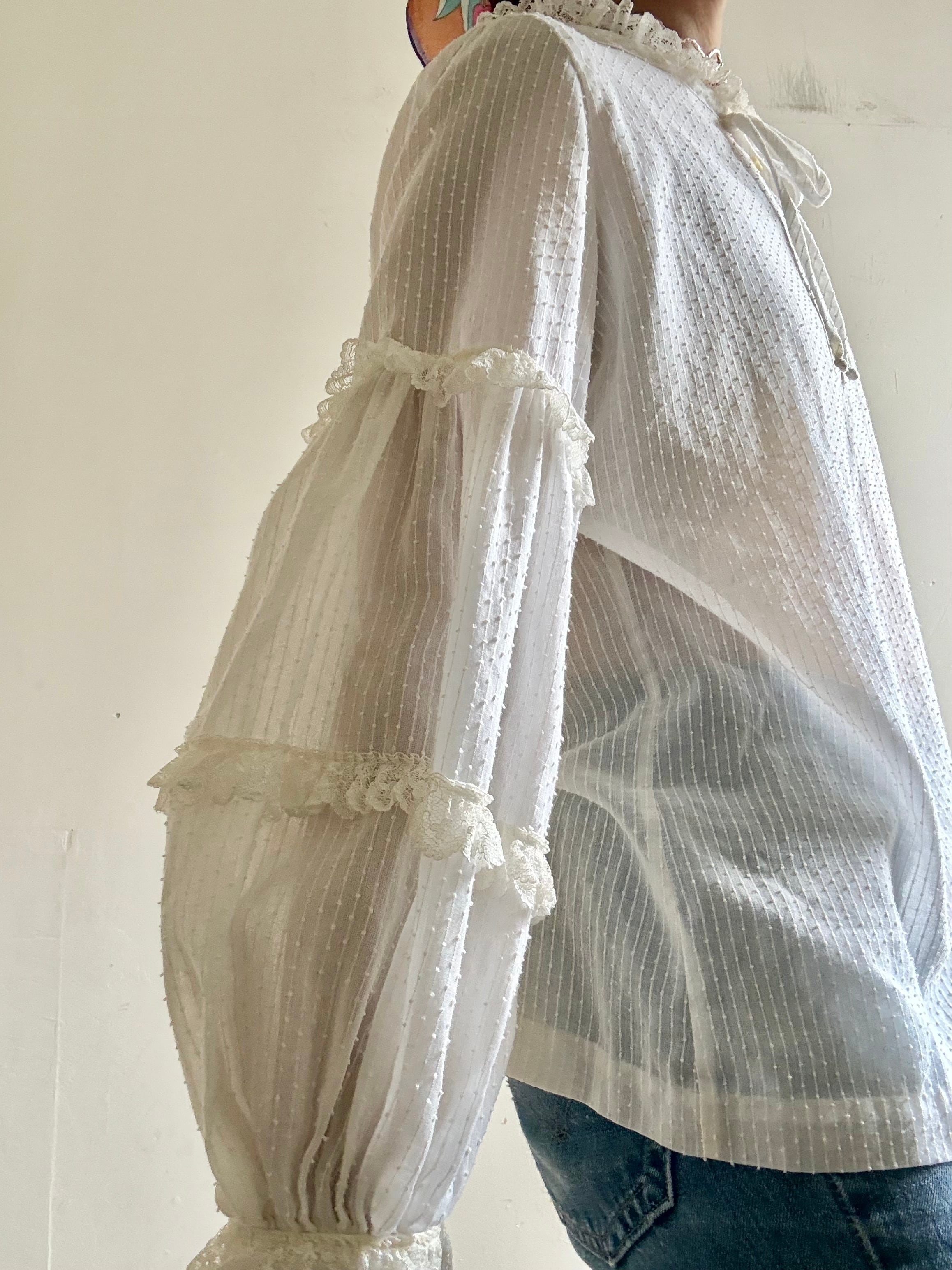 1970s Vintage Sheer Cotton Lace Blouse