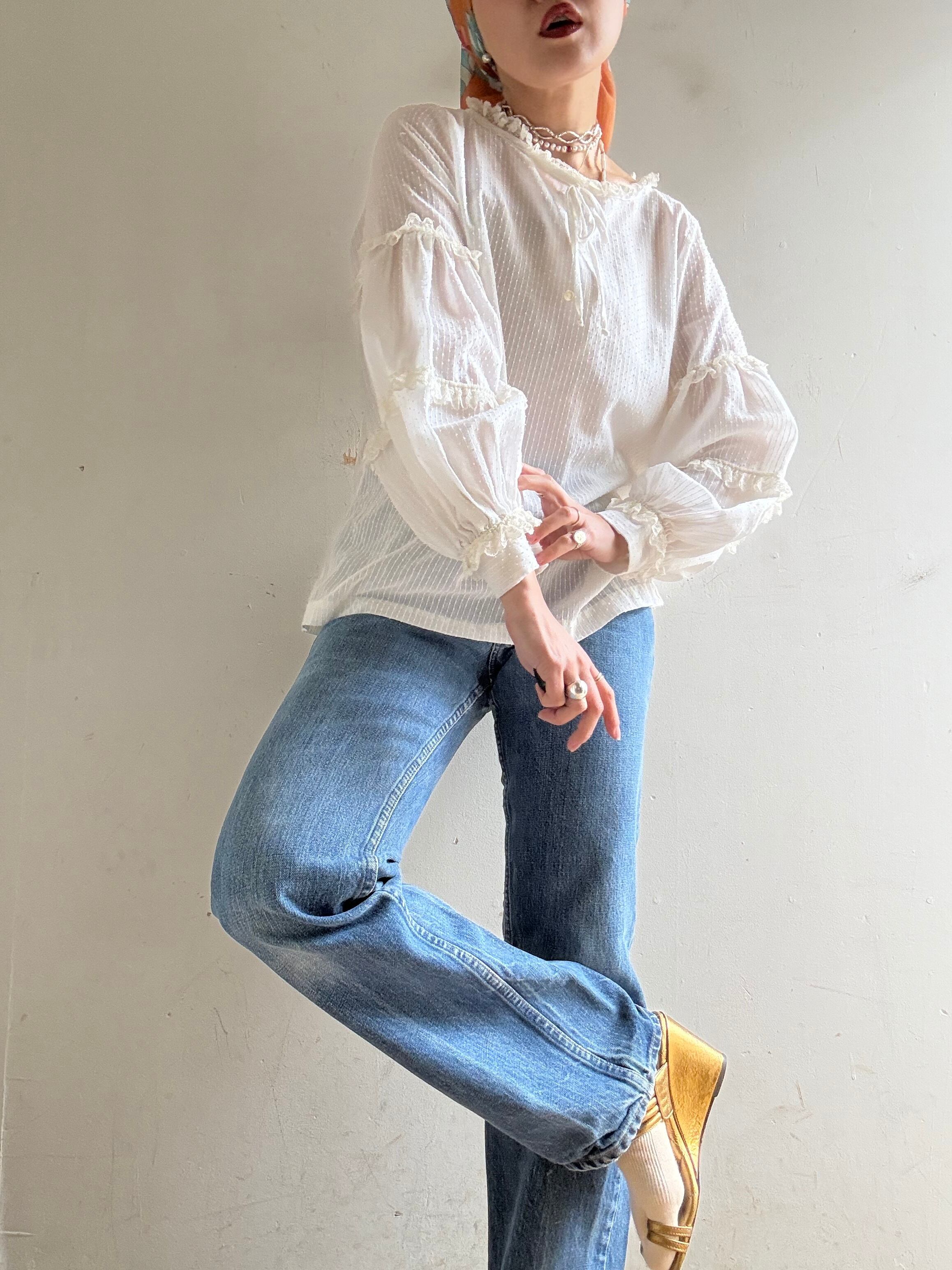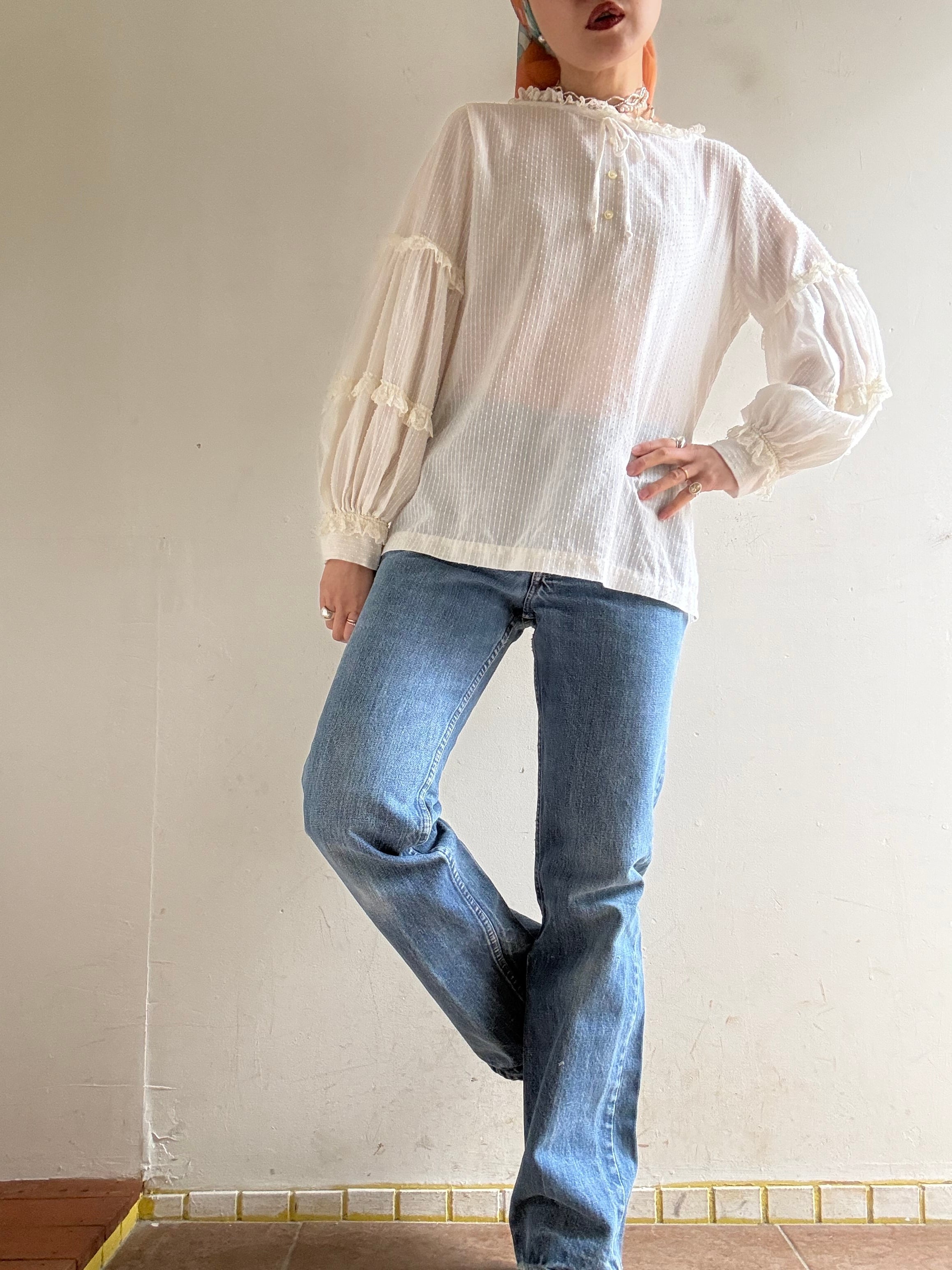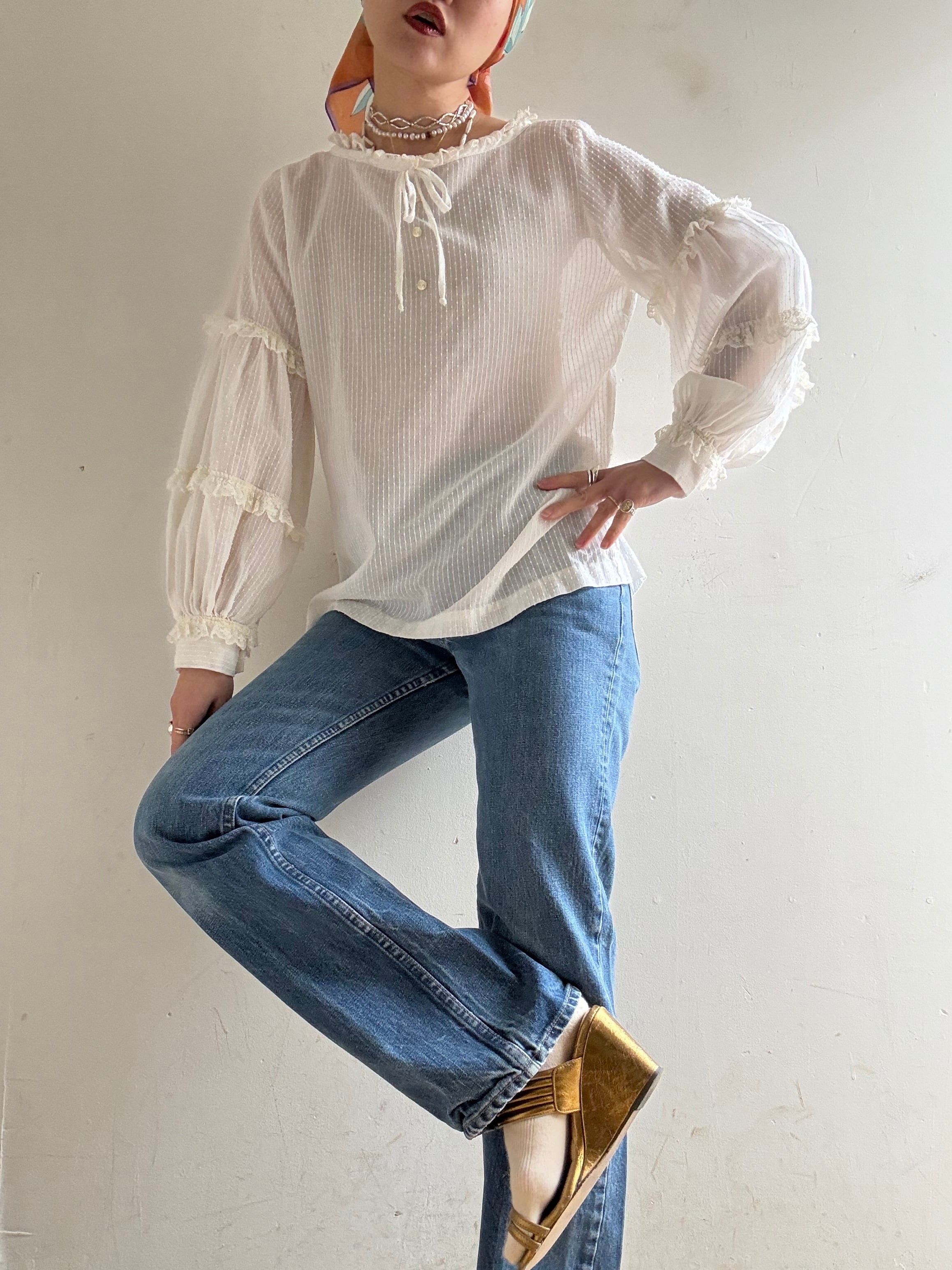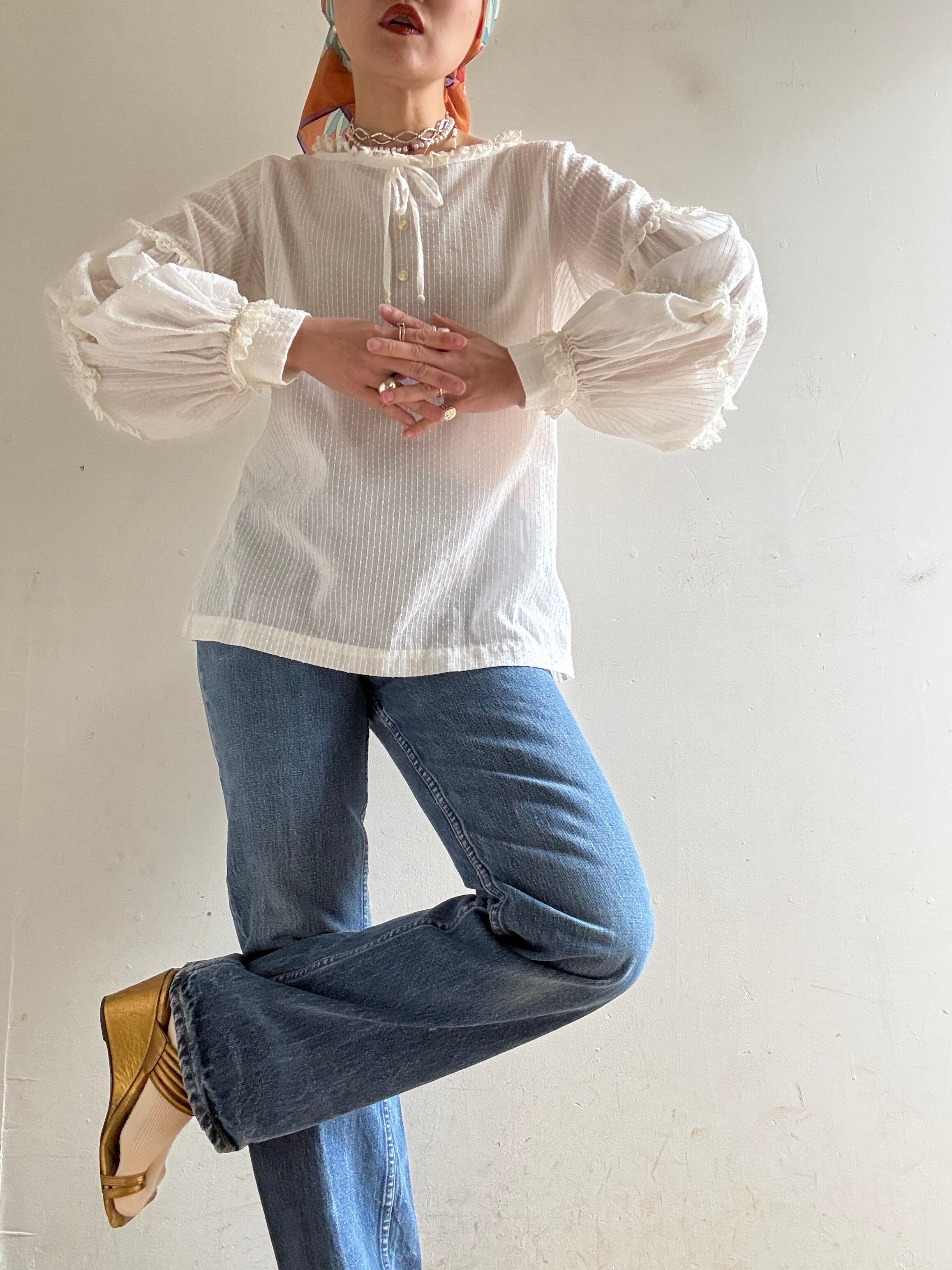 1970s Vintage Sheer Cotton Lace Blouse