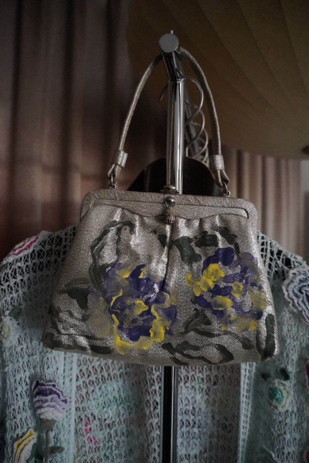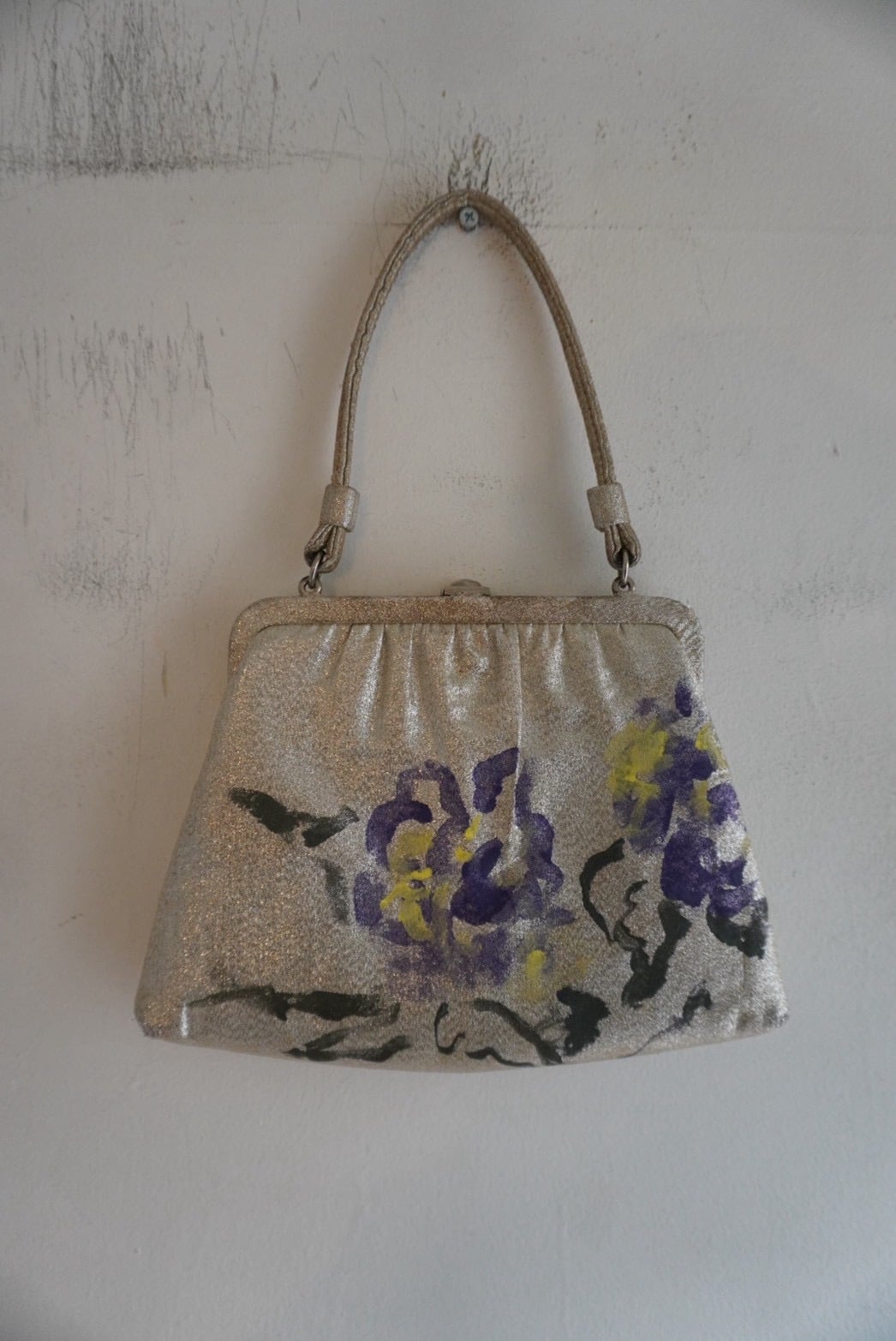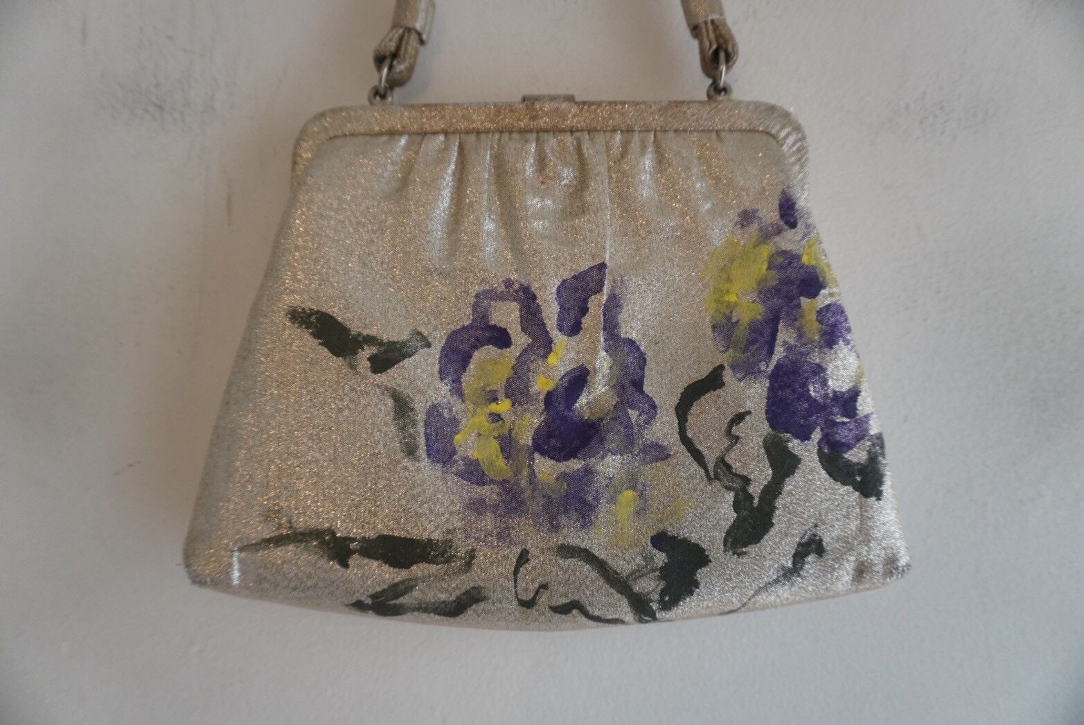 1960s Vintage Metallic Purse Painted By Meg Jorgenson