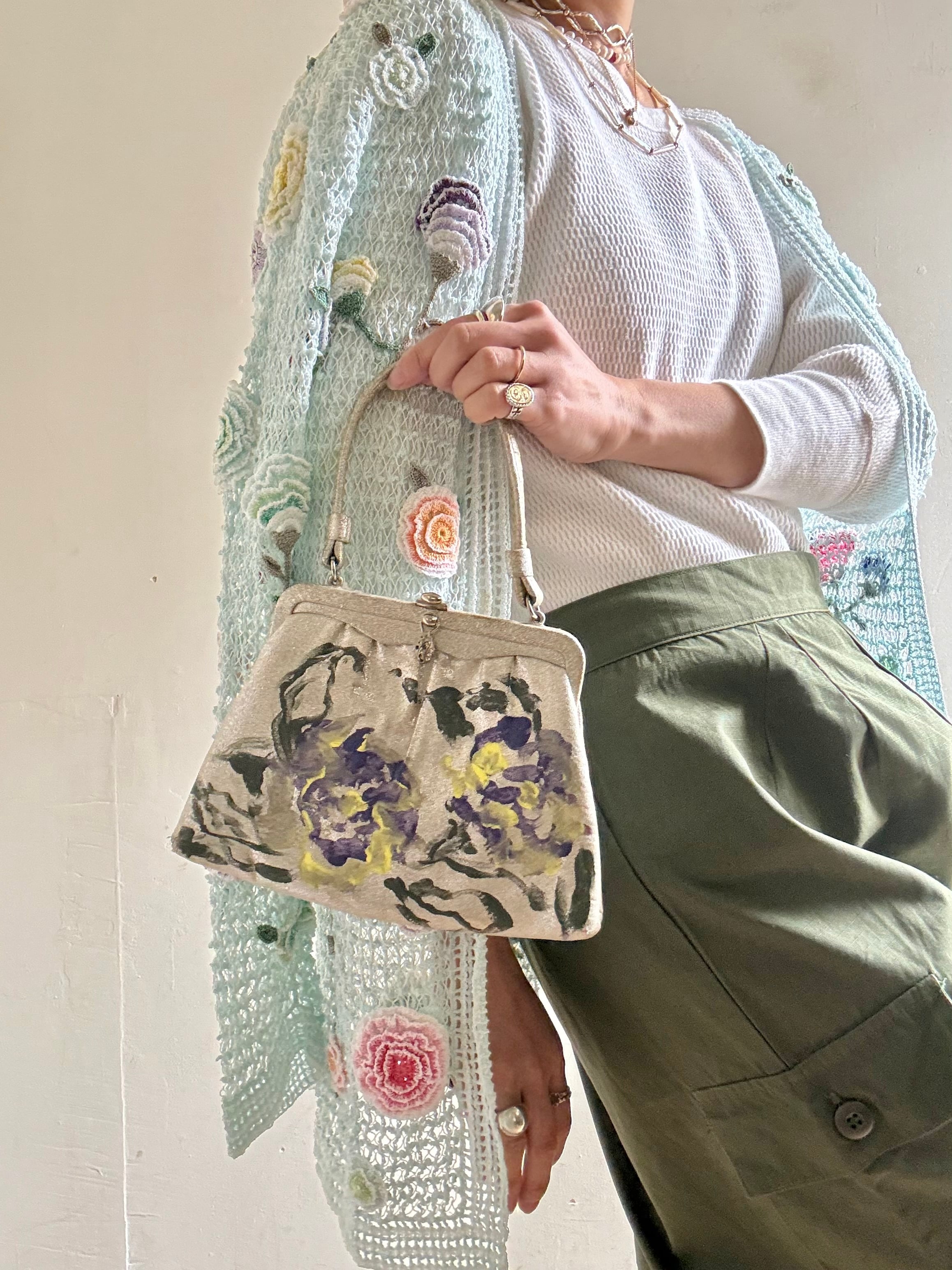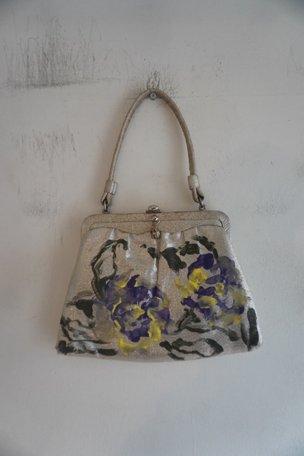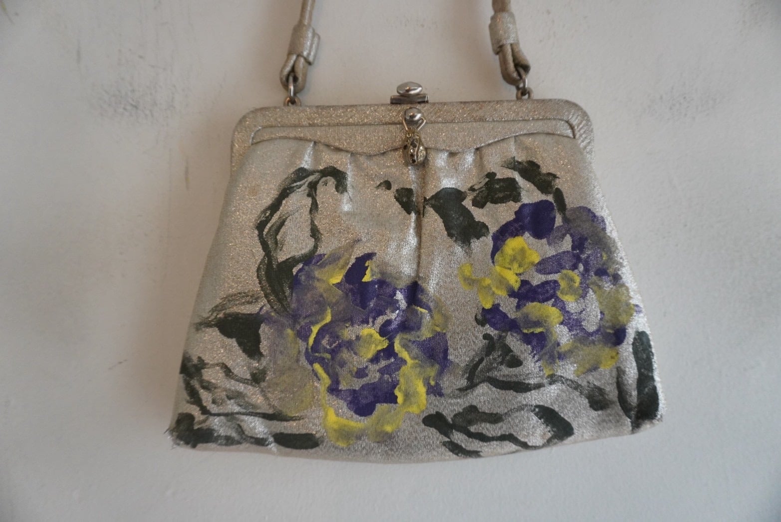 1960s Vintage Metallic Purse Painted By Meg Jorgenson