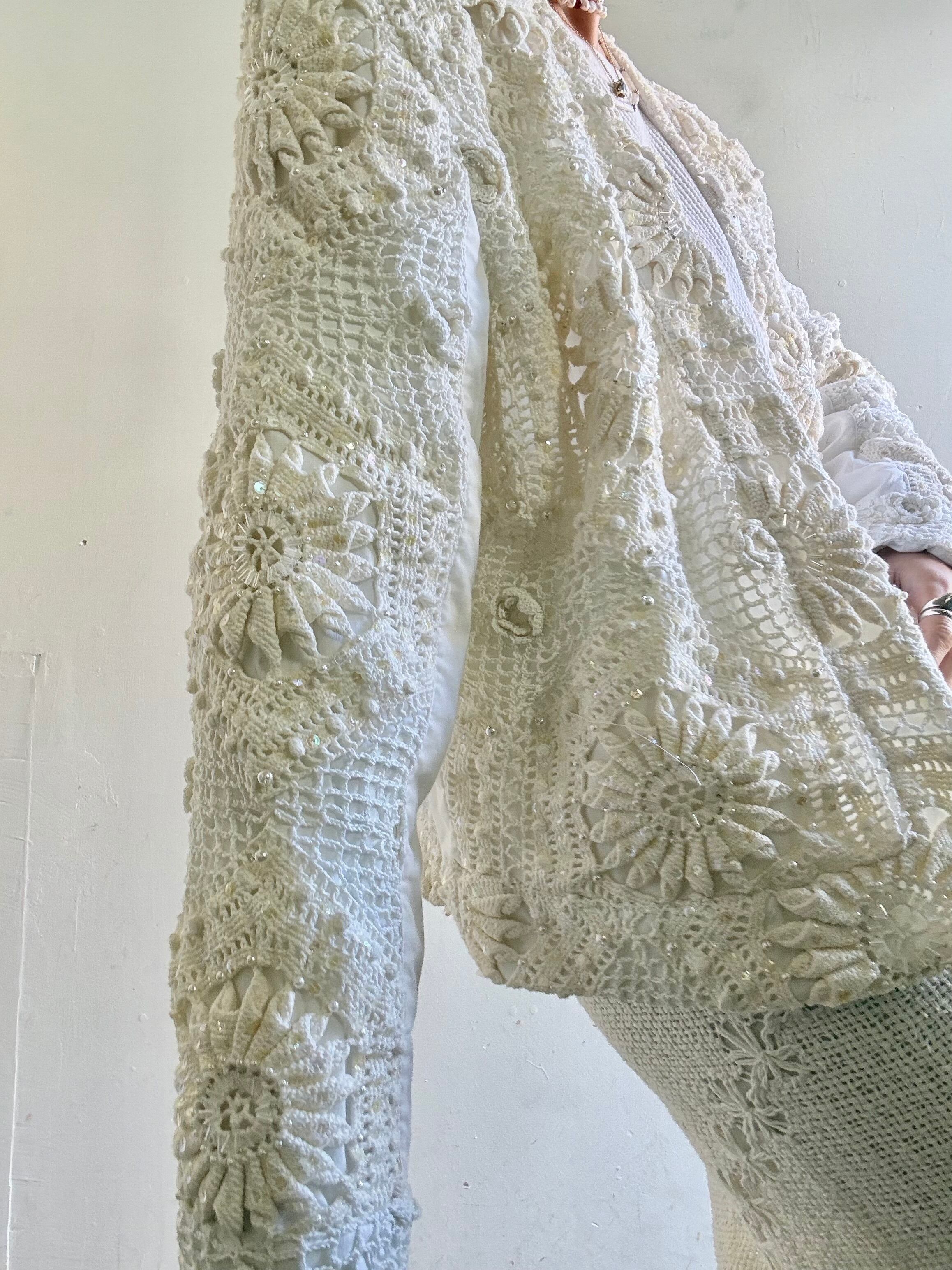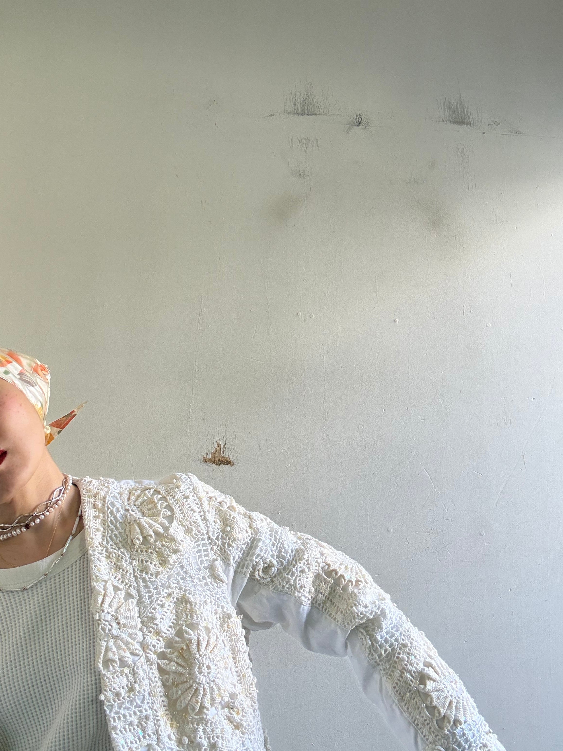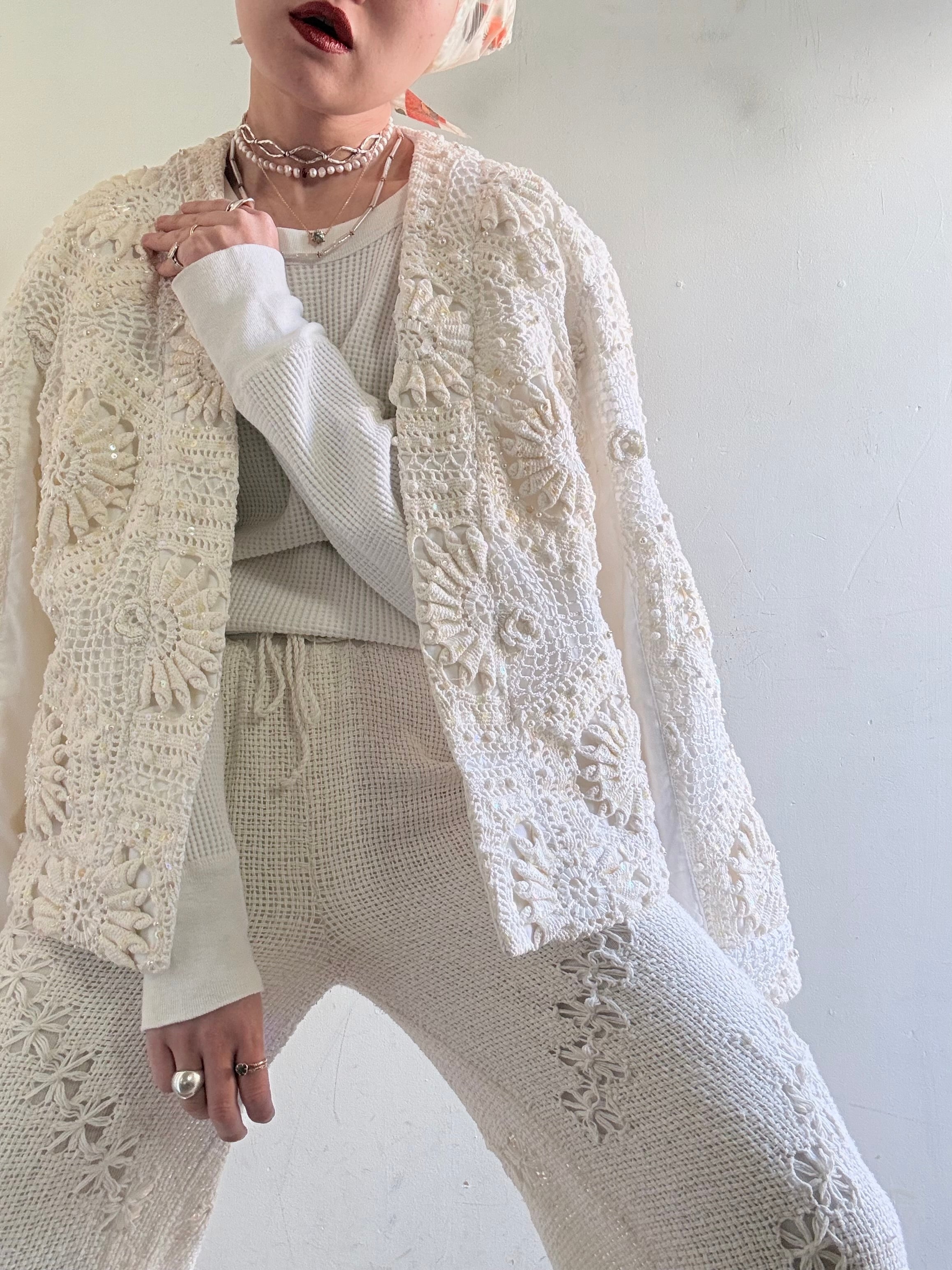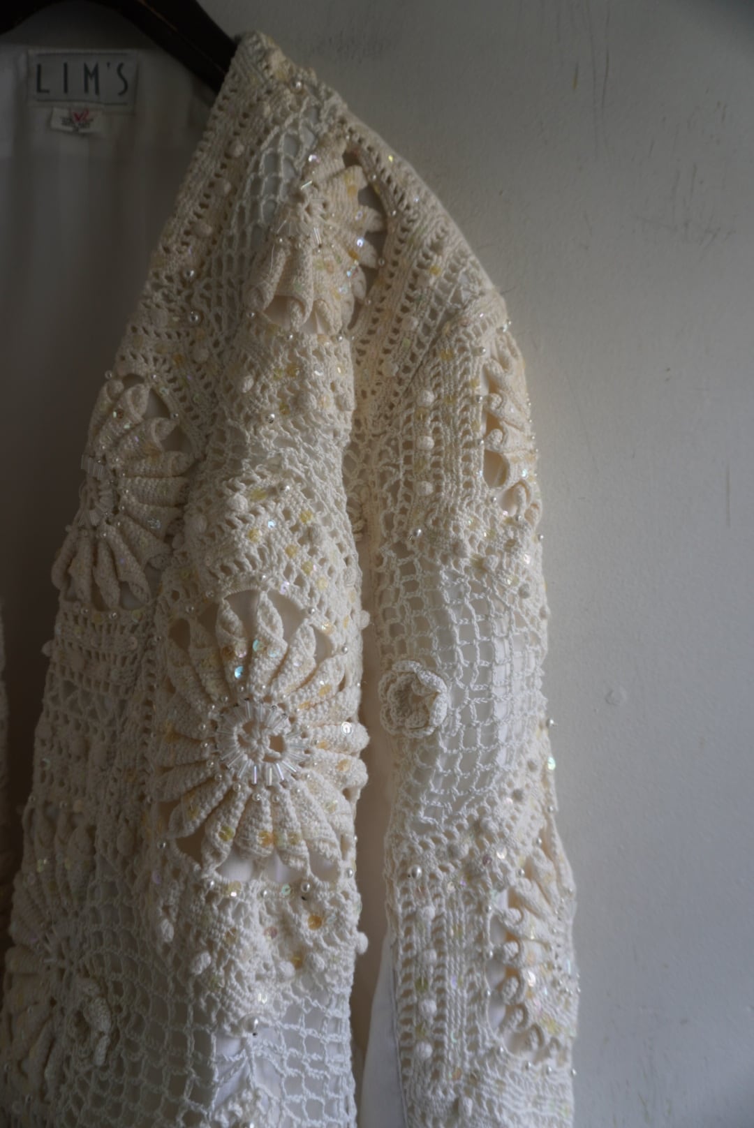 80s Deadstock "Lim's" Crochet/Spangle Collarless Jacket