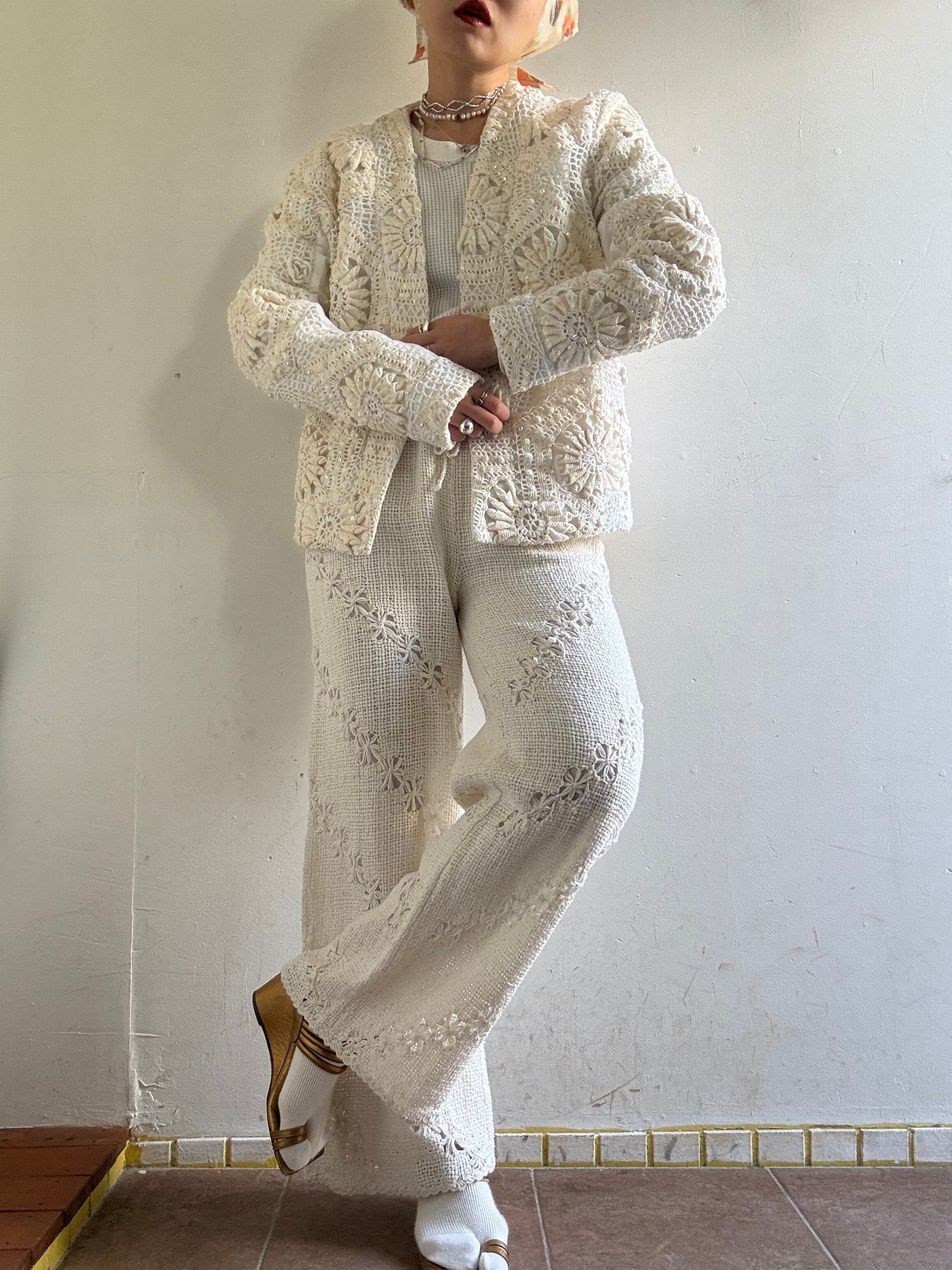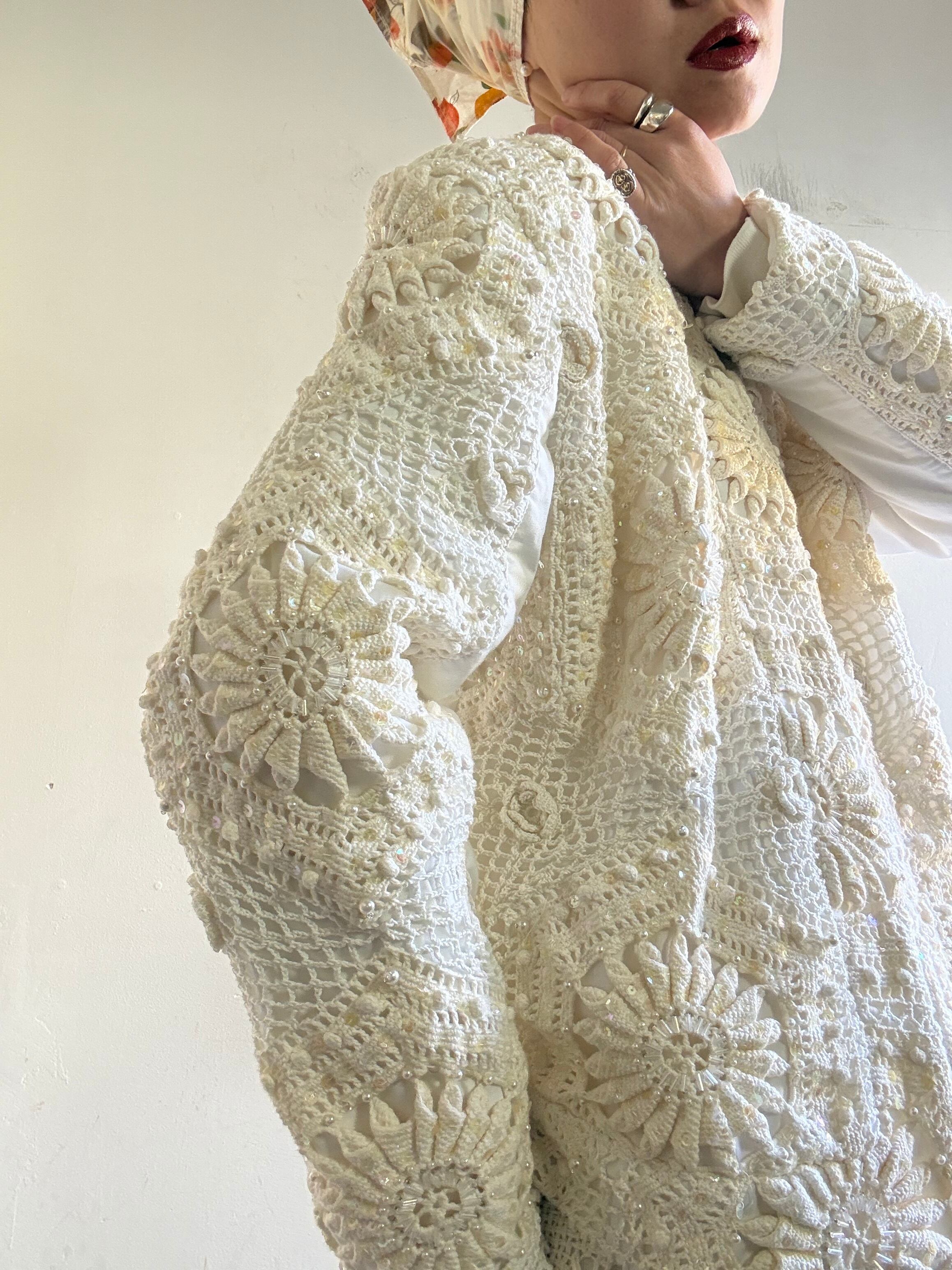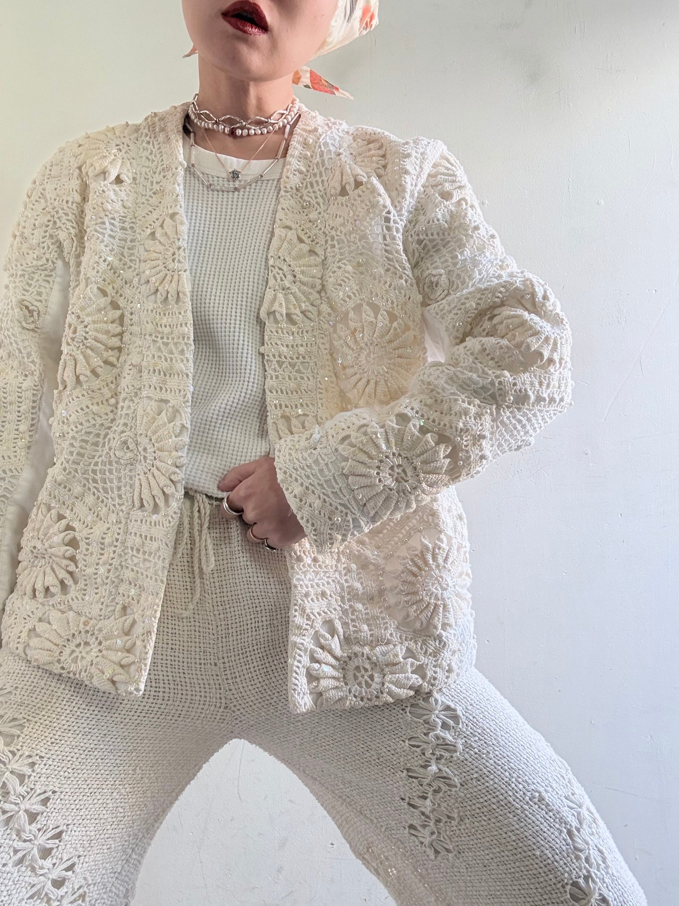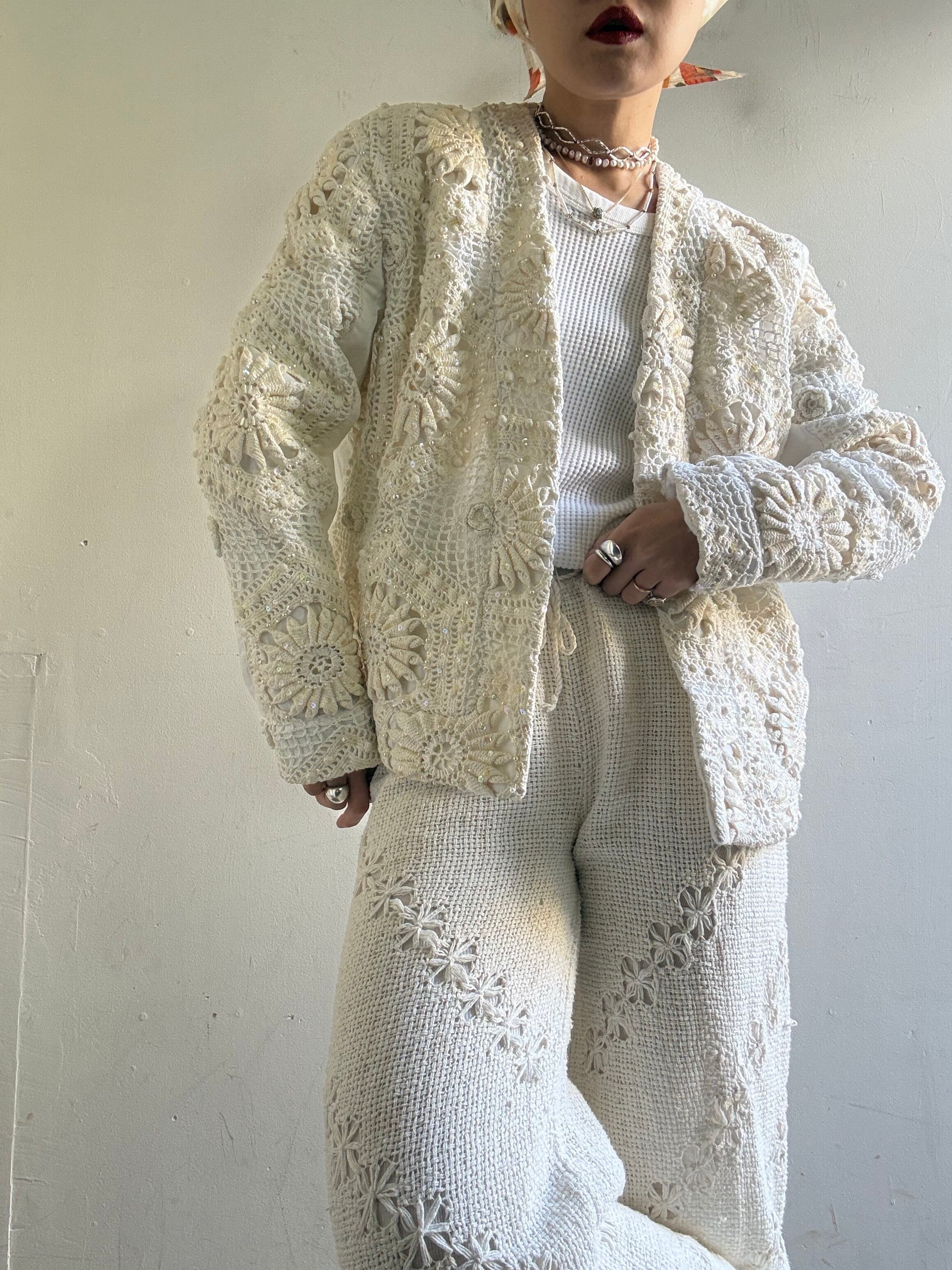 80s Deadstock "Lim's" Crochet/Spangle Collarless Jacket