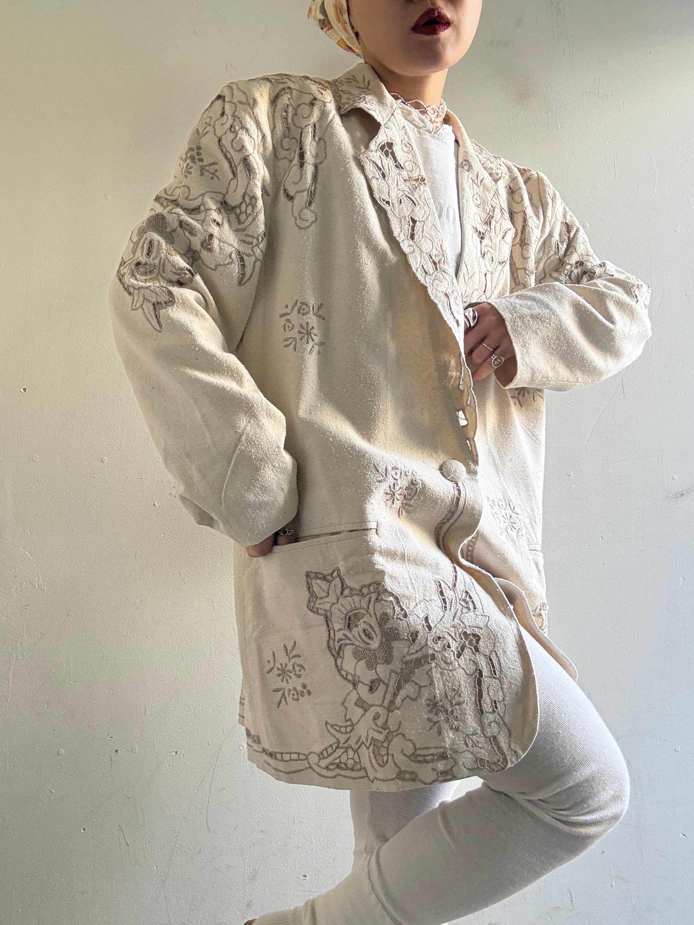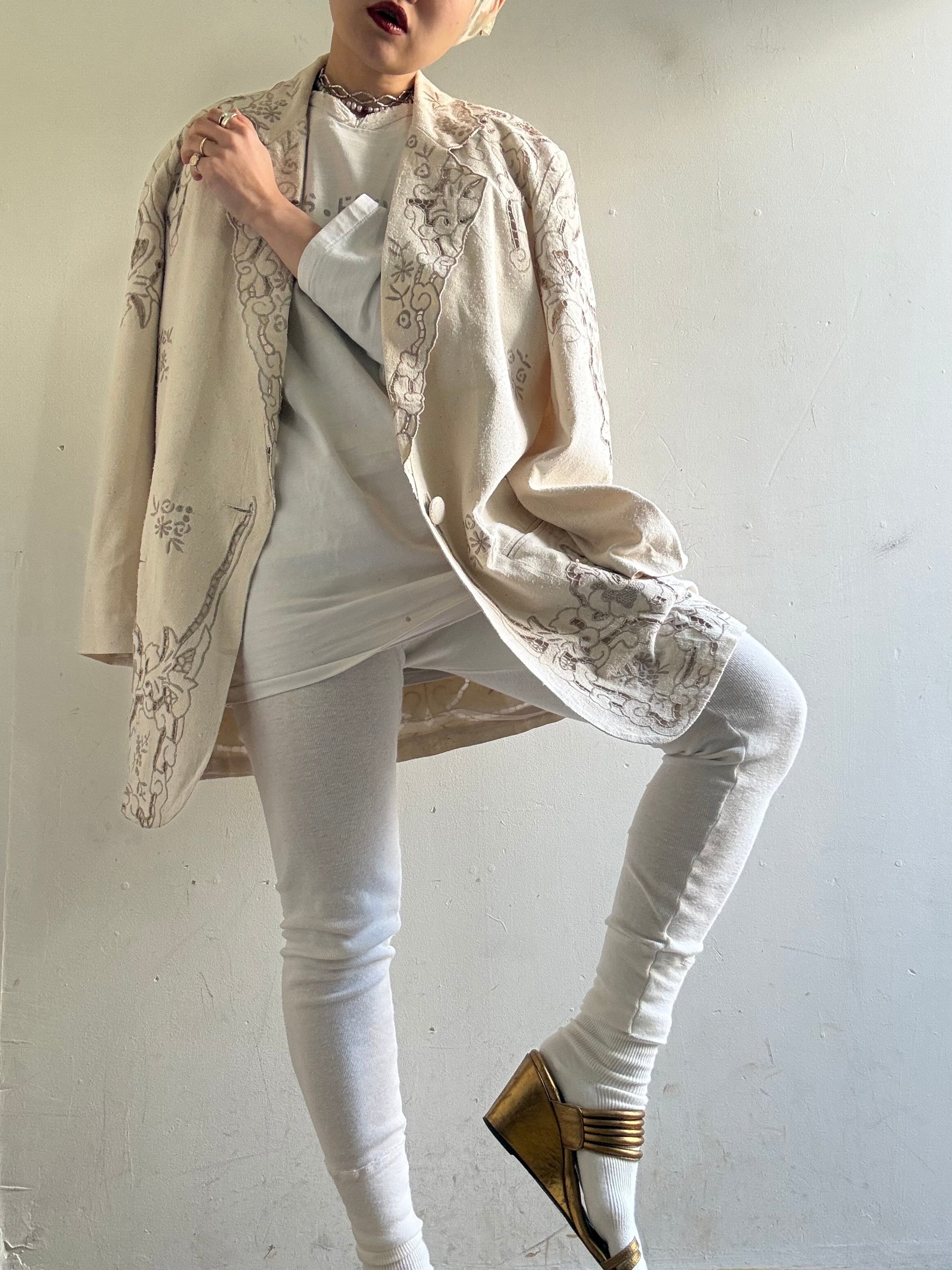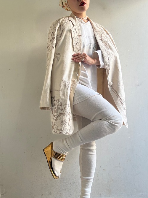 着丈:80cm 肩幅:43cm 身幅:58cm 袖丈:58cm material:silk (model 身長154cm)