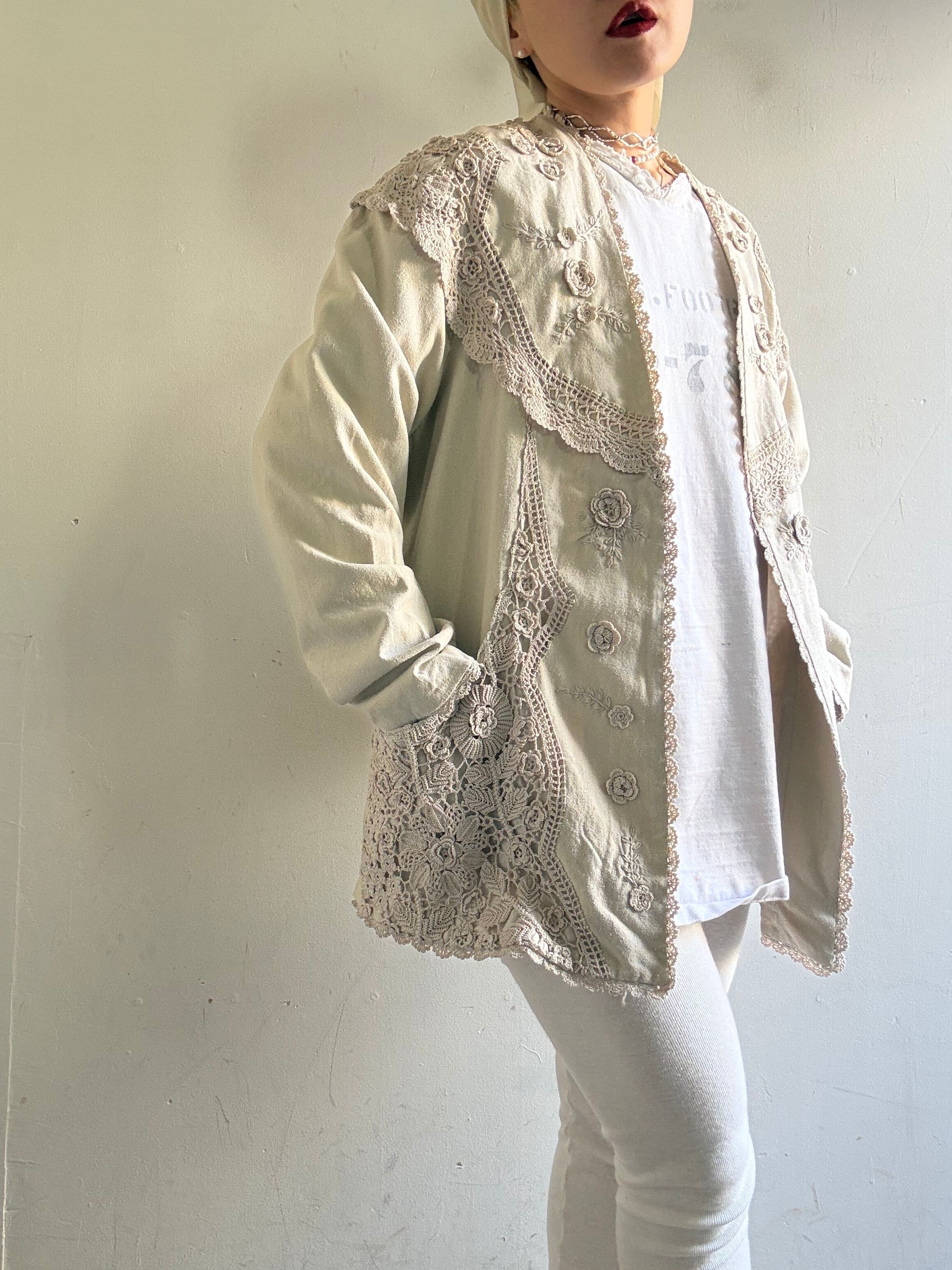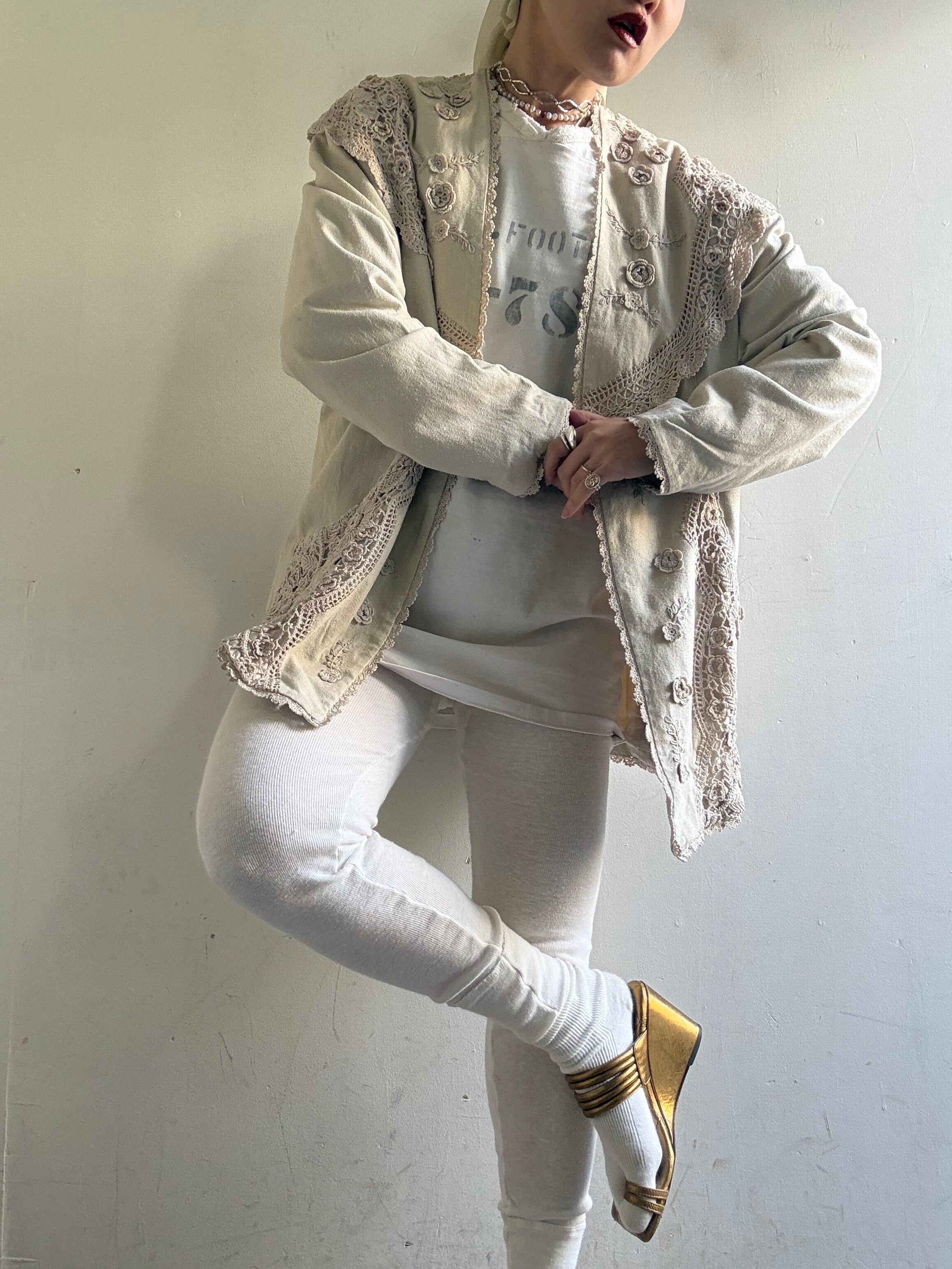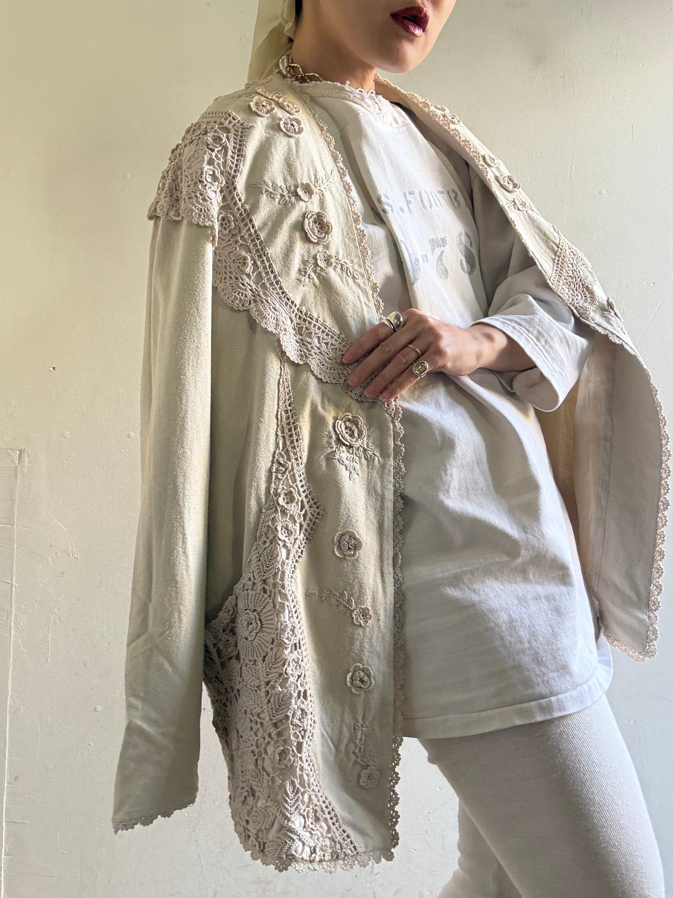 着丈:71cm 身幅:58cm 袖丈:72cm material:silk (model 身長154cm)