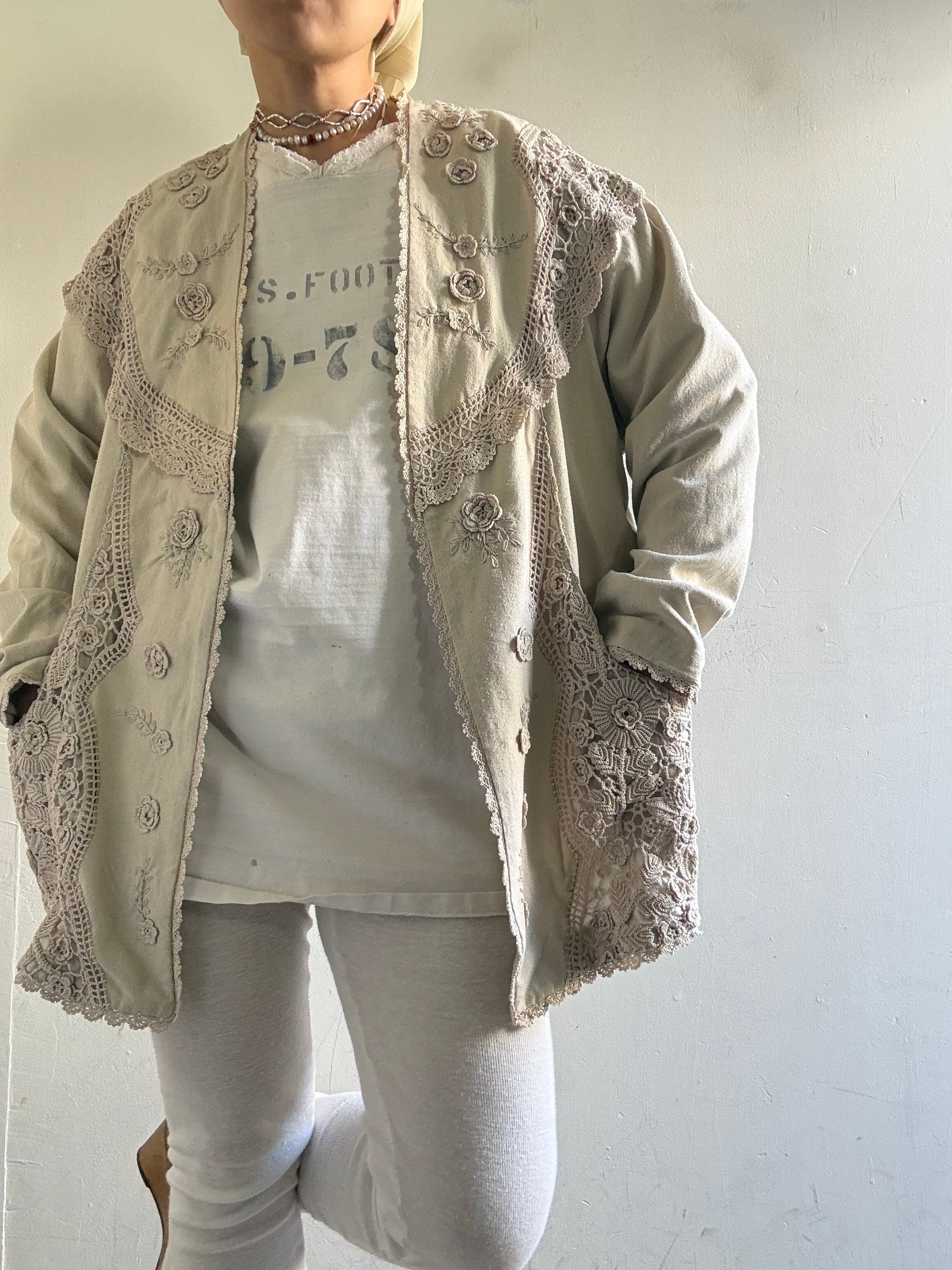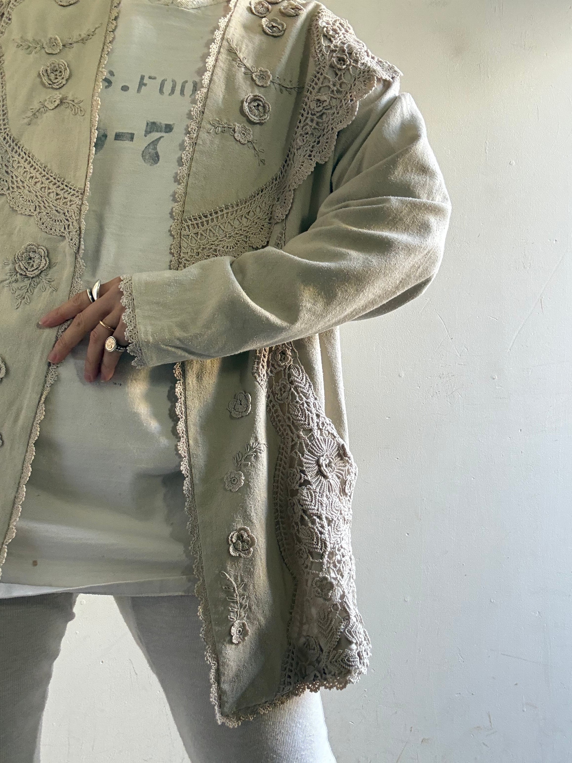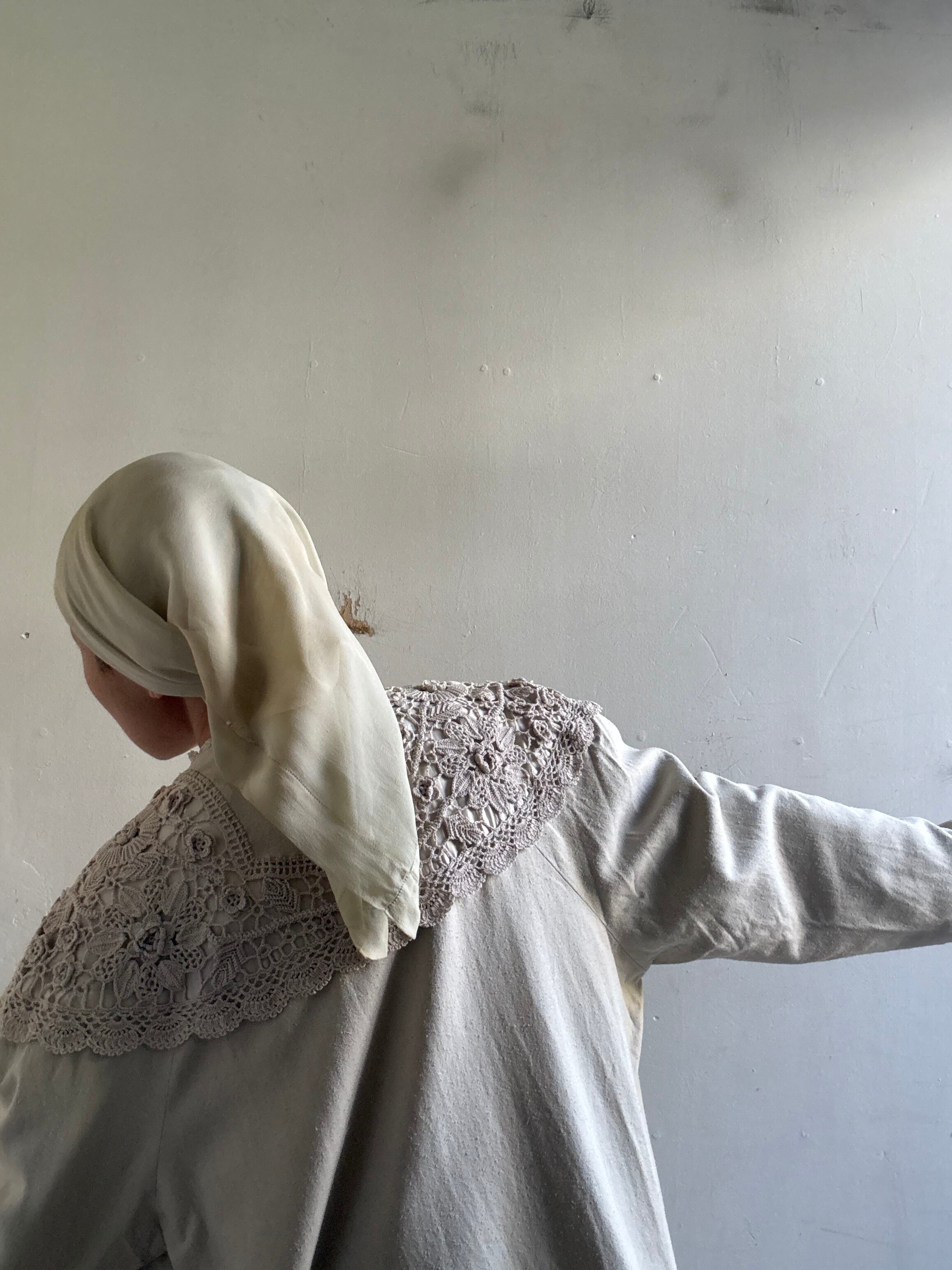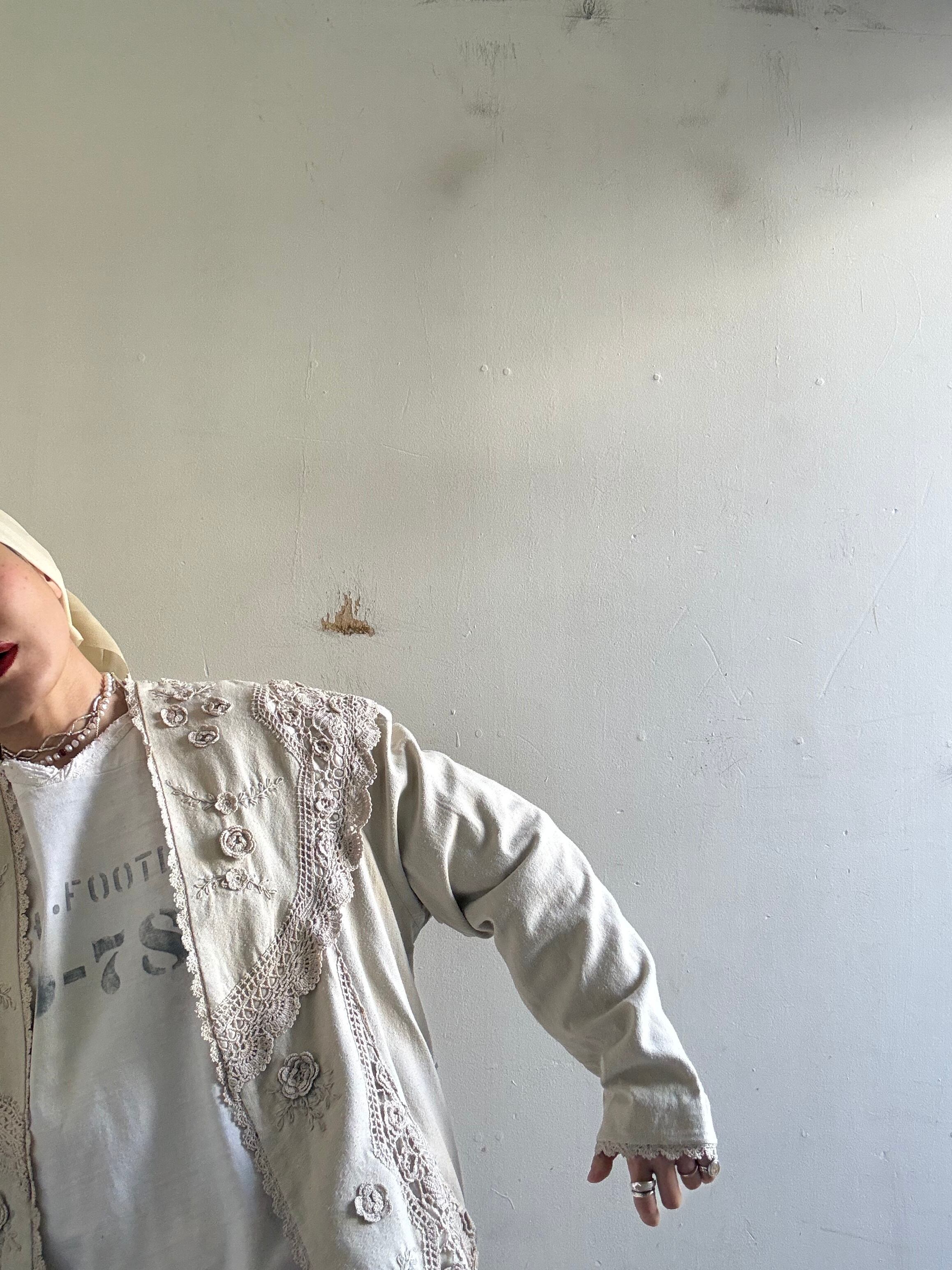 着丈:71cm 身幅:58cm 袖丈:72cm material:silk (model 身長154cm)