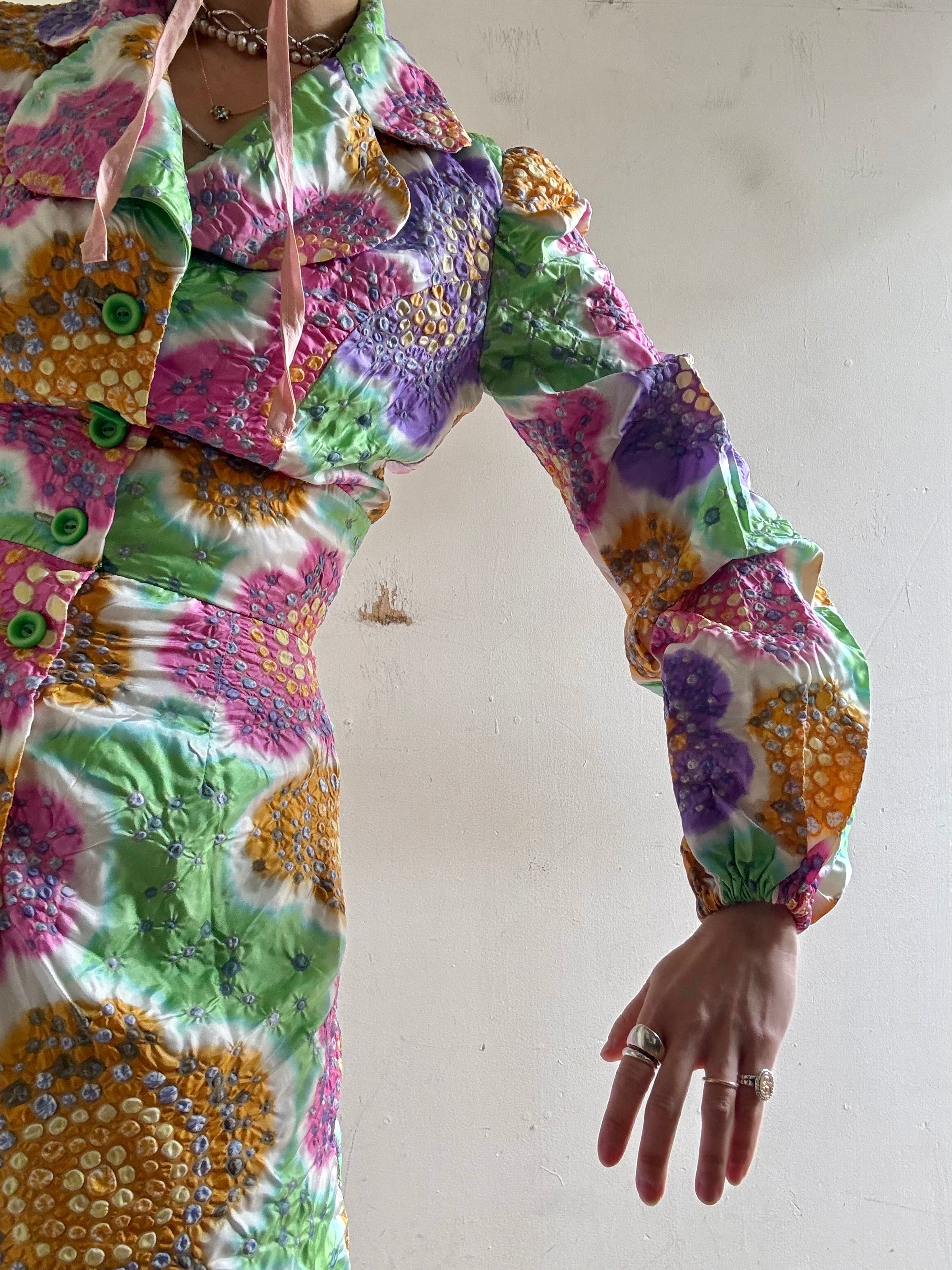着丈:144cm 肩幅:34cm 身幅:46cm ウエスト:33.5cm 袖丈:62cm material:unknown 商品の詳細につきましては、3/20(Fri)のインスタグラムライブをご覧ください。 またこちらの商品はOnline Storeでは3/21(Sat)12時よりお買い求めいただけます。 (model 身長154cm)