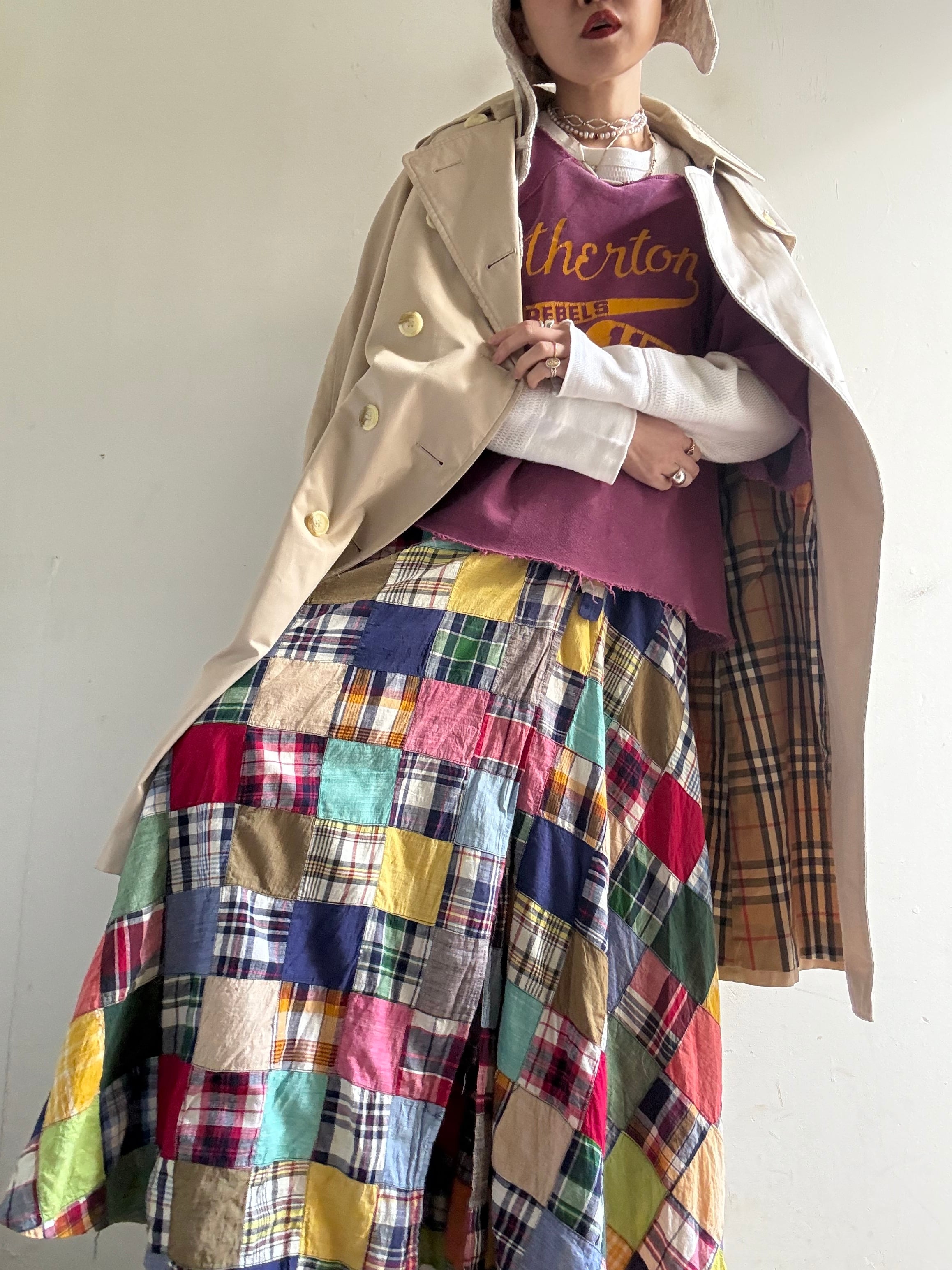 着丈:94cm ウエスト部分幅:直線で94cm ヒップ:60cm material:cotton (model 身長154cm) 商品の詳細につきましては、3/31(Tue)のインスタグラムライブをご覧ください。 またこちらの商品はOnline Storeでは4/1(Wed)12時よりお買い求めいただけます。