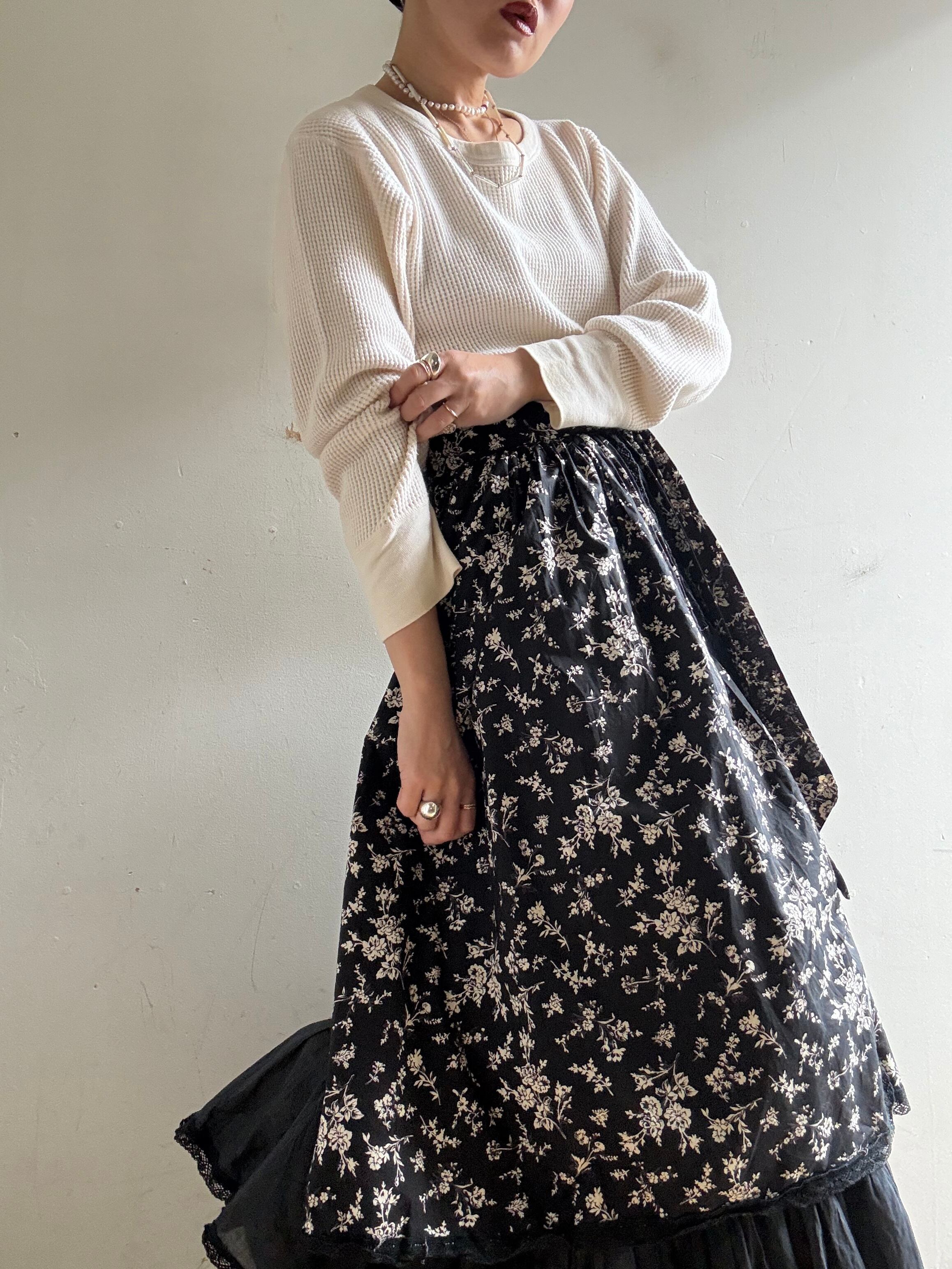 着丈:90cm ウエスト:34.5cm ヒップ:100cm material:cotton (model 身長154cm) 商品の詳細につきましては、4/8(Wed)のインスタグラムライブをご覧ください。 またこちらの商品はOnline Storeでは4/9(Thu)12時よりお買い求めいただけます。