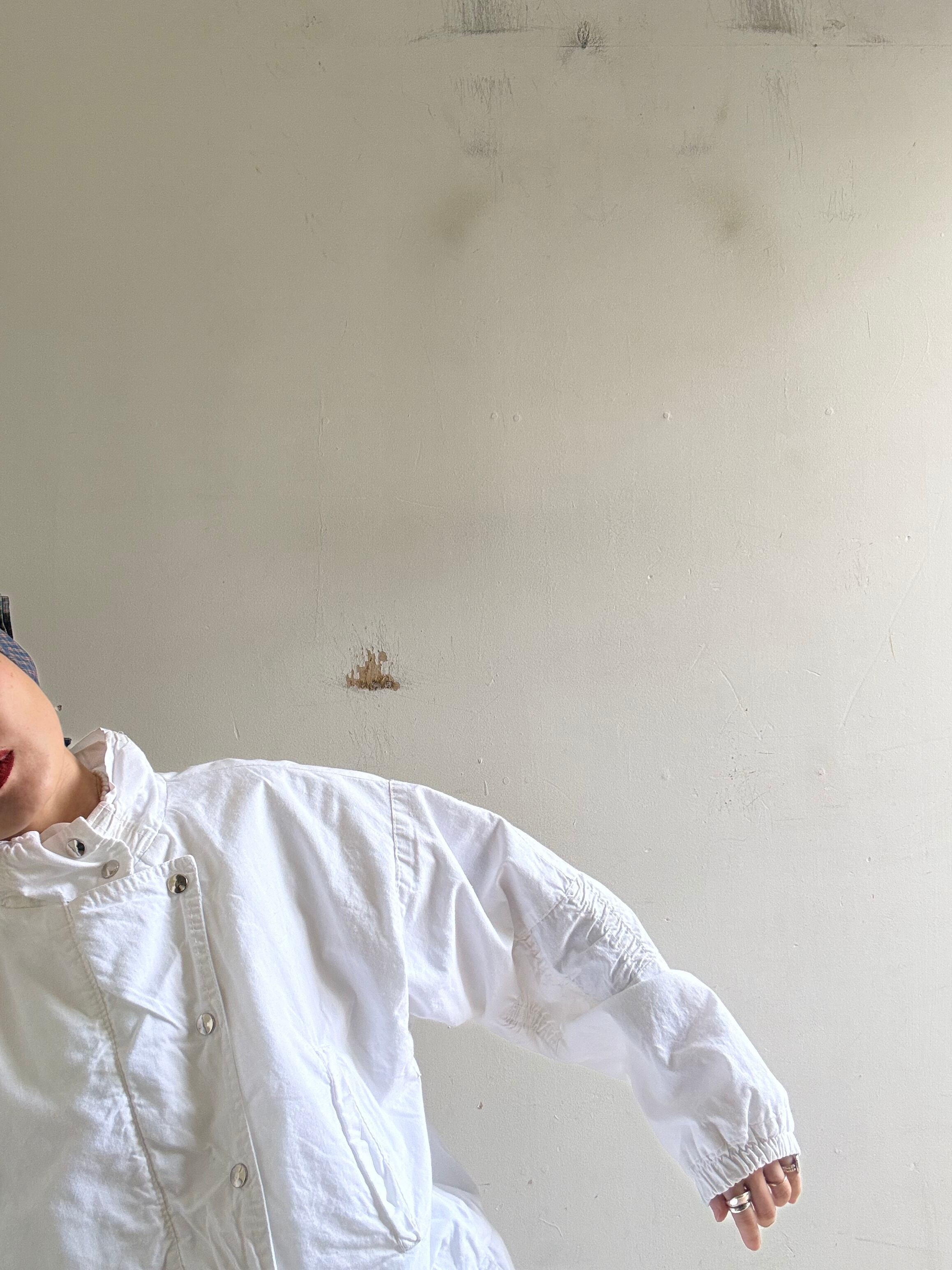 着丈:63cm 肩幅:60cm 身幅:60cm 袖丈:52cm material:cotton (model 身長154cm) 商品の詳細につきましては、4/10(Fri)のインスタグラムライブをご覧ください。 またこちらの商品はOnline Storeでは4/11(Sat)12時よりお買い求めいただけます。